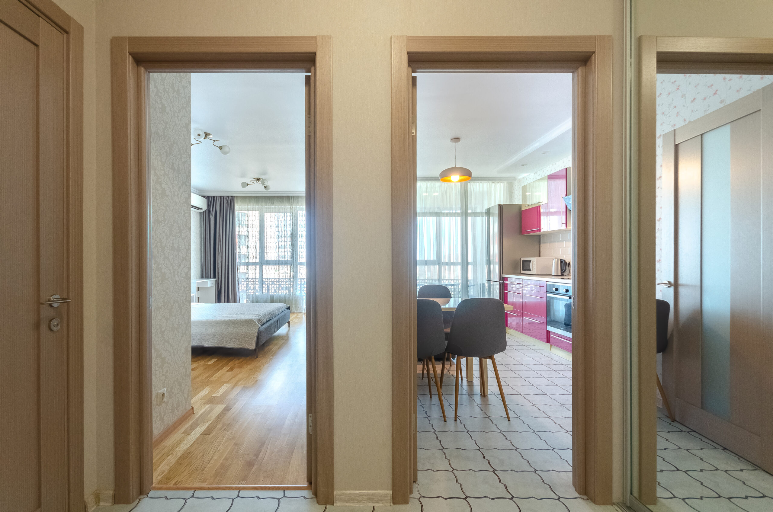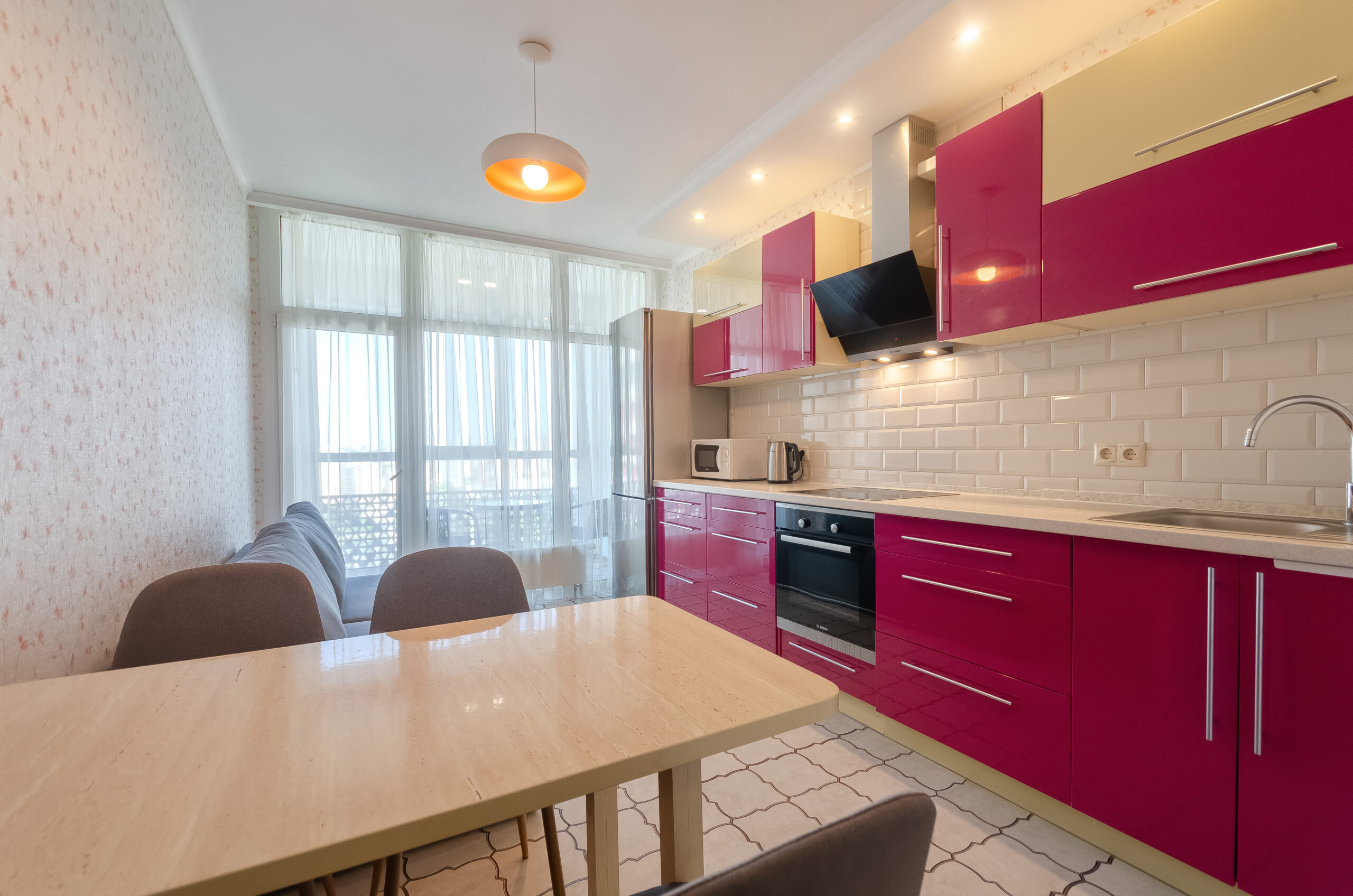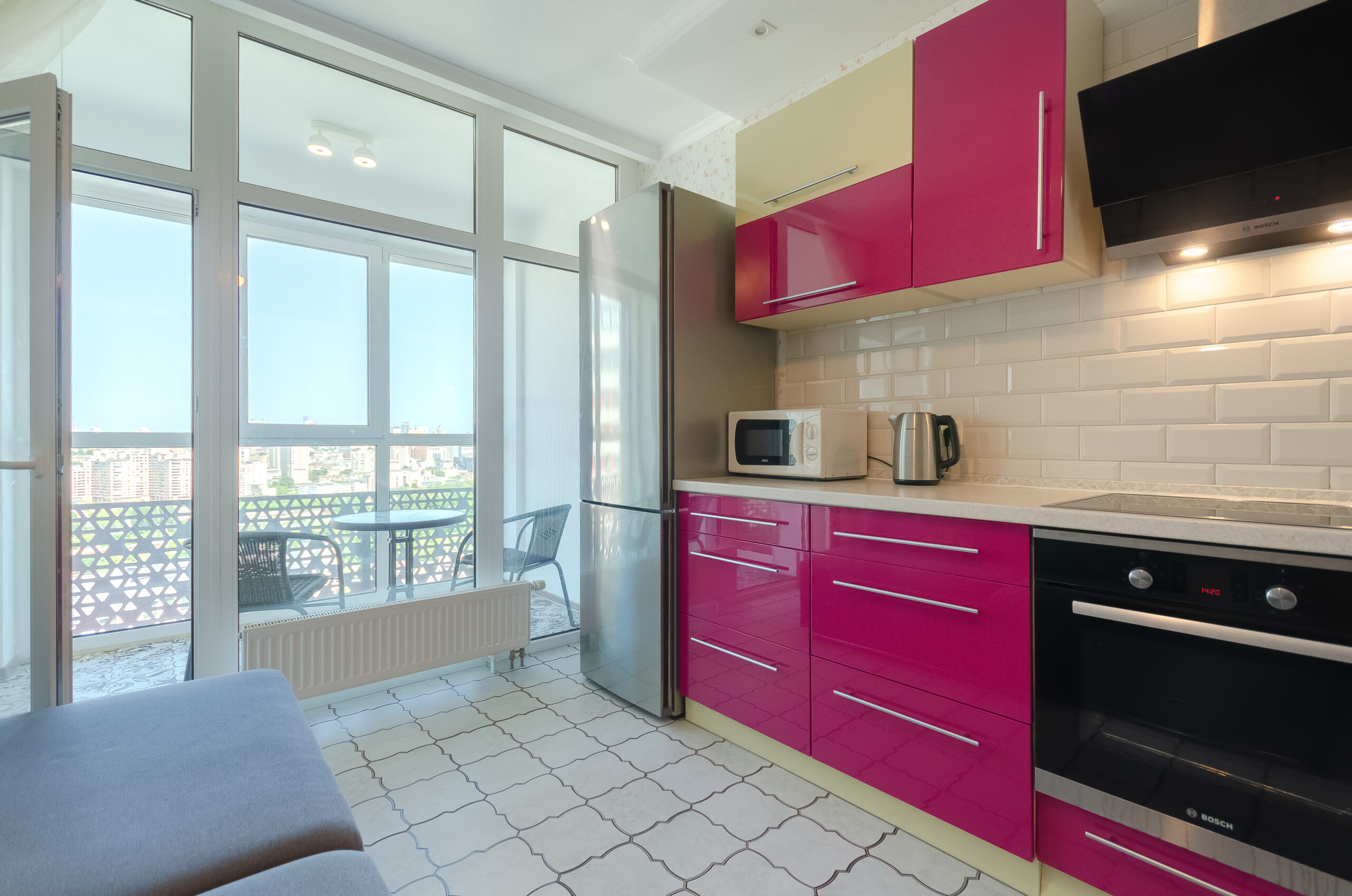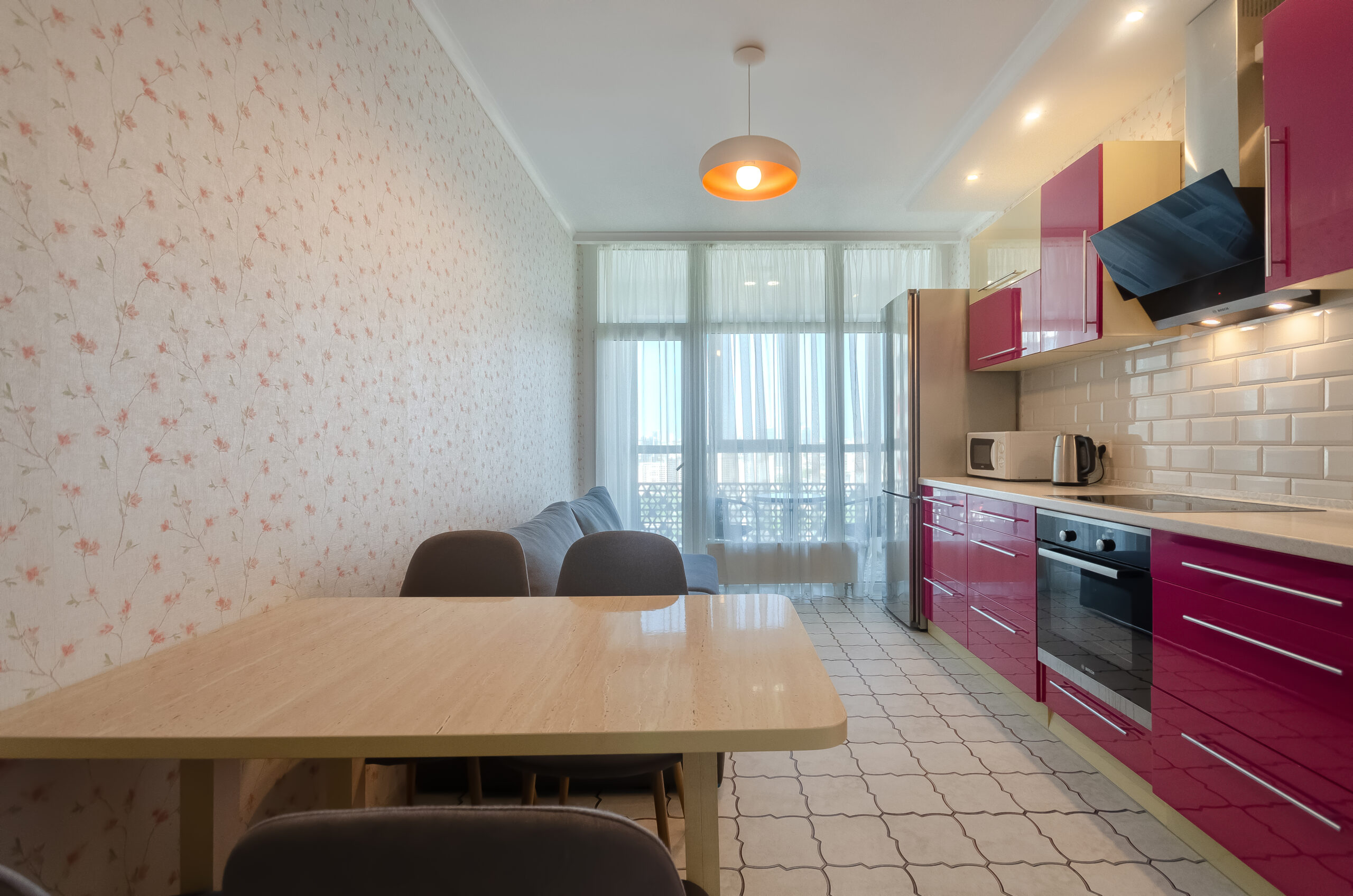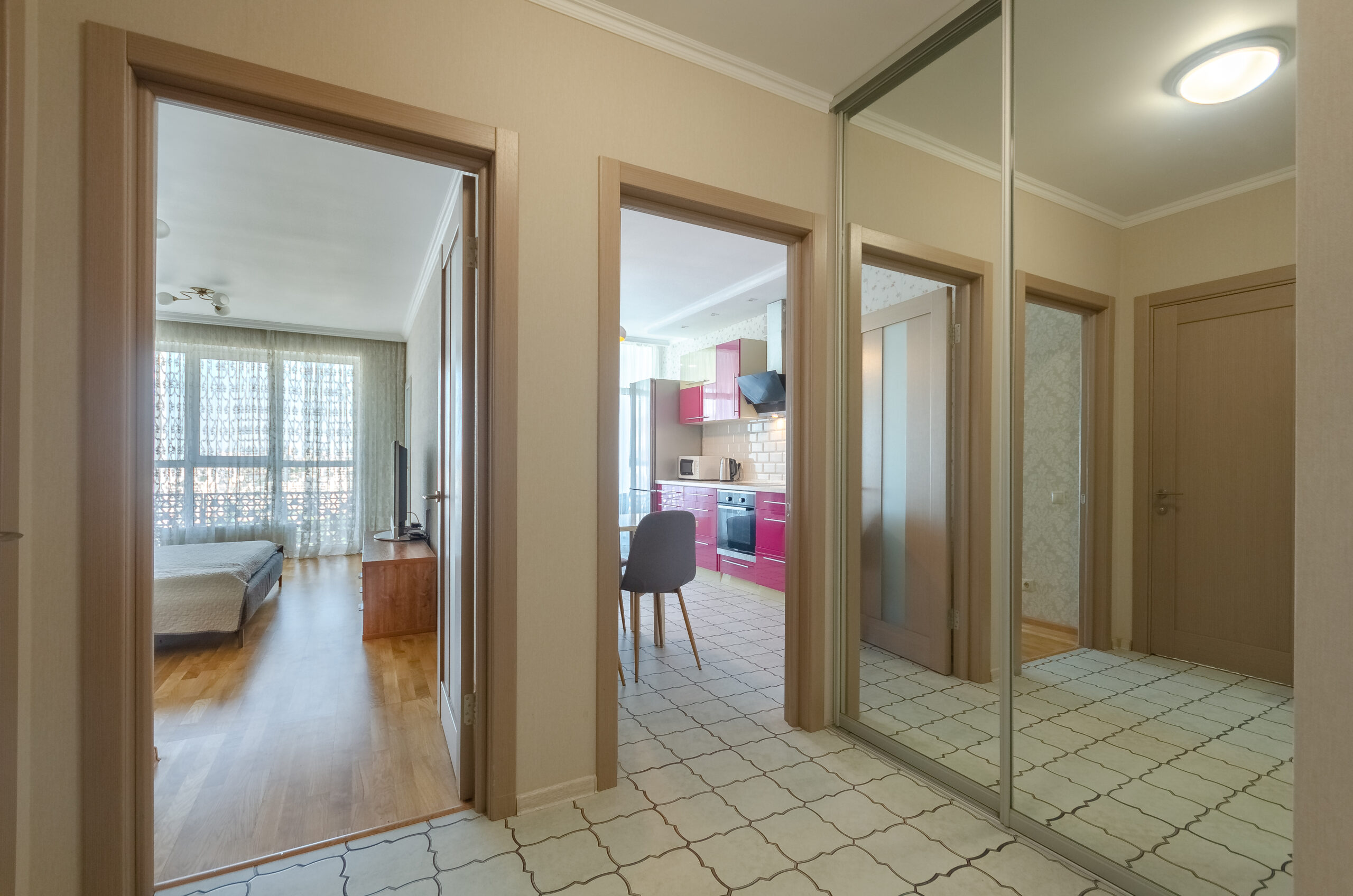 There are many boutiques, restaurants, banks, shops, entertainment venues and attractions nearby. There is a public transport stop across the street.Within walking distance – Railway station, Leva Tolstoy, Zhilyanska, Ultramarine shopping center, 101 Tower, Stadium, Kudryashova, Saksaganskogo, Slomyanski park, Novus supermarket, KFC McDonald’s Velyka Kyshenya. Metro “Vokzalna ” – 7 minutes’ walk, across the street – shopping – entertainment center “Ultramarine”. There are 3 large supermarkets, restaurants, and a convenient transport interchange nearby.