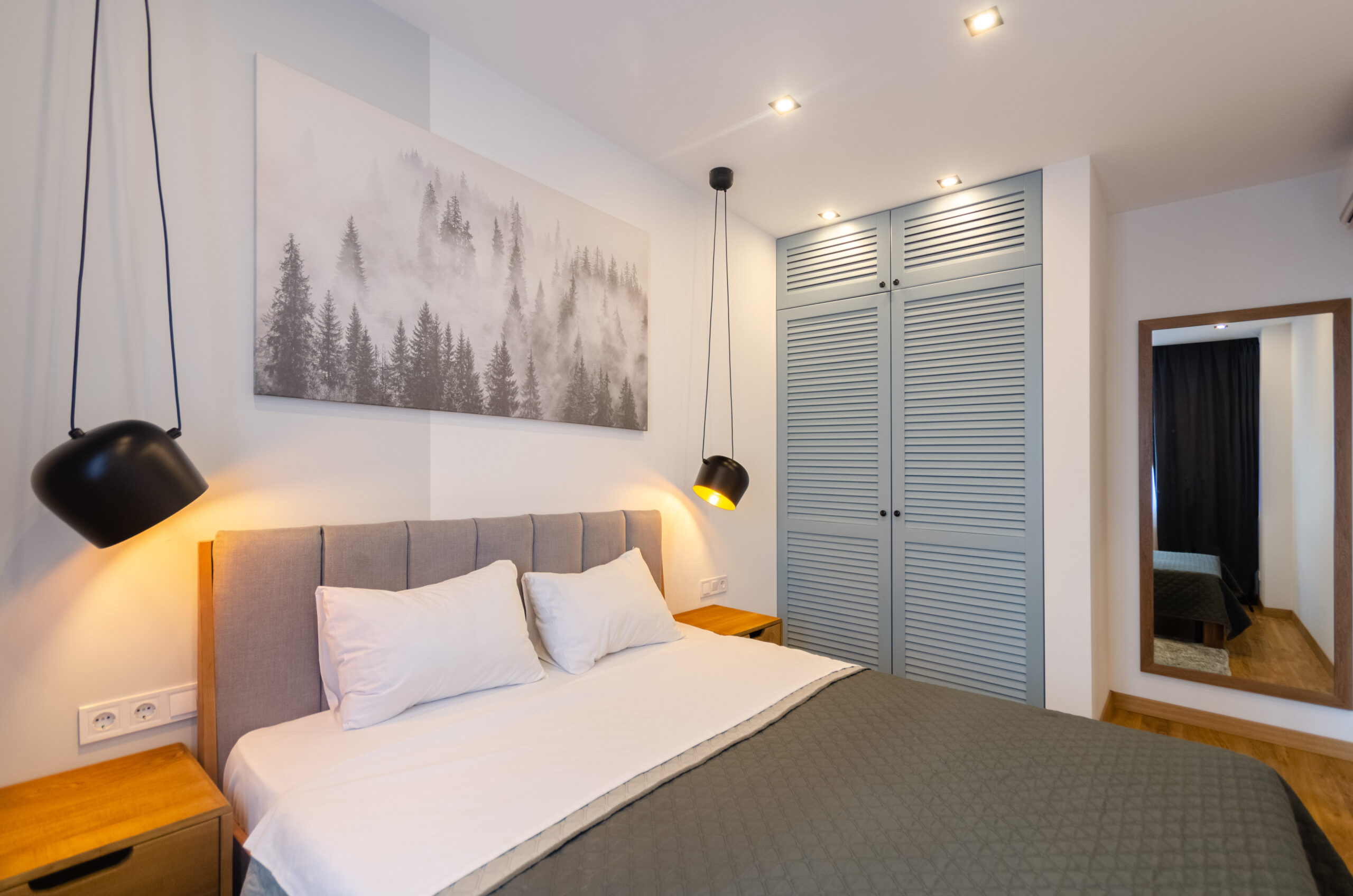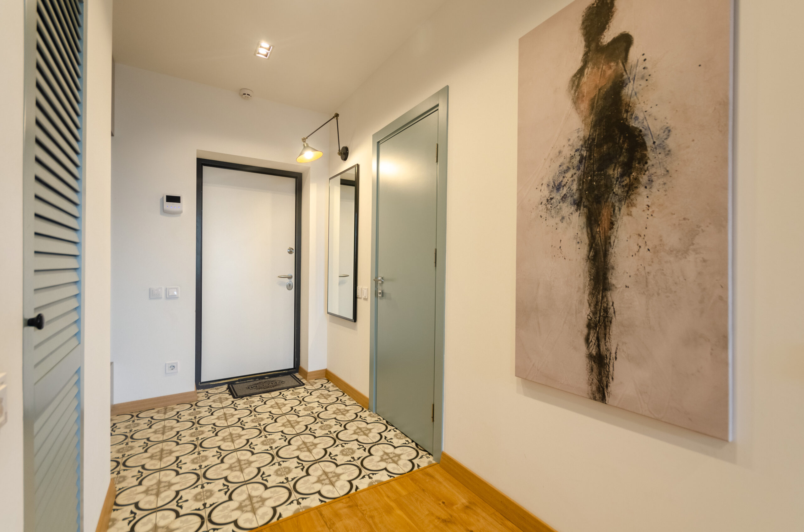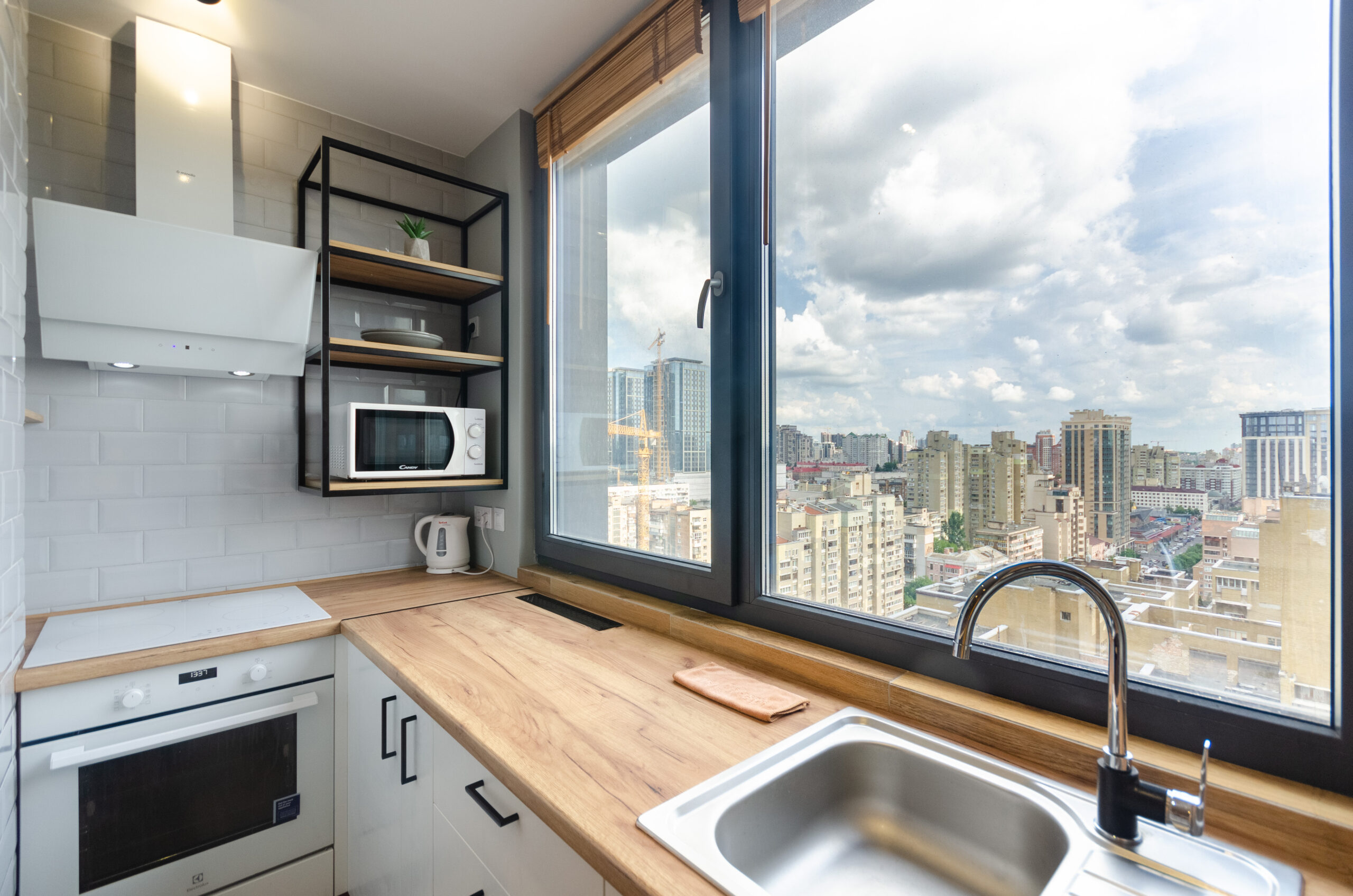 A stylish, modern apartment with a designer renovation is located in the city center in the New York Concept House residential complex. One of the best houses in Kyiv. The complex has round-the-clock security and video surveillance. Excellent transport interchange, near metro stations Olimpiyska and Palace of Ukraine, all infrastructure – restaurants, cafes, supermarkets, fitness clubs, shops, park for walking with children, sports and children’s playground, garden, school, gyms.