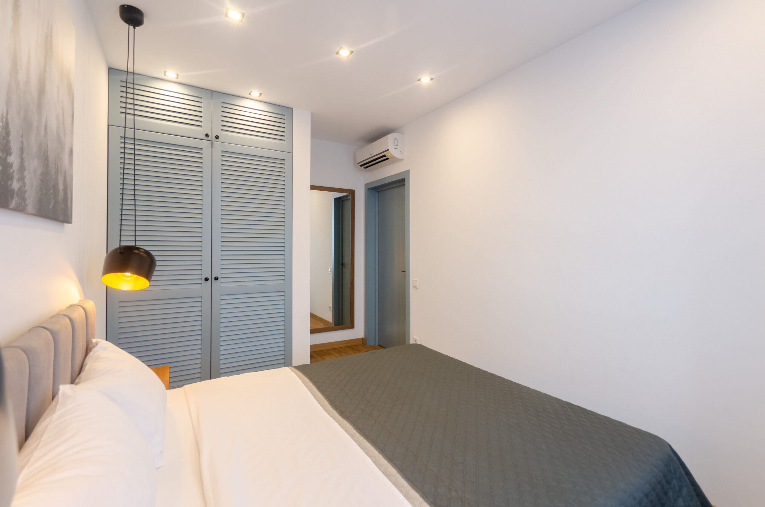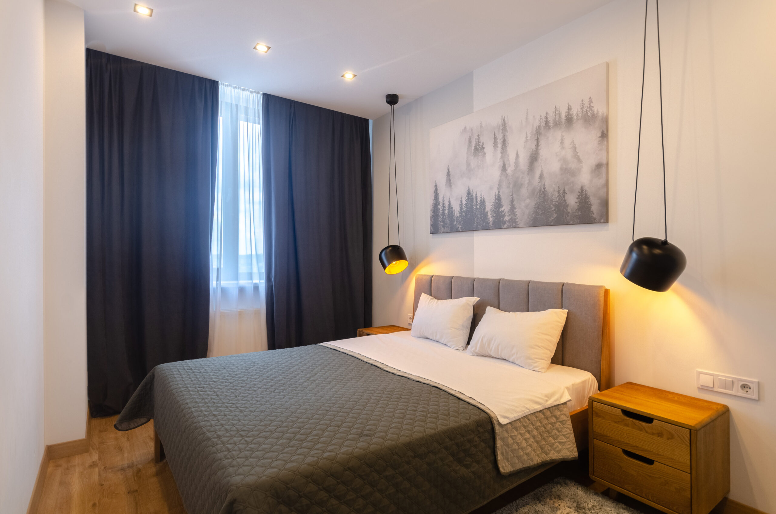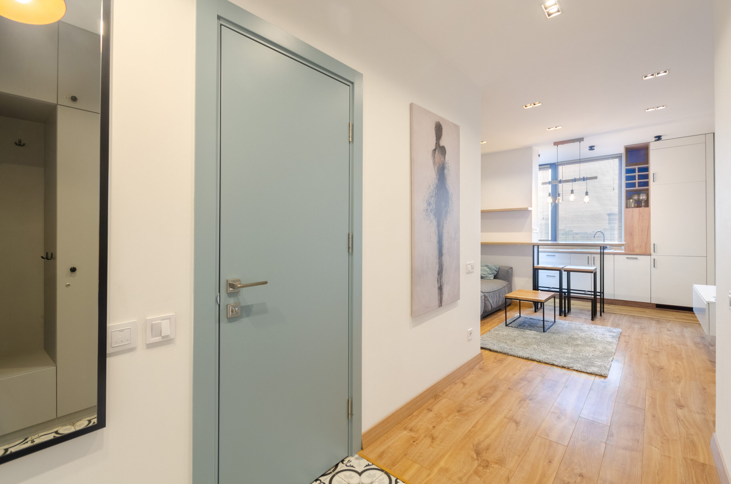 A stylish, modern apartment with a designer renovation is located in the city center in the New York Concept House residential complex. One of the best houses in Kyiv. The complex has round-the-clock security and video surveillance. Excellent transport interchange, near metro stations Olimpiyska and Palace of Ukraine, all infrastructure – restaurants, cafes, supermarkets, fitness clubs, shops, park for walking with children, sports and children’s playground, garden, school, gyms.