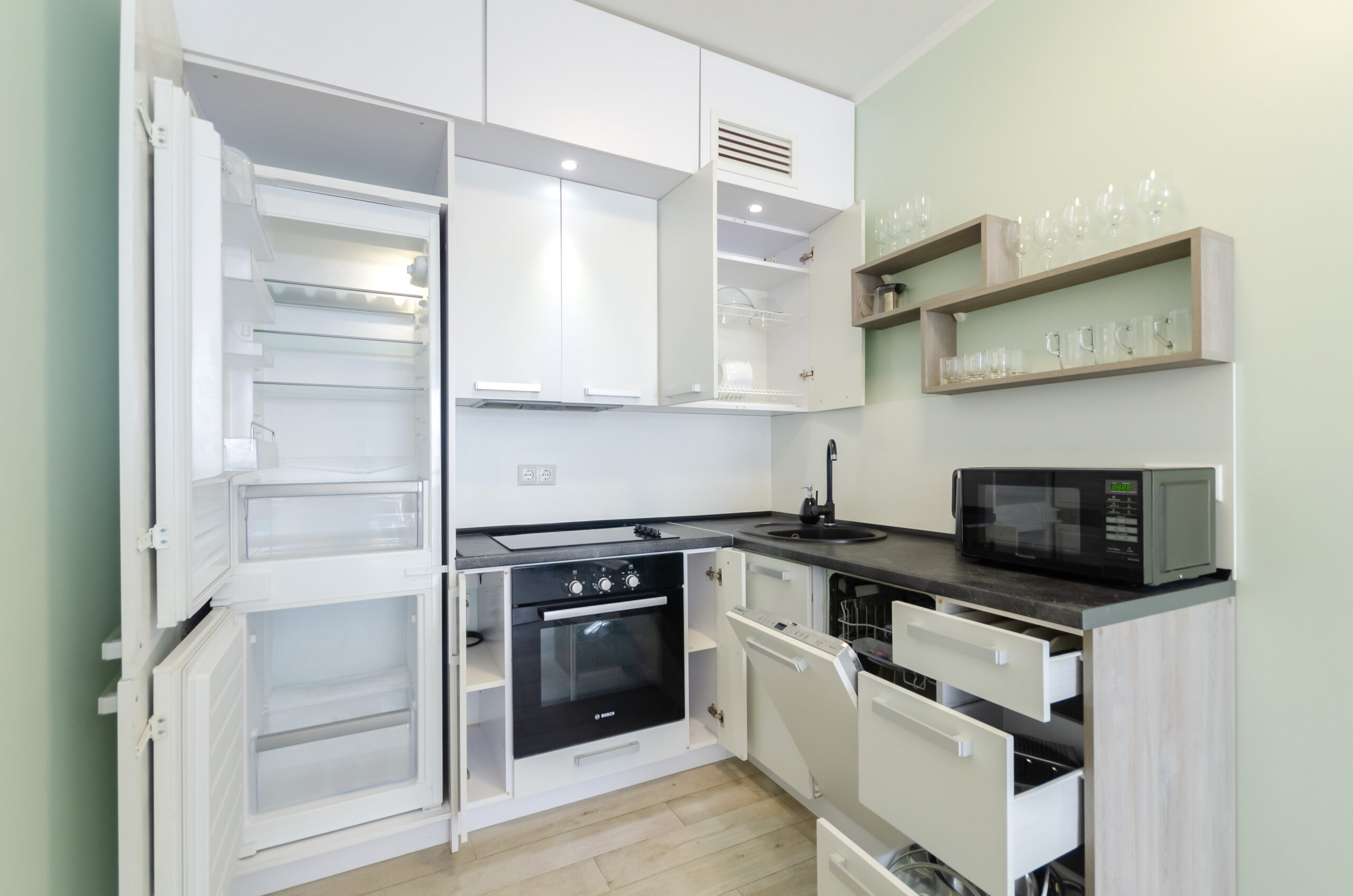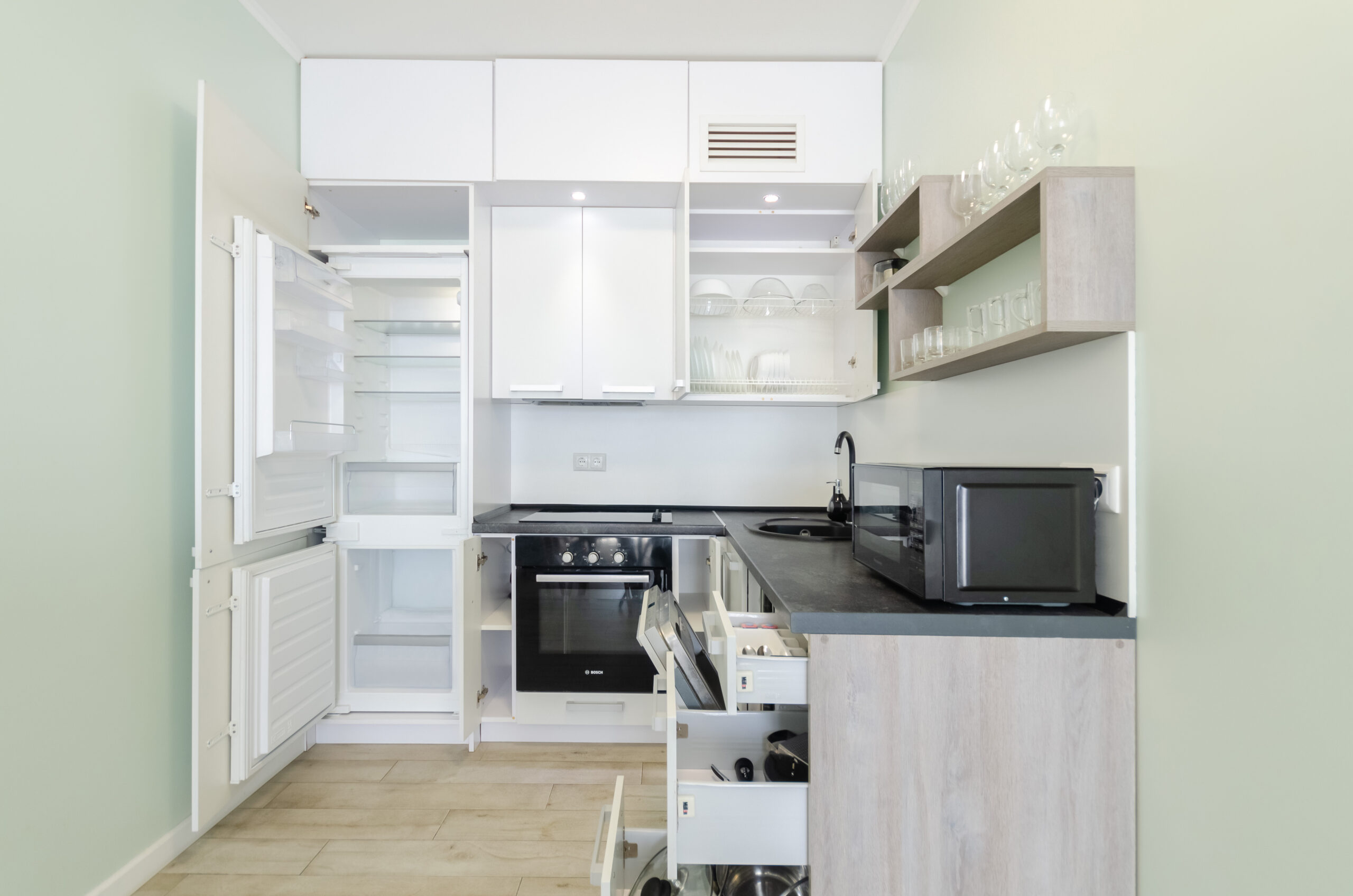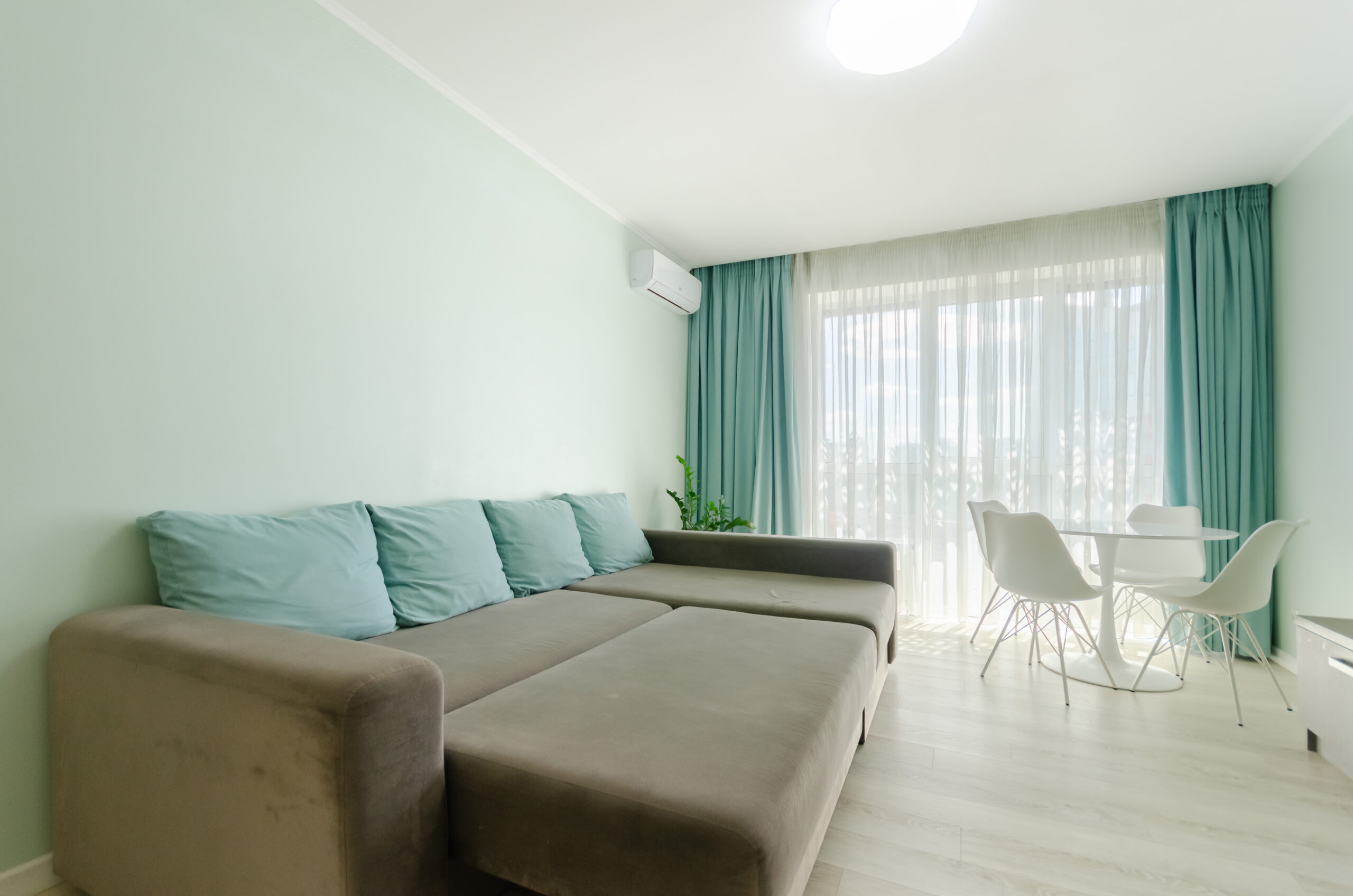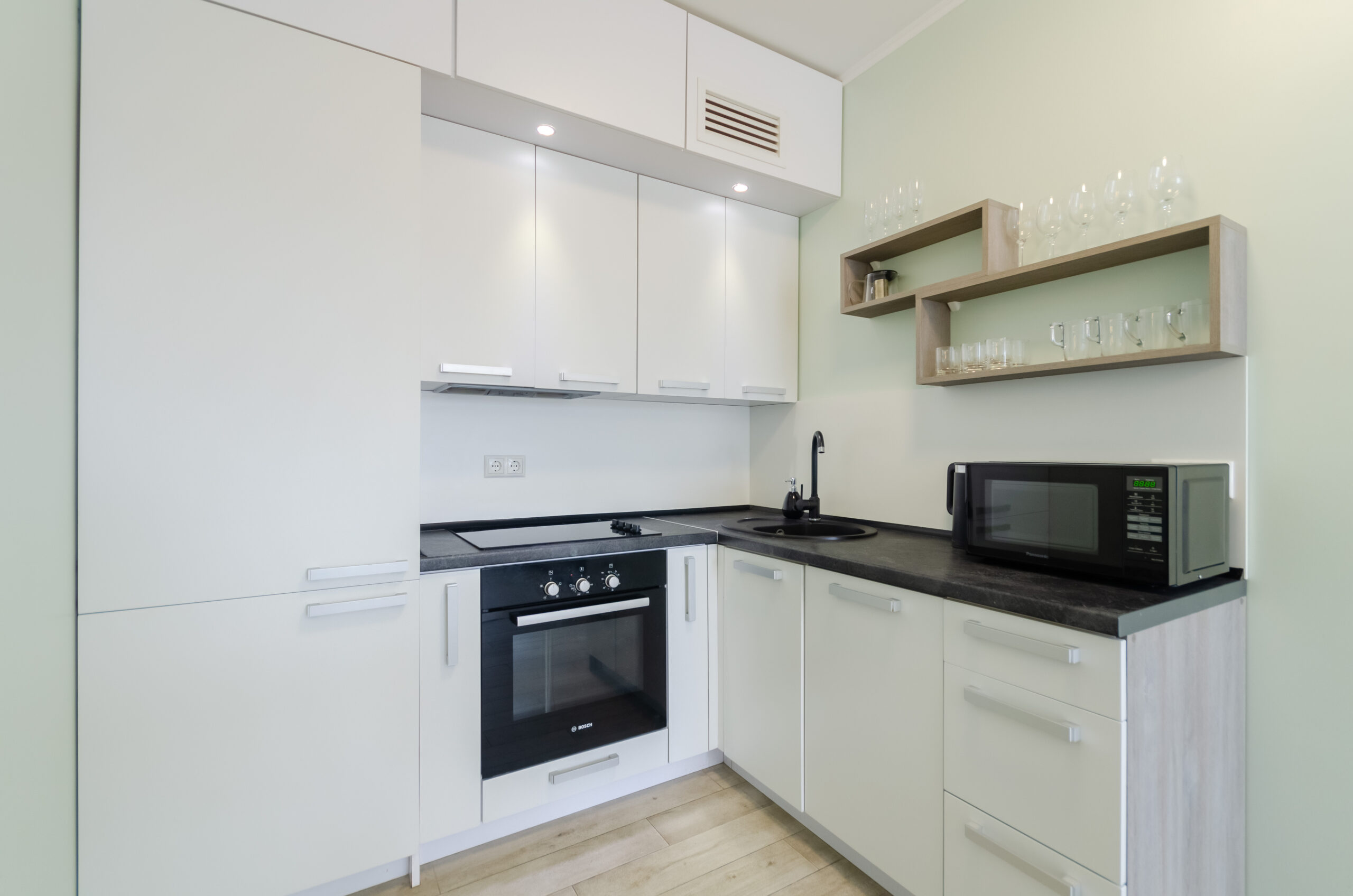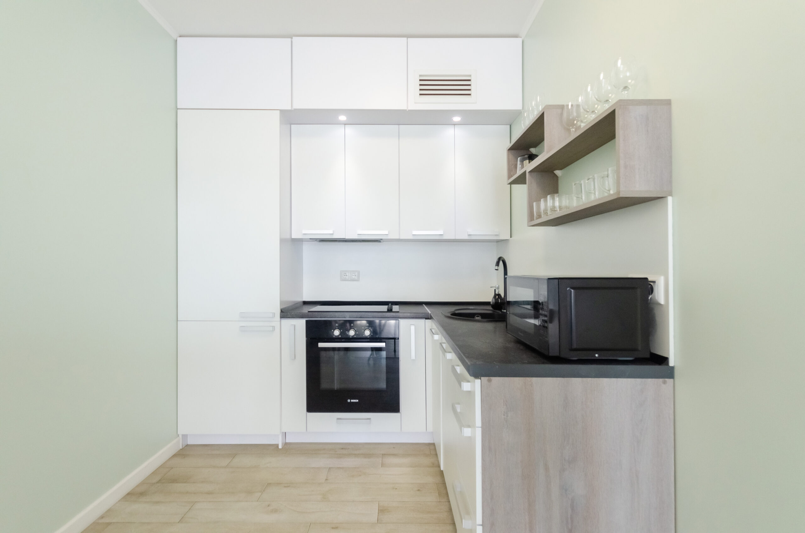 The apartment is fully equipped with everything necessary for a comfortable stay for any period.