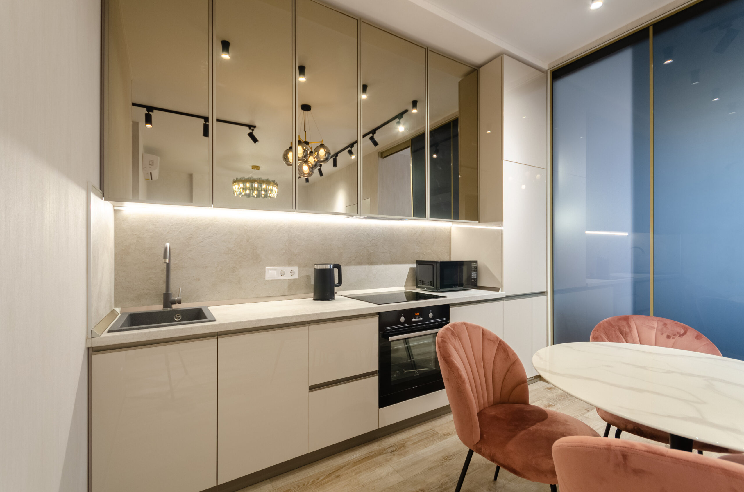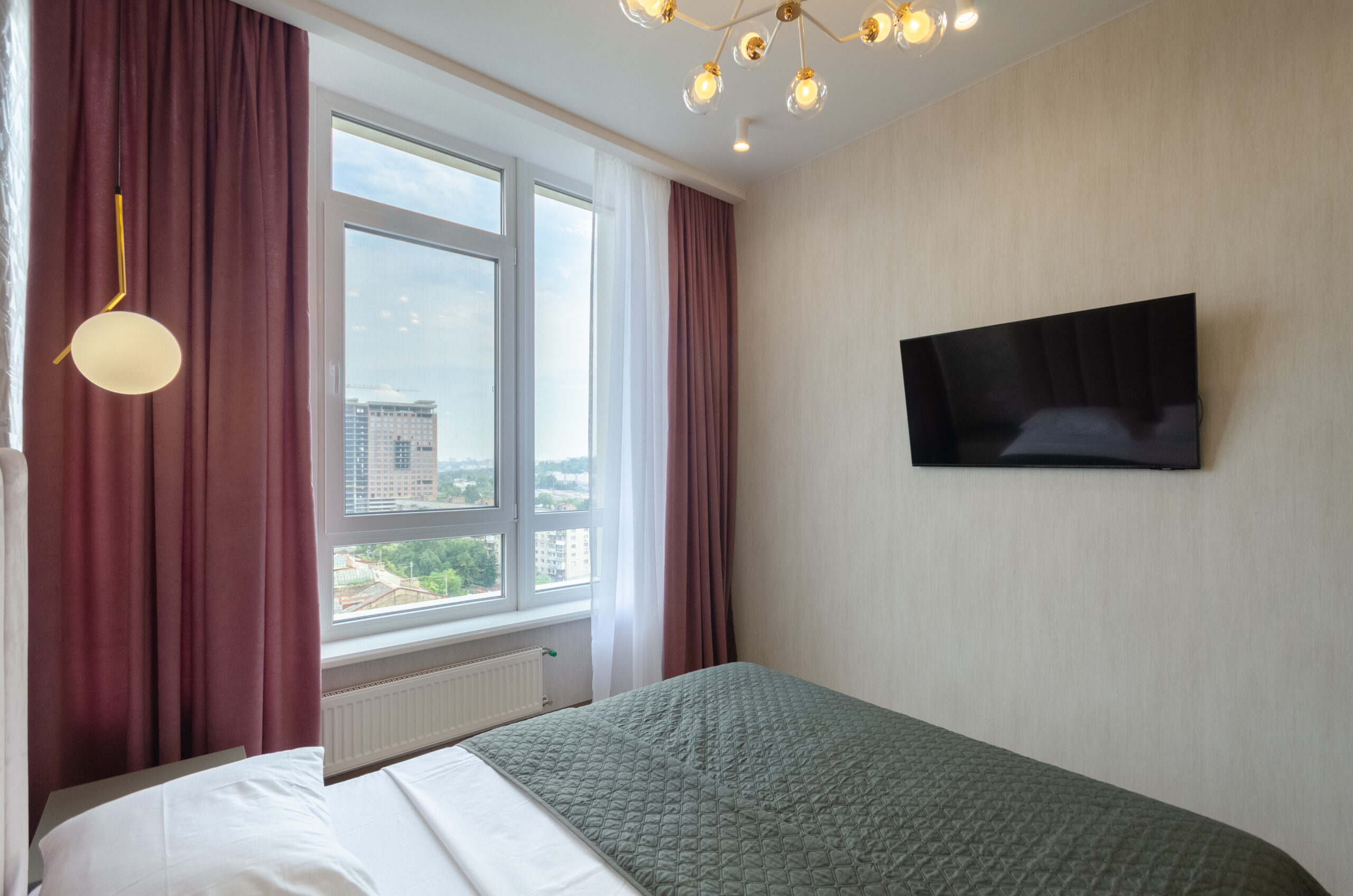 There are 5 metro stations within walking distance: “Olimpiyska”, “Vokzalna”, “University”, “Palace of Sports”, “Lev Tolstoy Square”. The nearest metro station – “Olimpiyska” – 1.2 km, 15 minutes’ walk, then Khreschatyk – 2.6 km, Shevchenko Park, Leo Tolstoy Square – 1.4 km, Theater – 2.2 km, Railway station – 1.5 km, Boryspil Airport – 33 km, 1 hour. 30 min, “Kyiv” airport – 8.3 km, Kyiv-Pechersk Lavra – 5.5 km. A grocery store is a 12-minute walk away.