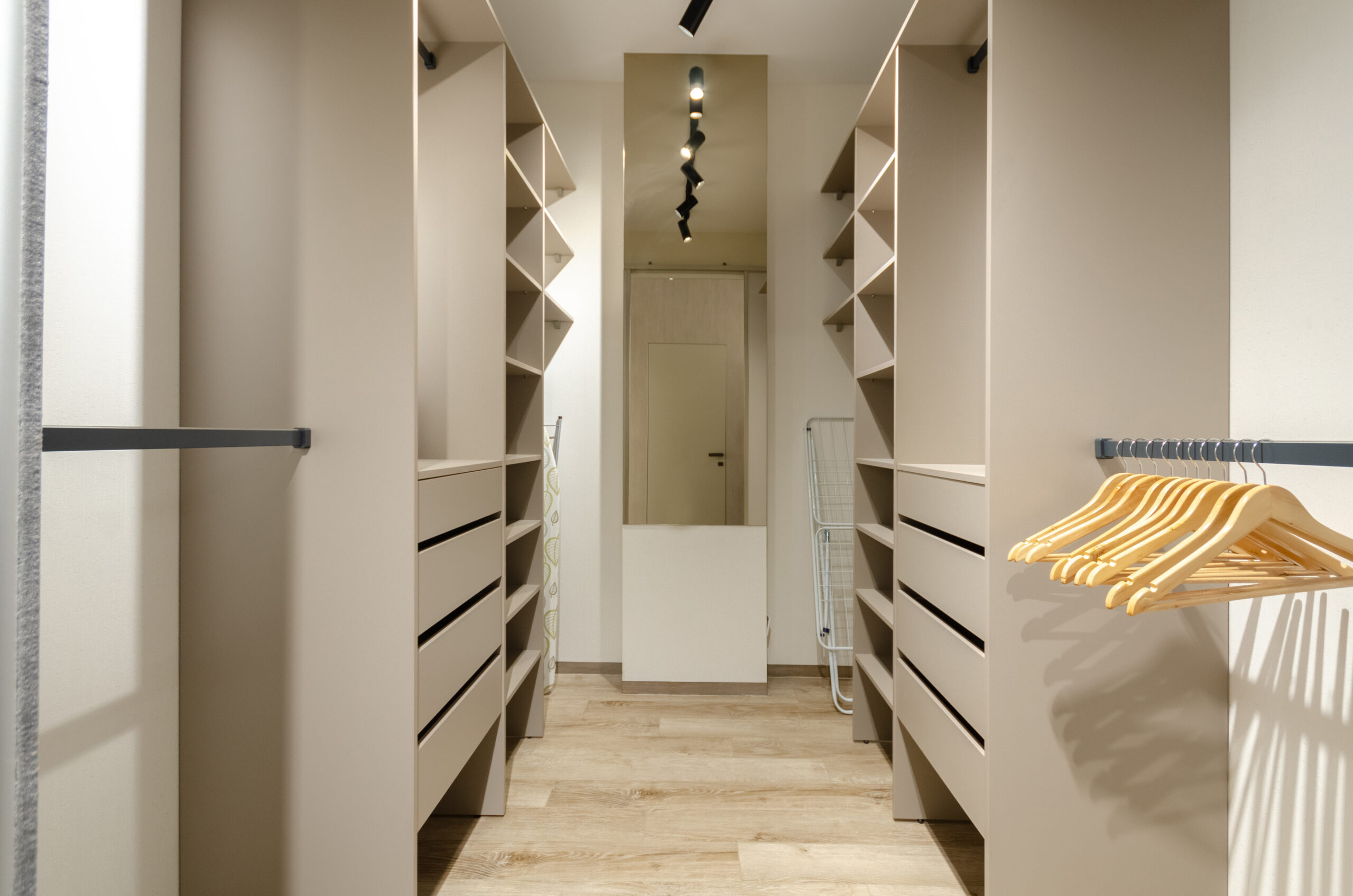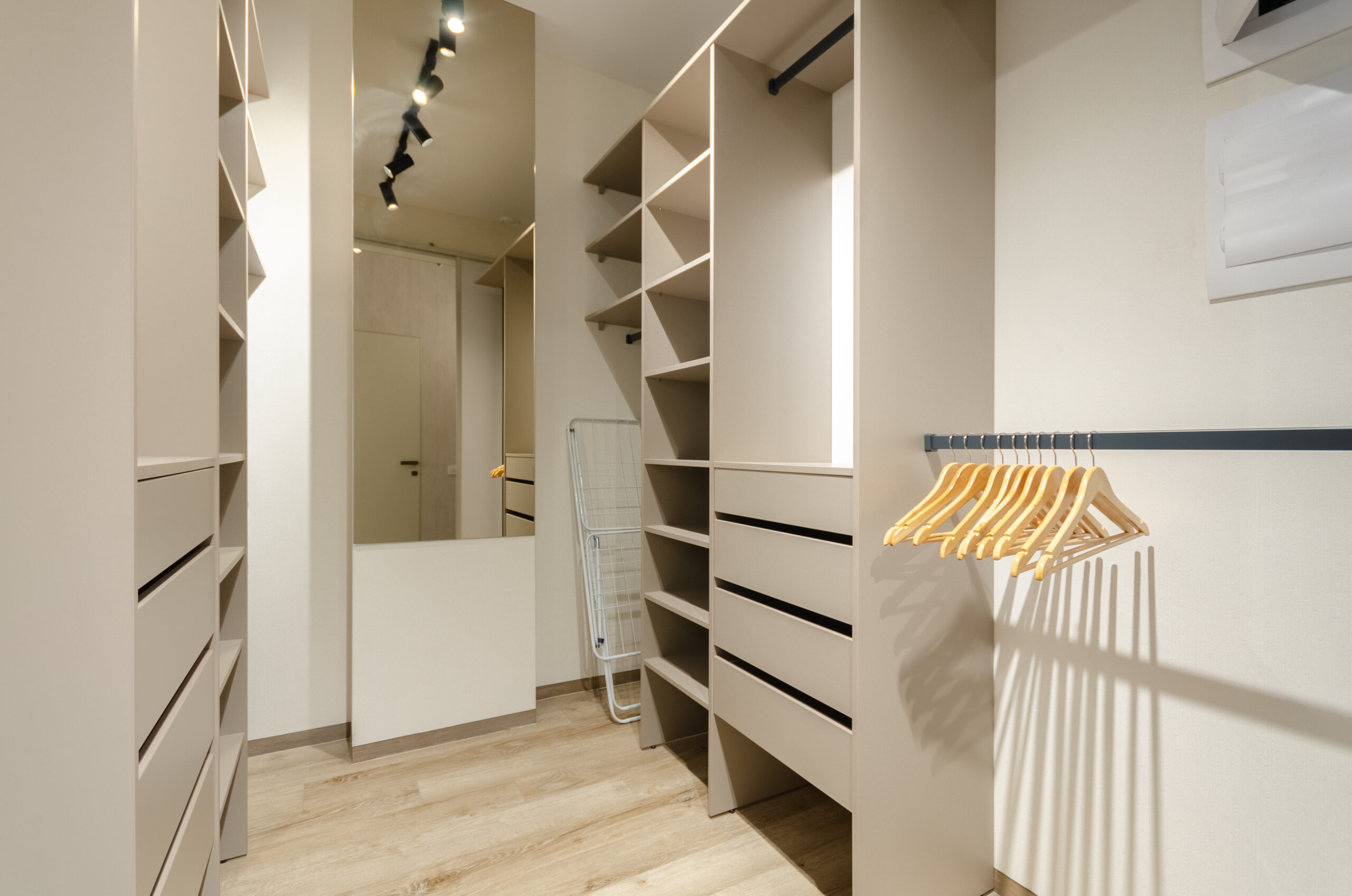 The apartment is located on the 11th floor, has an area of 68 m2, has two separate bedrooms, a stylish living room with kitchen, a dressing room and a bathroom.