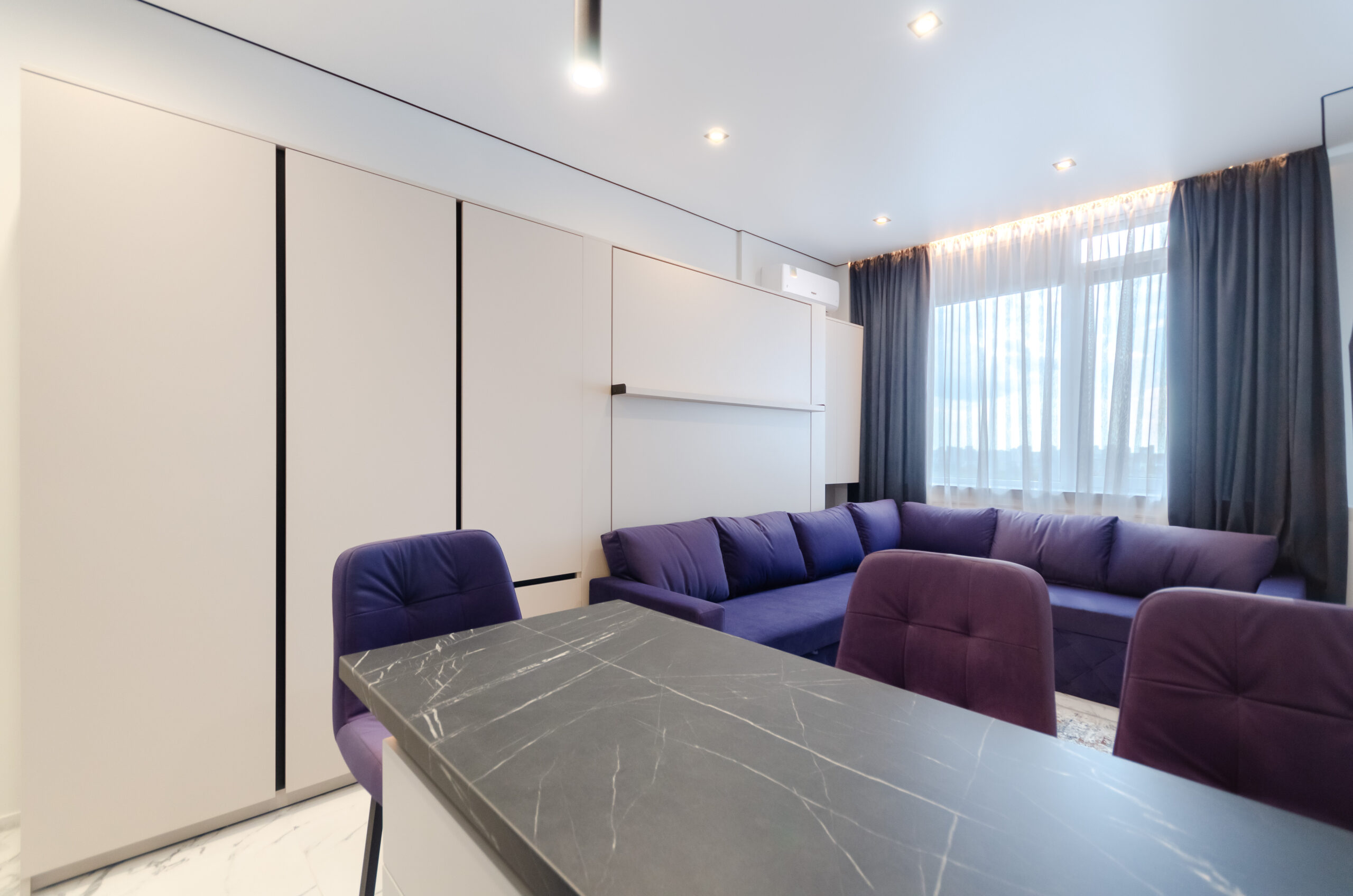 of Kyiv city. Stylish modern design. The apartment is fully equipped with everything necessary for a comfortable stay.