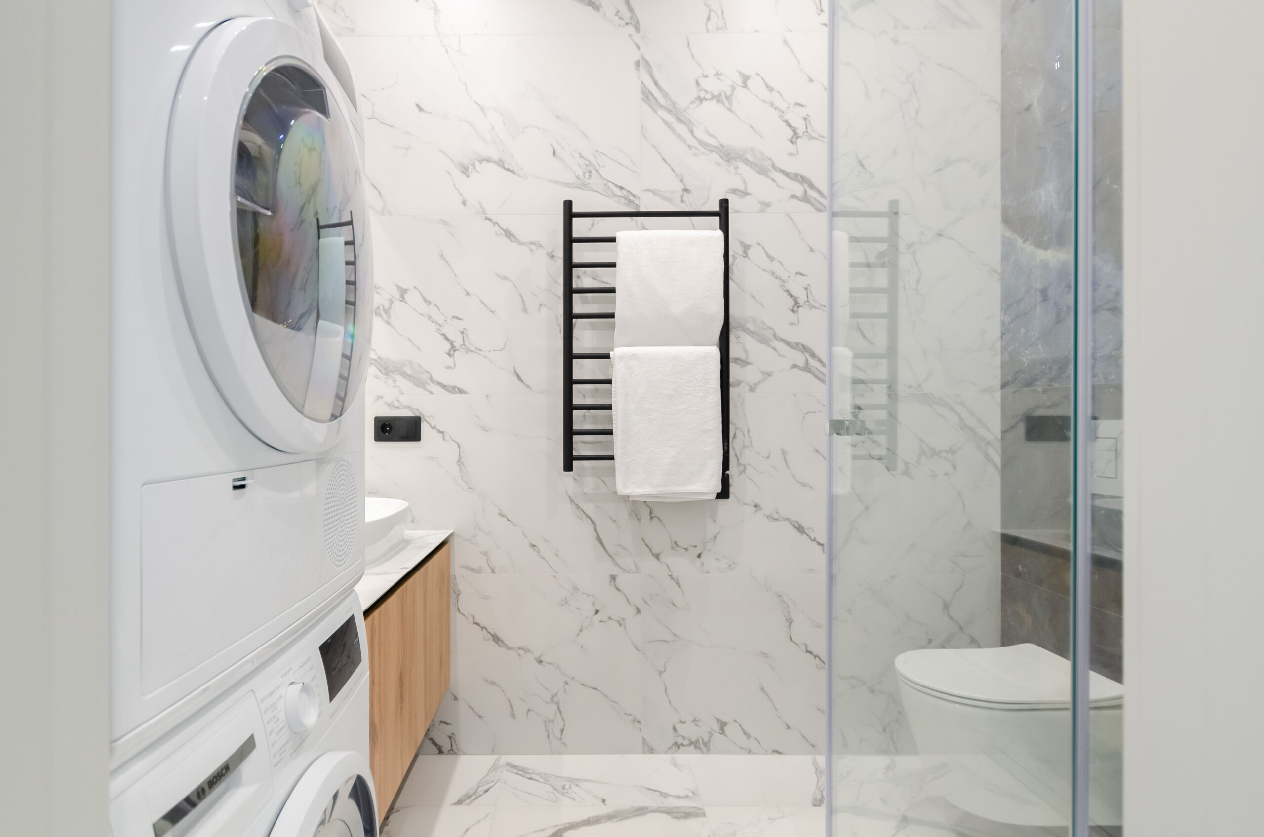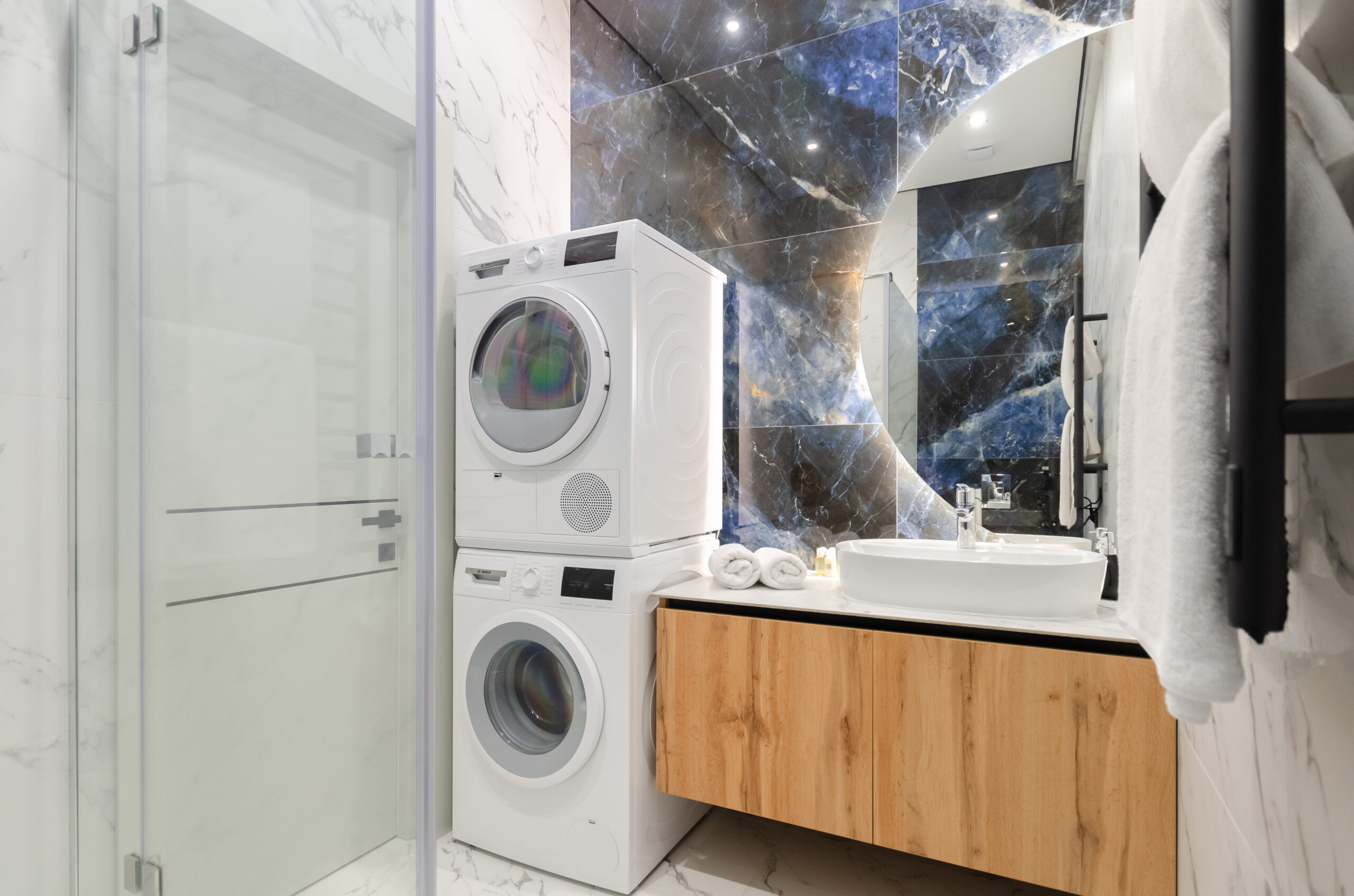*bathroom: bath-shower, washing machine and dryer, toiletries, hairdryer, towels.