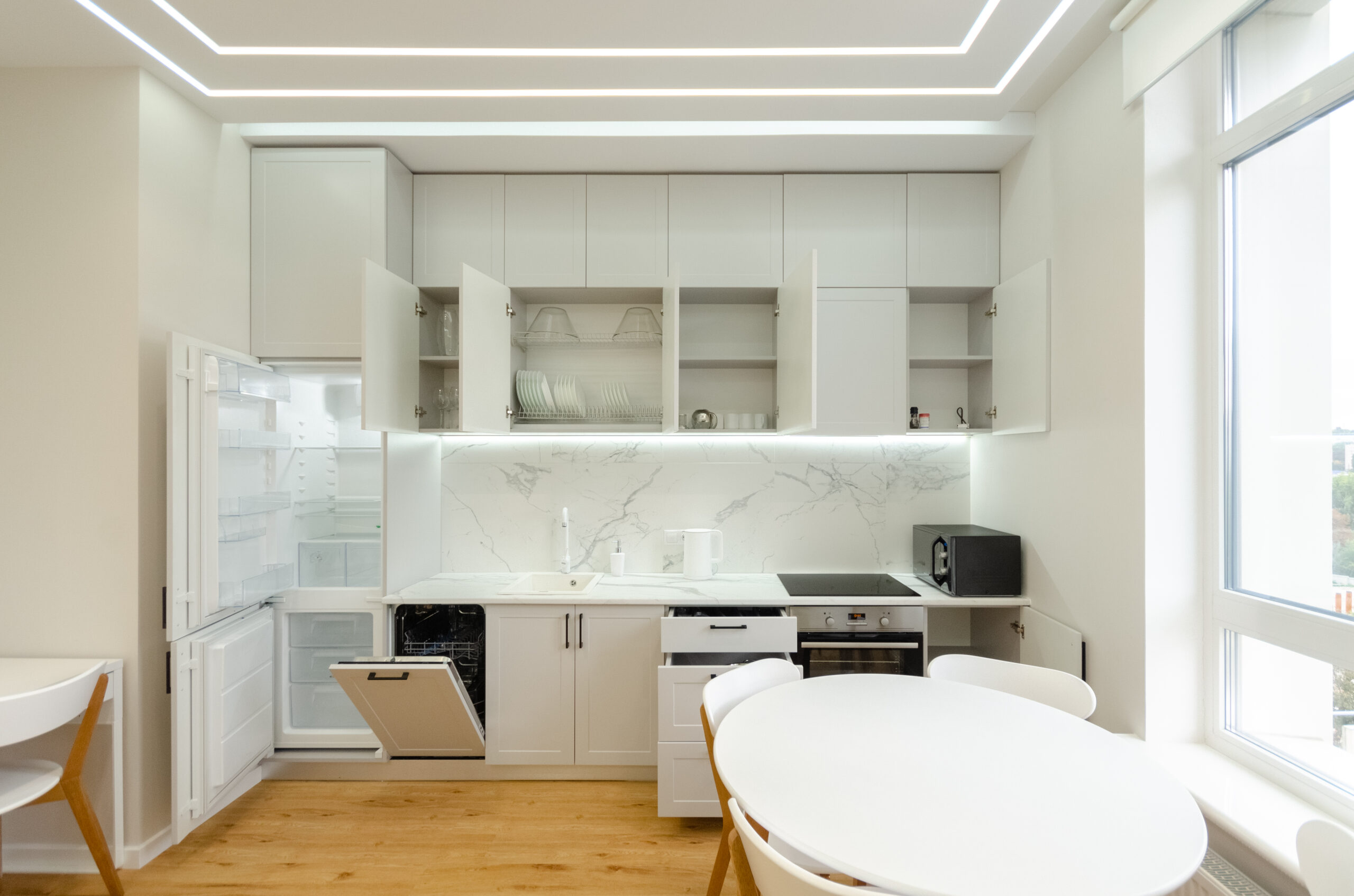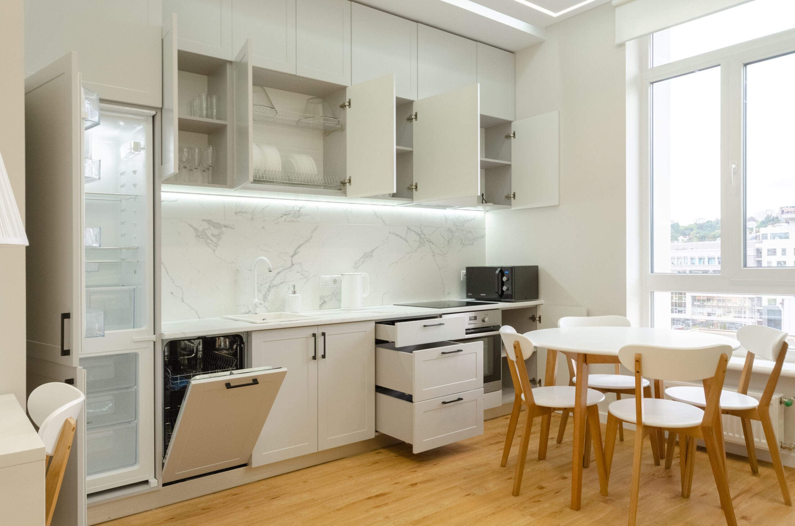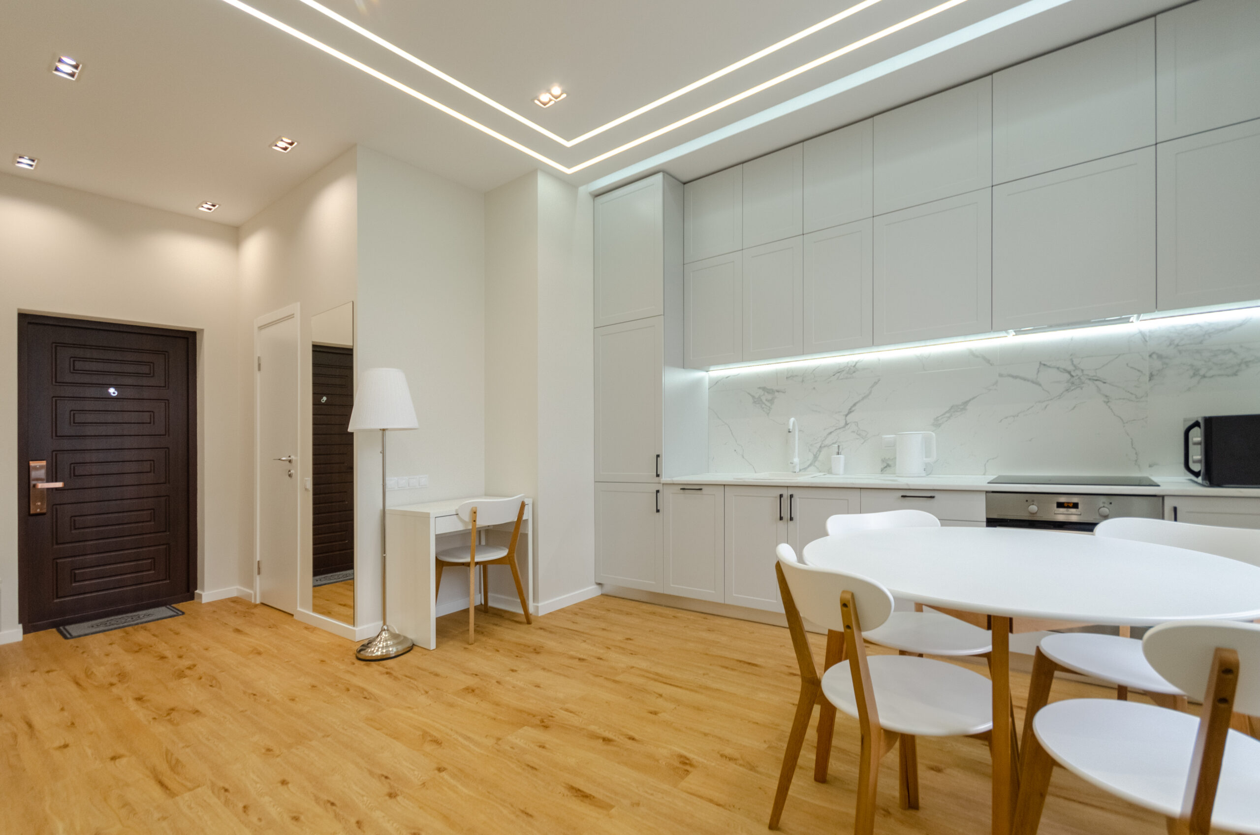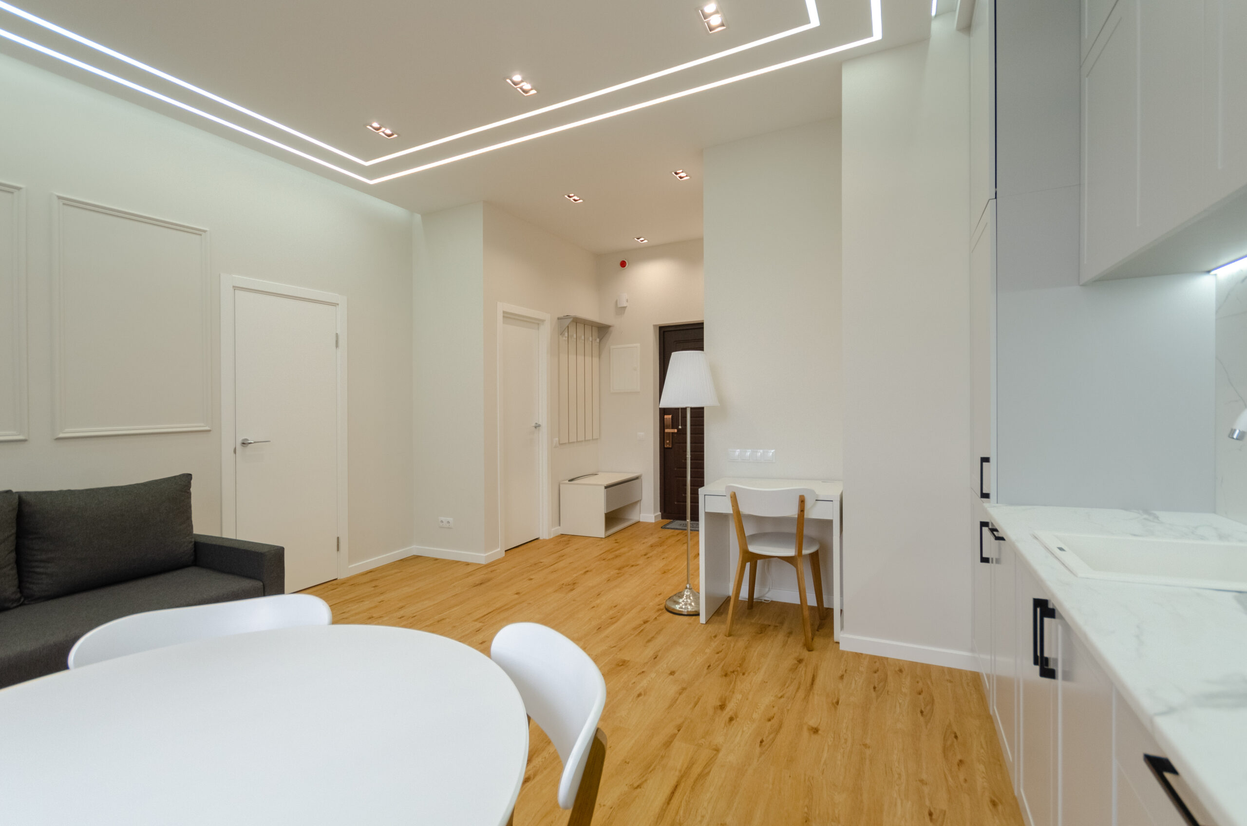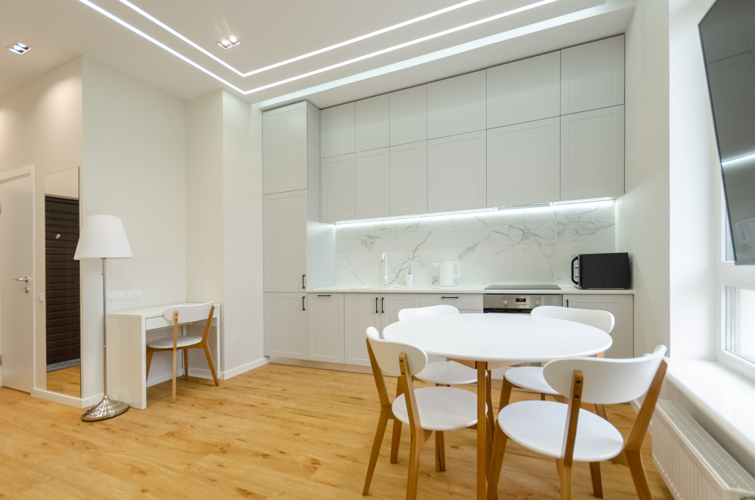 To all necessary infrastructure – only 4 minutes of wakk (350 m): restaurants, cafes, bars, food delivery, banks, pharmacies, boutiques. There are many boutiques, restaurants, banks, shops, entertainment venues and attractions nearby. Gulliver Shopping Center and Mega Market, Botanical Garden and KNU Square.