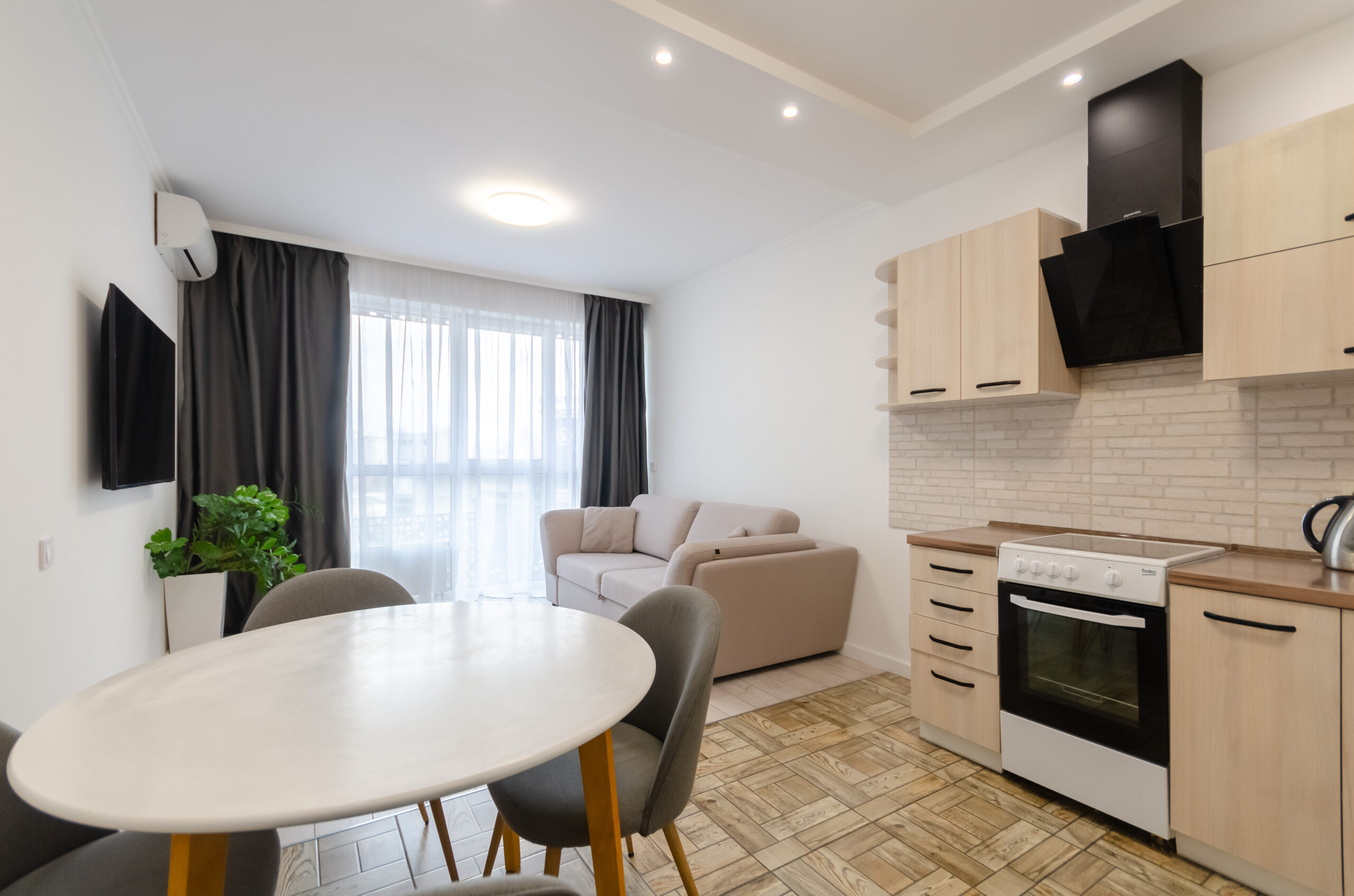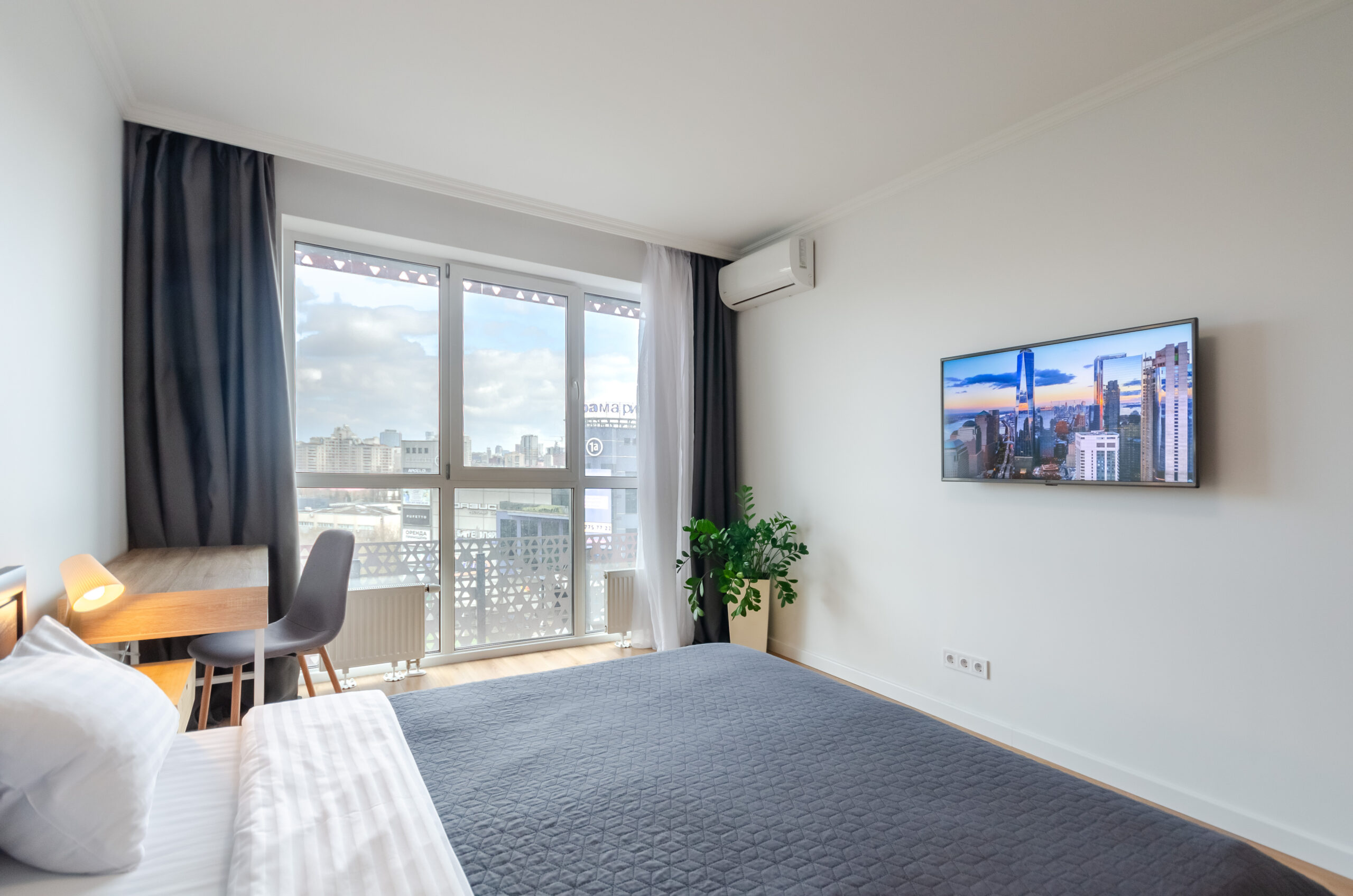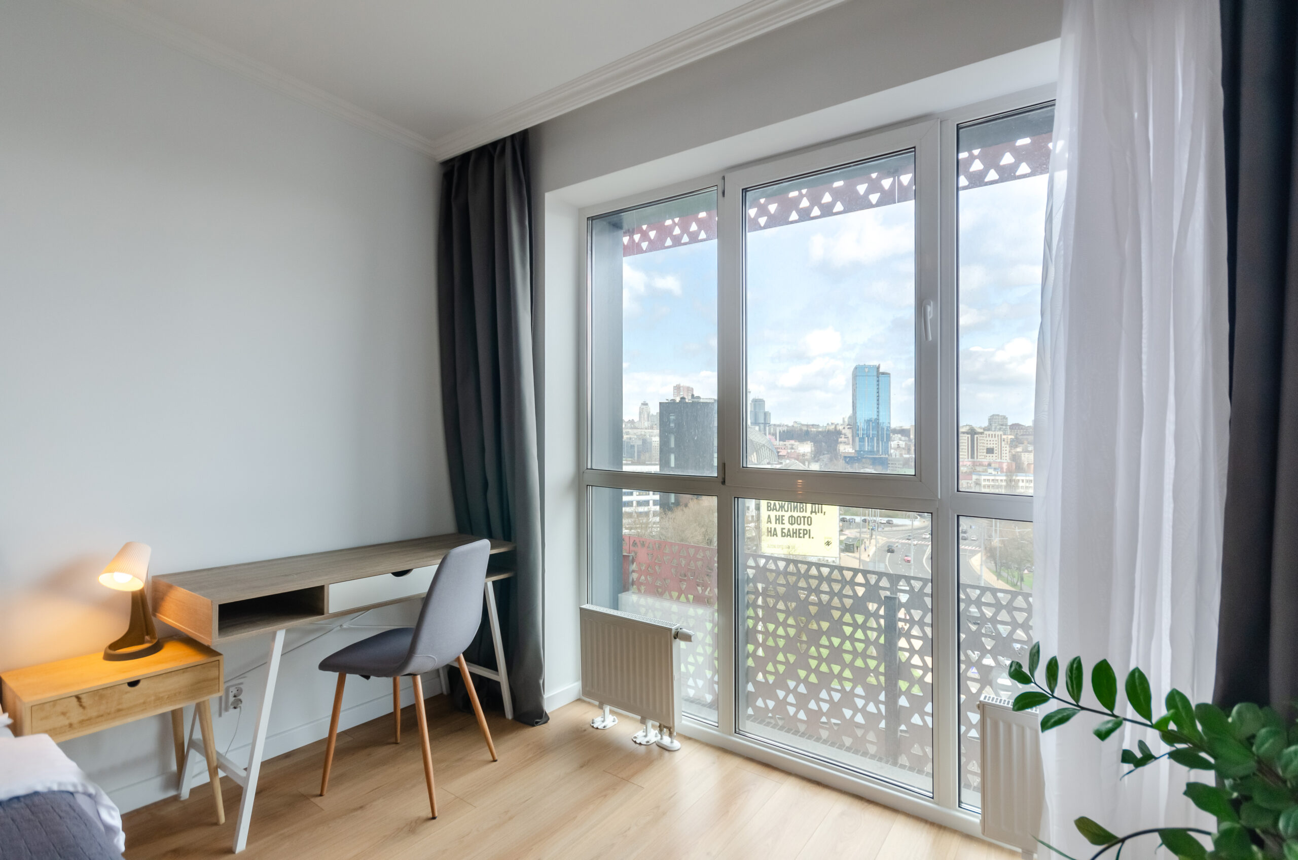 There are many boutiques, restaurants, banks, shops, entertainment venues and attractions nearby. There is a public transport stop across the street.Within walking distance are the railway station, Leva Tolstoy, Zhilyanska, Ultramarin shopping center, 101 Tower, Stadium, Kudryashova, Saksaganskogo, Solomyansky park, Novus supermarket, KFC, McDonald’s, Velyka Kyshenya.