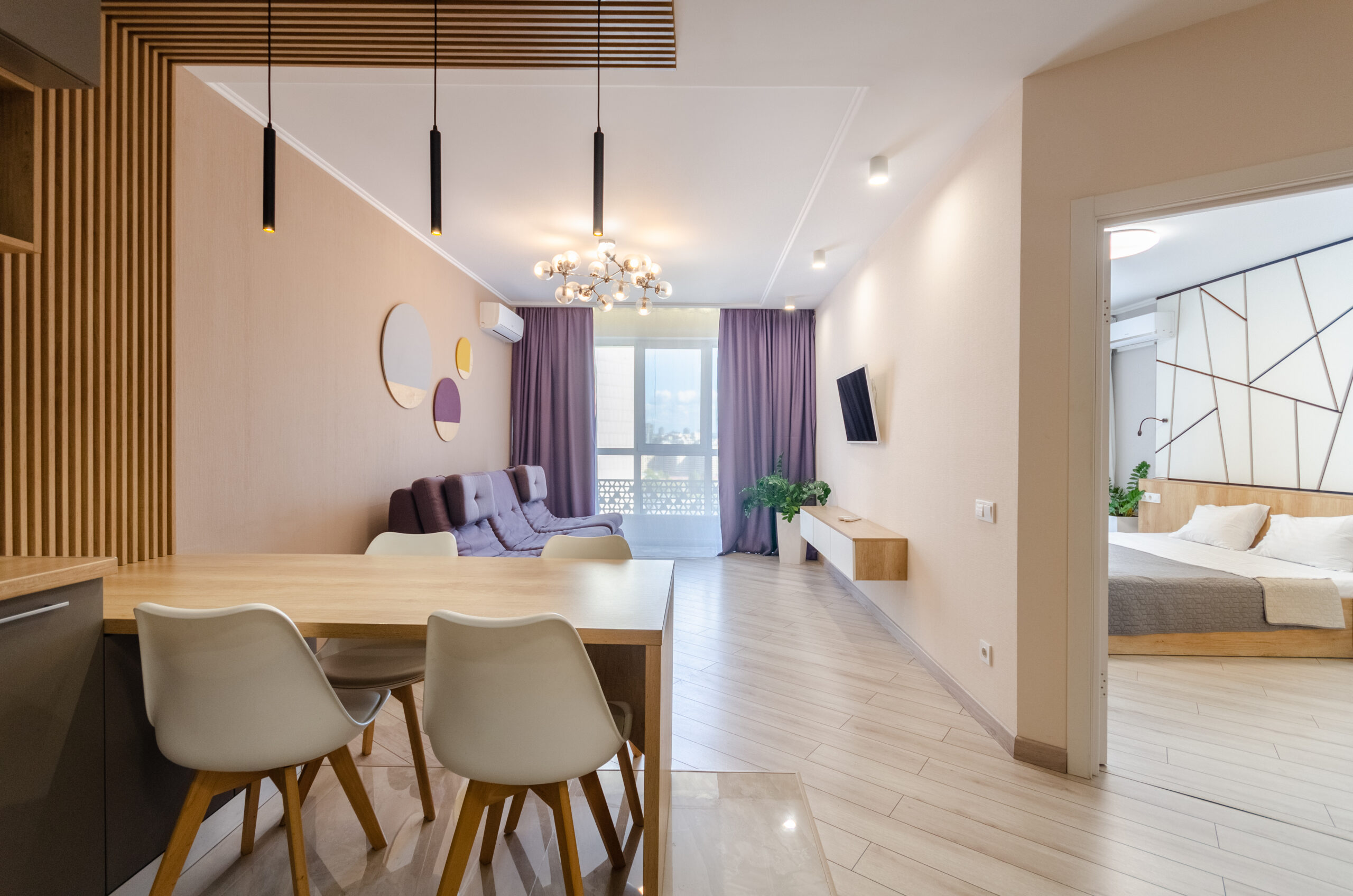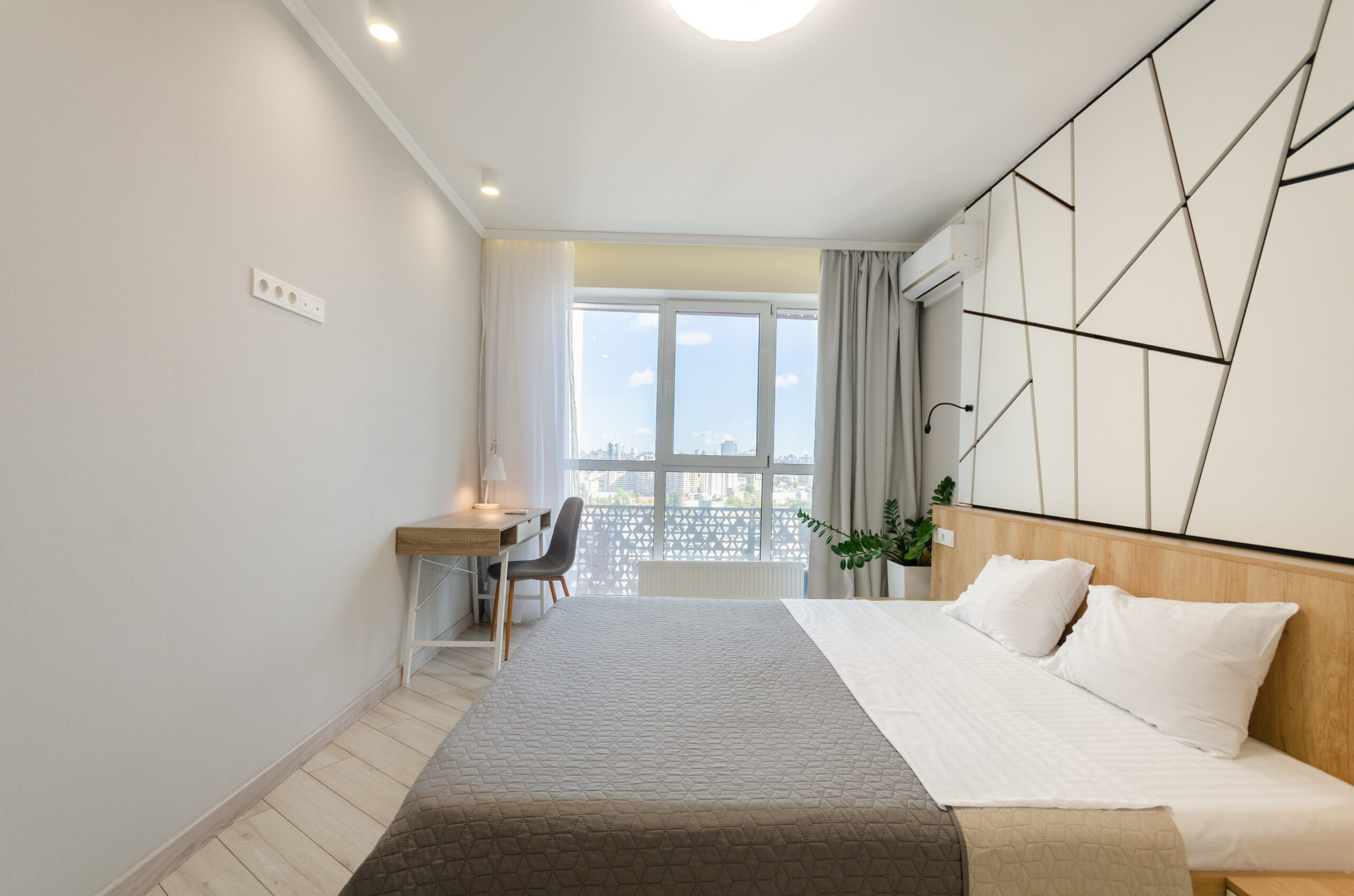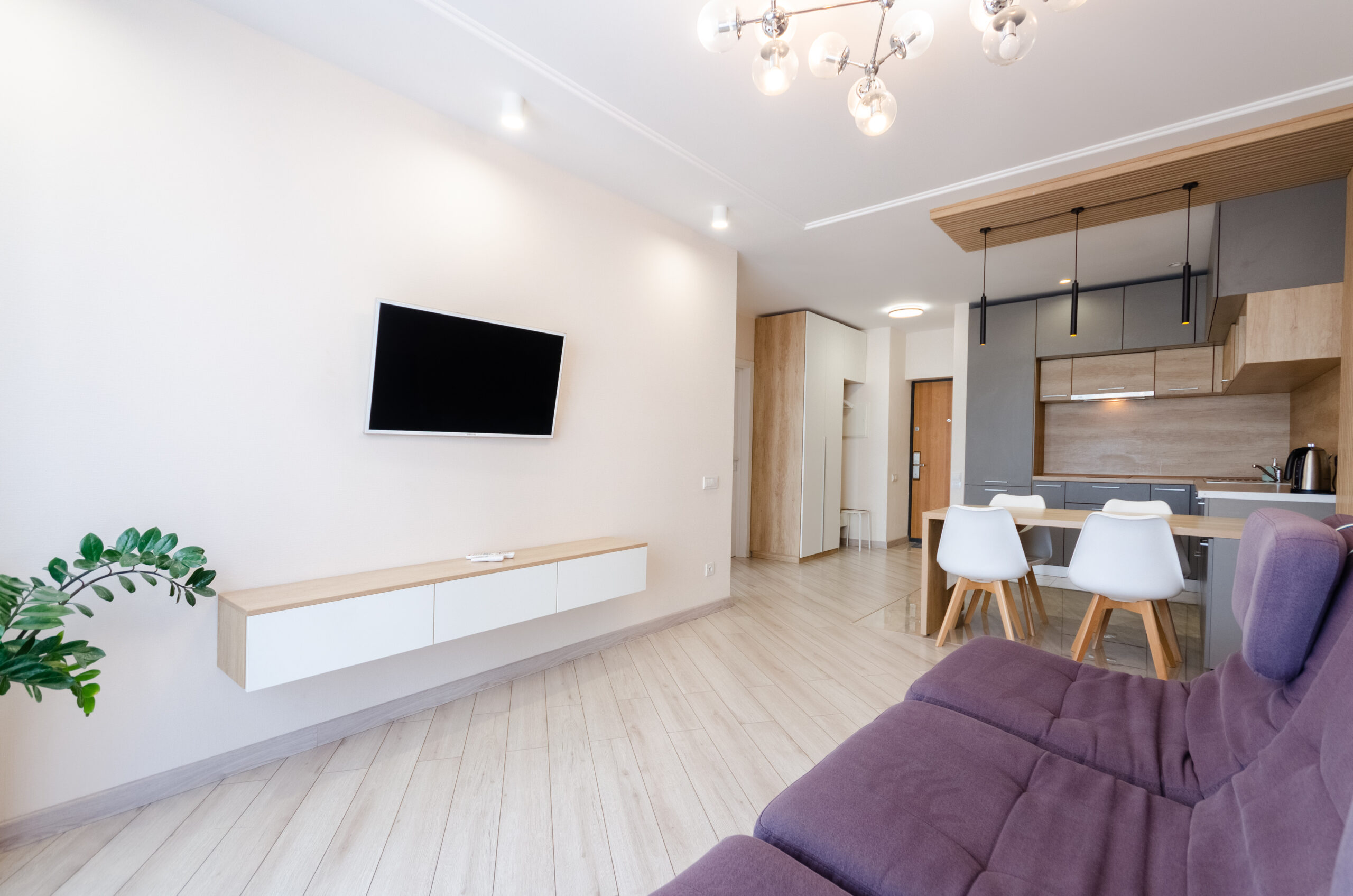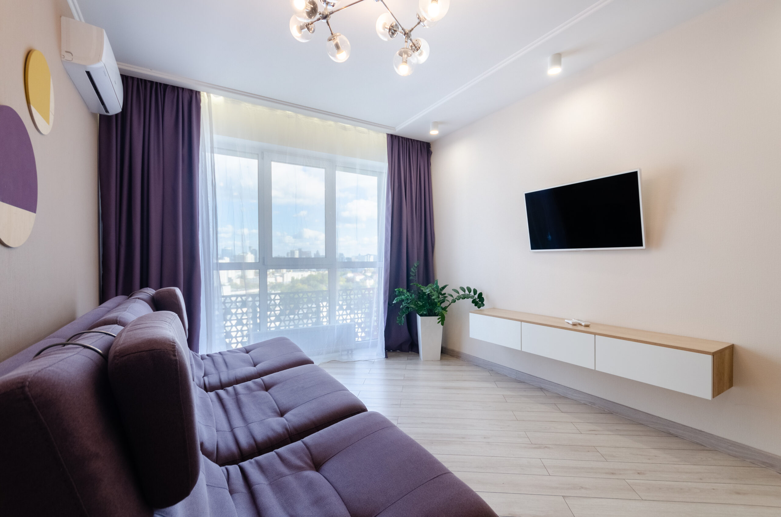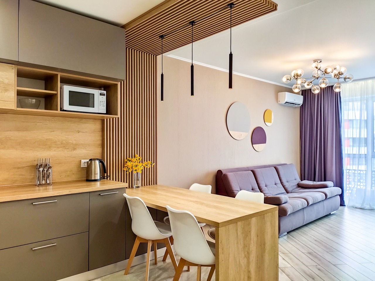 Stylish and modern apartment in the center of Kyiv in the business-class Kvartet residential complex with a view of Kyiv. The complex has round-the-clock security. There is an underground parking lot in the building. Convenient planning. A large, beautiful reception area, access system based on IP cards.