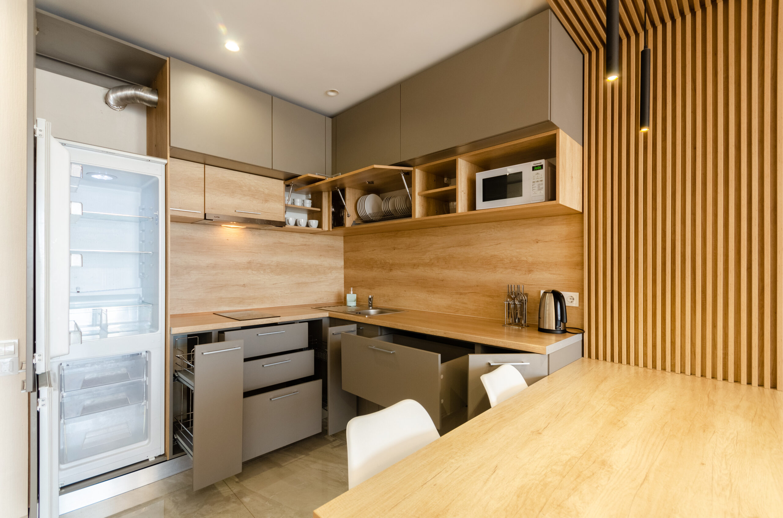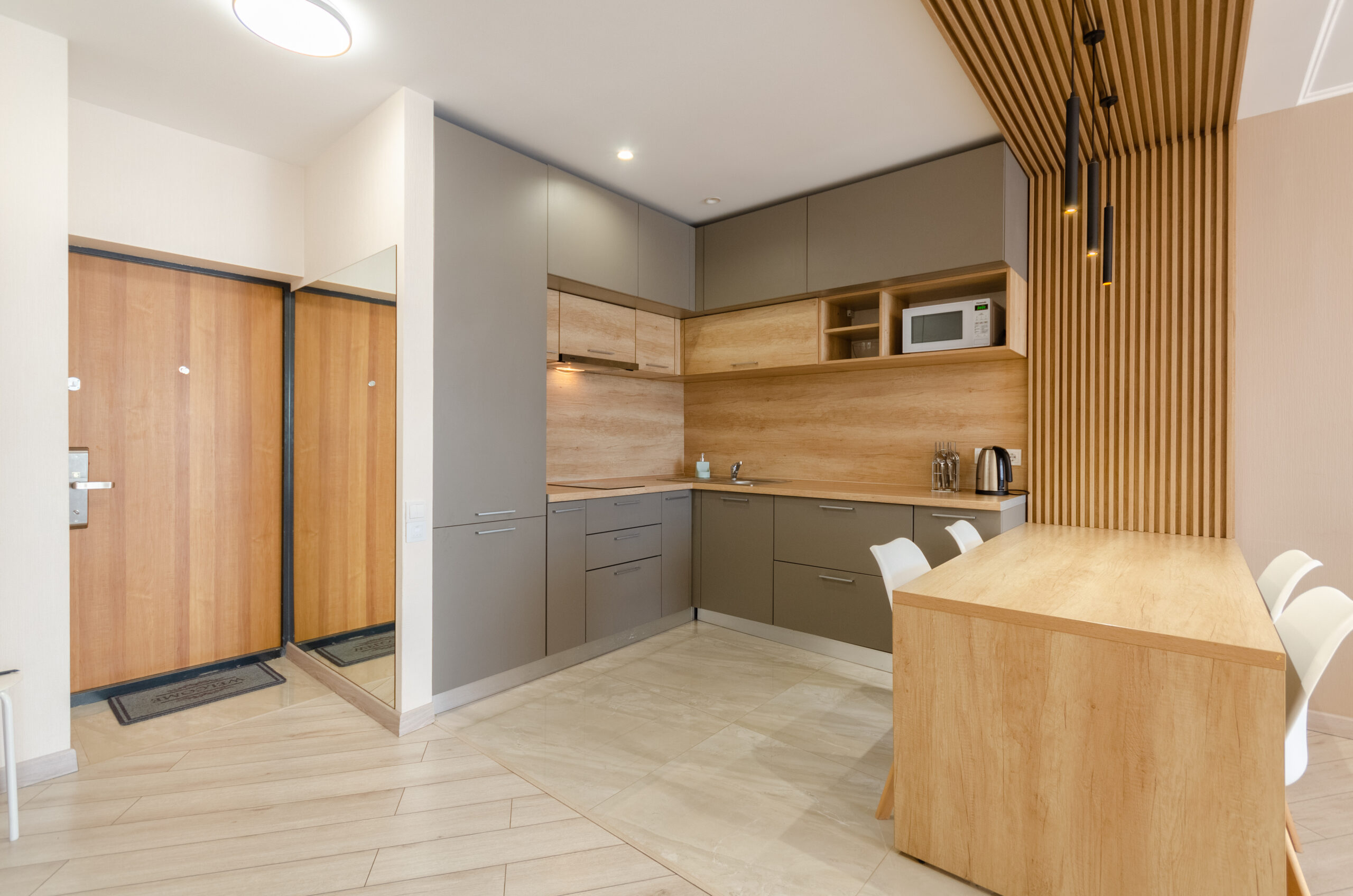 Within walking distance are the railway station, Leva Tolstoy Square, Zhilyanska street, Ultramarin shopping center, 101 Tower, Stadium, Kudryashova, Saksaganskogo street, Solomyansky park, Novus supermarket, KFC, McDonald’s, Velyka Kishenya.