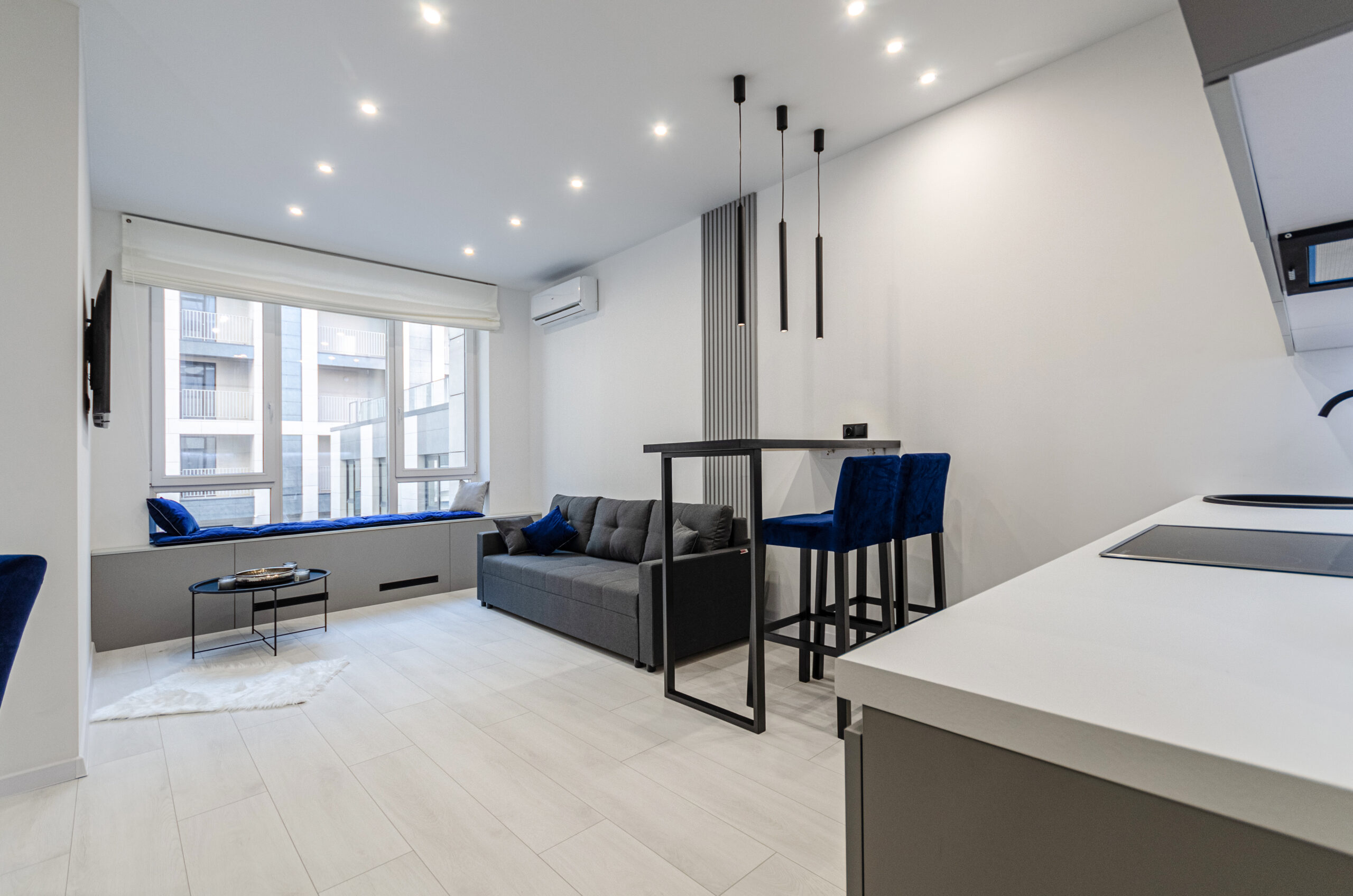 A spacious and comfortable apartment with modern renovation in the center of Kyiv, in the new Yaroslaviv Grad complex, built in 2020. Only after repair.The residential complex has round-the-clock security. There is an underground parking lot in the building.