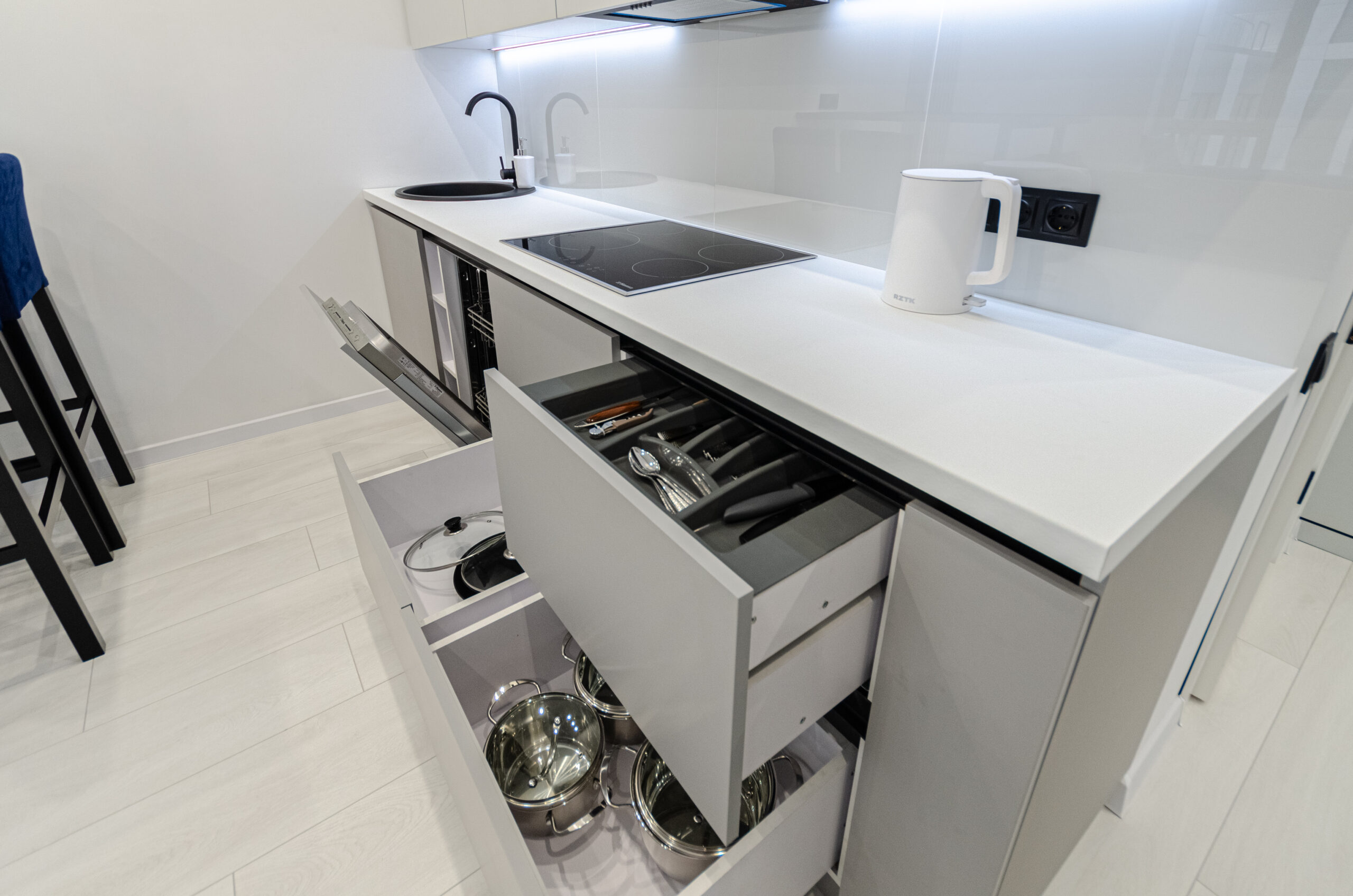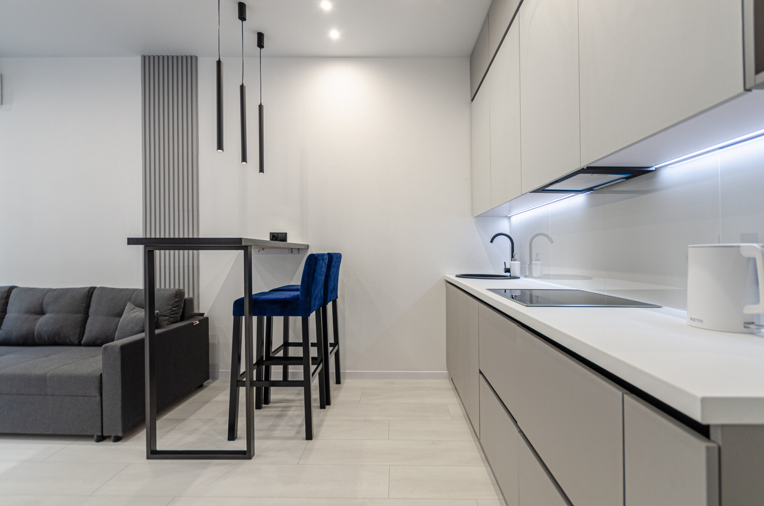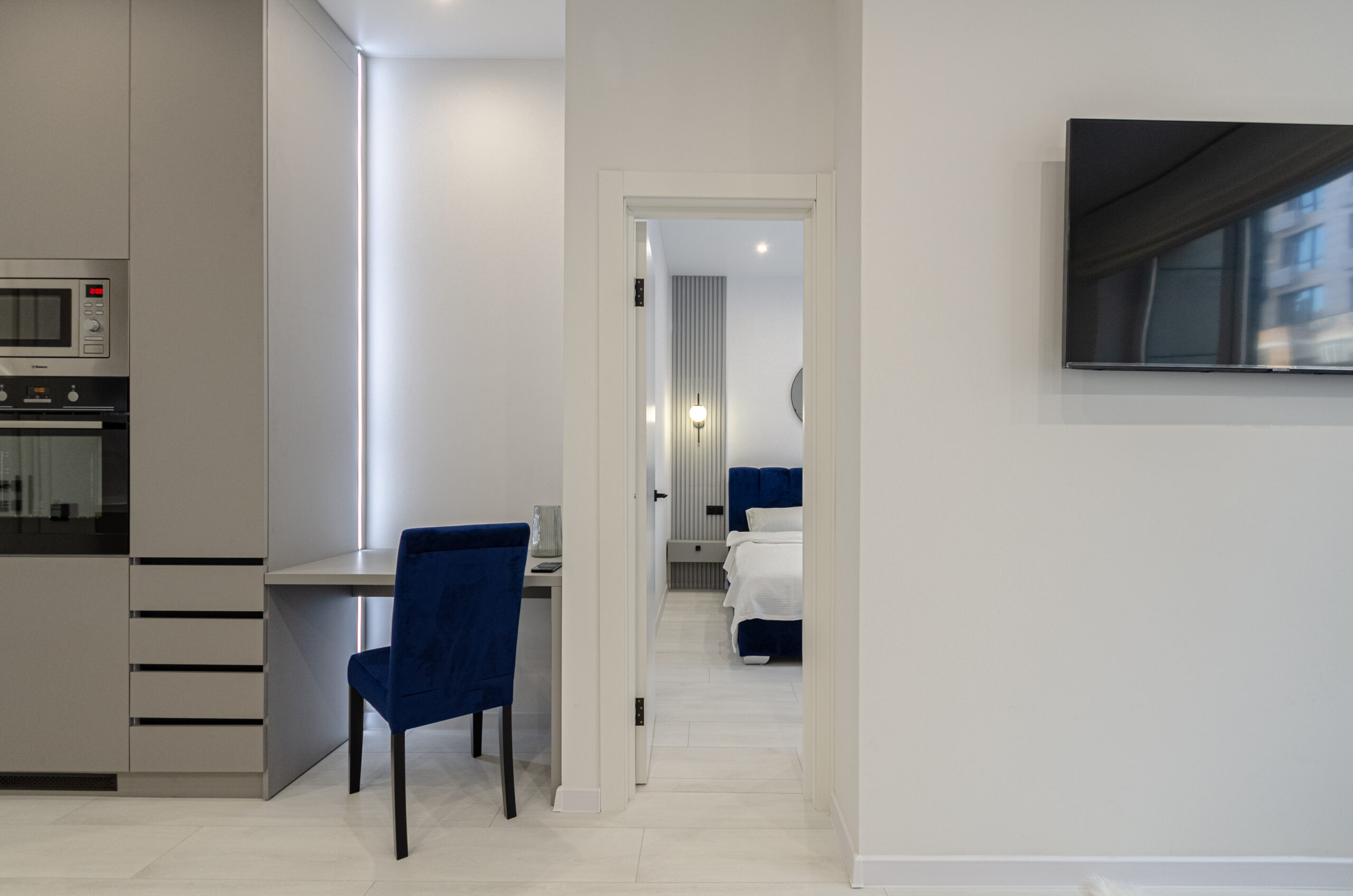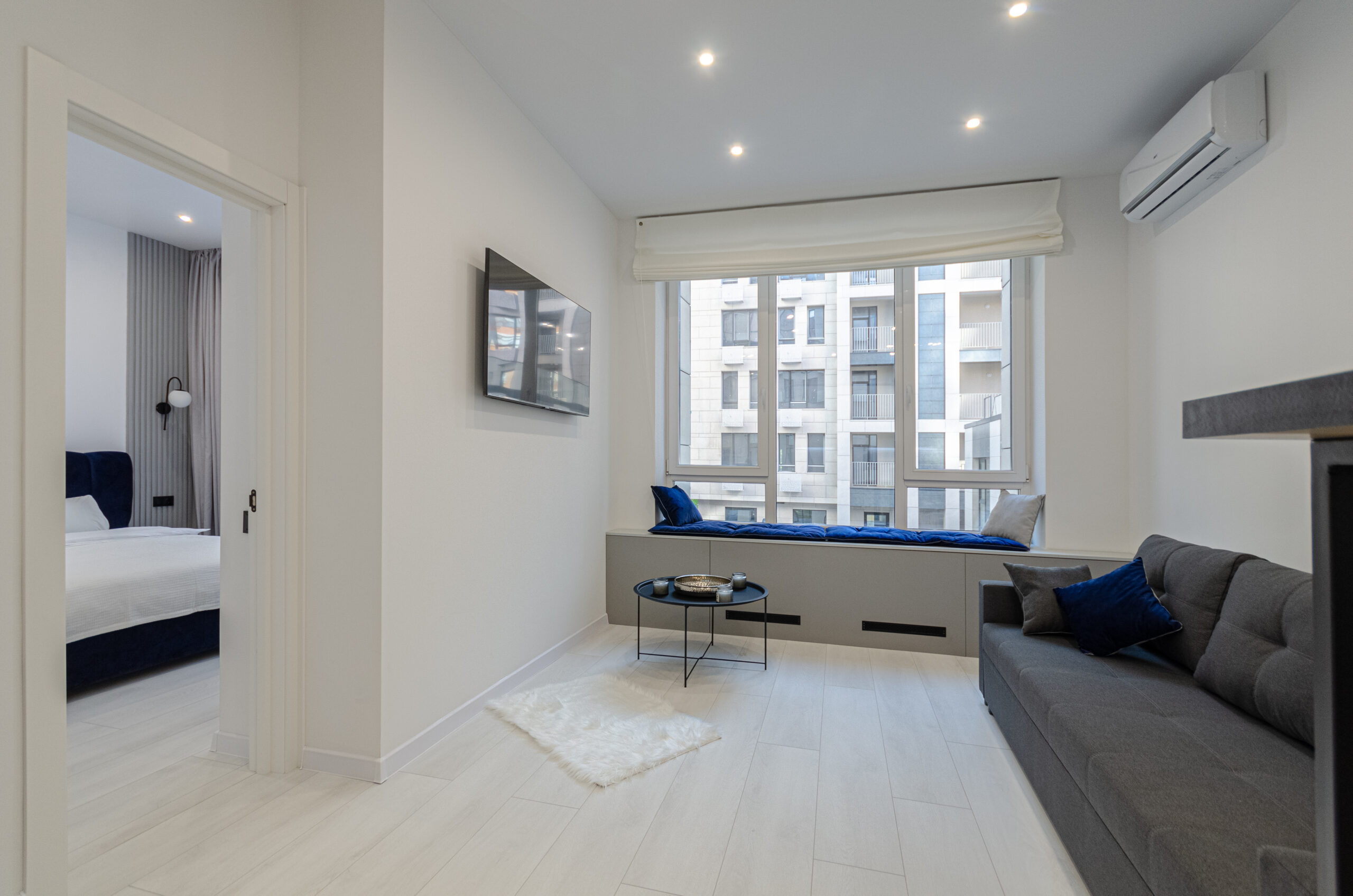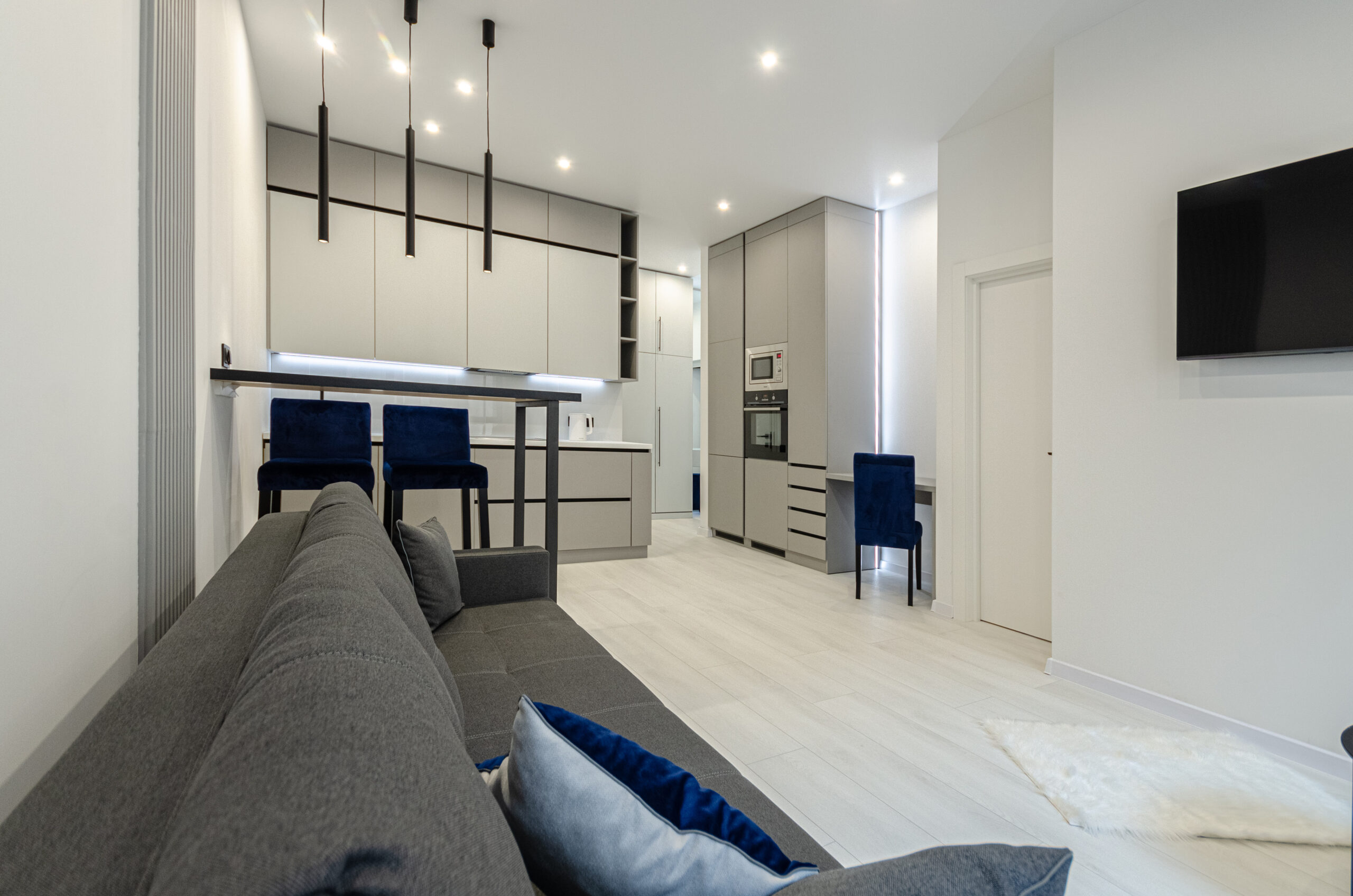 The apartment is located on the 2nd floor with an area of 45 m2, designed for 4 guests, has a living room-kitchen, a separate bedroom with a comfortable bed and a bathroom.The apartment has bedding, all the necessary dishes, small household appliances – everything for a comfortable stay for any period.