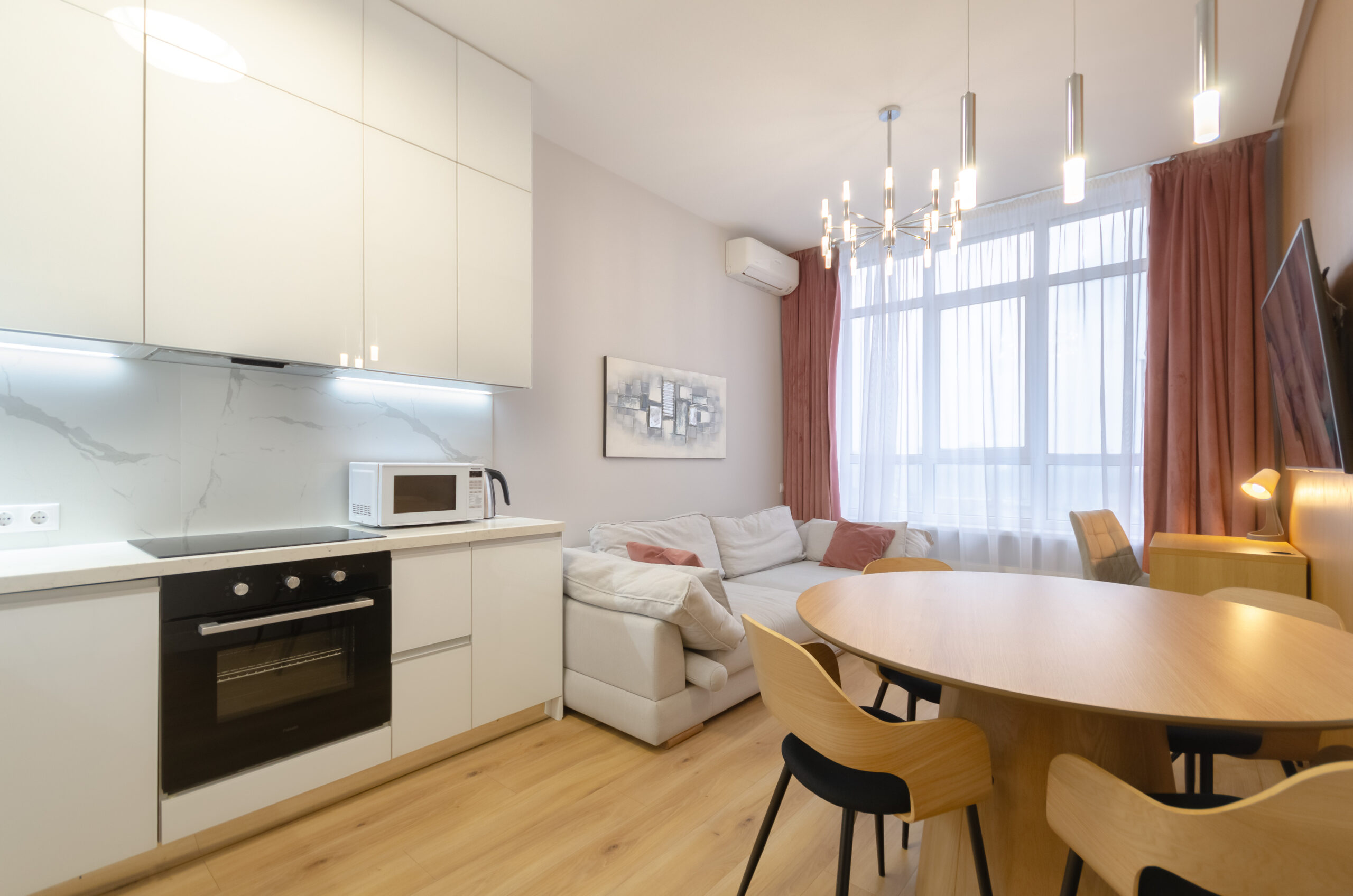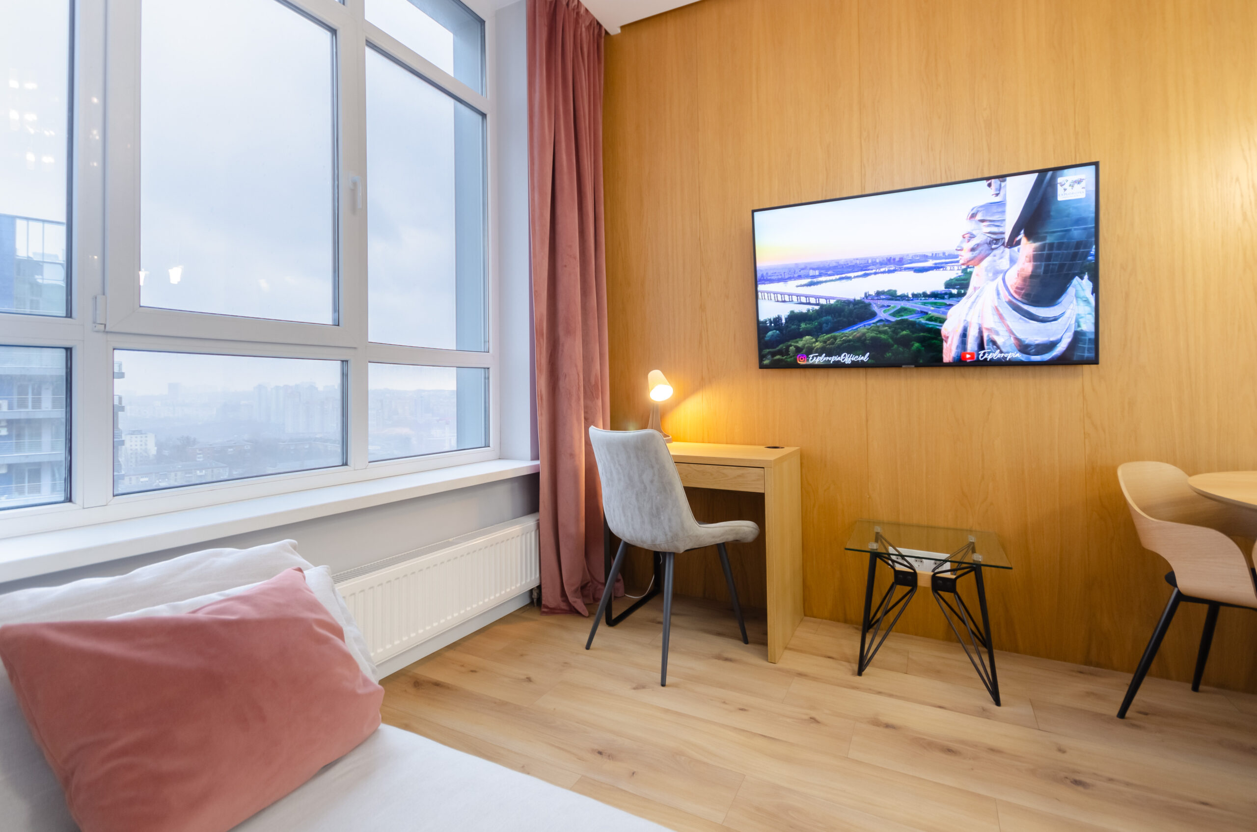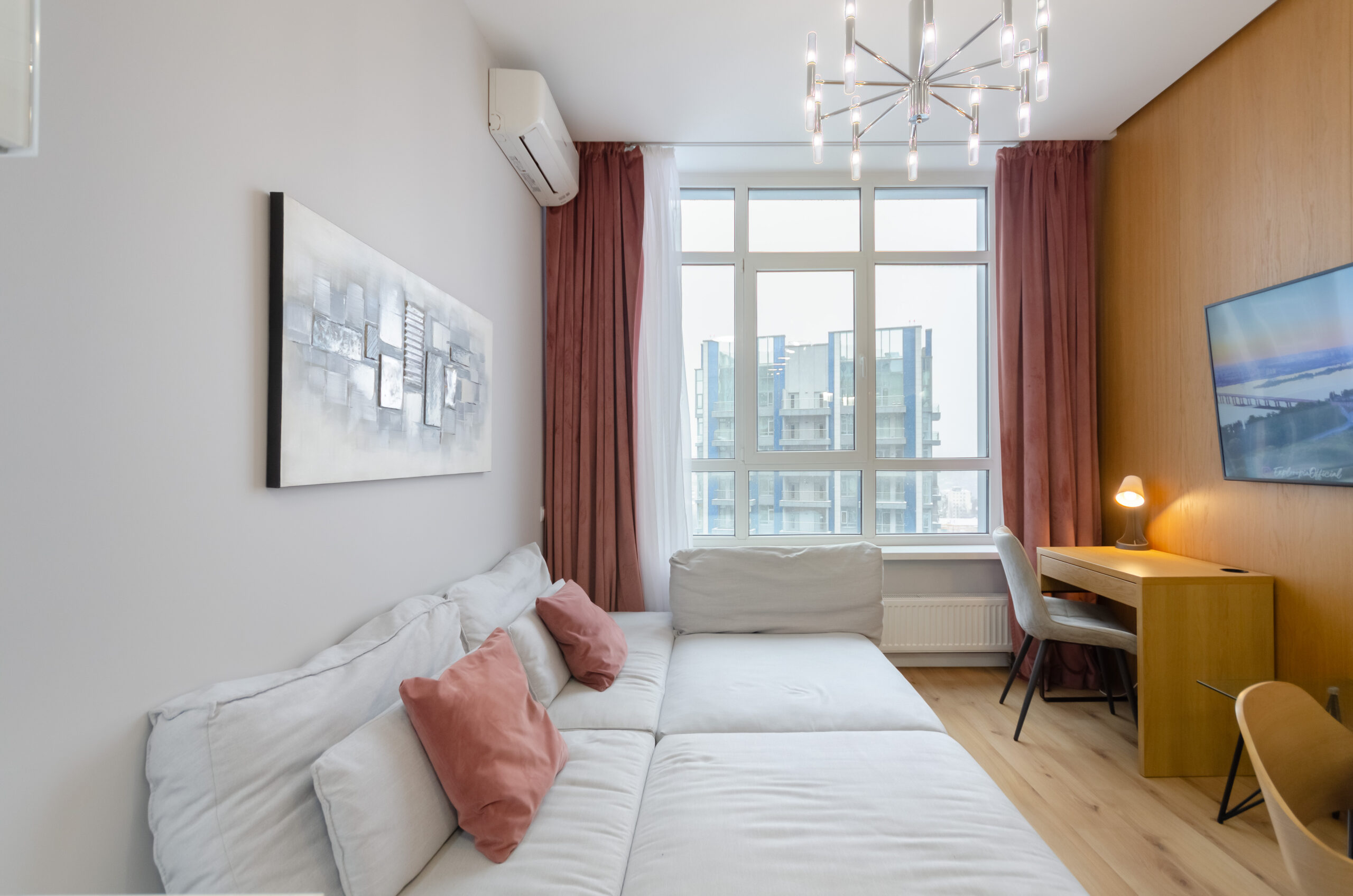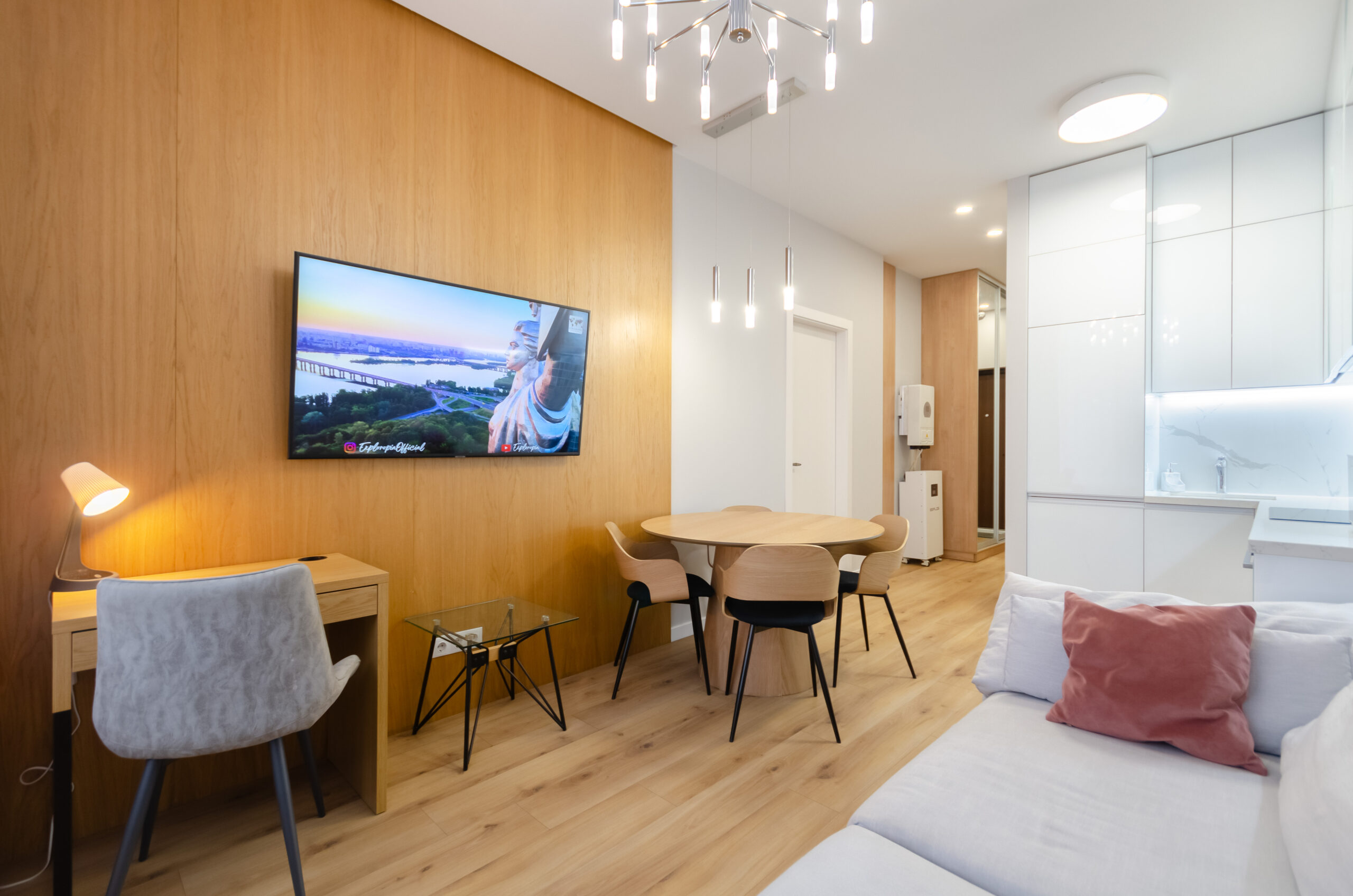 A bright, stylish apartment with a modern renovation and a view of Kyiv, located in the city center in the Central Park residential complex on John McCain Street 7 (formerly Ivan Kudri).