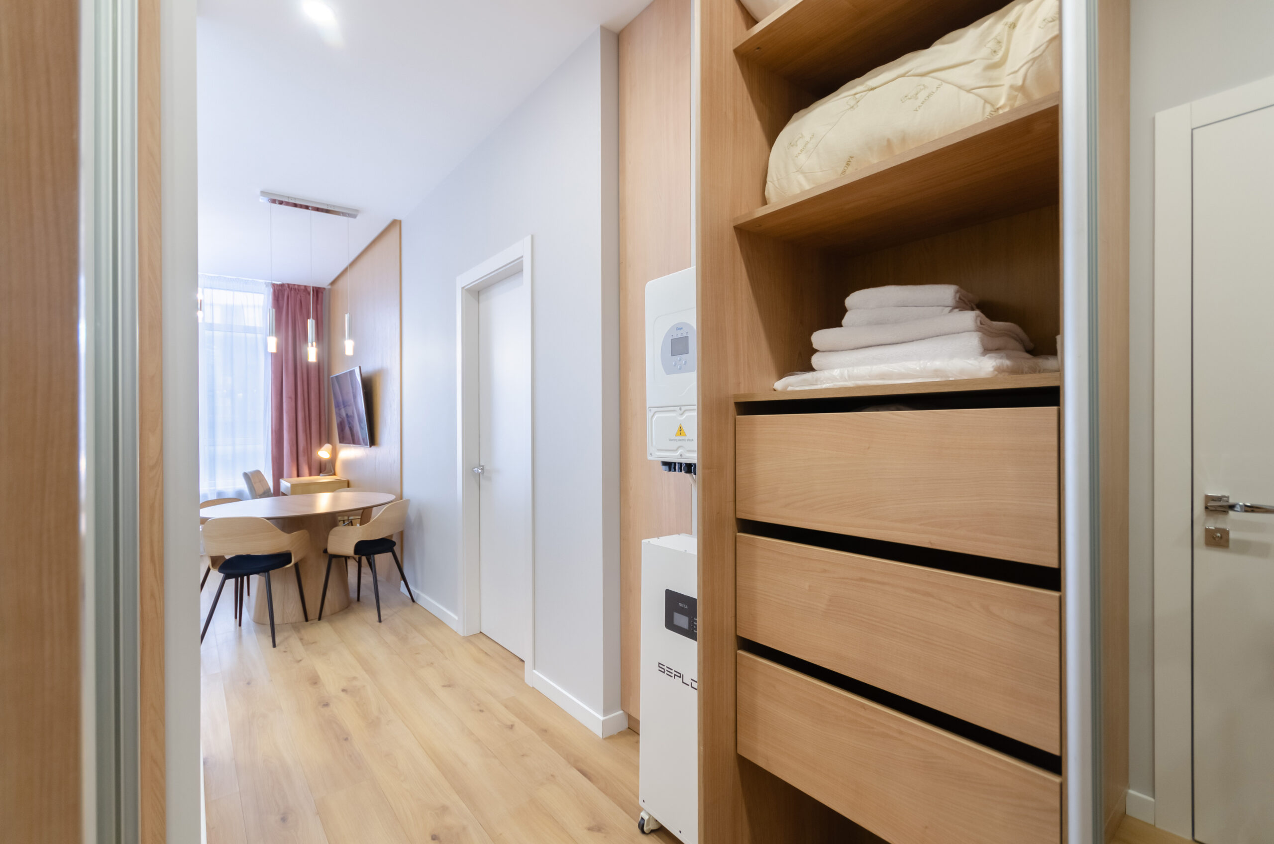 The apartment is located on the 19th floor, with an area of 50 m2, with a separate bedroom, a living room including a kitchen, a bathroom, and a balcony.The apartment is fully equipped with everything necessary for a comfortable stay. We offer a car parking service for an additional fee. We kindly ask you to book a parking space in advance, as the number of available spaces is limited!