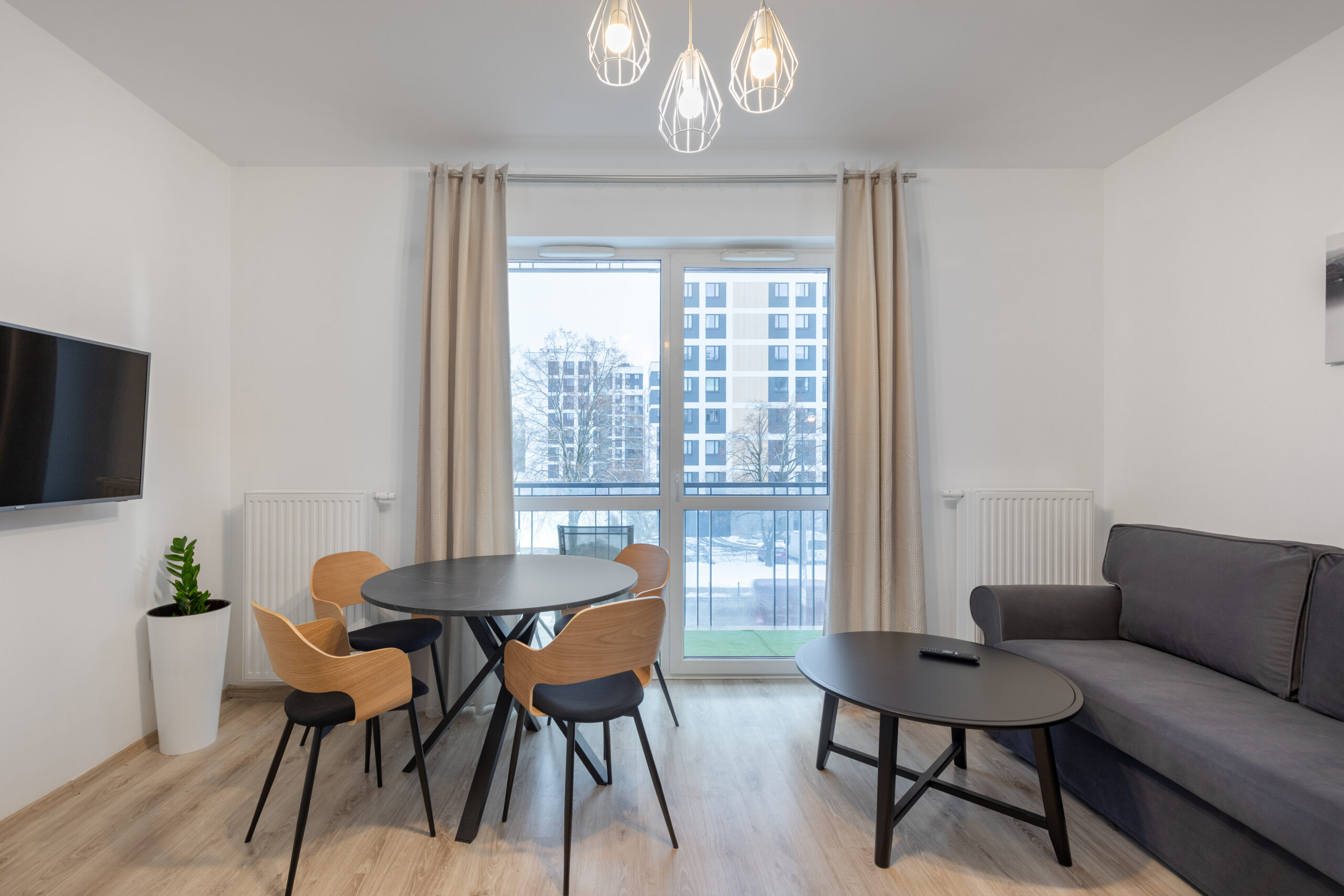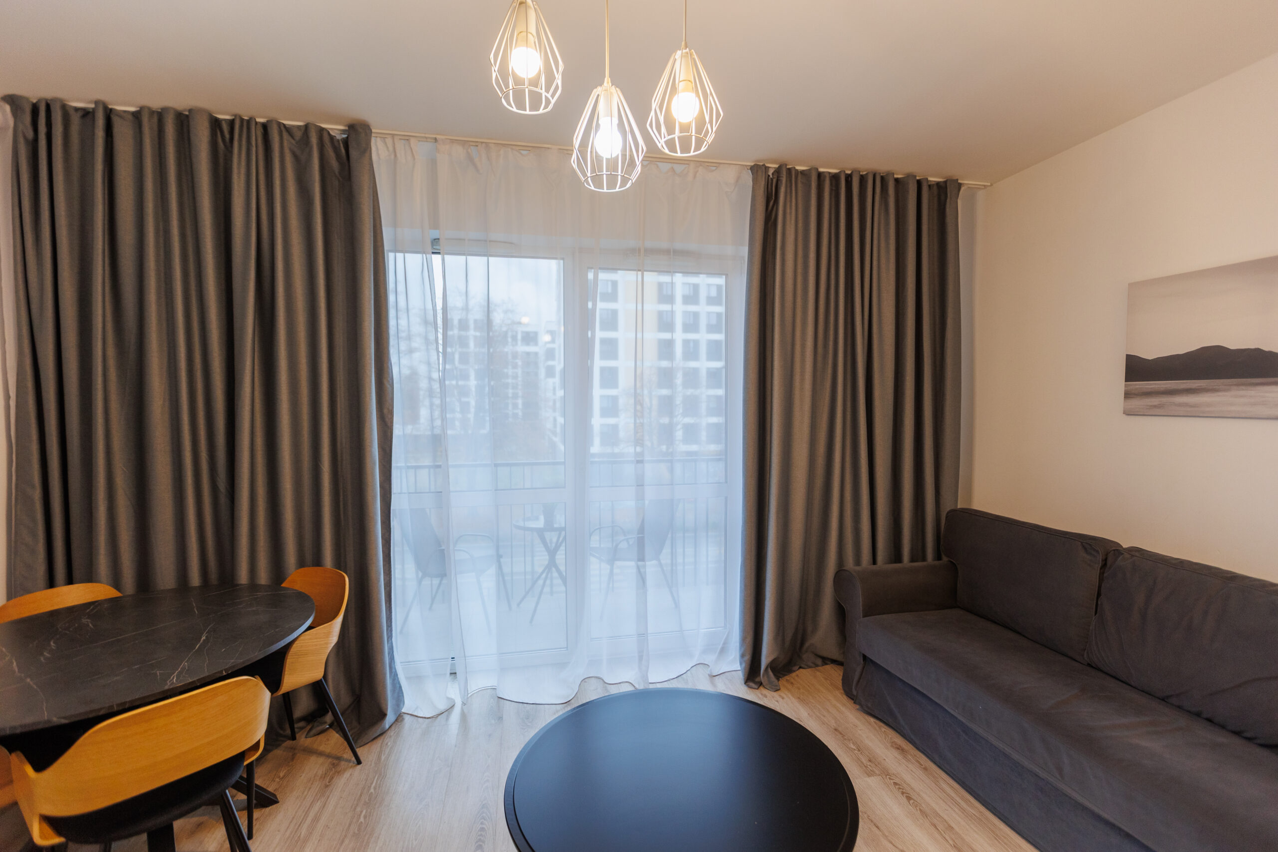 New stylish apartment in Wola district of Warsaw, located on the left bank of the Vistula The apartment is located on the 2nd floor in new building.