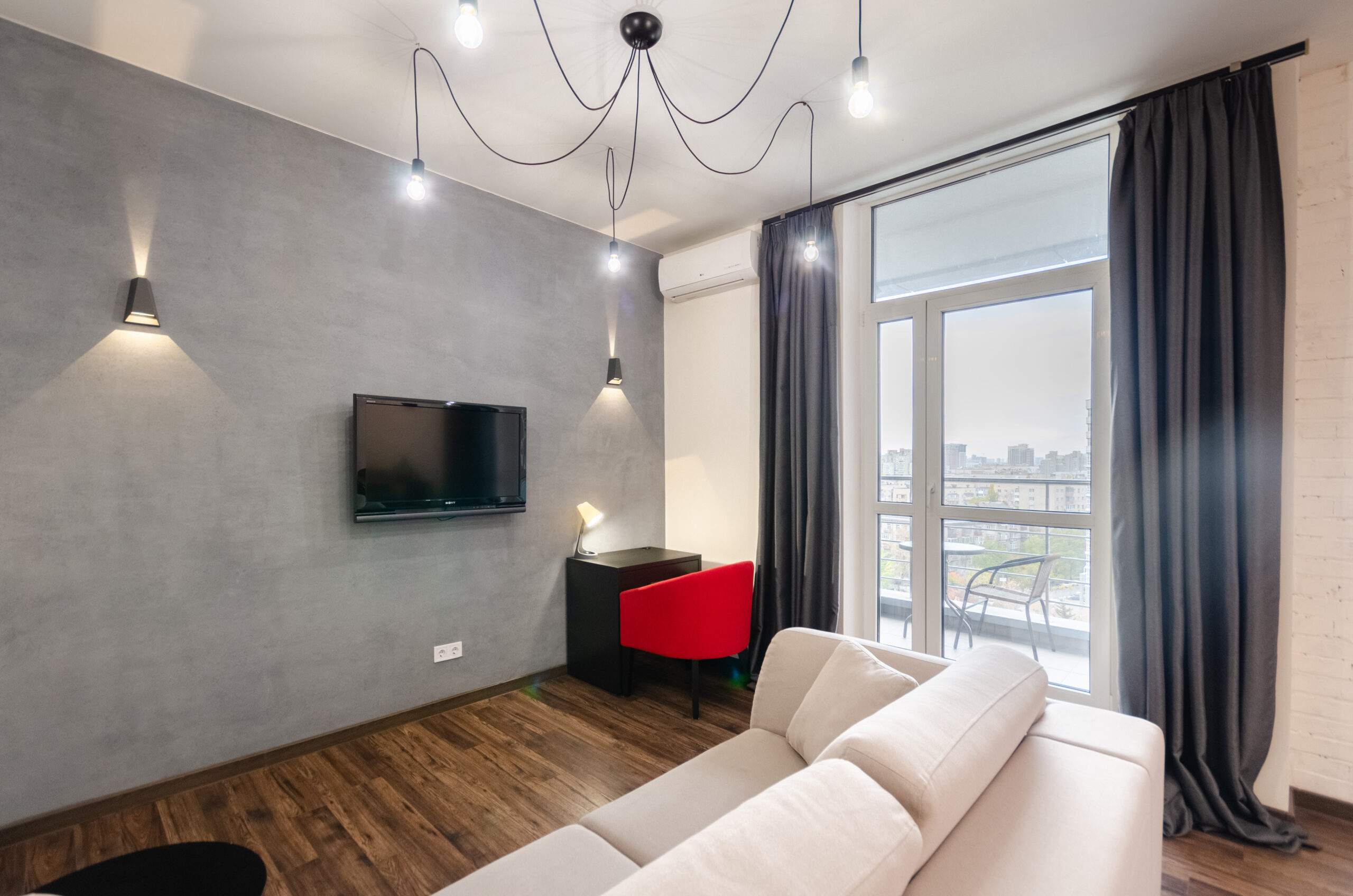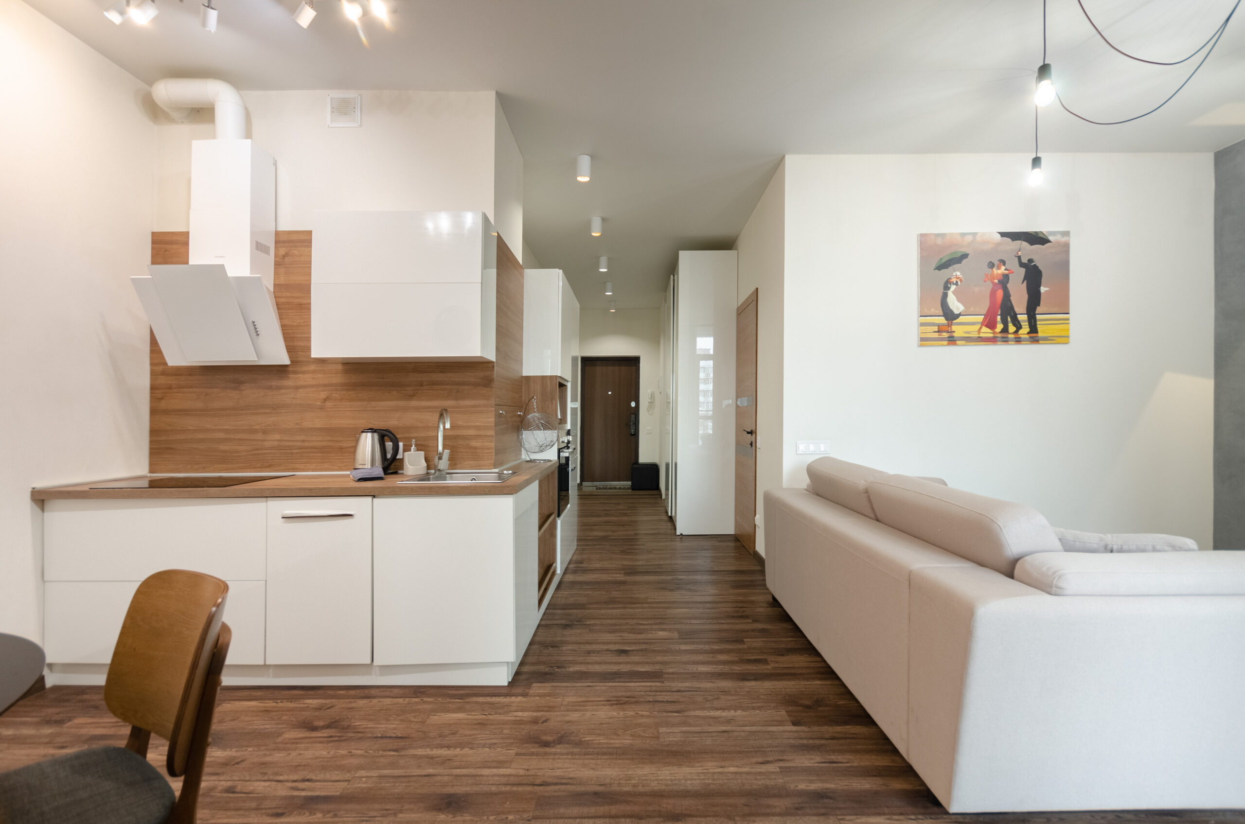 A bright, stylish apartment with a designer renovation is located in the city center in the “Central Park” residential complex on John McCain Street 7 (formerly Ivan Kudri).