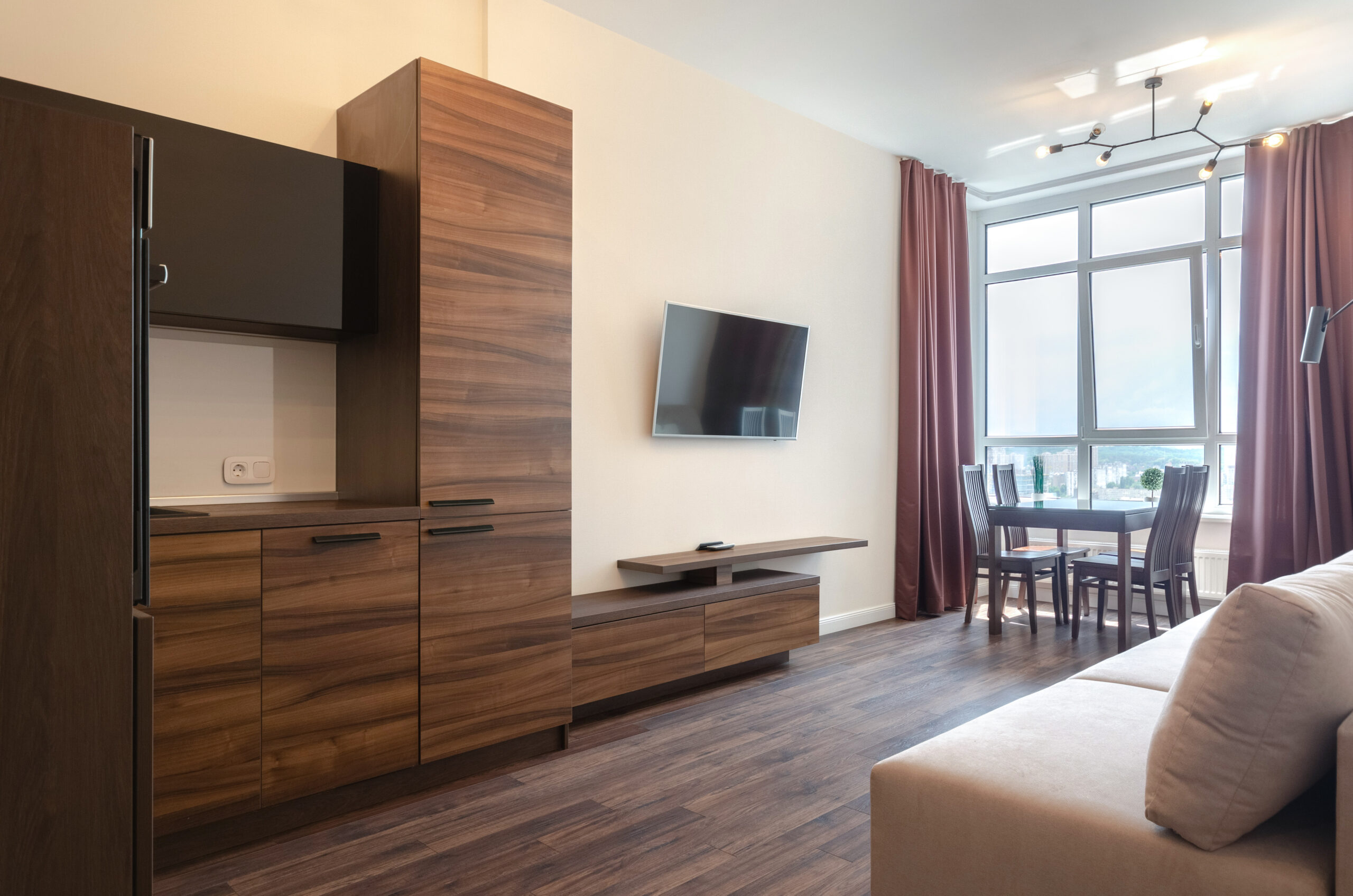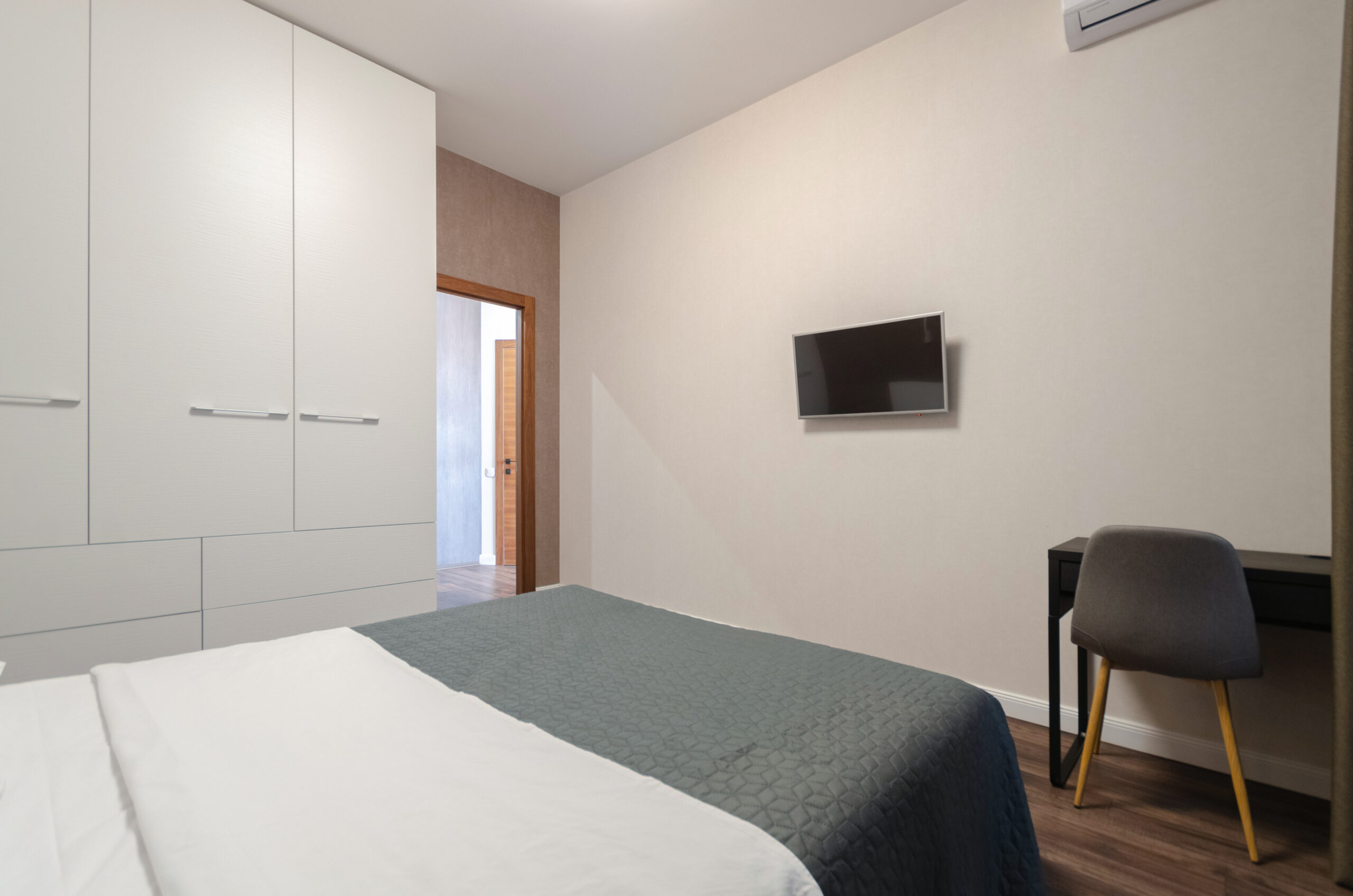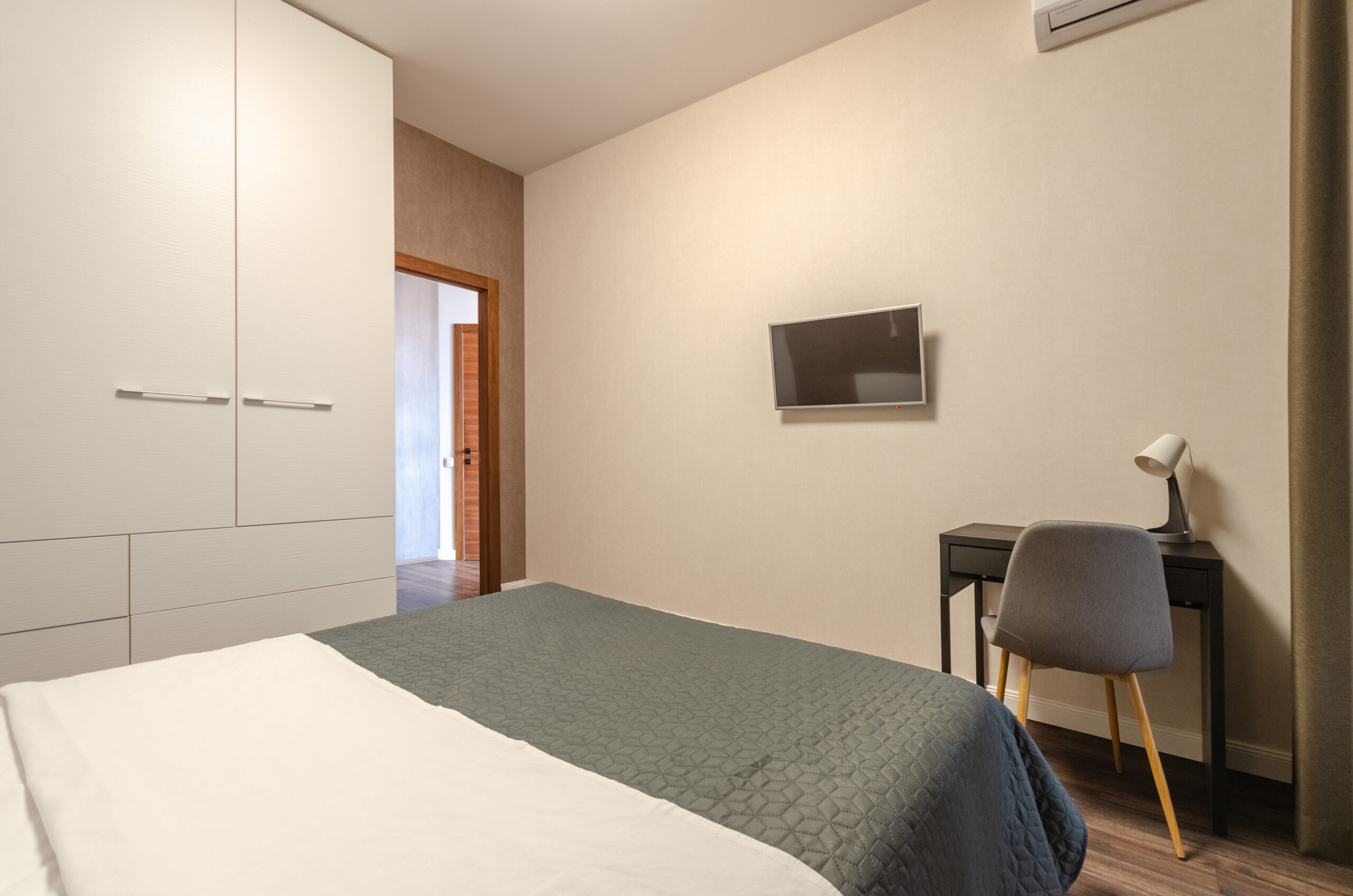 The apartment is located on the 15th floor, with an area of 60 m2, with a separate bedroom, a living room-kitchen, a bathroom, and a balcony with a wonderful view. It is fully equipped with everything necessary for a comfortable stay.