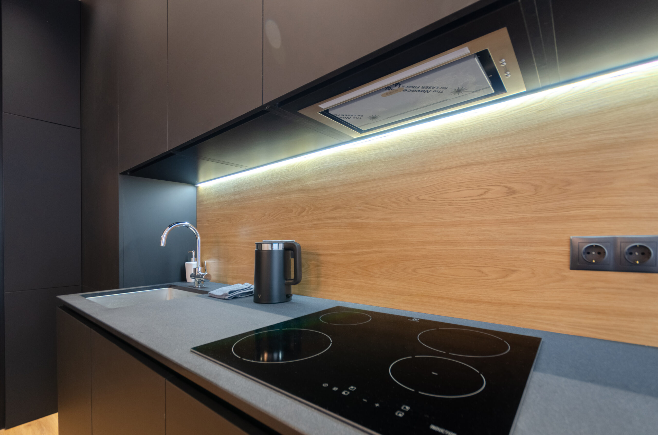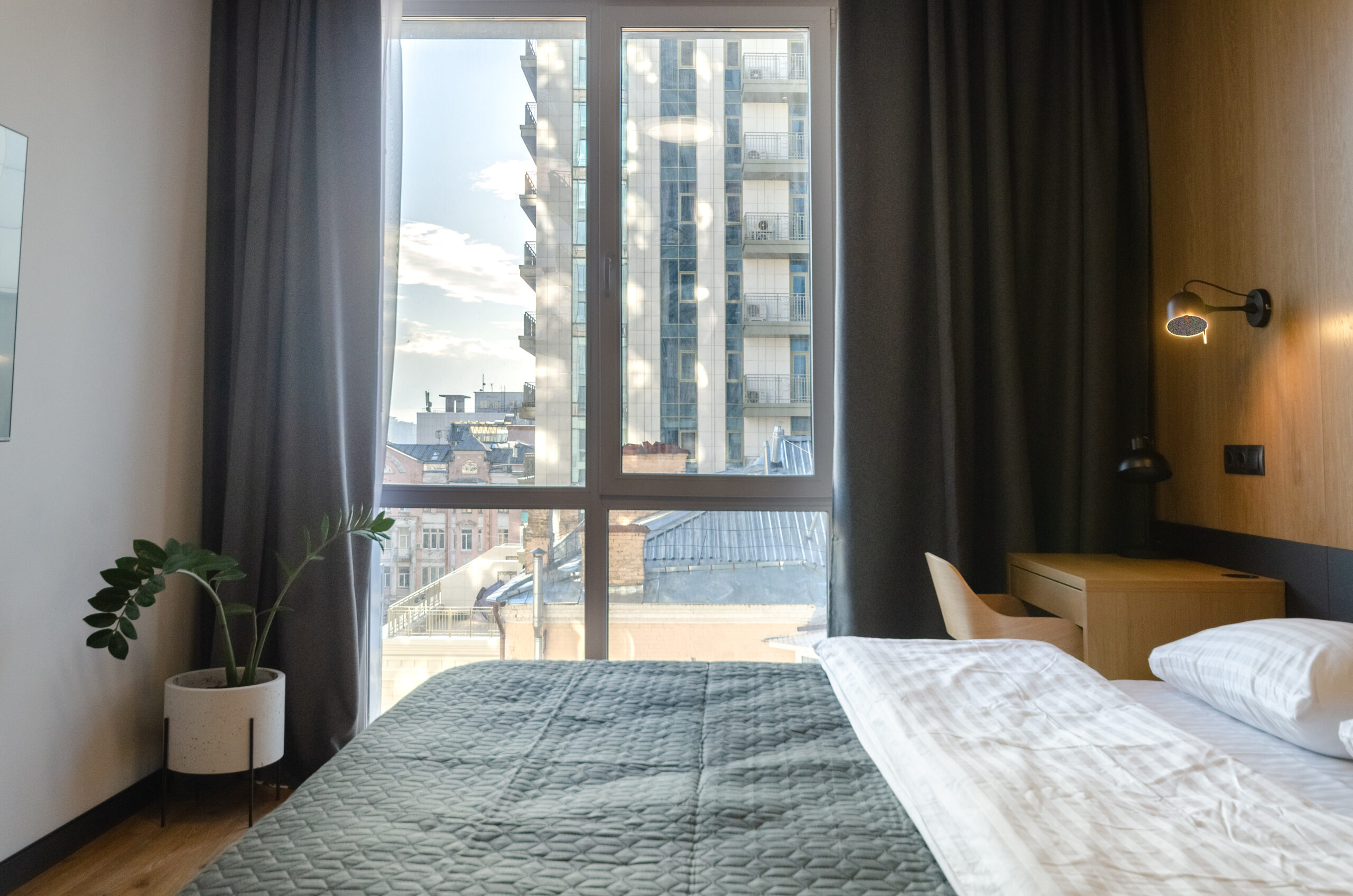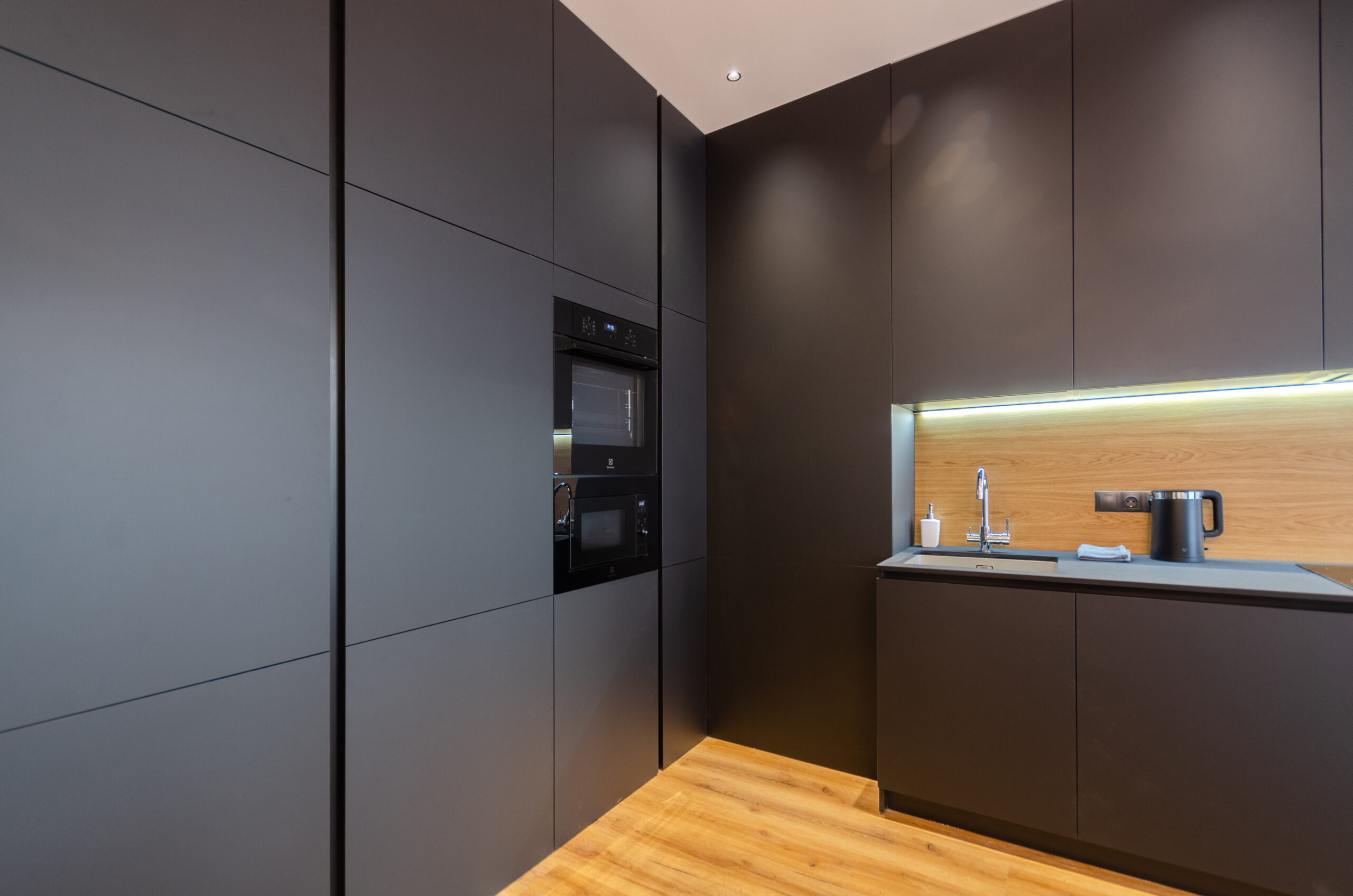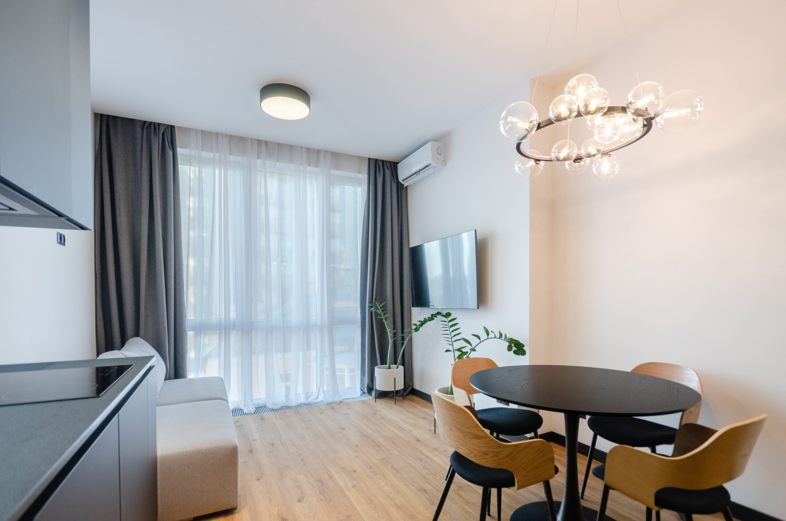 The apartment has bedding, all the necessary dishes, small household appliances – everything for a comfortable stay for any period.