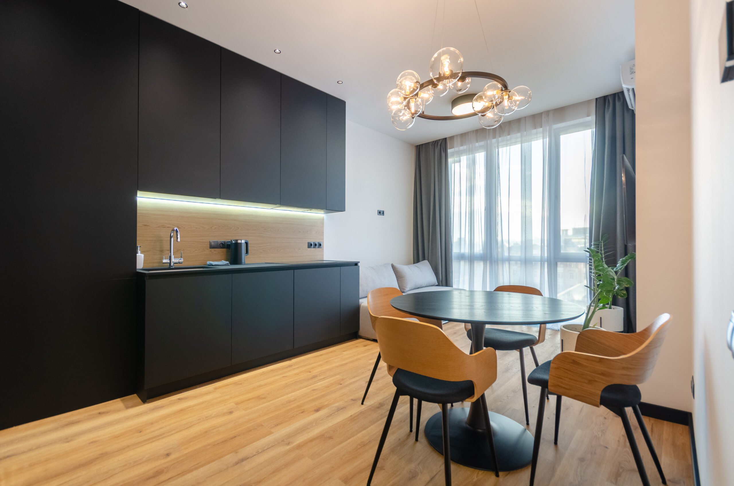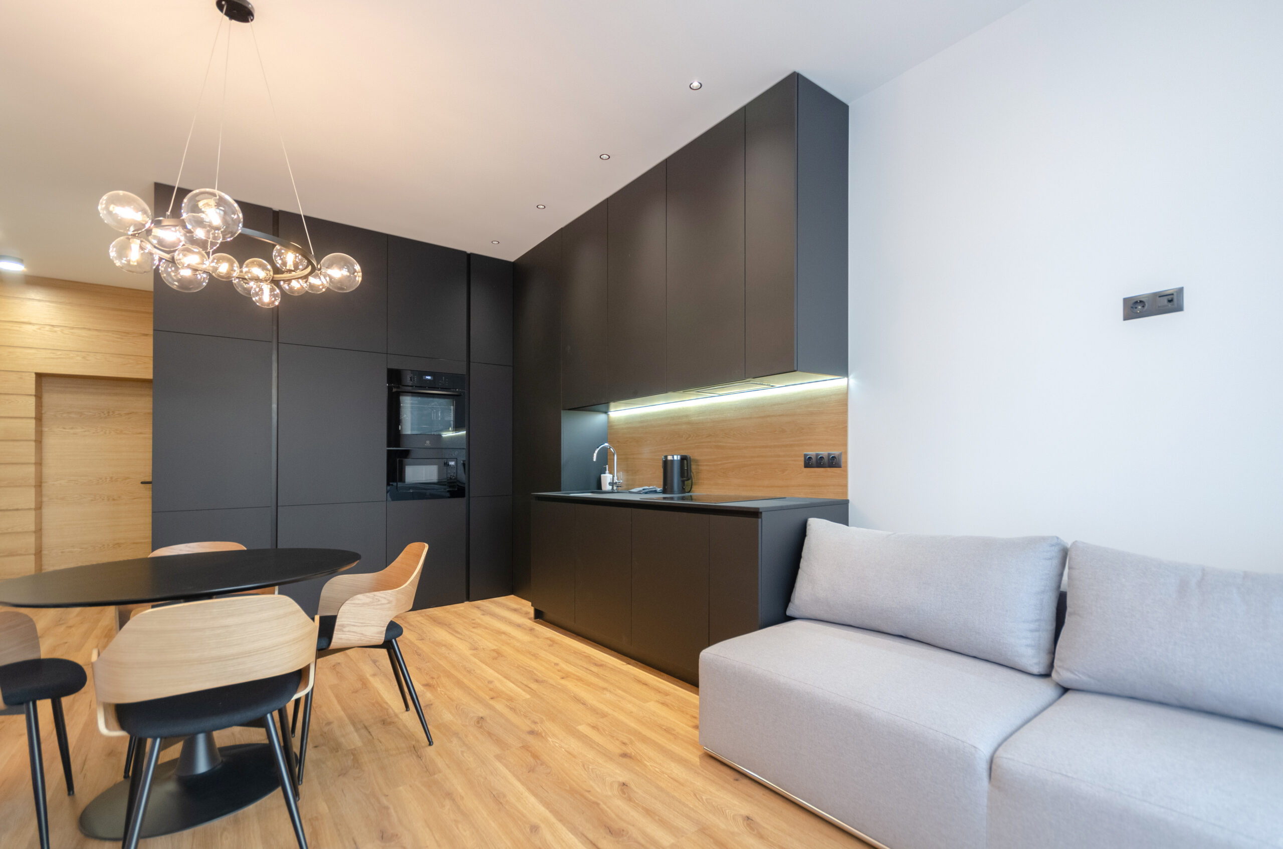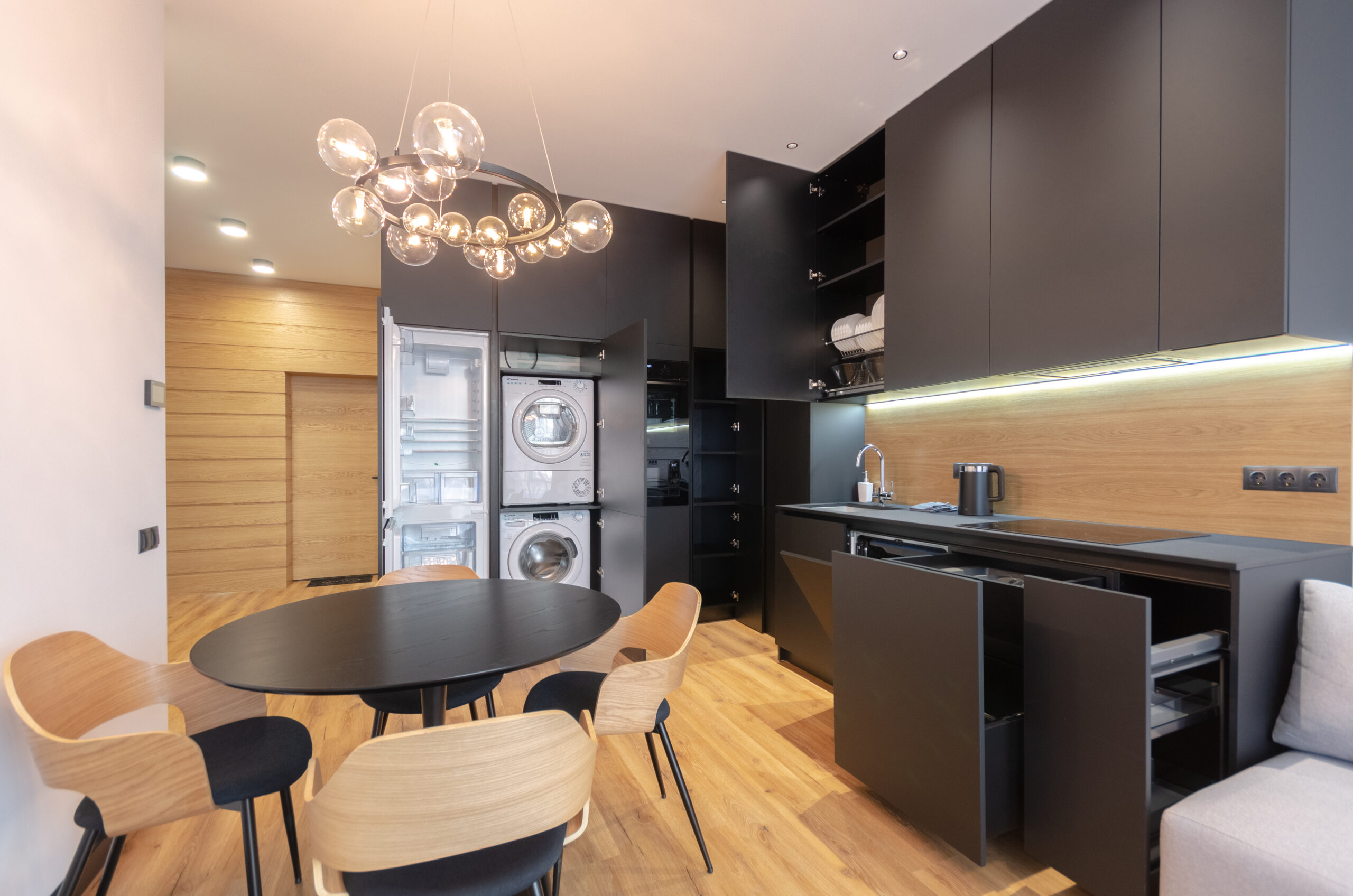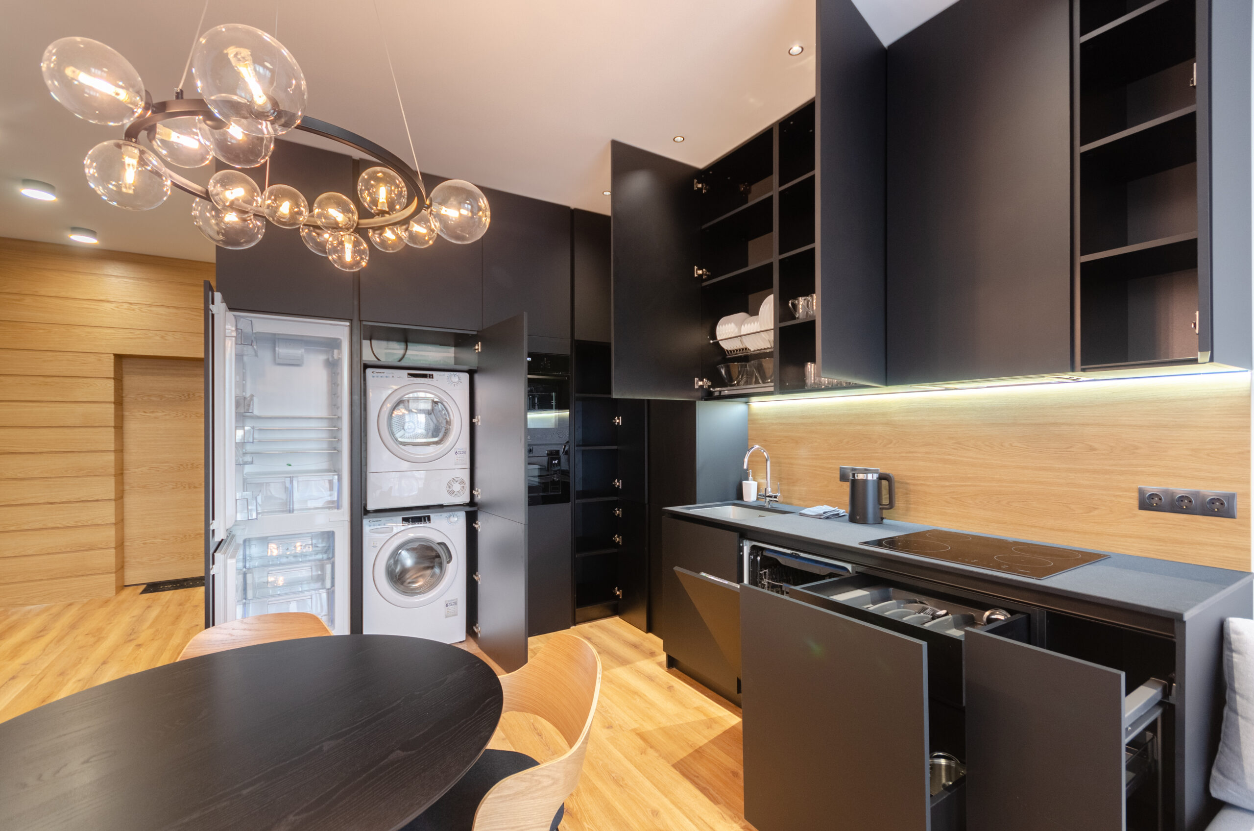 The apartment has bedding, all the necessary dishes, small household appliances – everything for a comfortable stay for any period.