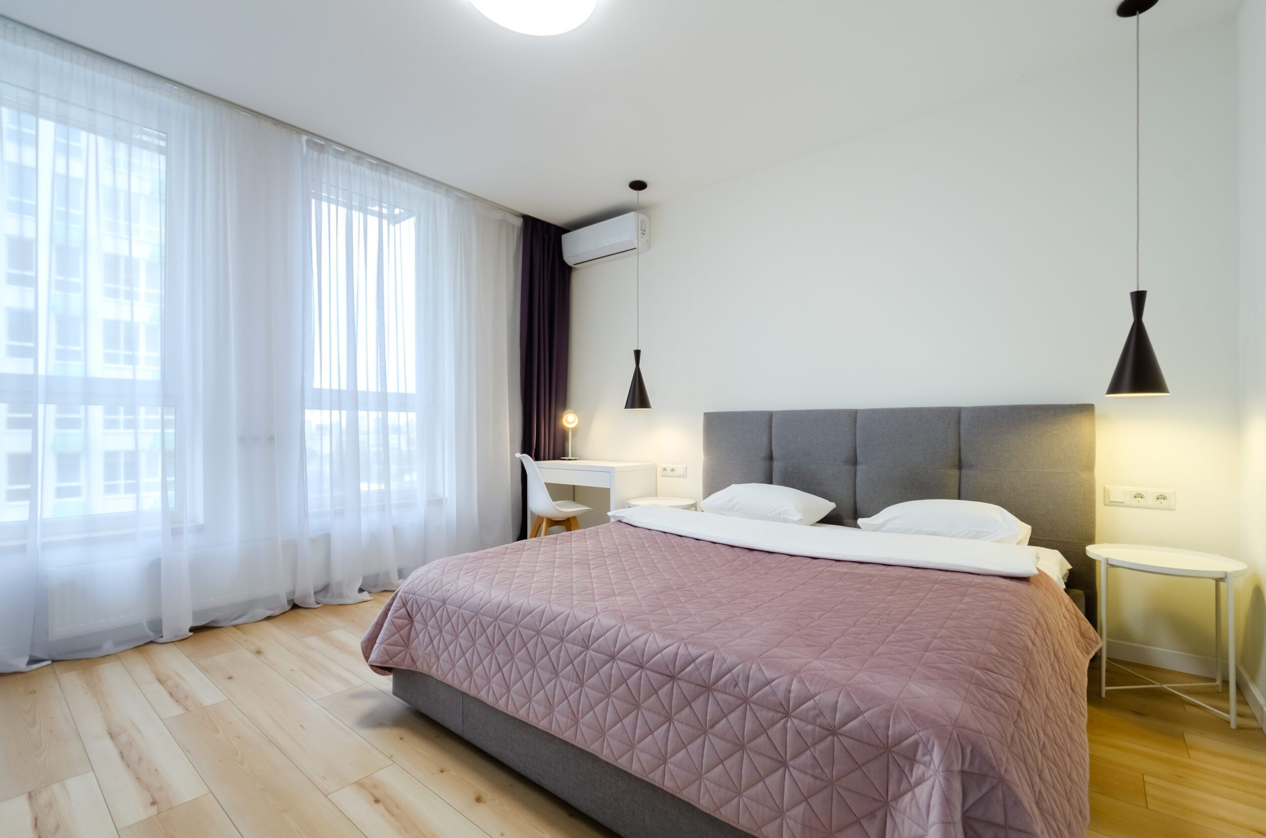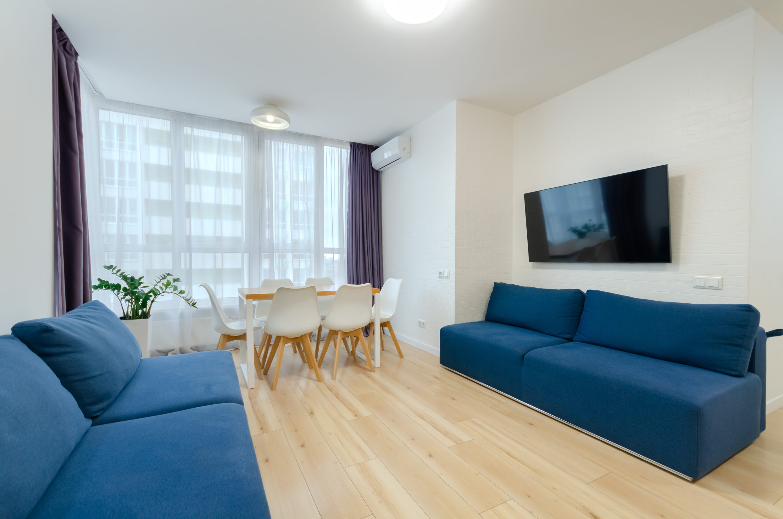 A new apartment in the Nyvky Park residential complex. Beautiful view from the window. Residential complex of closed type, according to the principle of a city within a city. The territory is guarded, there are shops, salons, banks, restaurants, cafes on the territory of the complex. There is a new playground in the yard.
