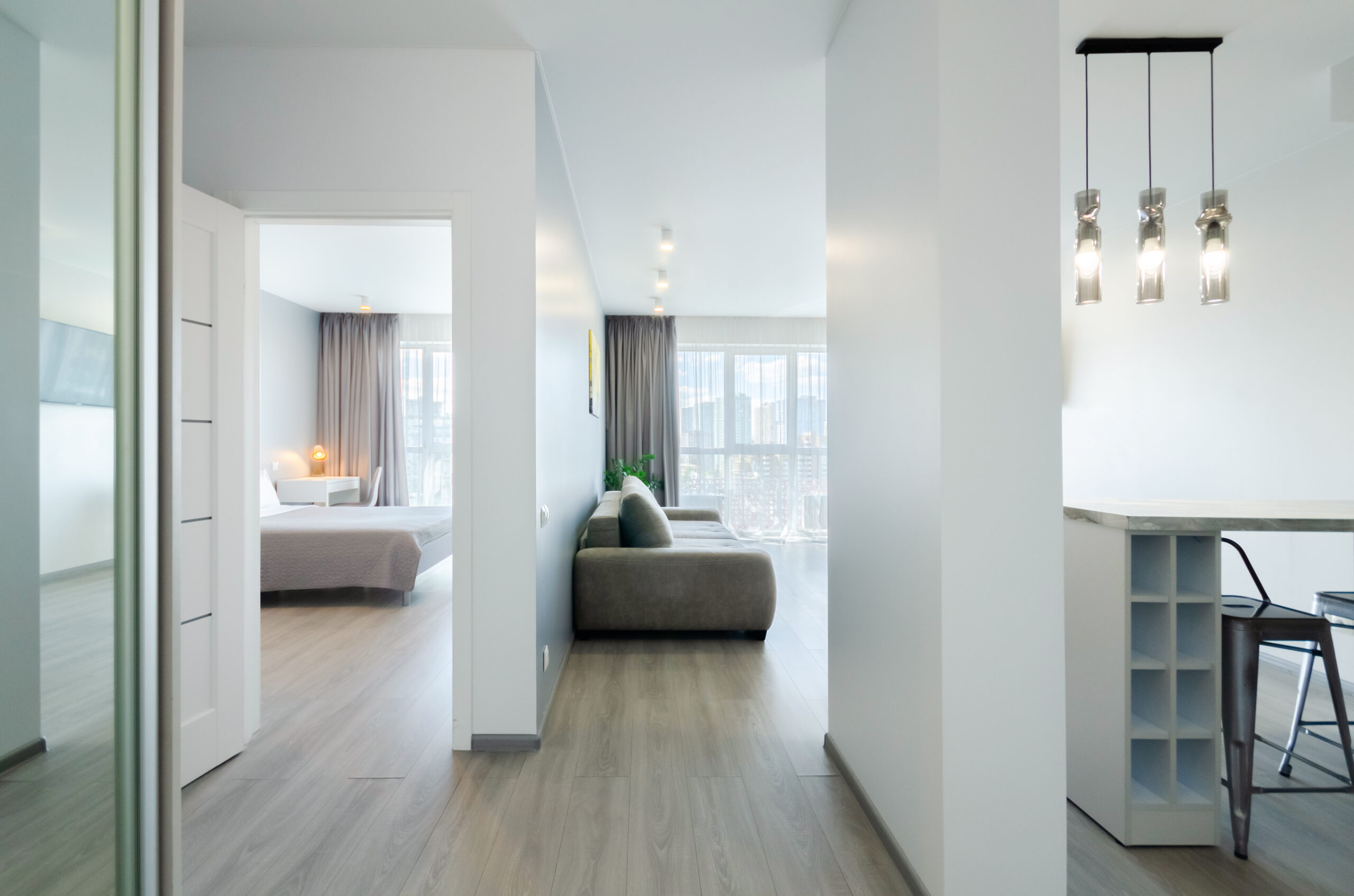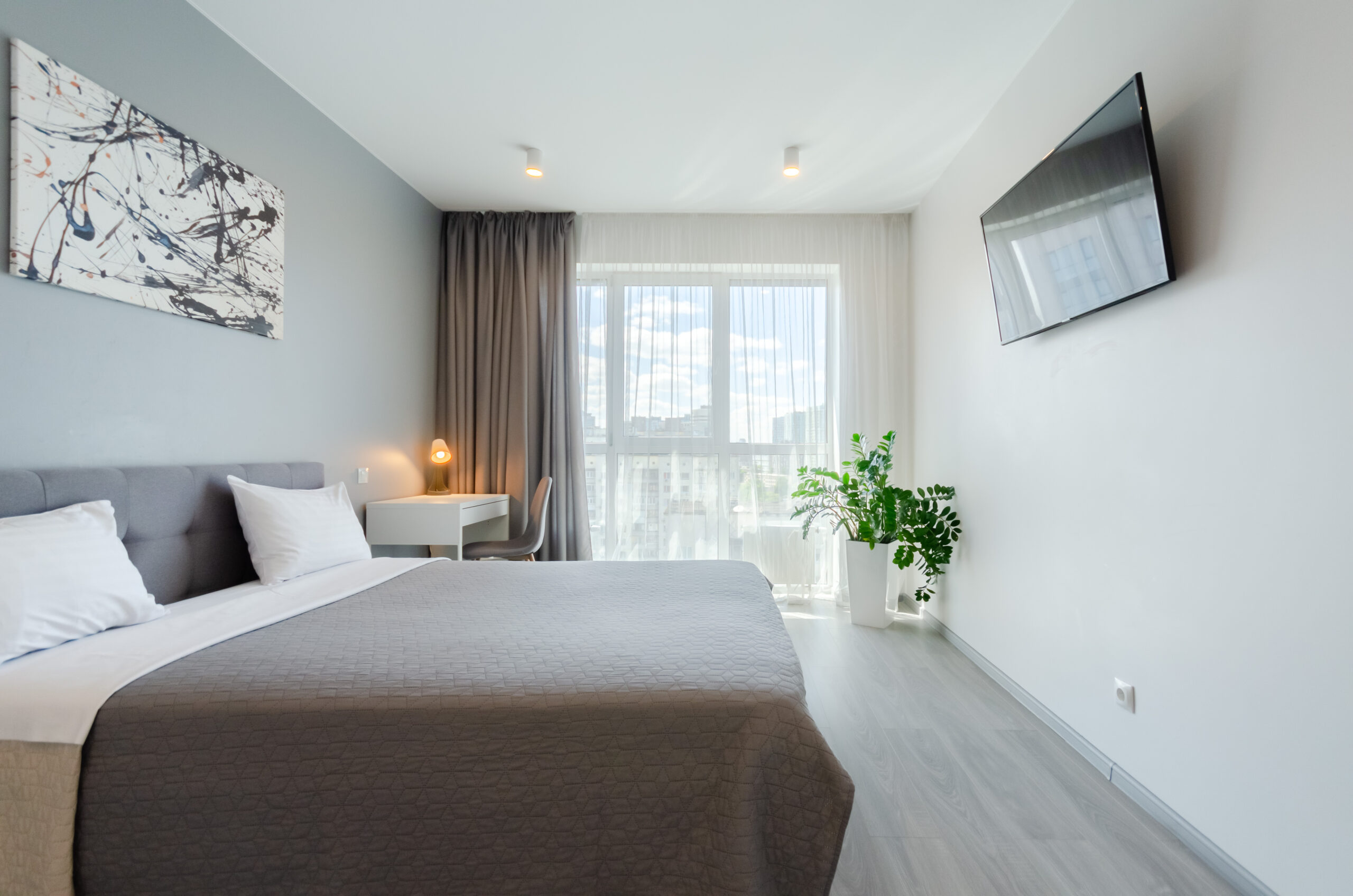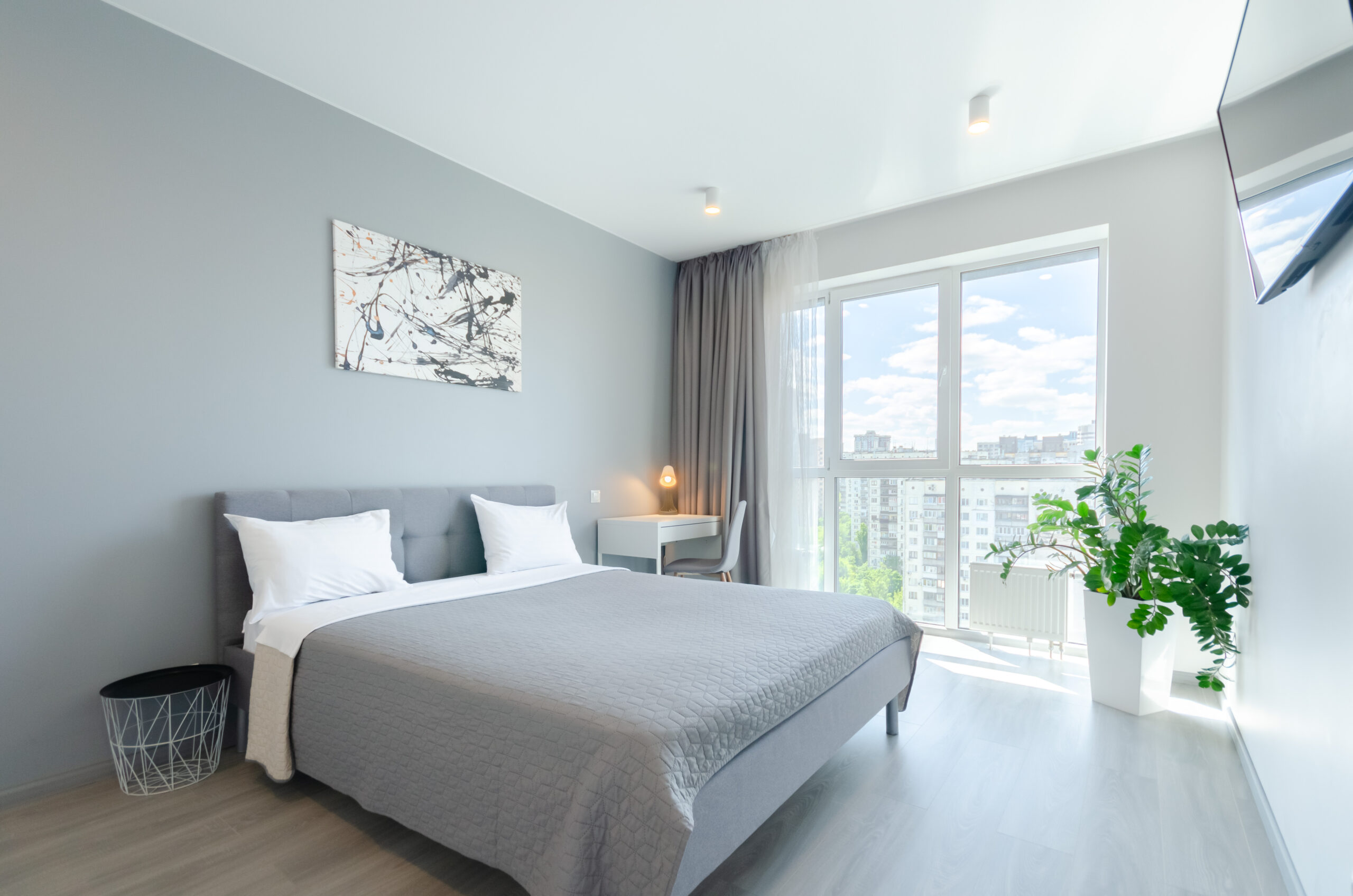 The apartment is located on the 20th floor, has an area of 55 m2, has a separate bedroom with a panoramic view, a living room with a small kitchen and a bathroom.It is fully equipped with everything necessary for a comfortable stay for any period.