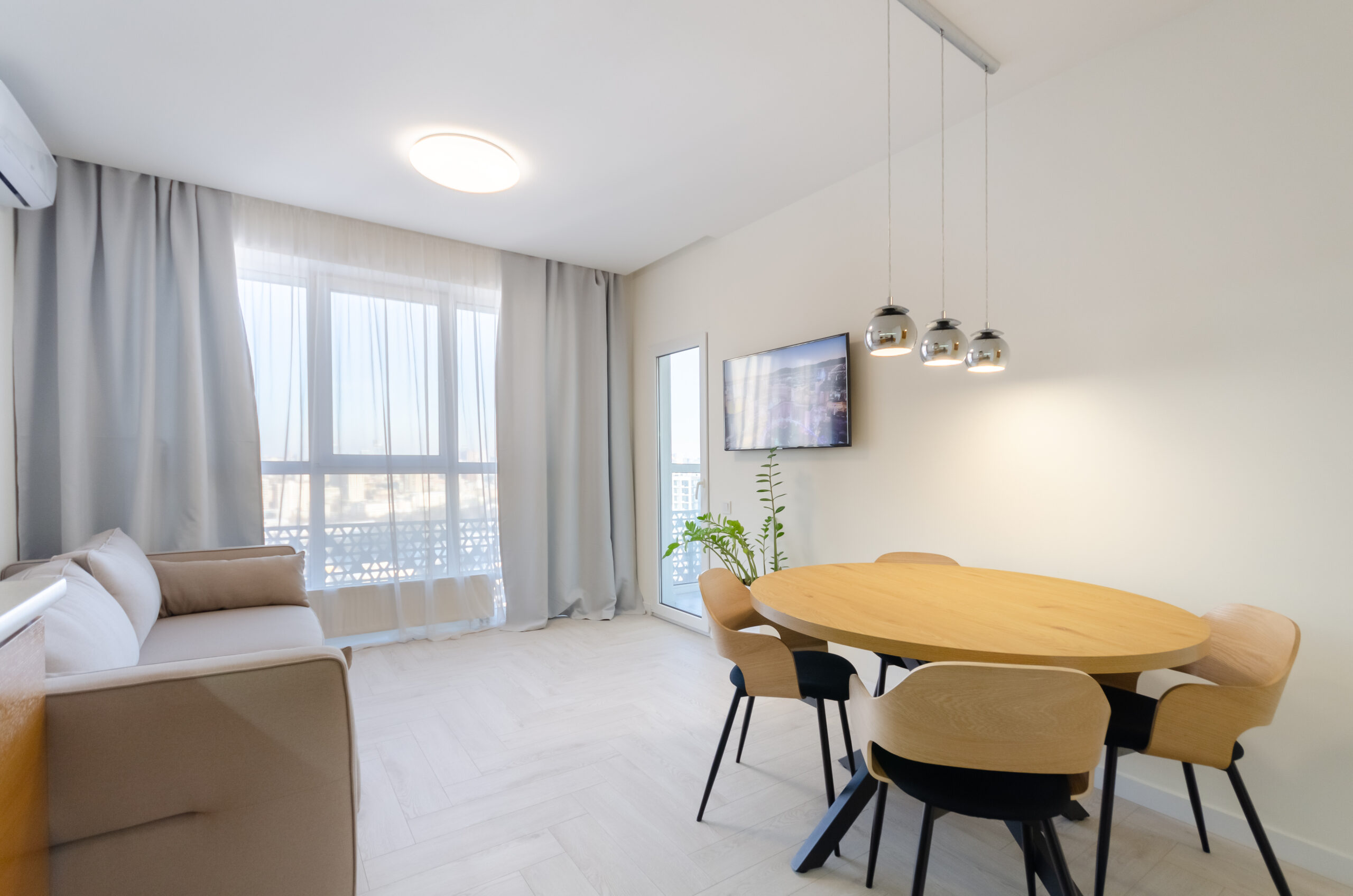 A cozy apartment in the center of Kyiv in the Kvartet business class complex with a stylish and modern renovation. A wonderful view of Kyiv from the window.