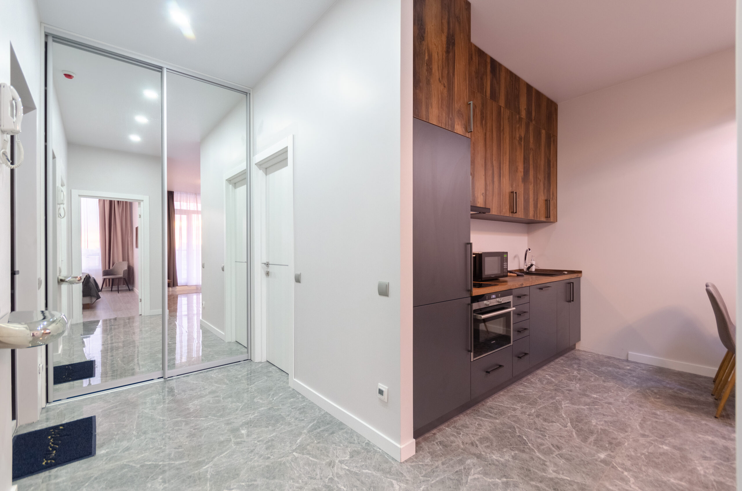 Within walking distance are restaurants, fitness clubs, supermarkets Silpo, Novus, Auchan, shopping center Ocean Plaza, etc. are