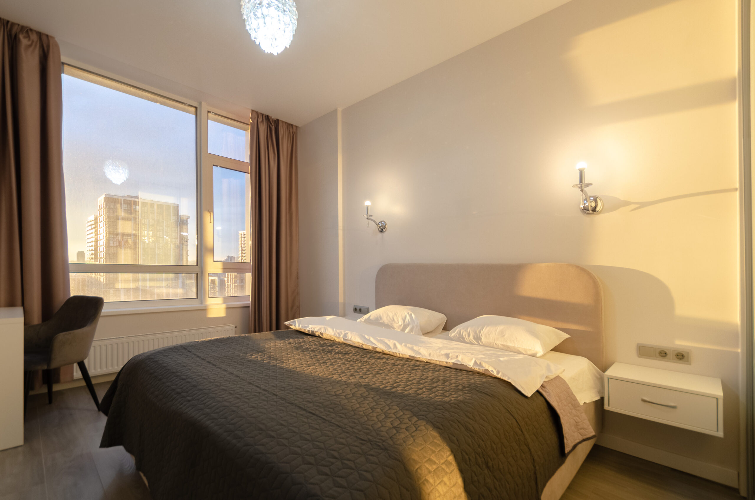 A cozy apartment with a designer renovation is located in the city center, in the Central Park residential complex on John McCain Street (Kudrey). A wonderful elite area. The complex has round-the-clock security. One of the best houses in Kyiv. There is an underground parking lot in the building, which can be used only as shelter.