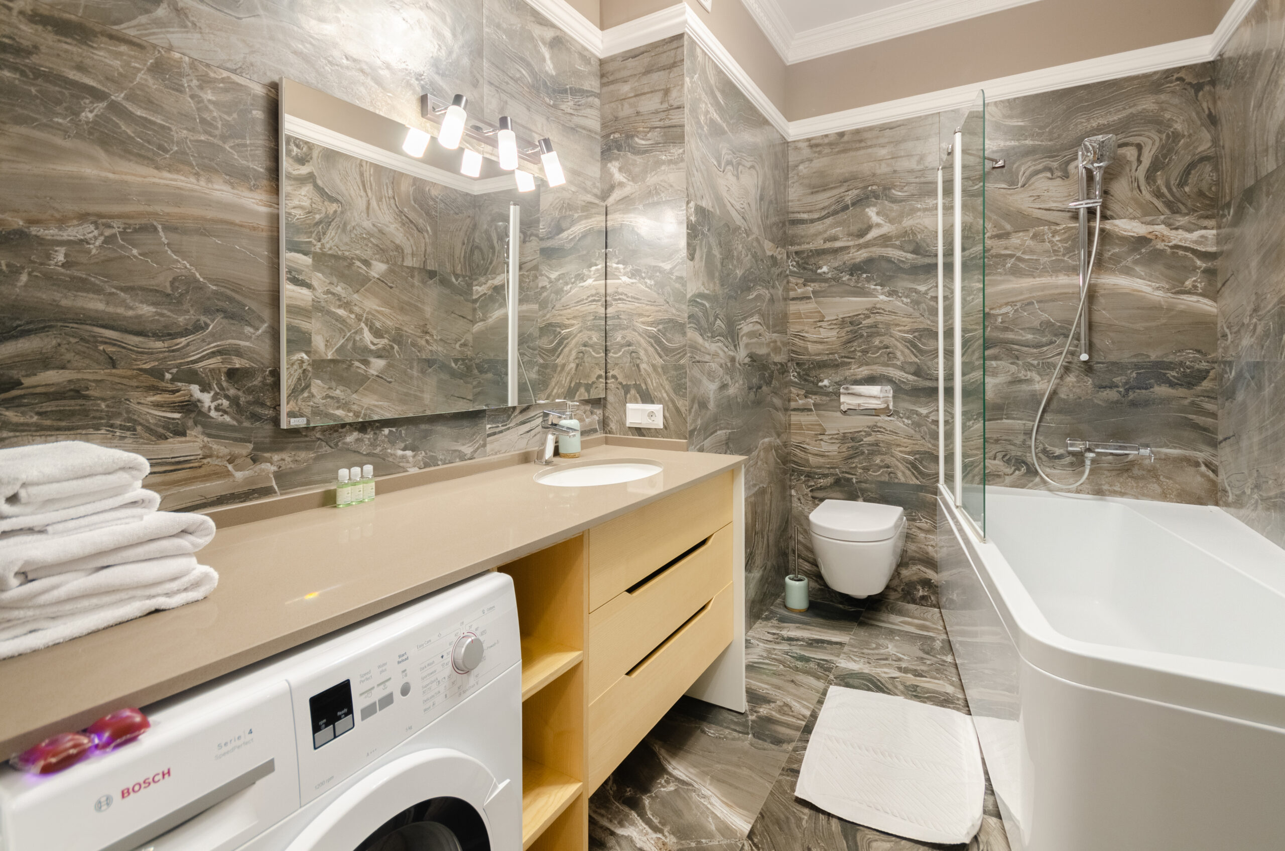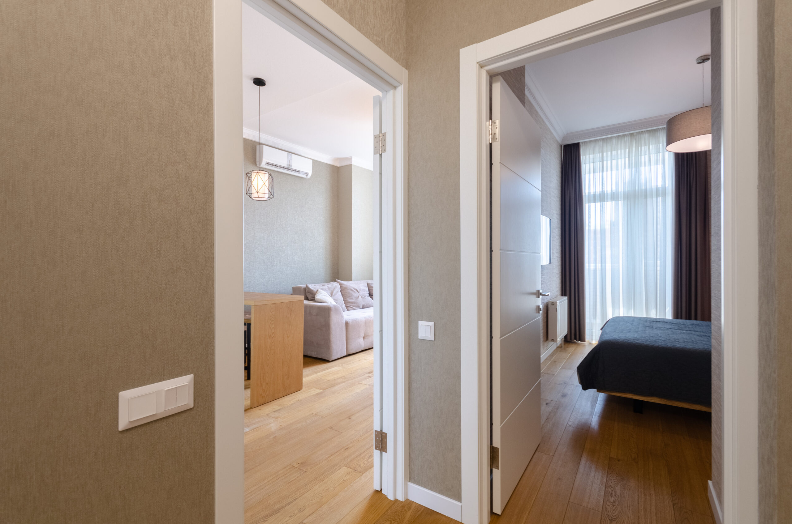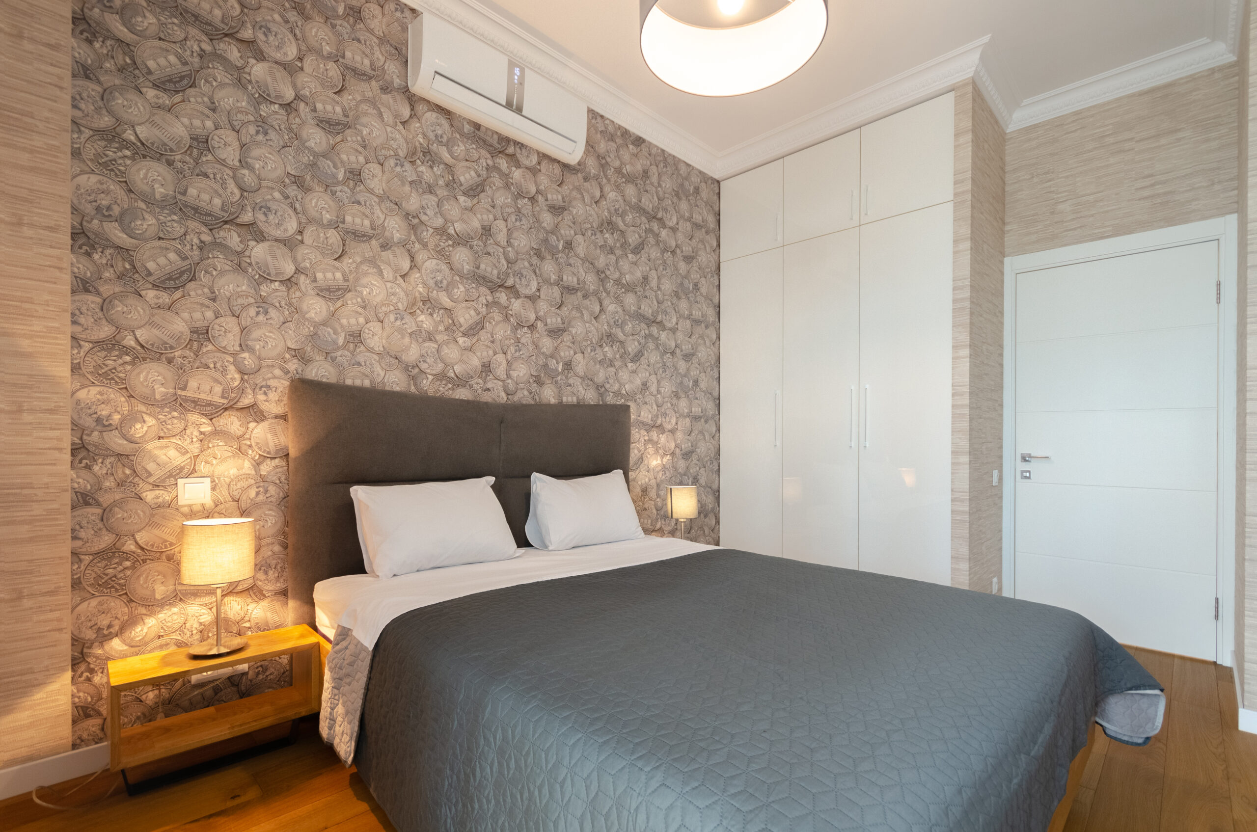 Cozy apartment is located in the ultra-modern residential complex French Quarter 1 at Vasyl Tyutyunnik street, 51/1a , which is guarded and has underground parking, which can be used only as shelter.
