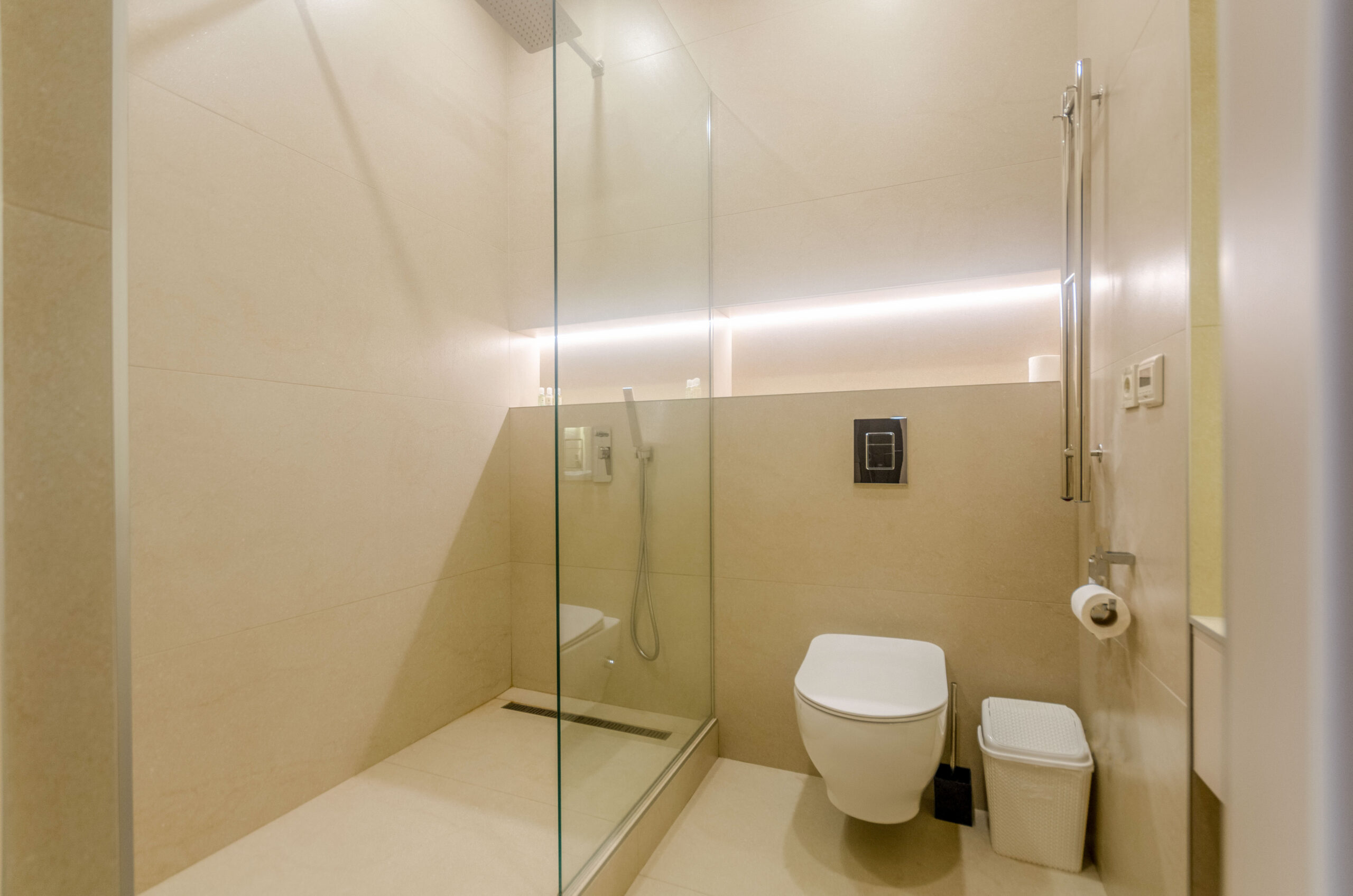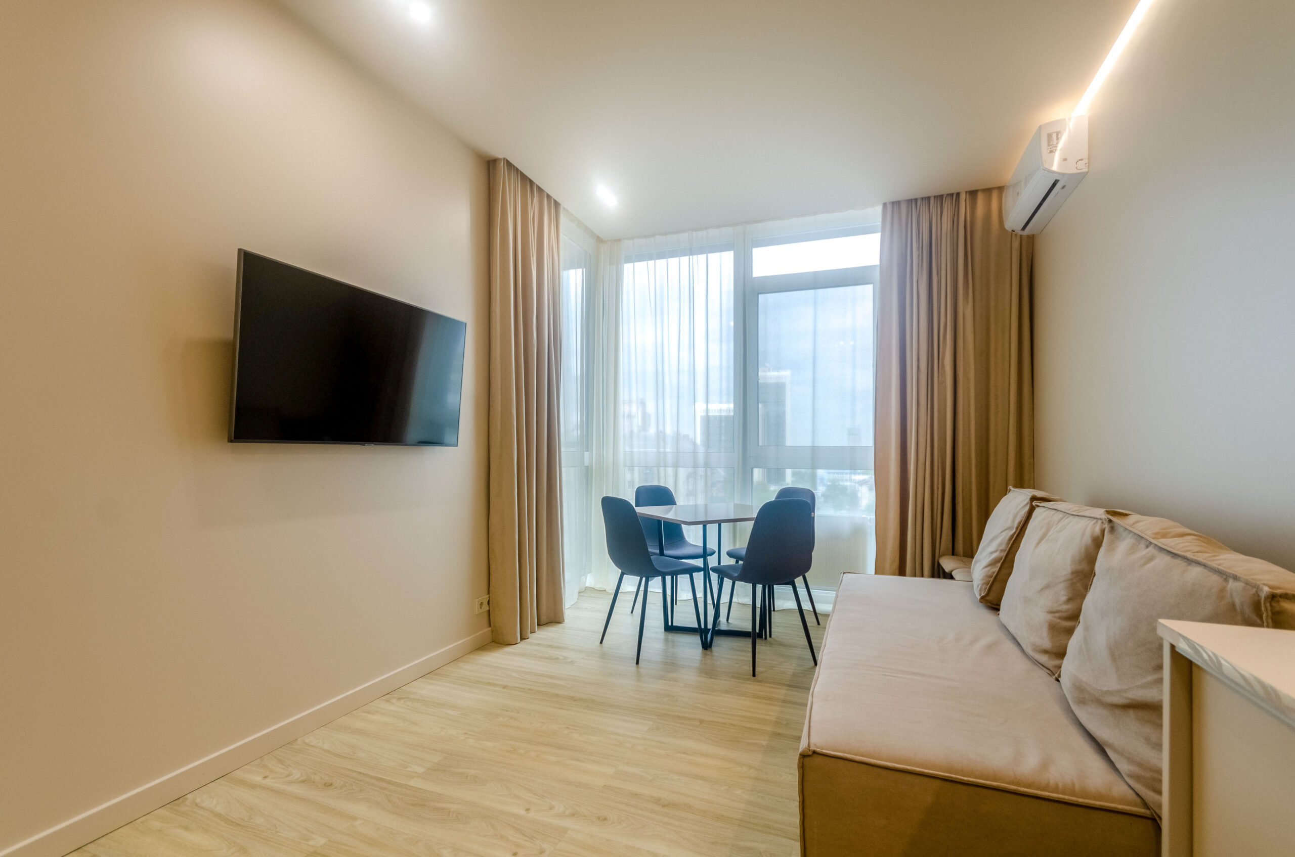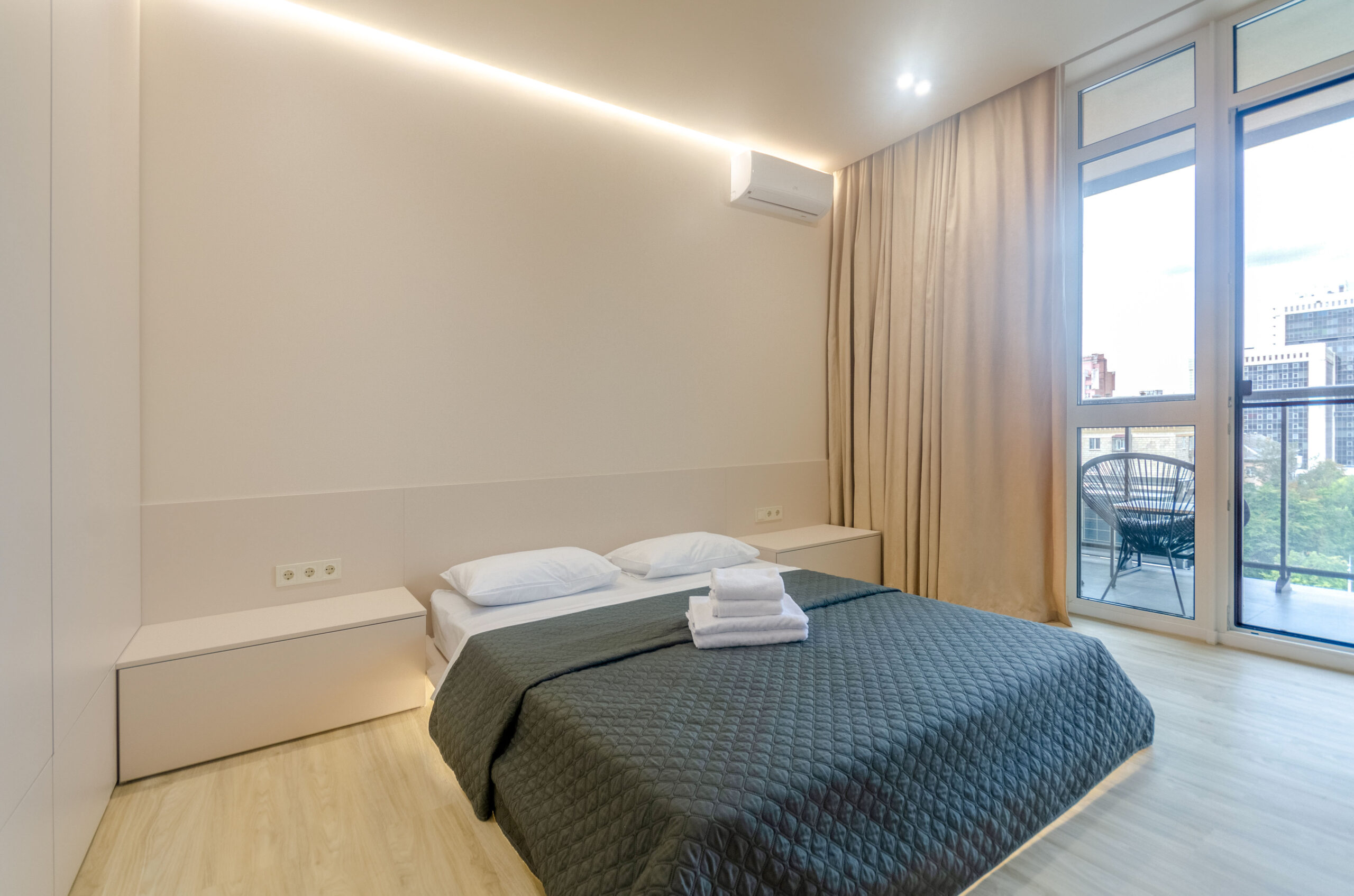The bright and spacious apartment is located in the ultra-modern residential complex French Quarter 2 at 139 Velyka Vasylkivska street, which is guarded and has underground parking.