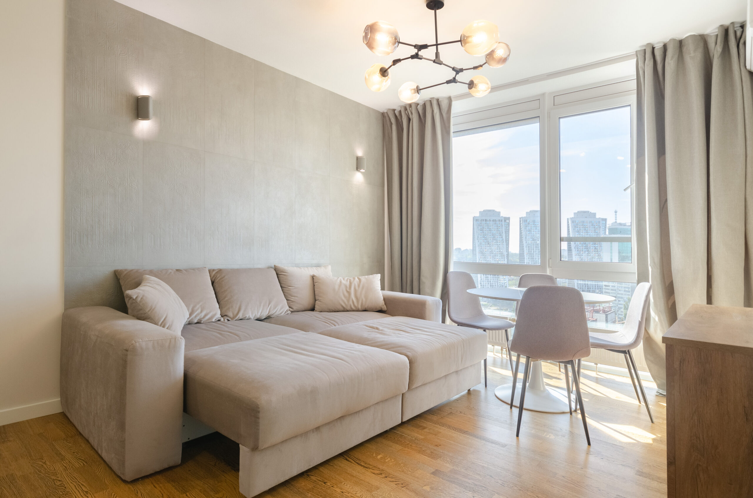 A cozy and bright apartment in the Hoffmann Haus business-class residential complex in the historic center of Kyiv, within walking distance to the capital’s historical and cultural attractions.