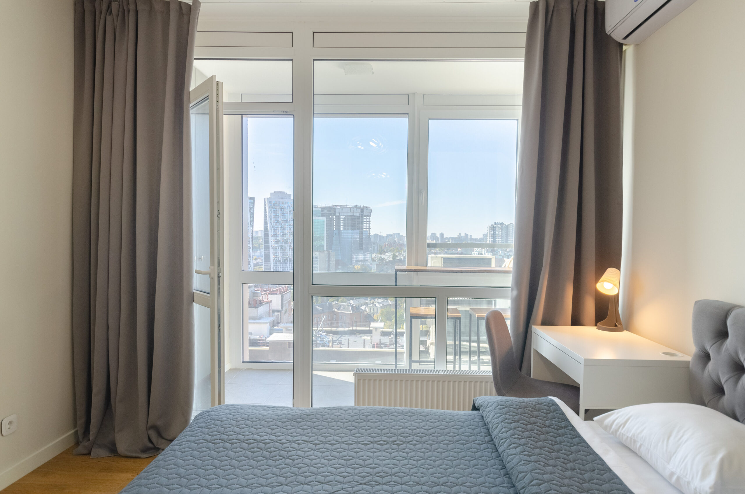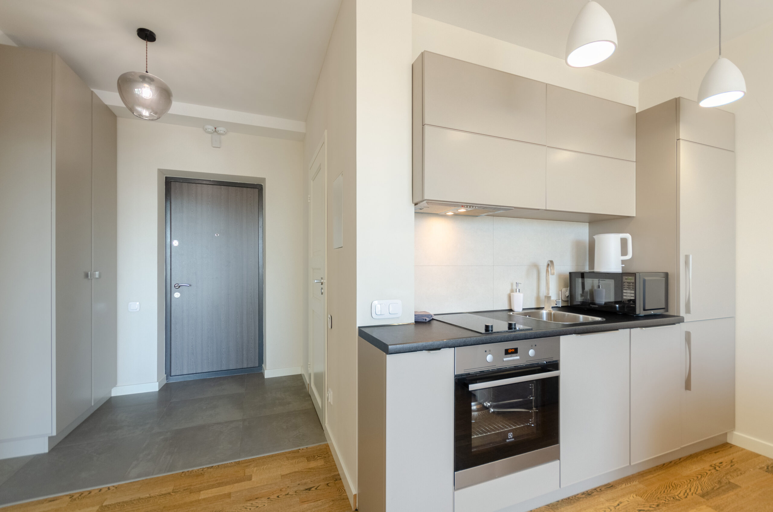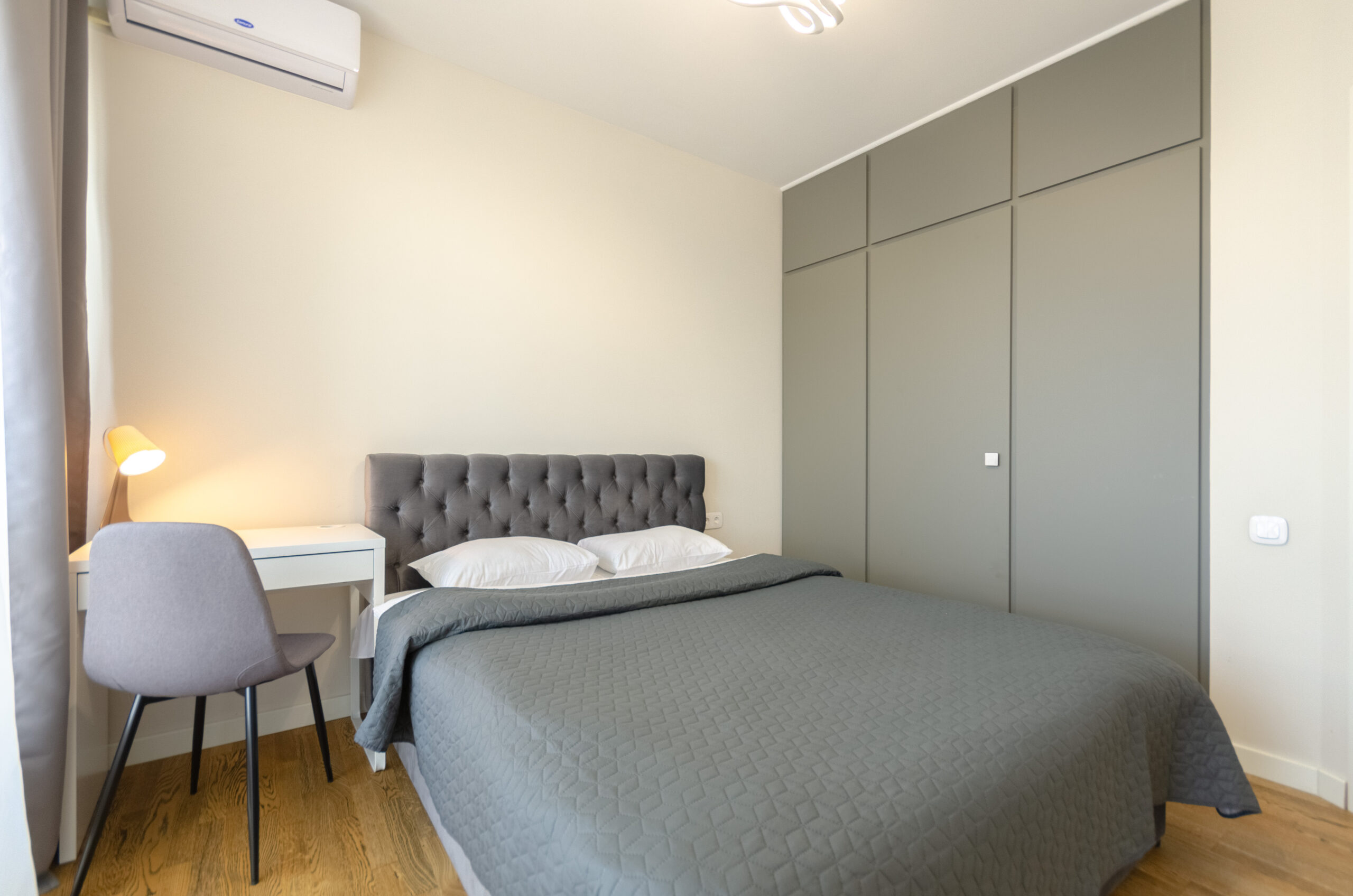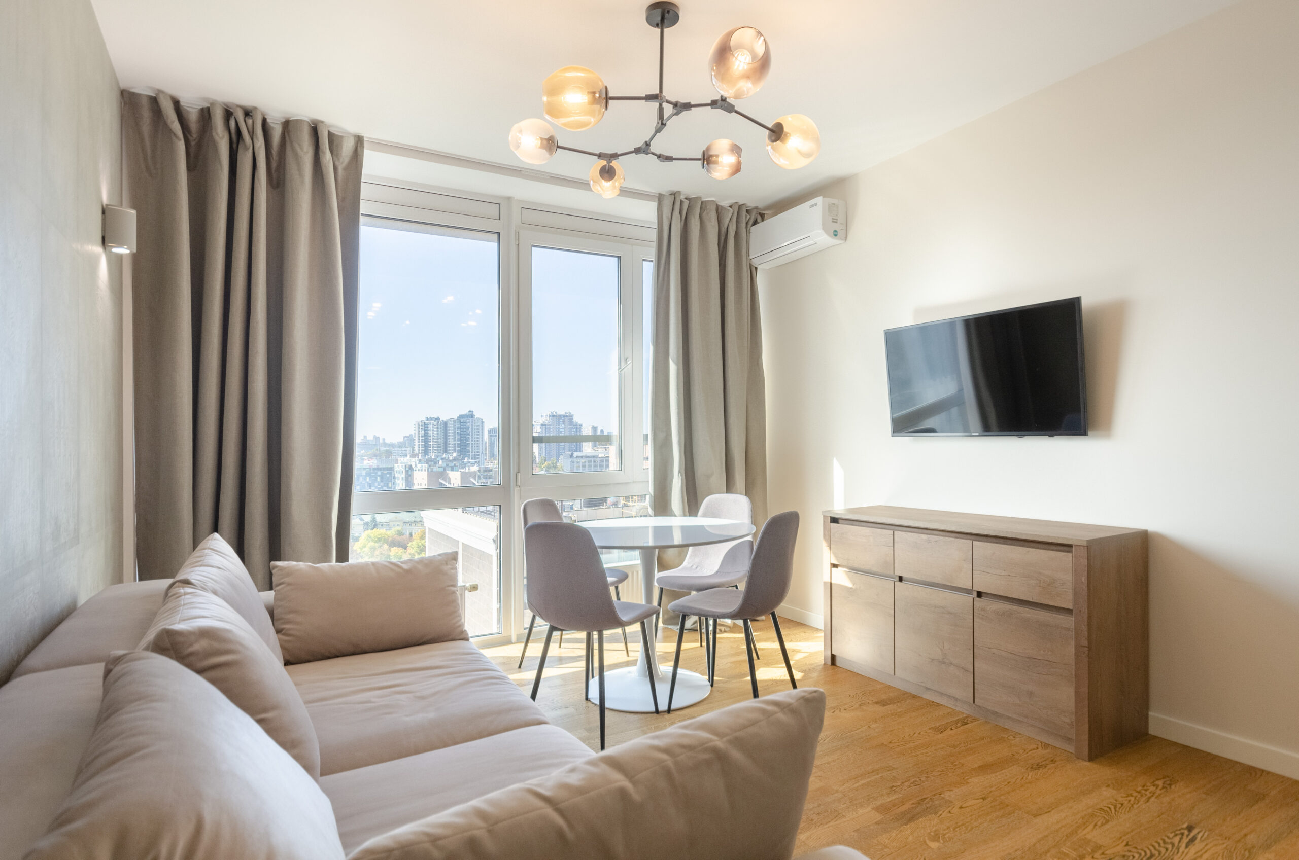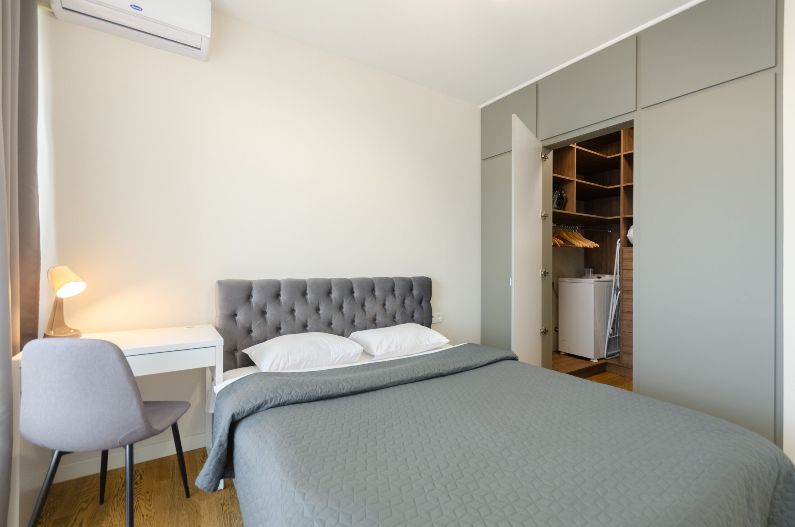 The apartment is located on the 19th floor, with an area of 50 m2, with a separate bedroom, a living room with kitchen and a bathroom with a bathtub and a shower. It is equipped with everything you need for a comfortable stay.