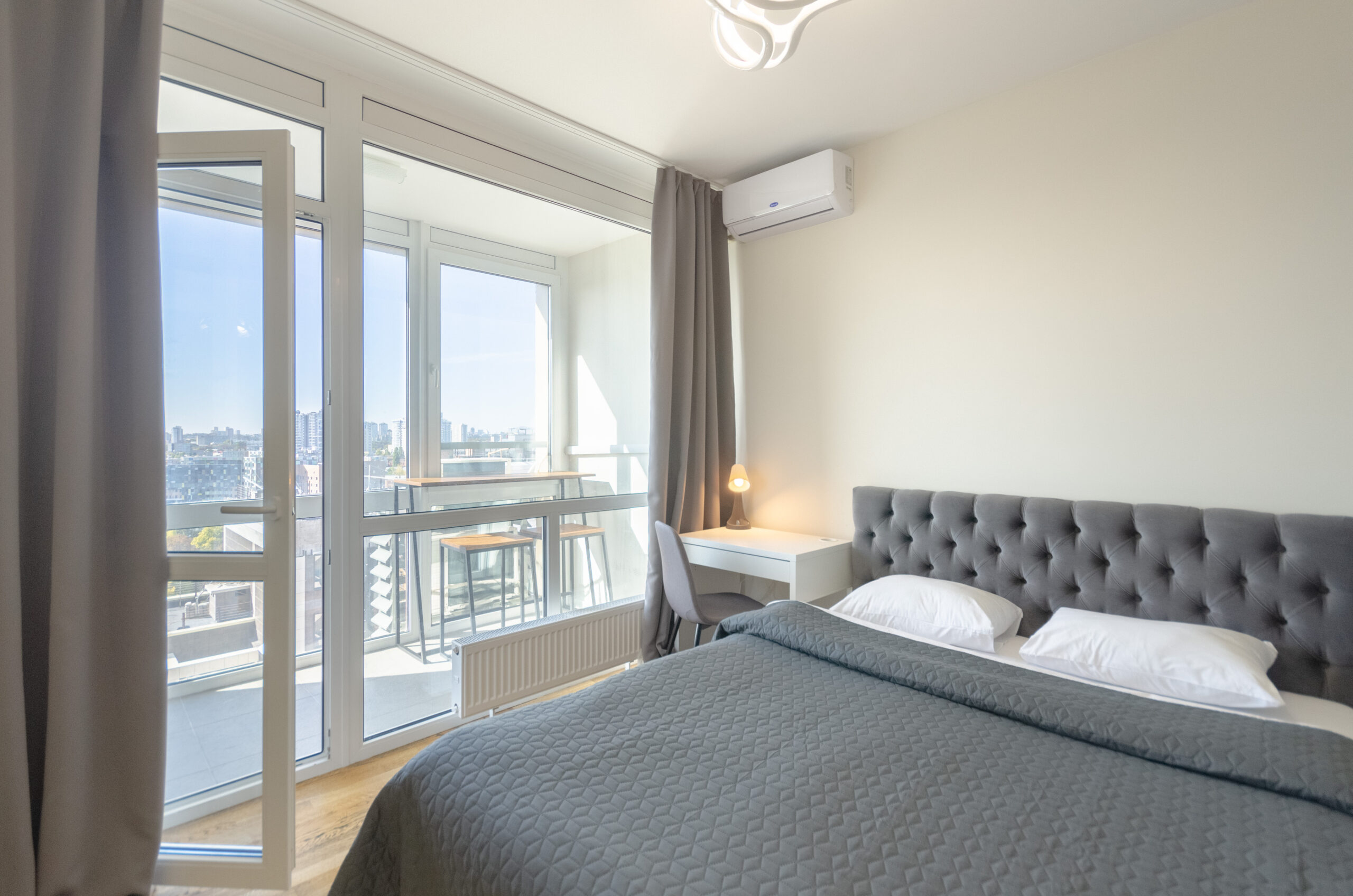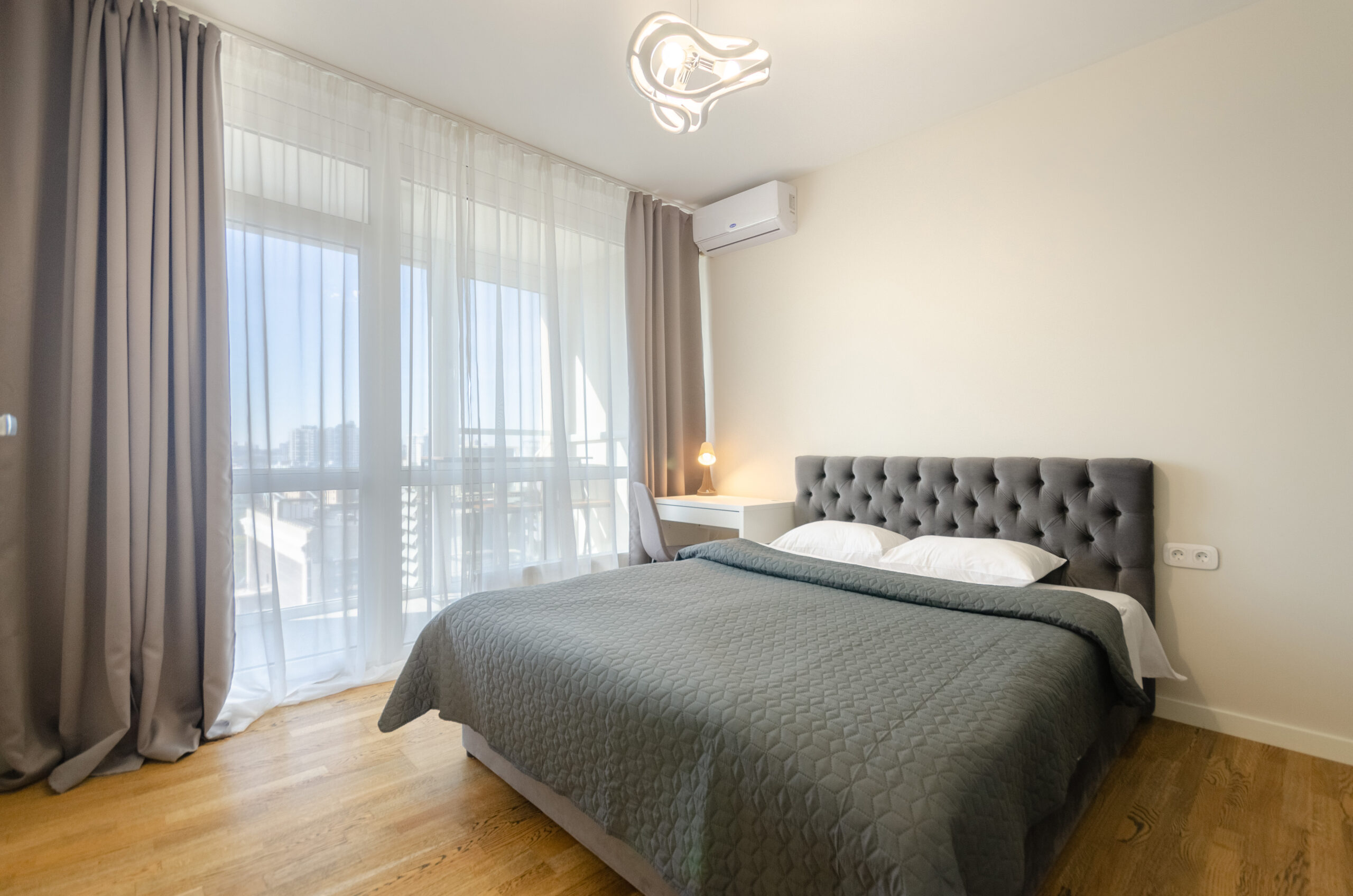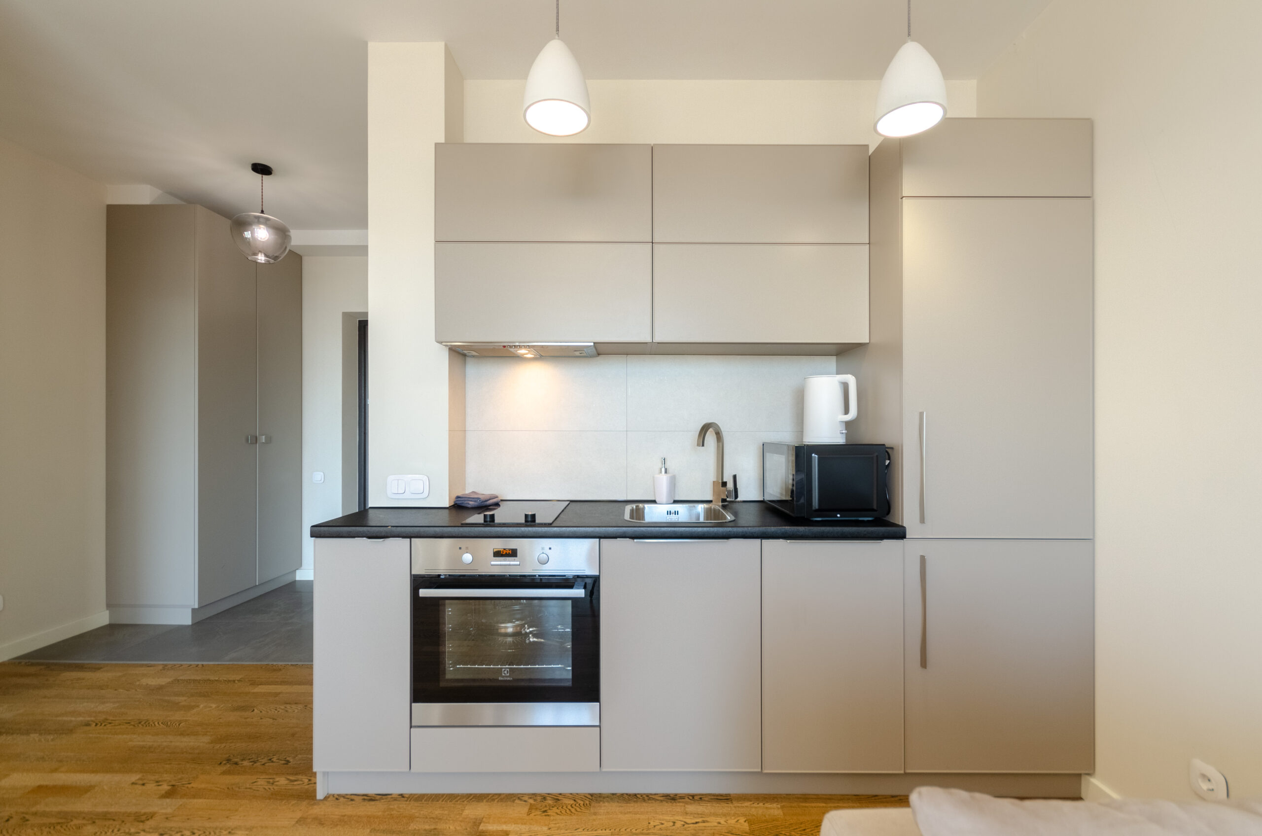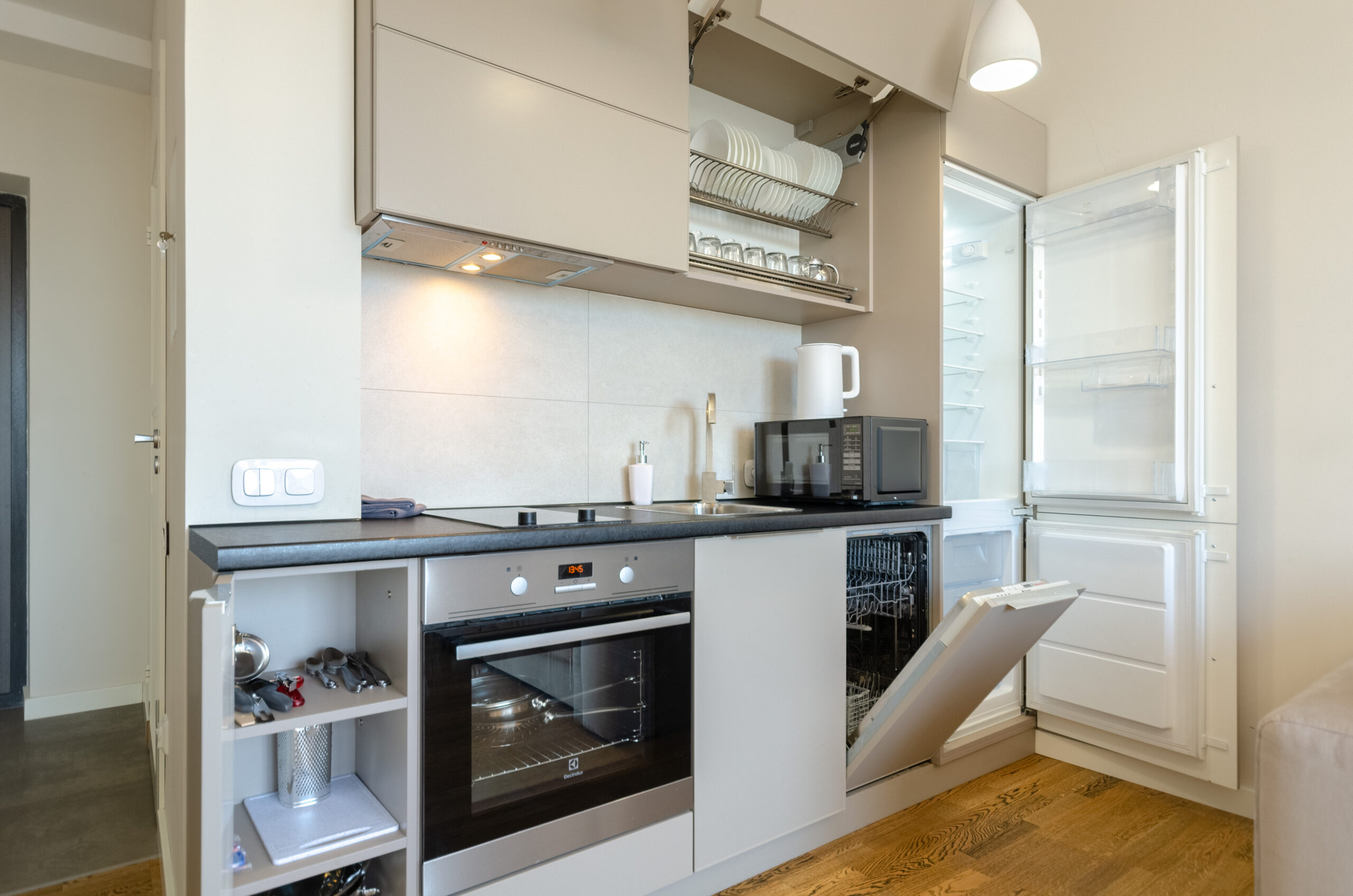 The apartment is located on the 19th floor, with an area of 50 m2, with a separate bedroom, a living room with kitchen and a bathroom with a bathtub and a shower. It is equipped with everything you need for a comfortable stay.