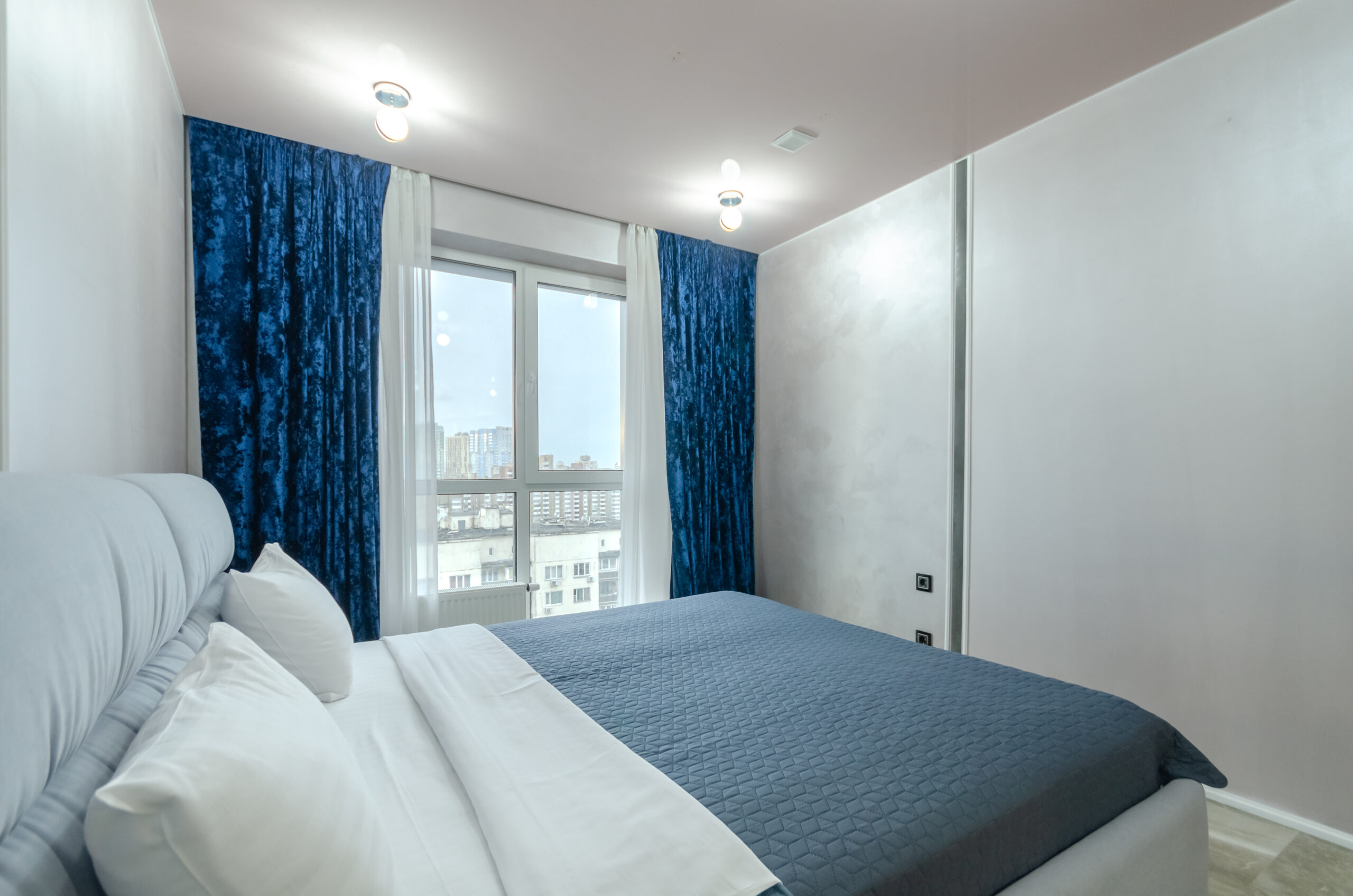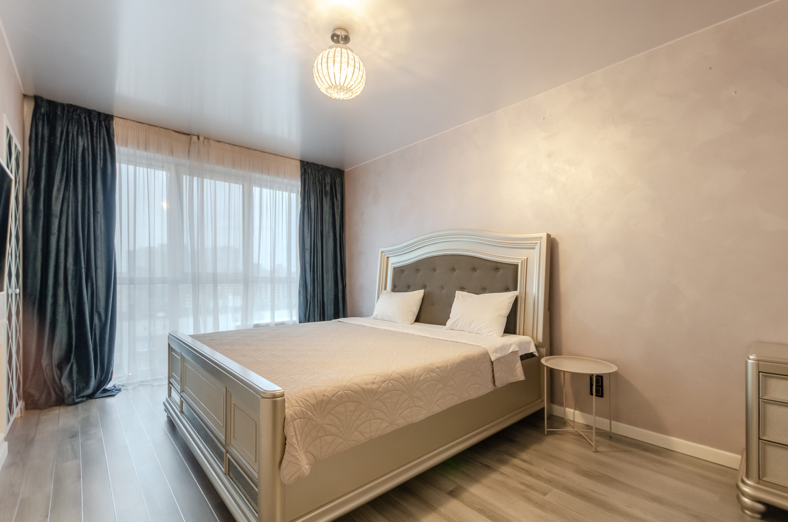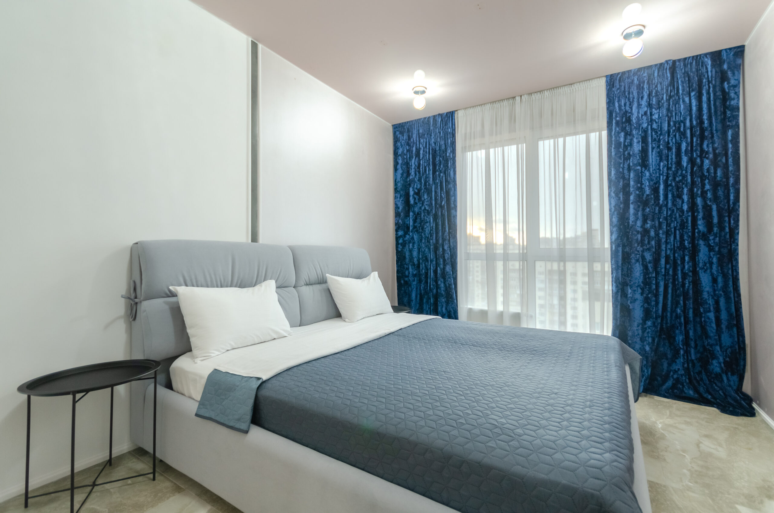The apartment is located in a great new residential complex near railway station. Stylish modern design. The apartment is with beautiful views from the panoramic windows. The complex has security. There is an underground parking lot in the building, which can be used as shelter.