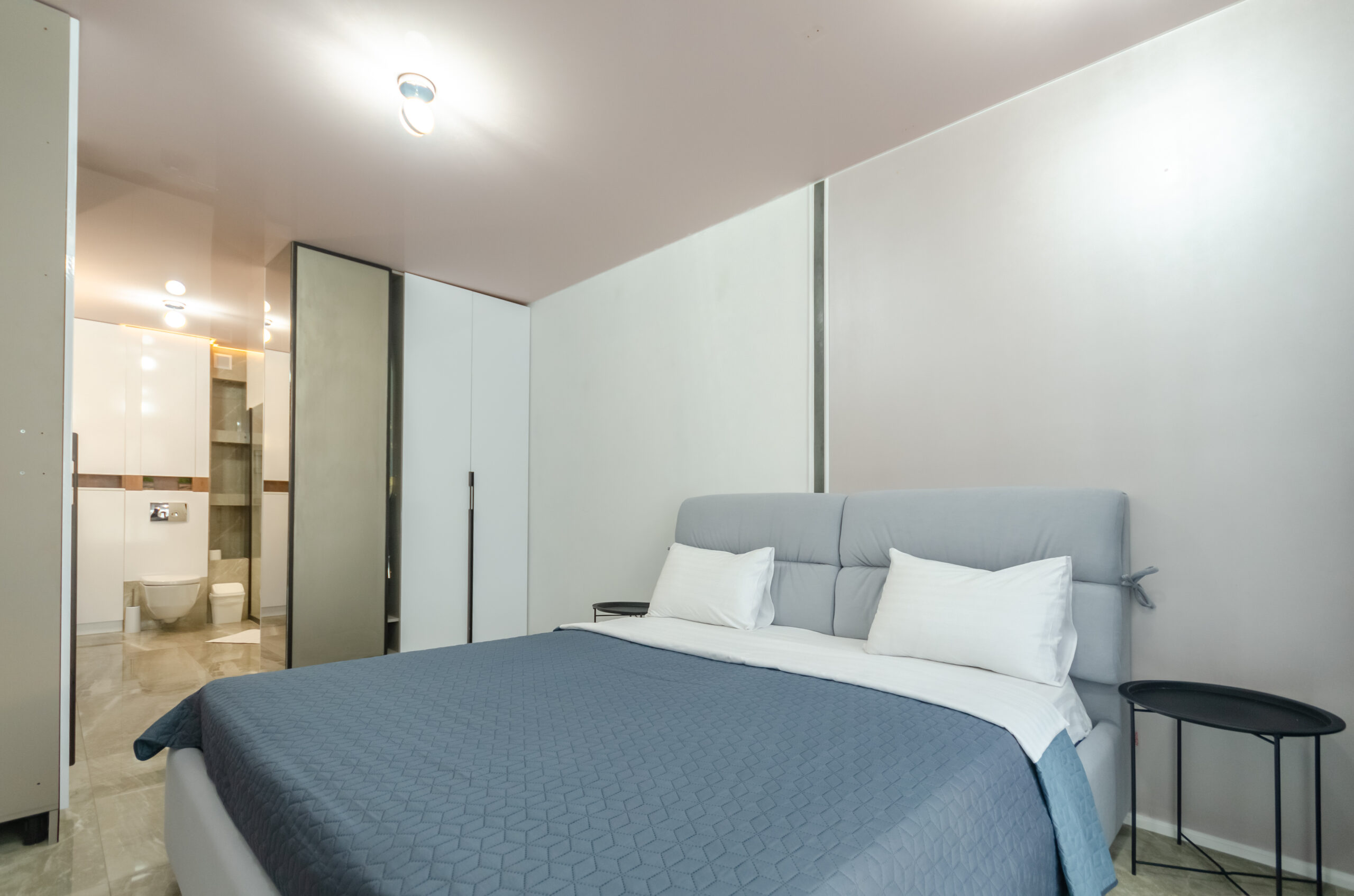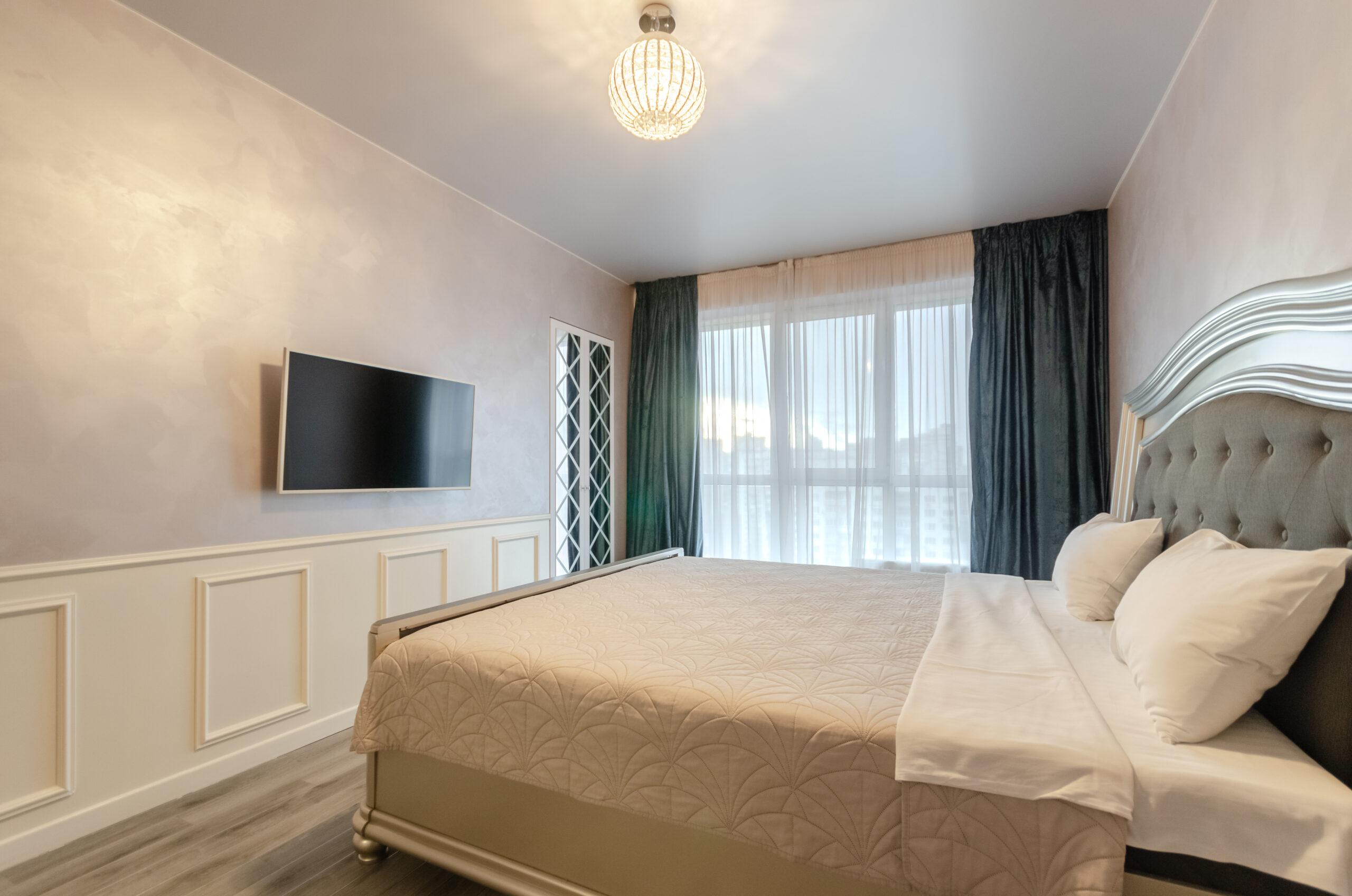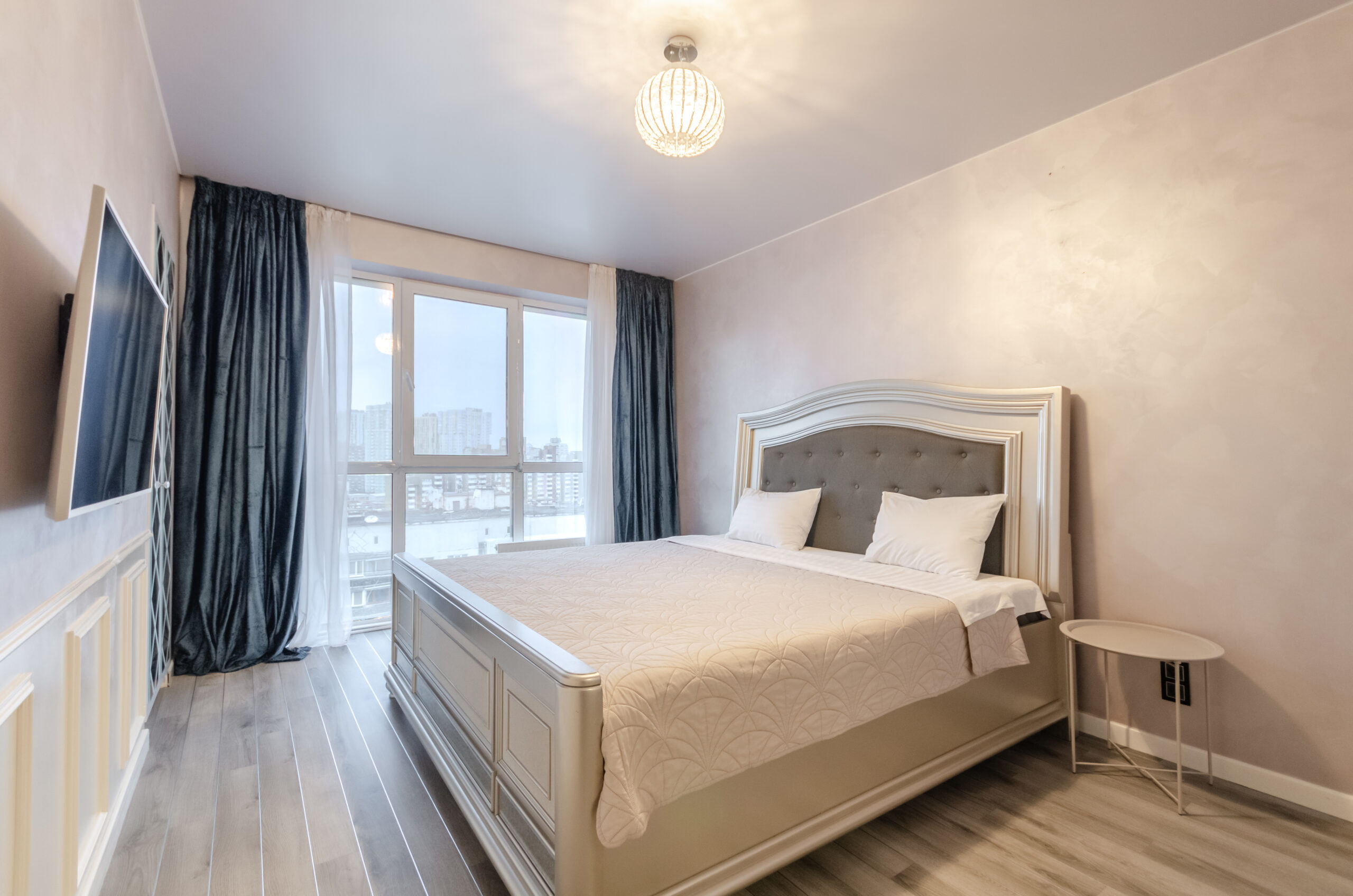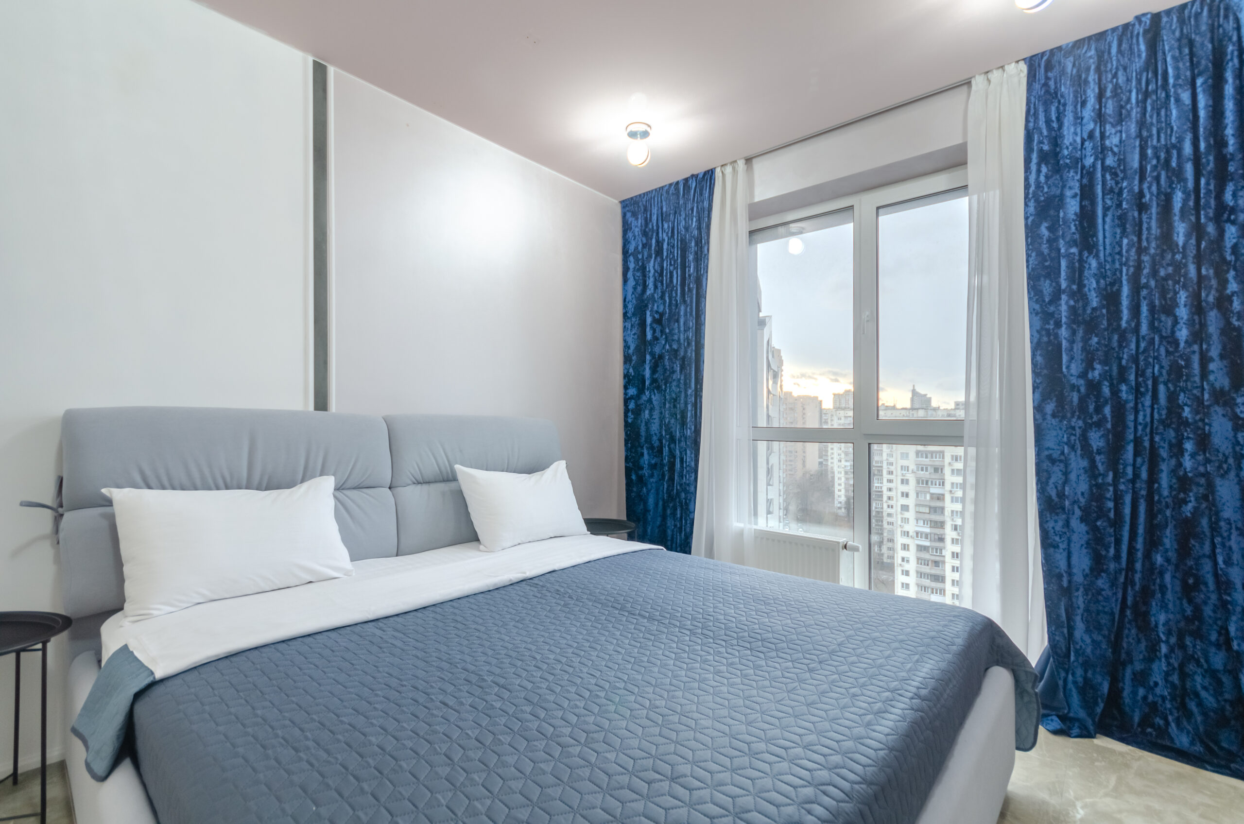 The apartment is located in a great new residential complex near railway station. Stylish modern design. The apartment is with beautiful views from the panoramic windows. The complex has security. There is an underground parking lot in the building, which can be used as shelter.