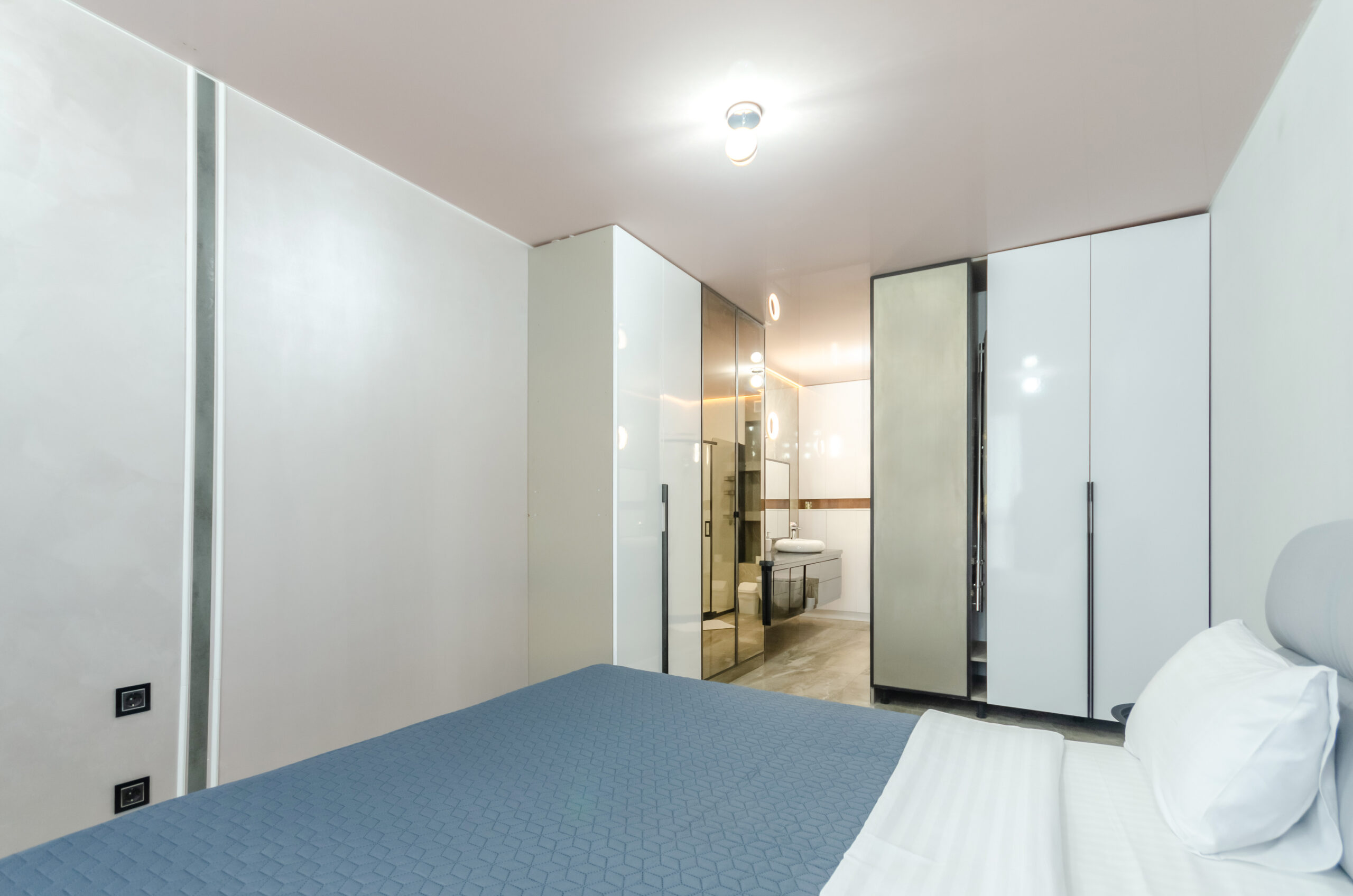 *separate bedroom (bed 1800 by 2000 mm), wardrobe