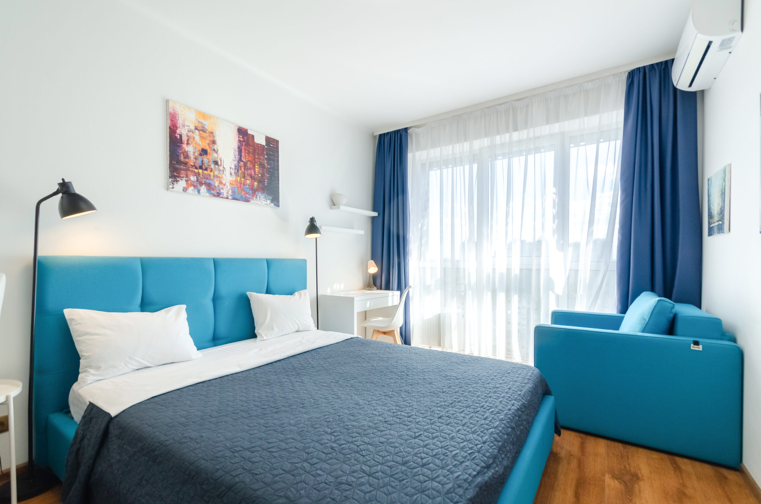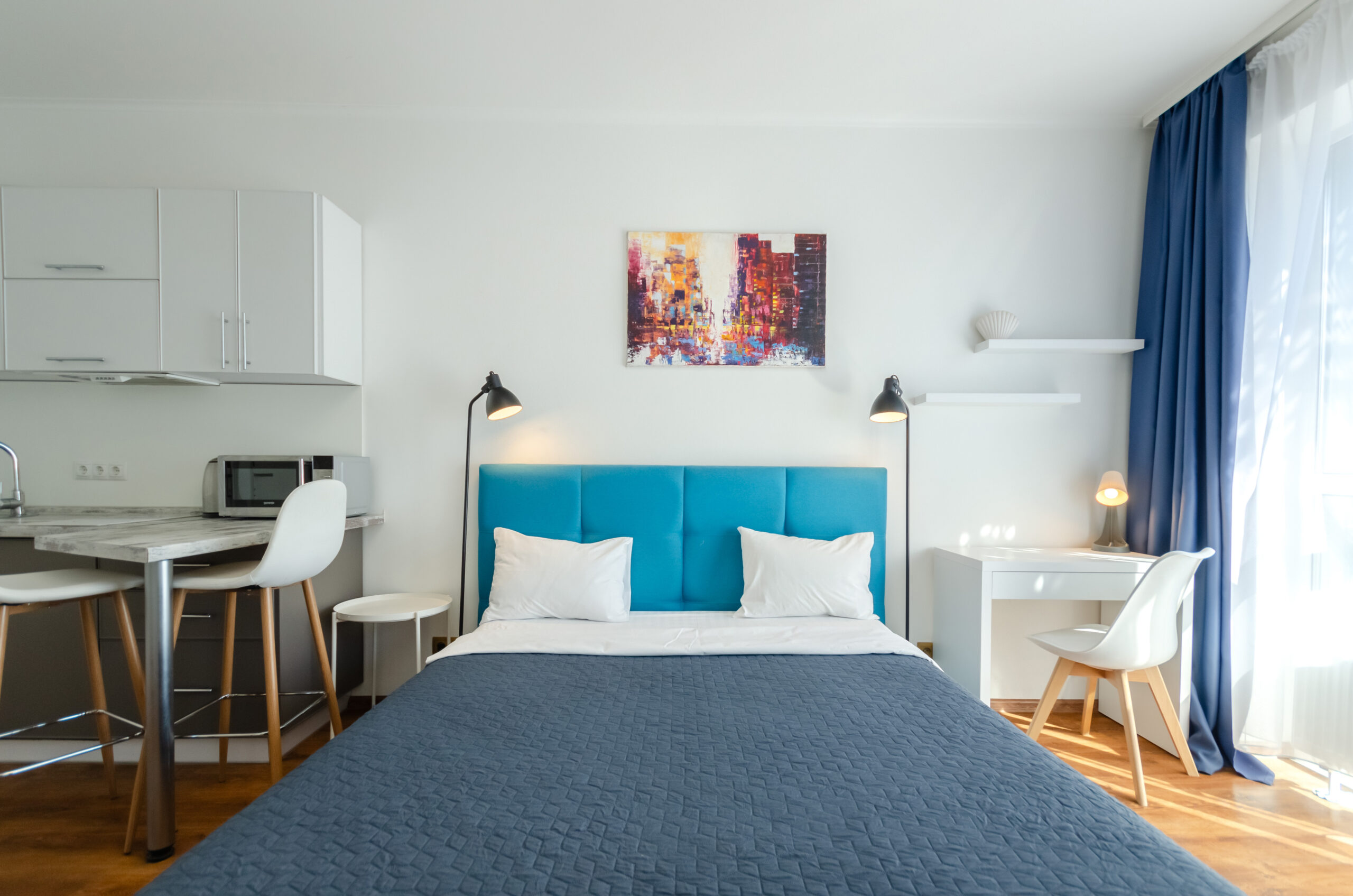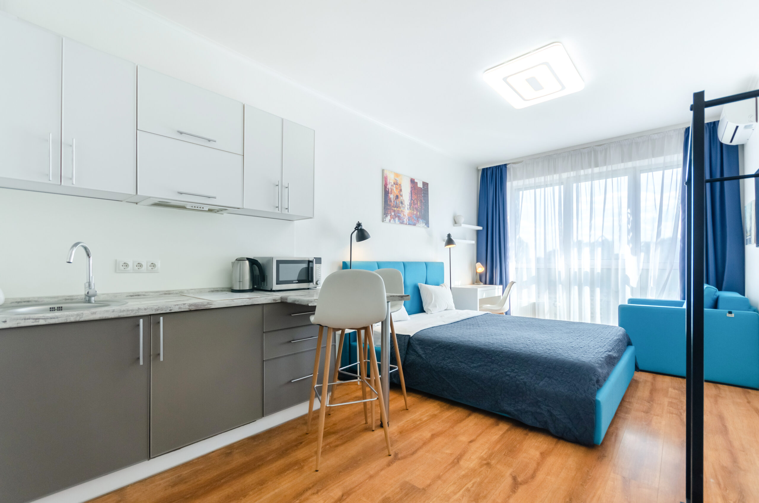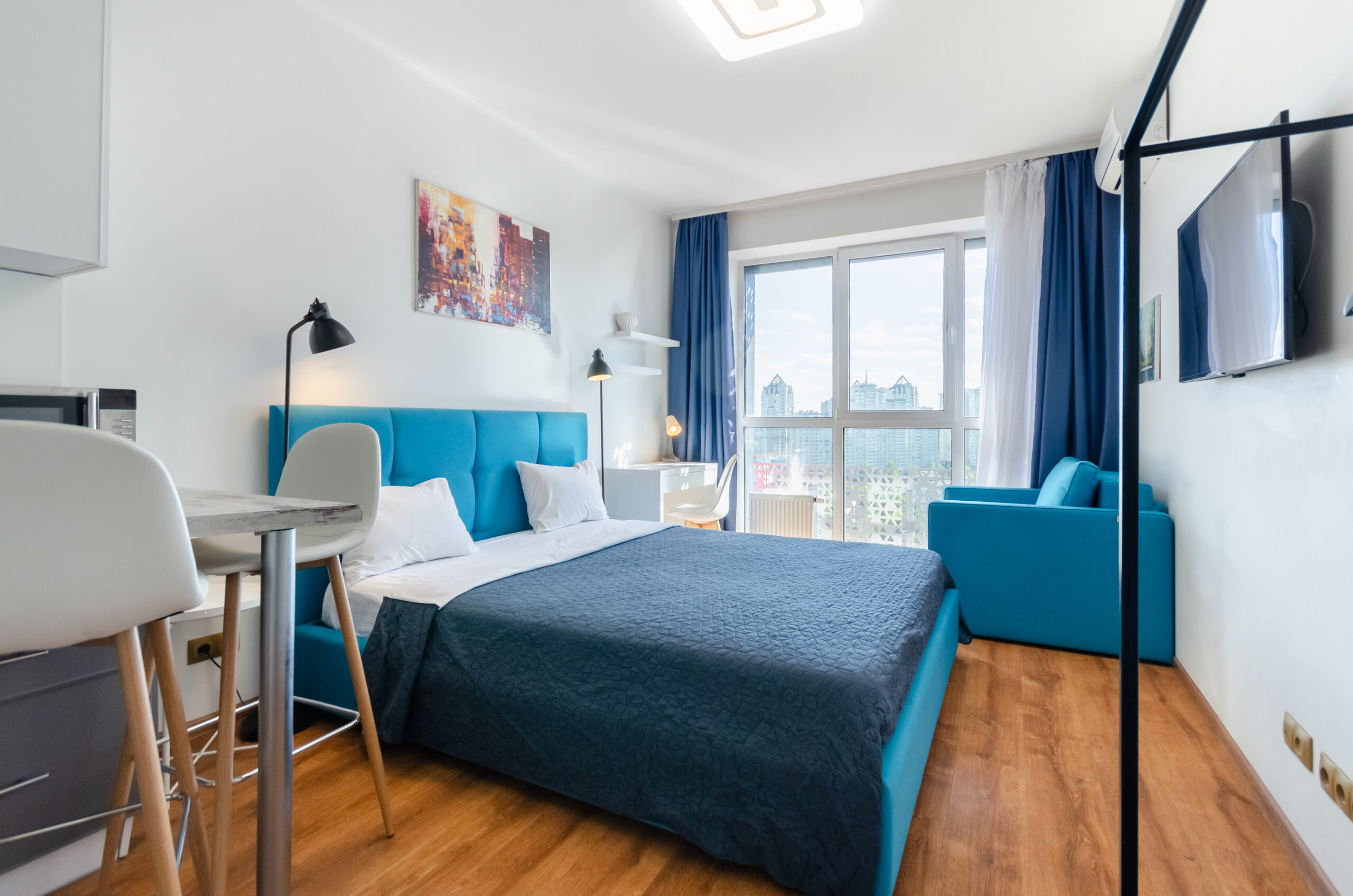 Mini studio in blue colors in residential complex ‘Kvartet’