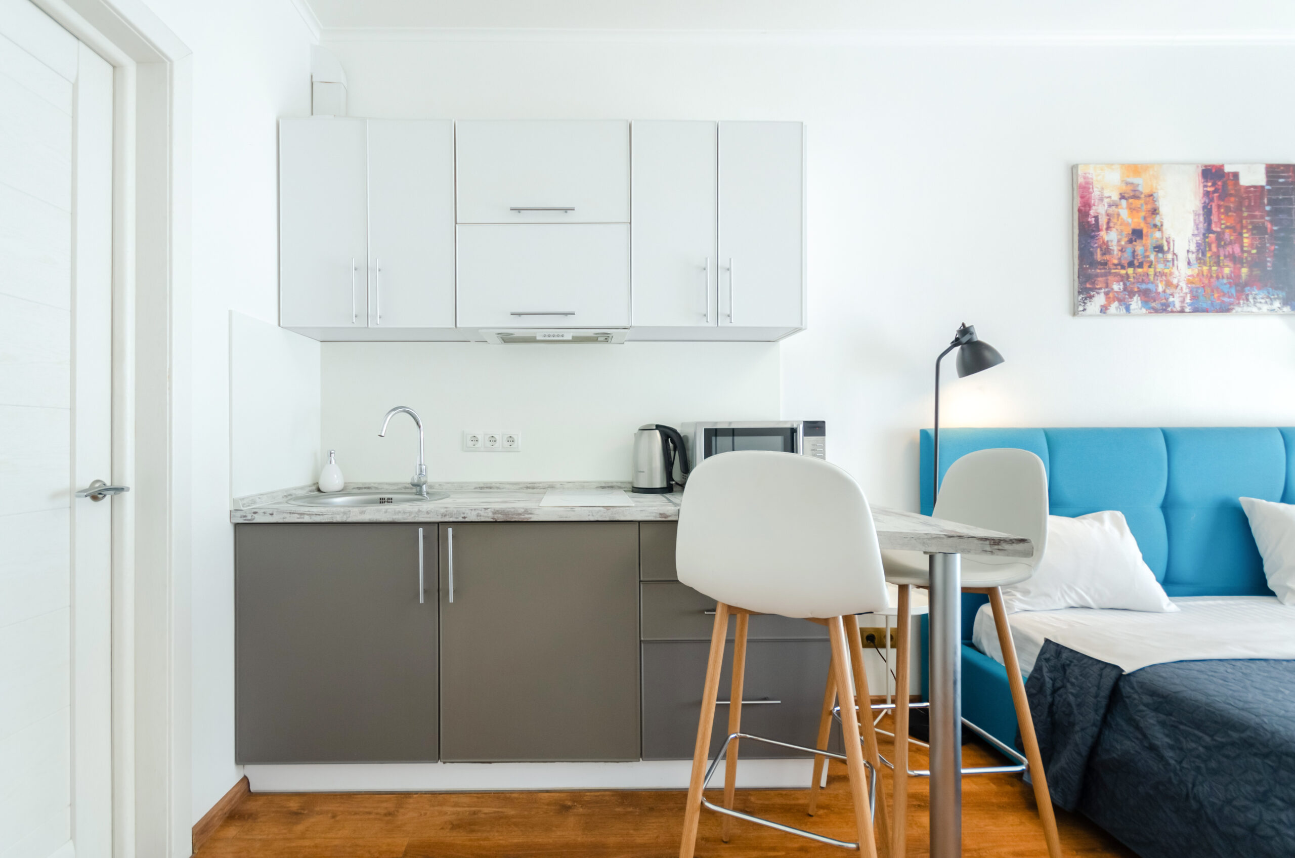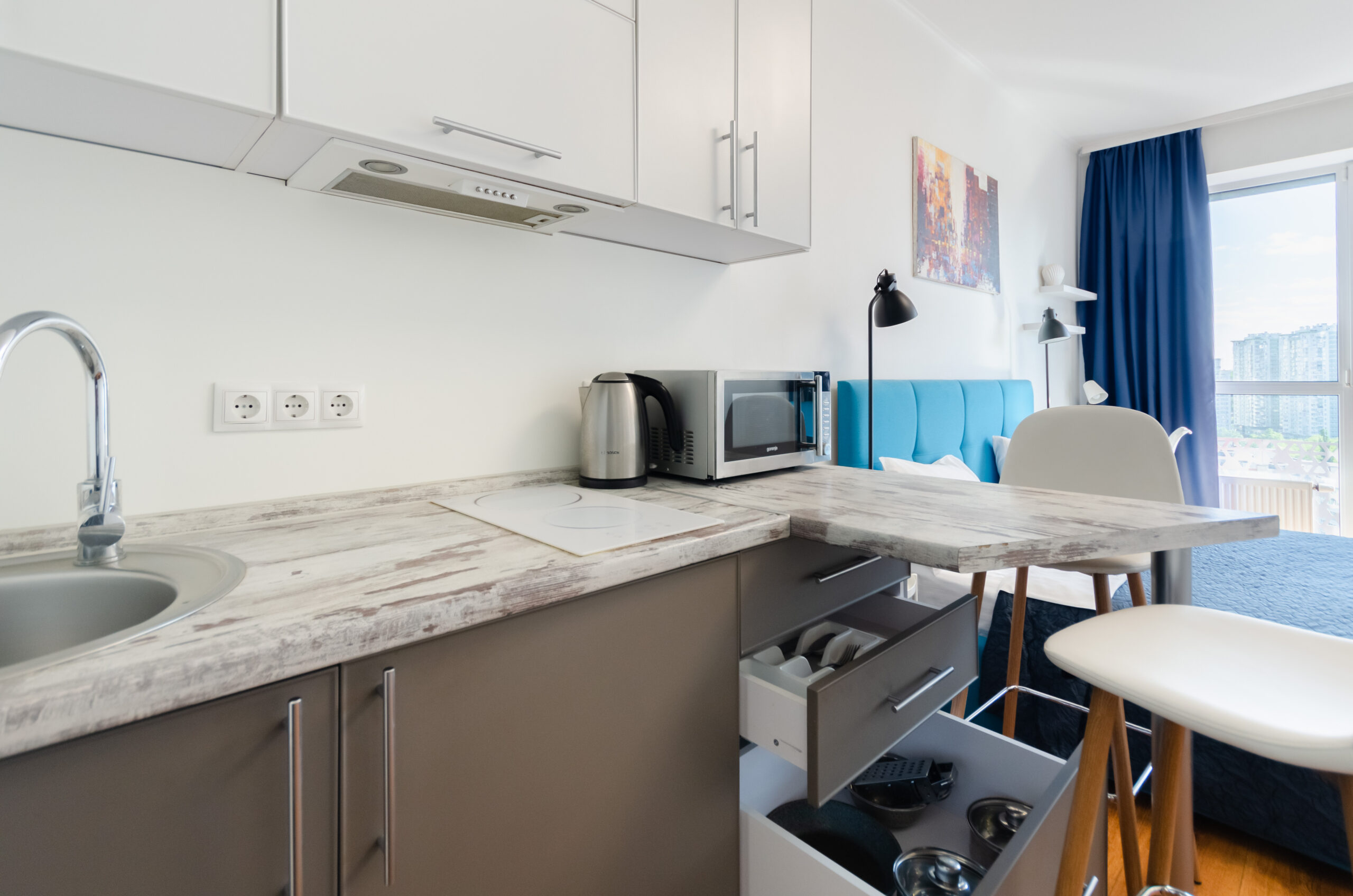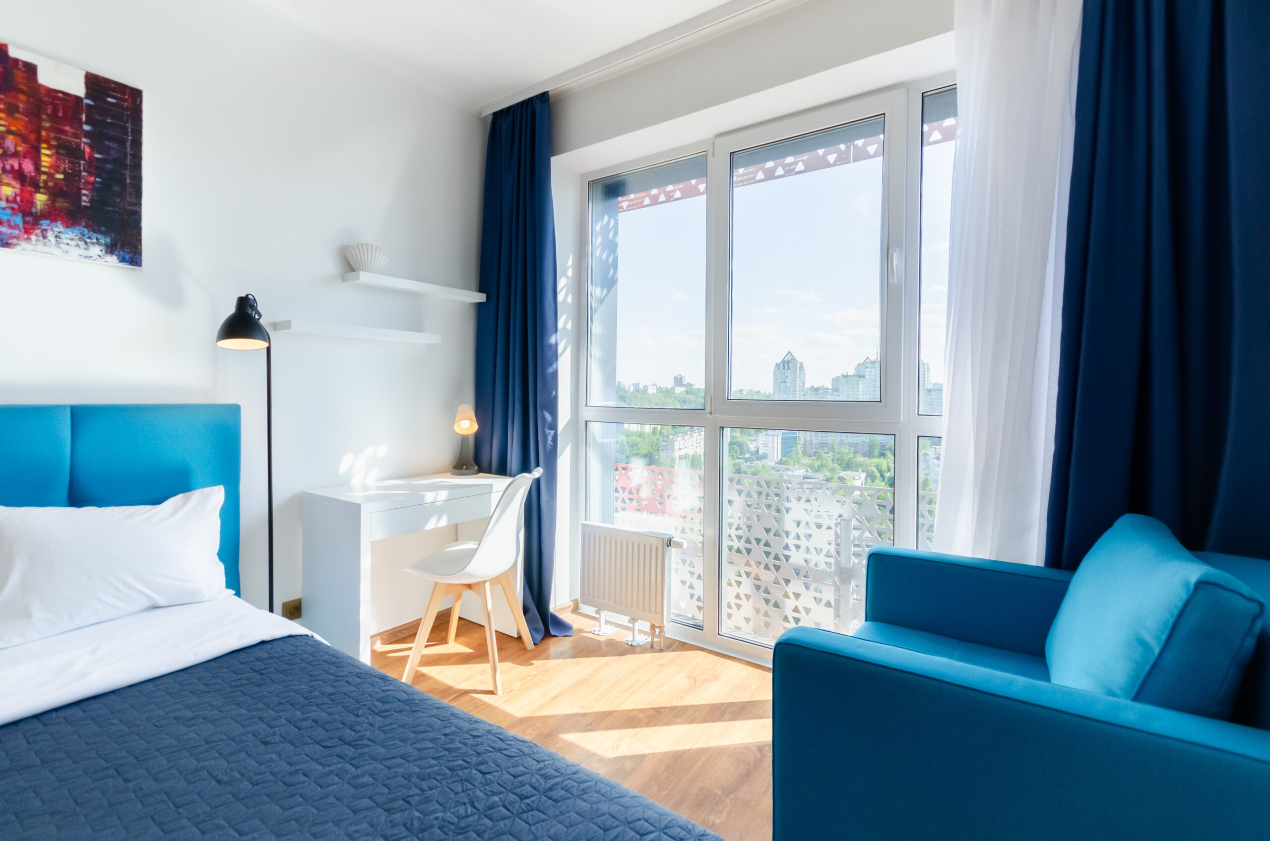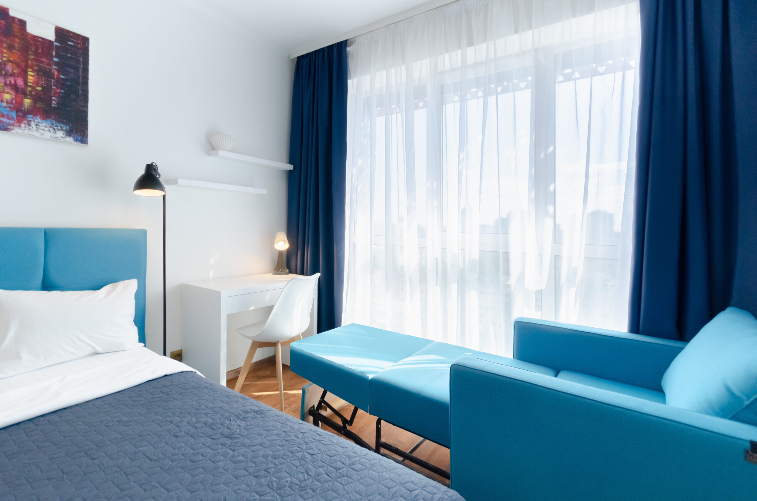 Mini studio in blue colors in residential complex ‘Kvartet’