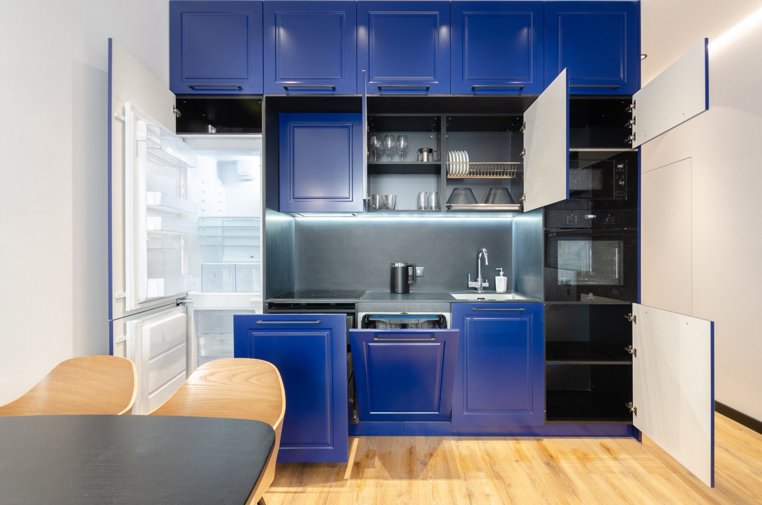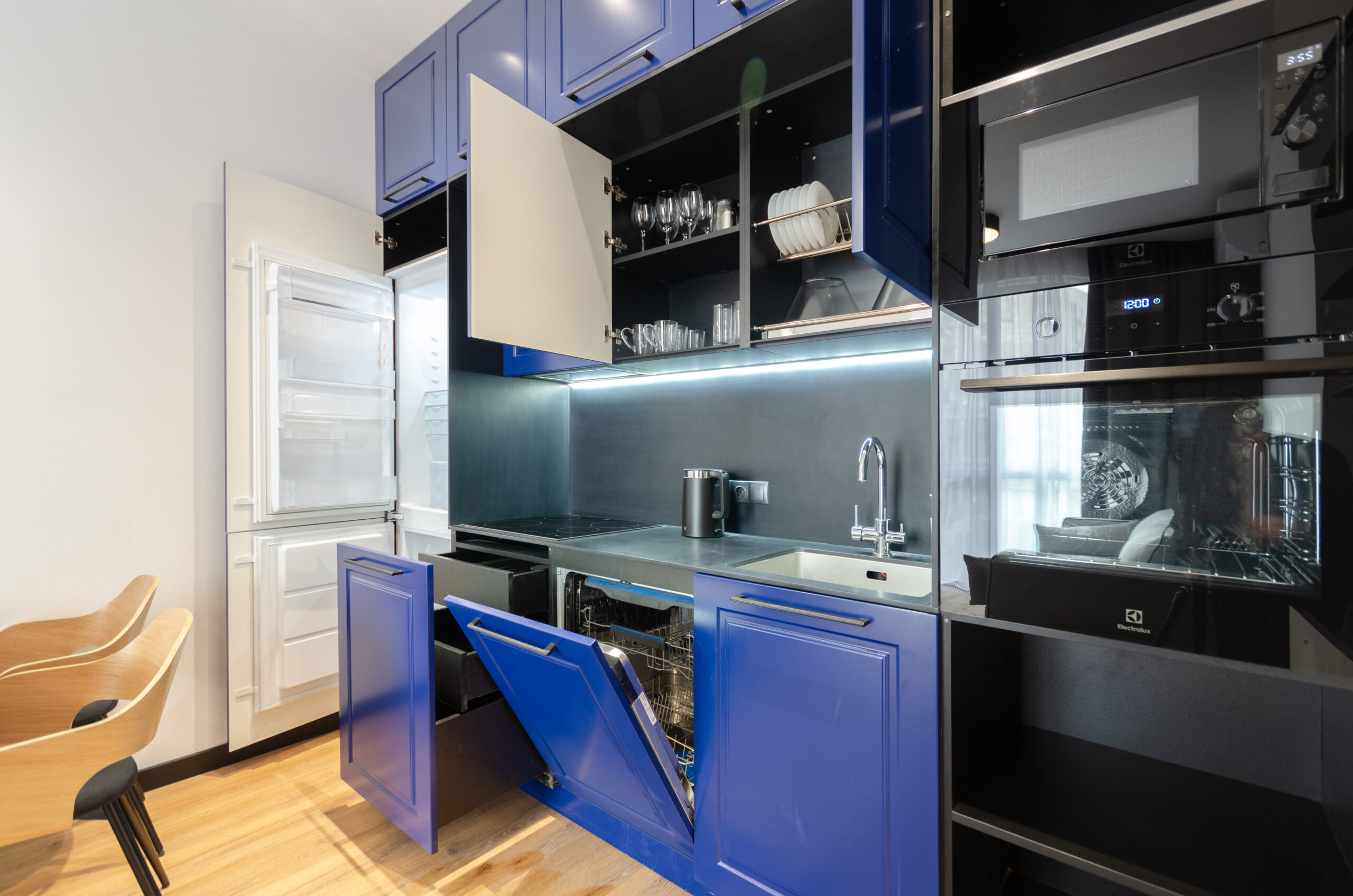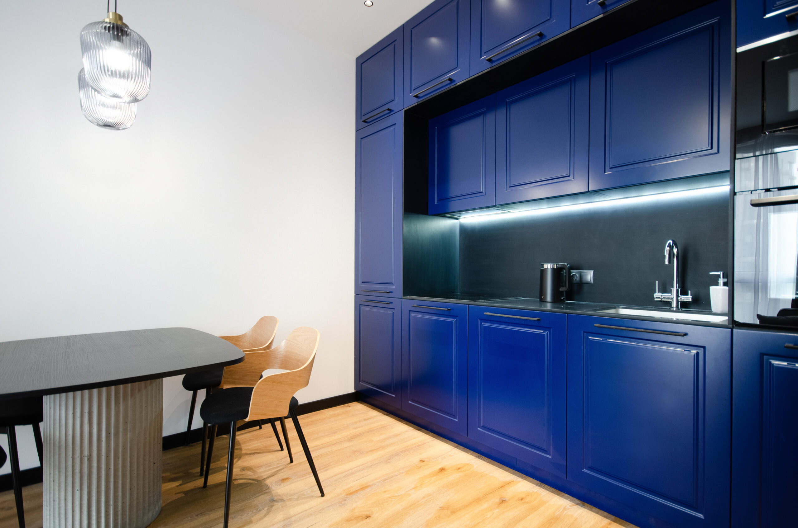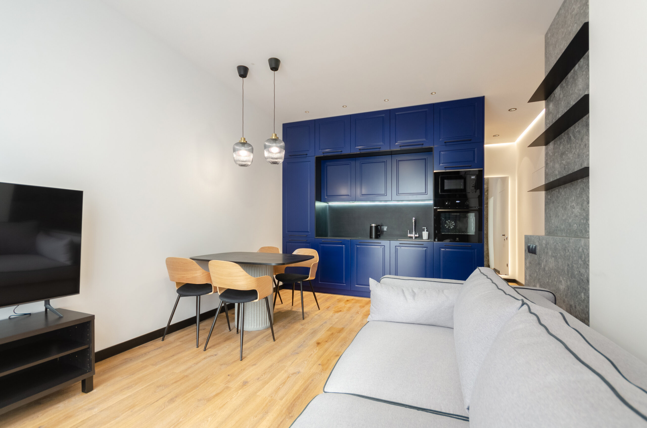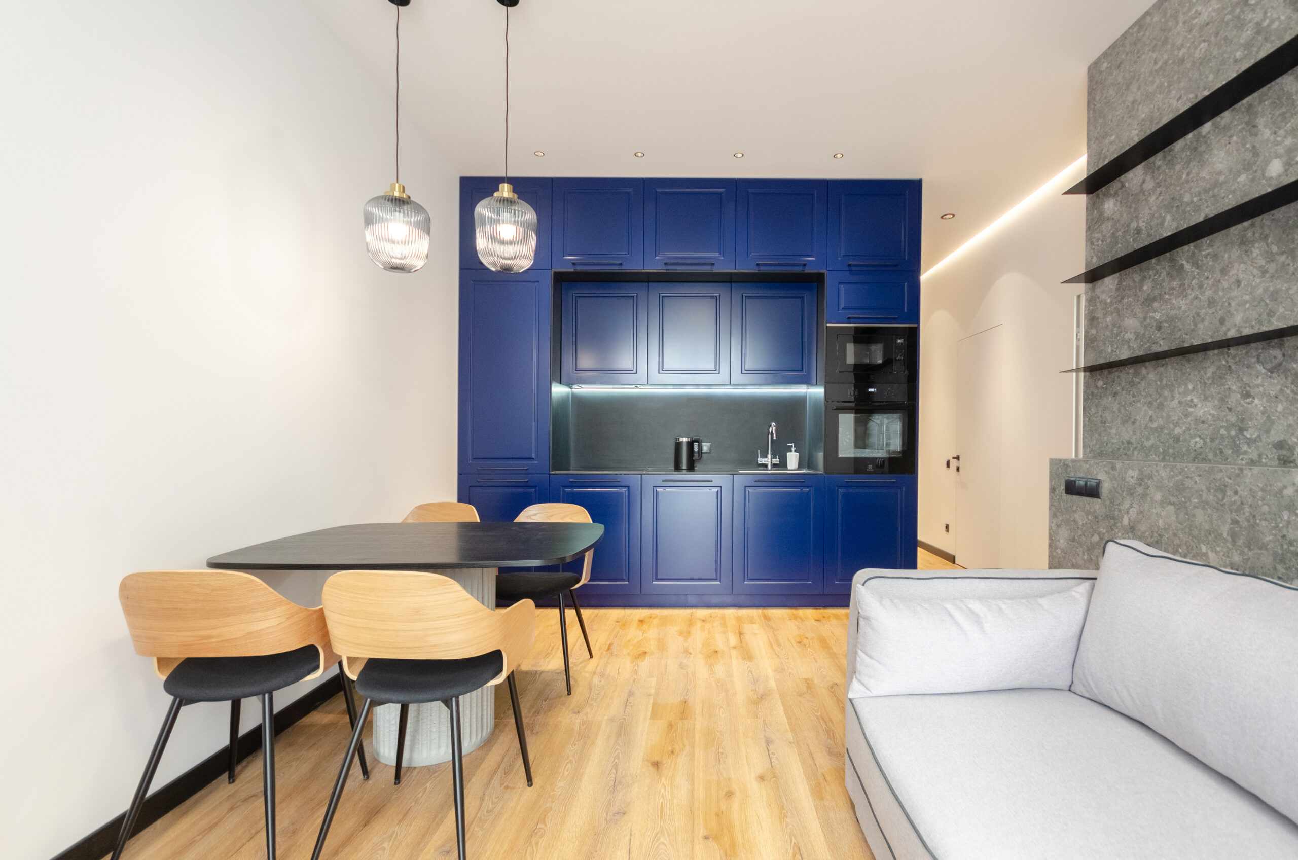 Modern apartment in dark blue colours in RC ”Yaroslaviv Grad”