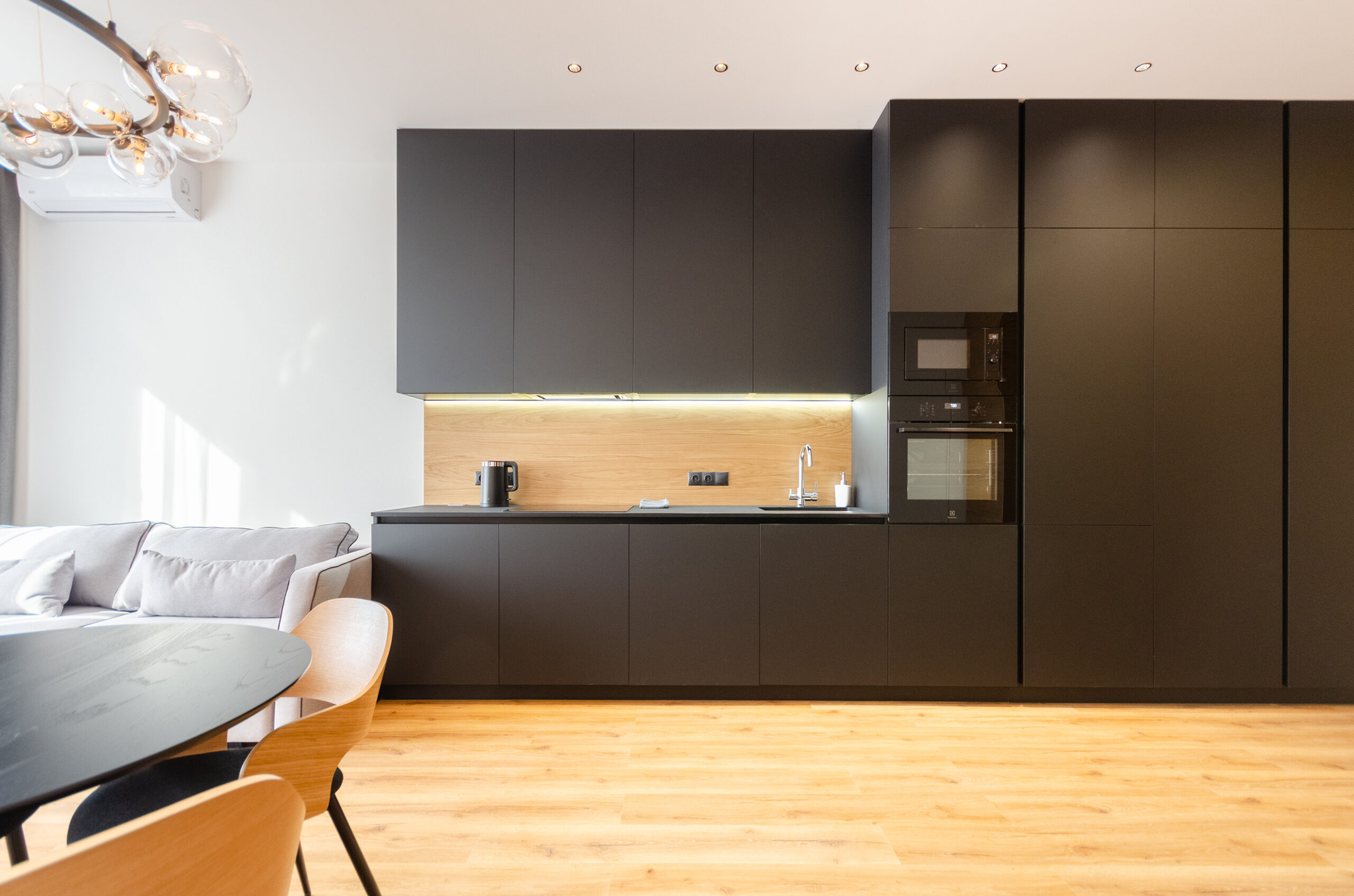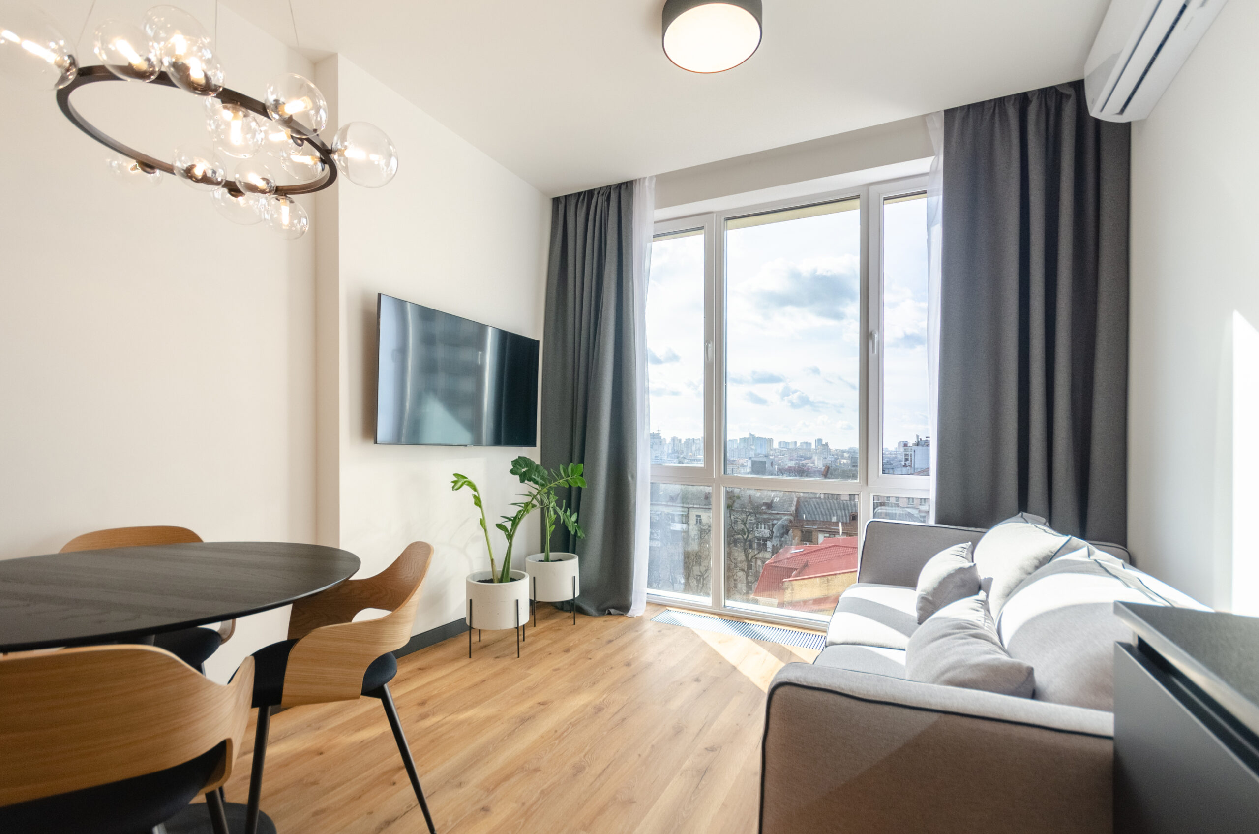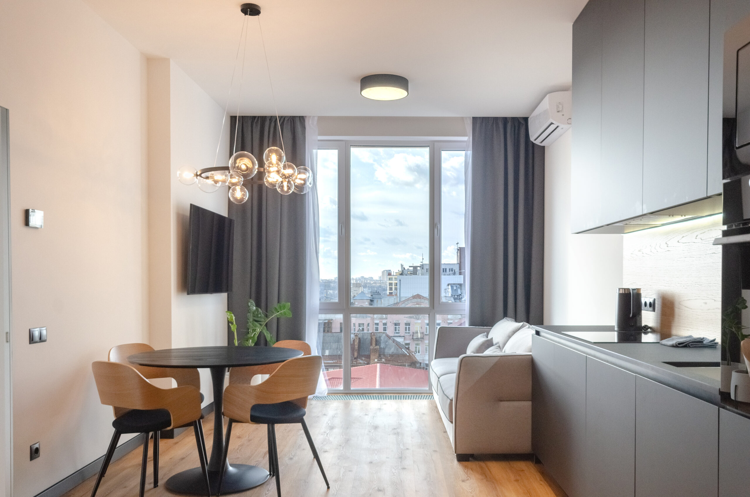 A stylish apartment with a designer renovation in the center of Kyiv, in the new Yaroslaviv Grad complex, which was built in 2020. Only after repair. Modern design, great view from the panoramic windows. The residential complex has round-the-clock security. There is an underground parking lot in the building.