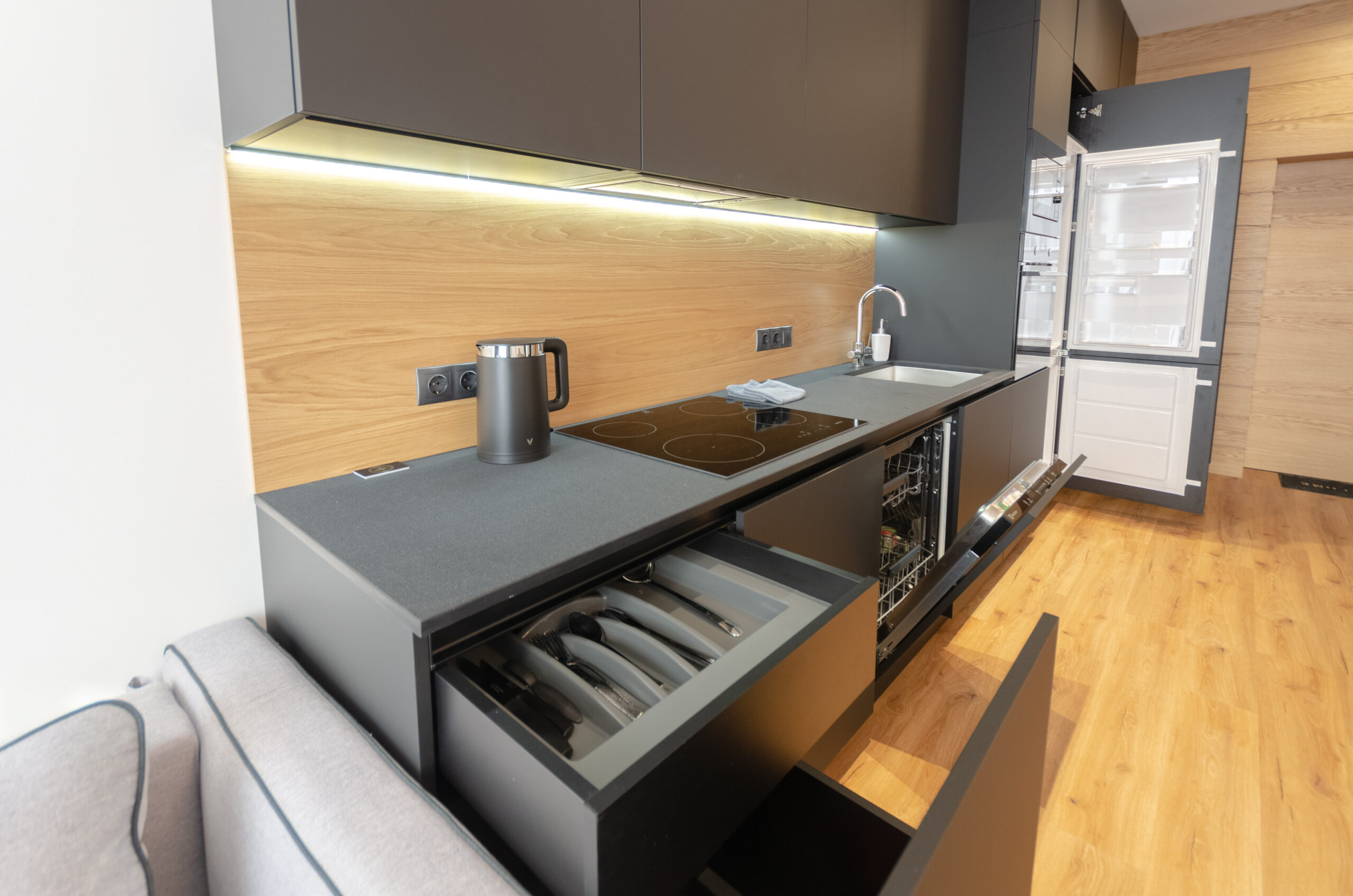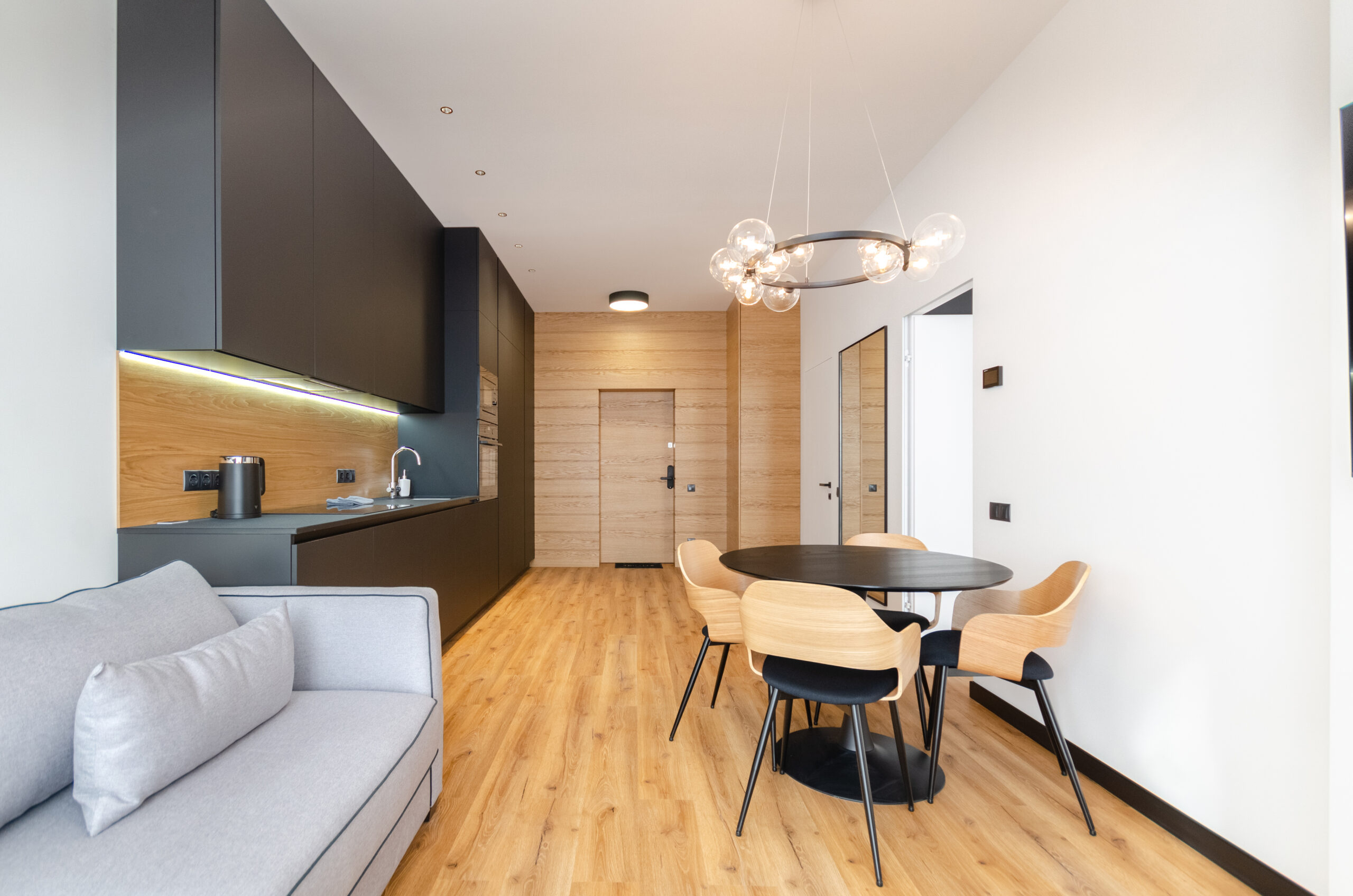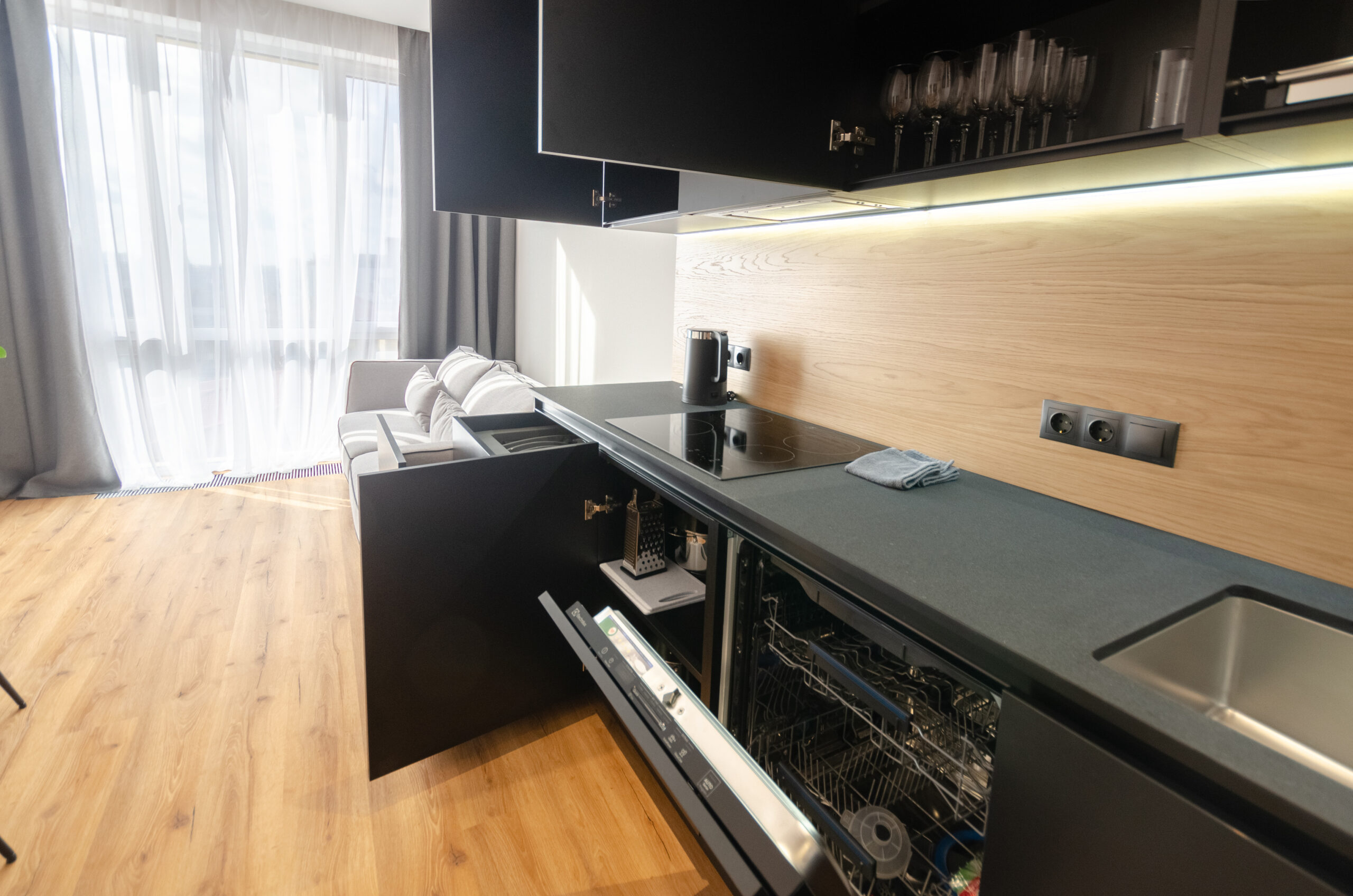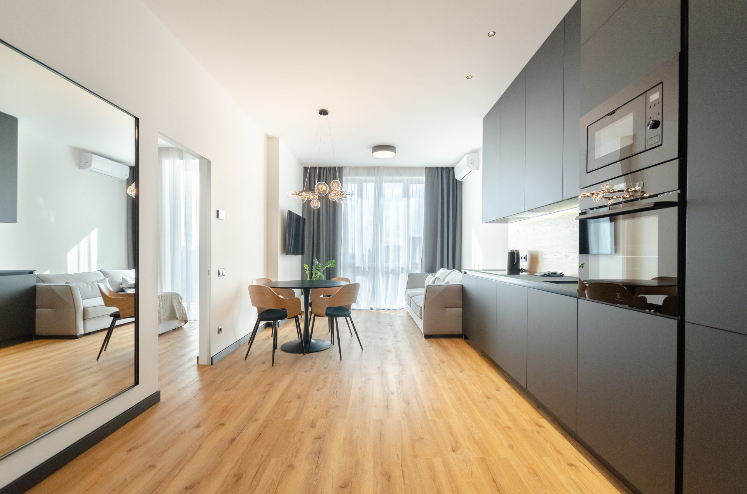 A stylish apartment with a designer renovation in the center of Kyiv, in the new Yaroslaviv Grad complex, which was built in 2020. Only after repair. Modern design, great view from the panoramic windows. The residential complex has round-the-clock security. There is an underground parking lot in the building.