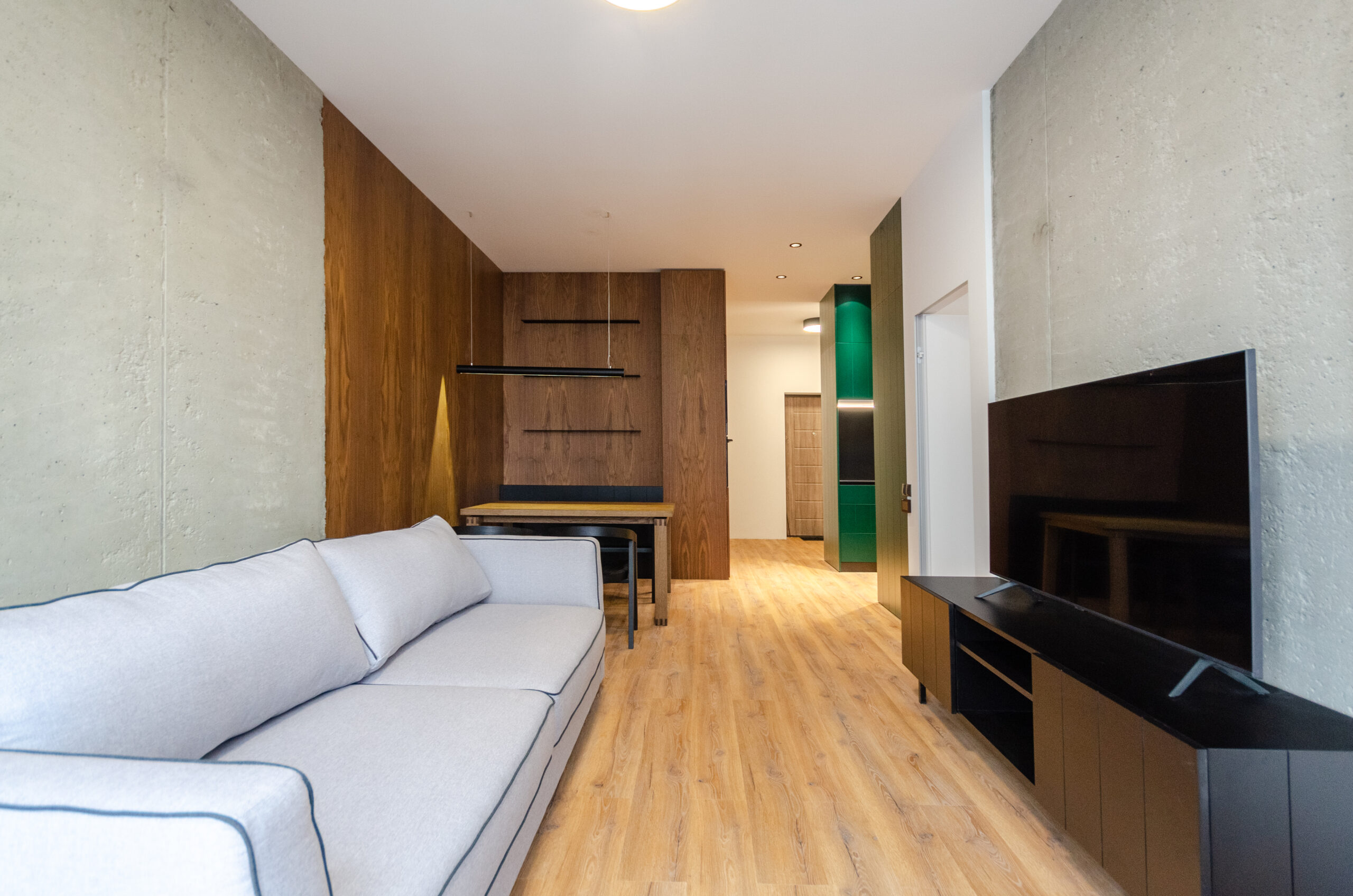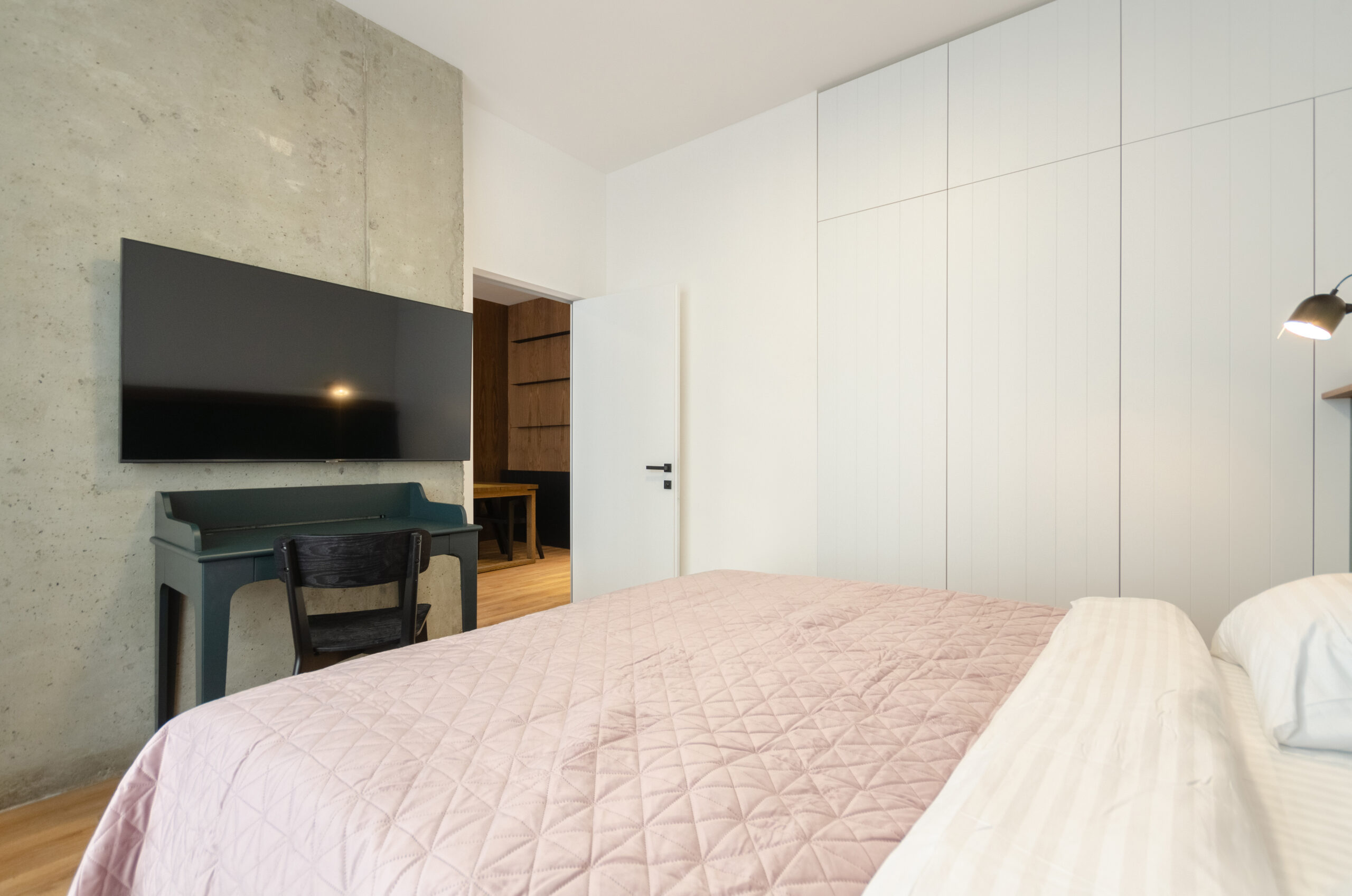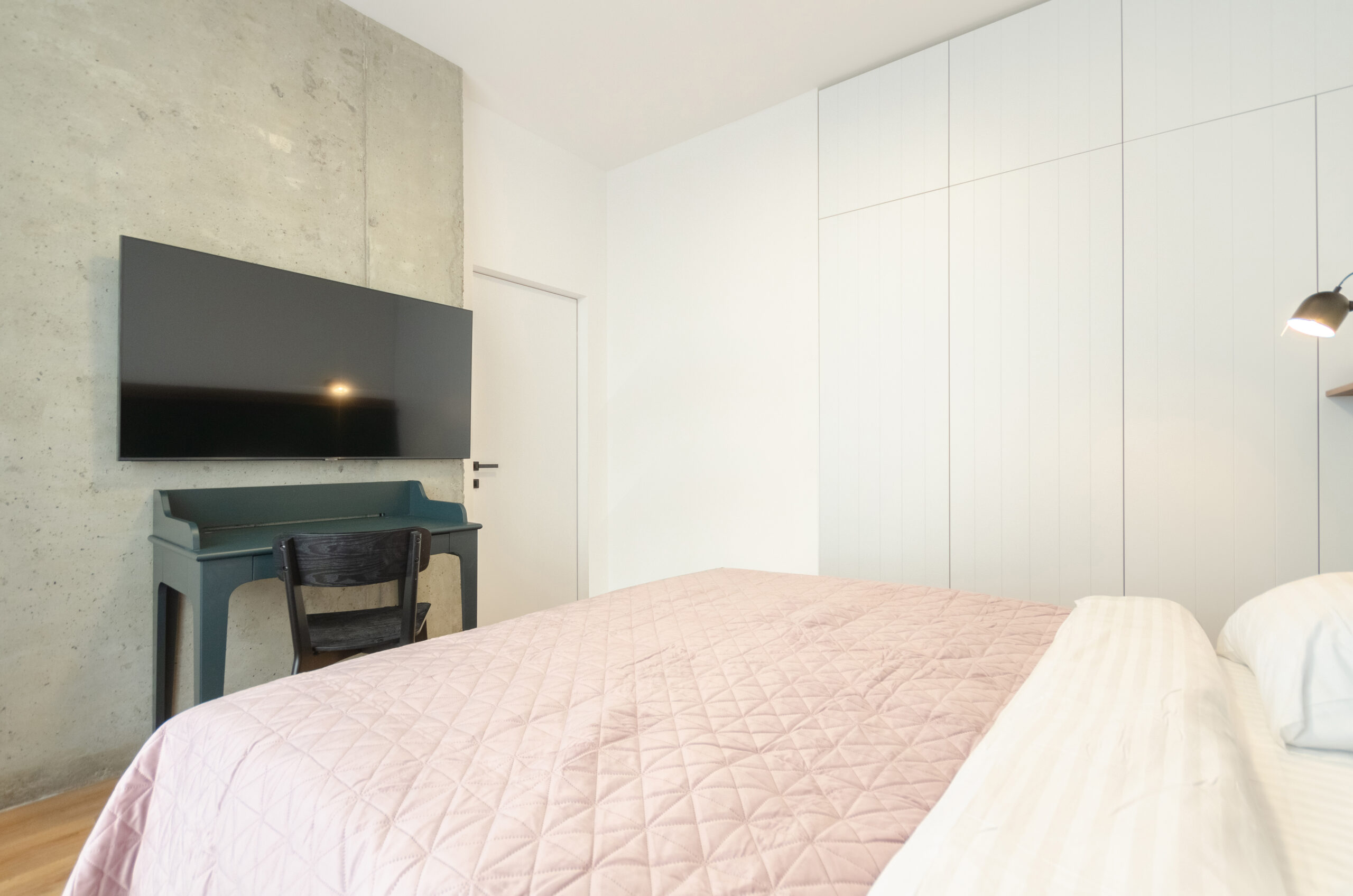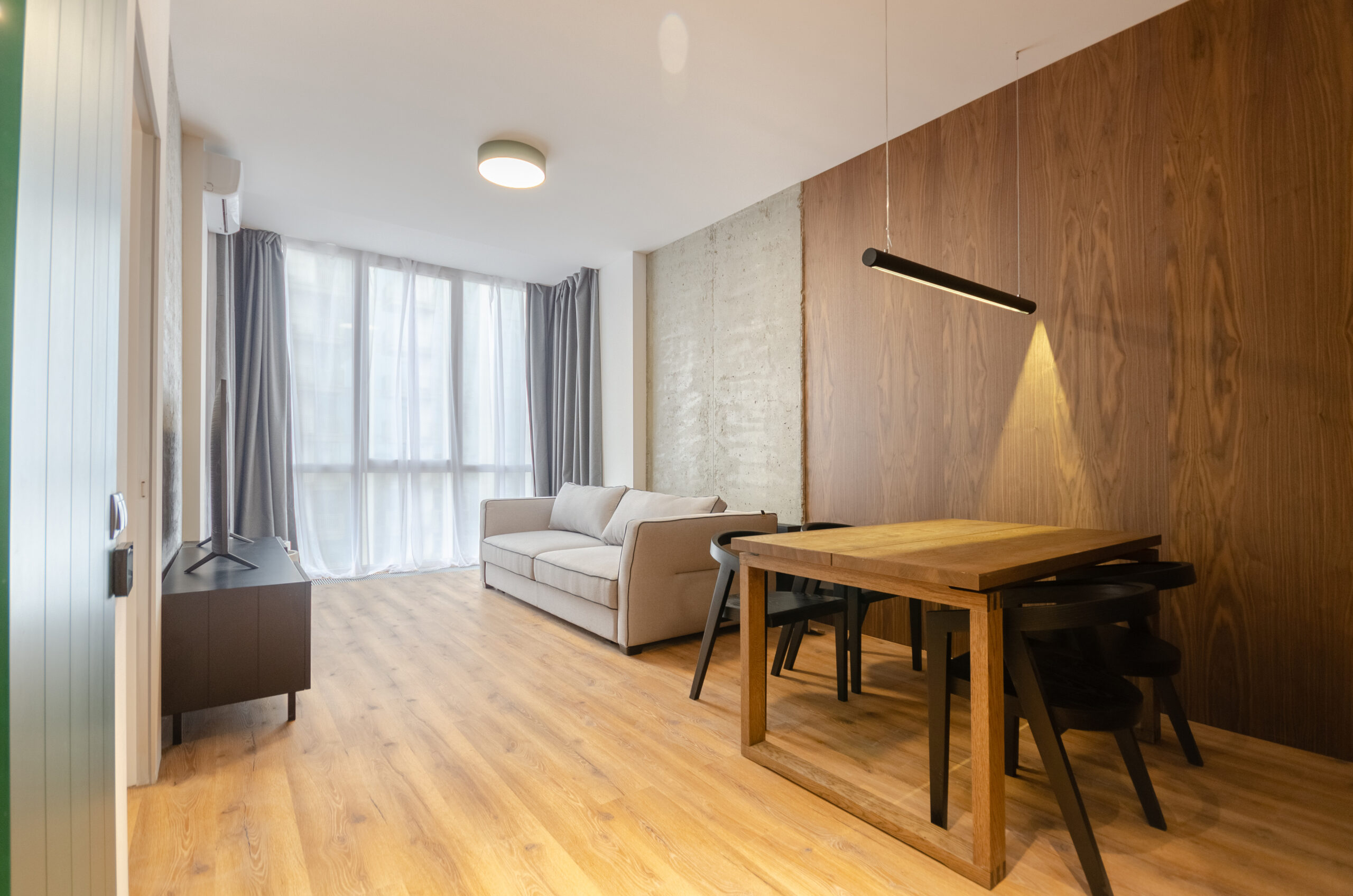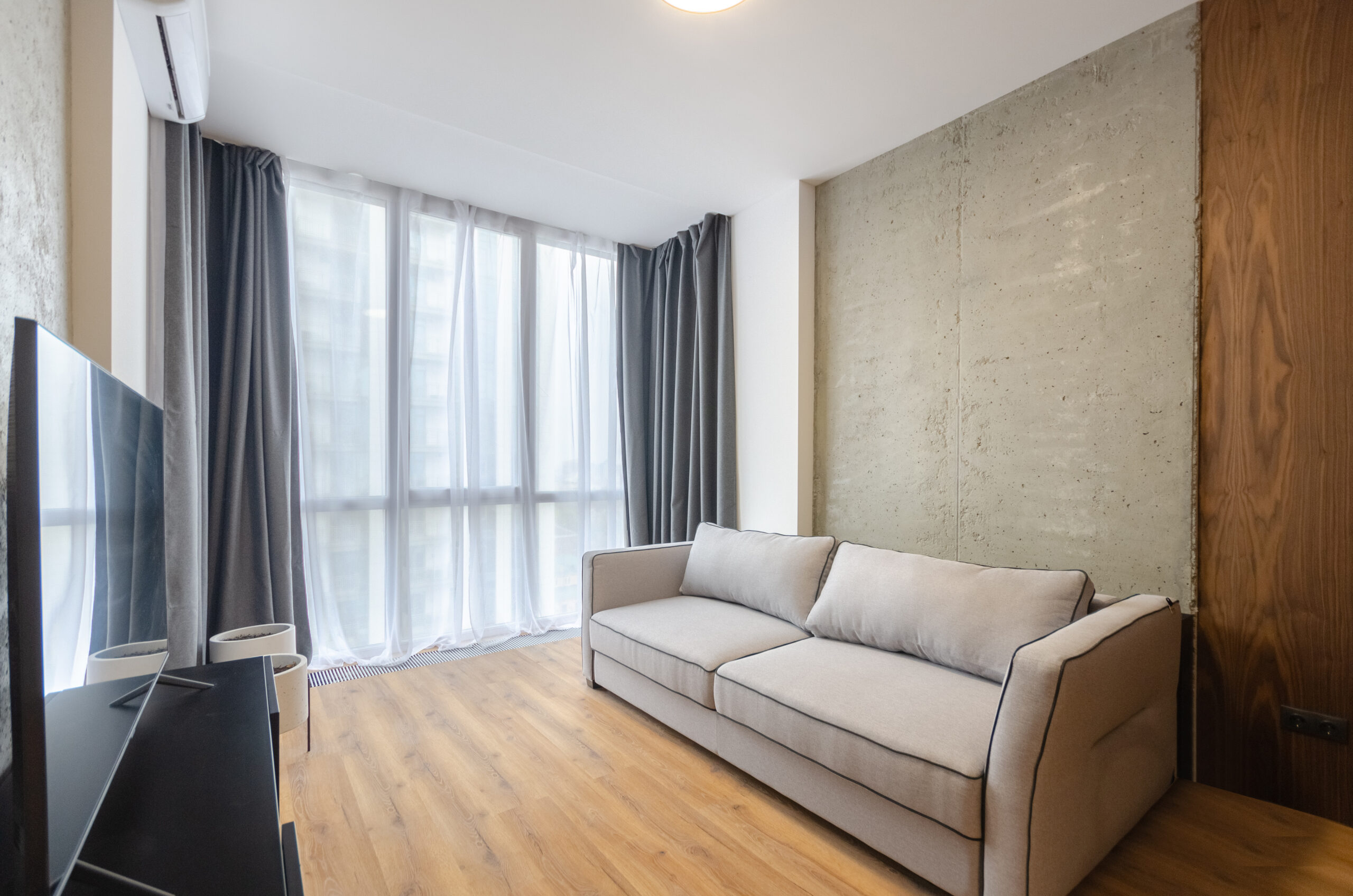 The apartment is located on the 10th floor, has an area of 55 m2, has a separate bedroom, a living room-kitchen with a panoramic view of Kyiv and a bathroom.The apartment has bedding, all the necessary dishes, small household appliances – everything for a comfortable stay for any period.