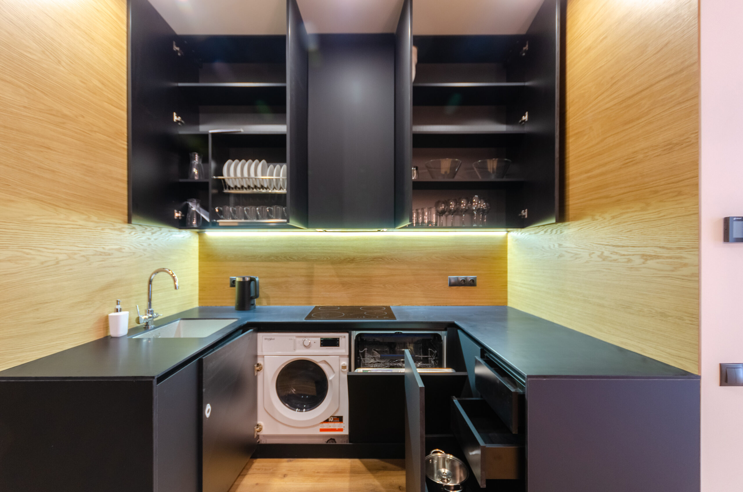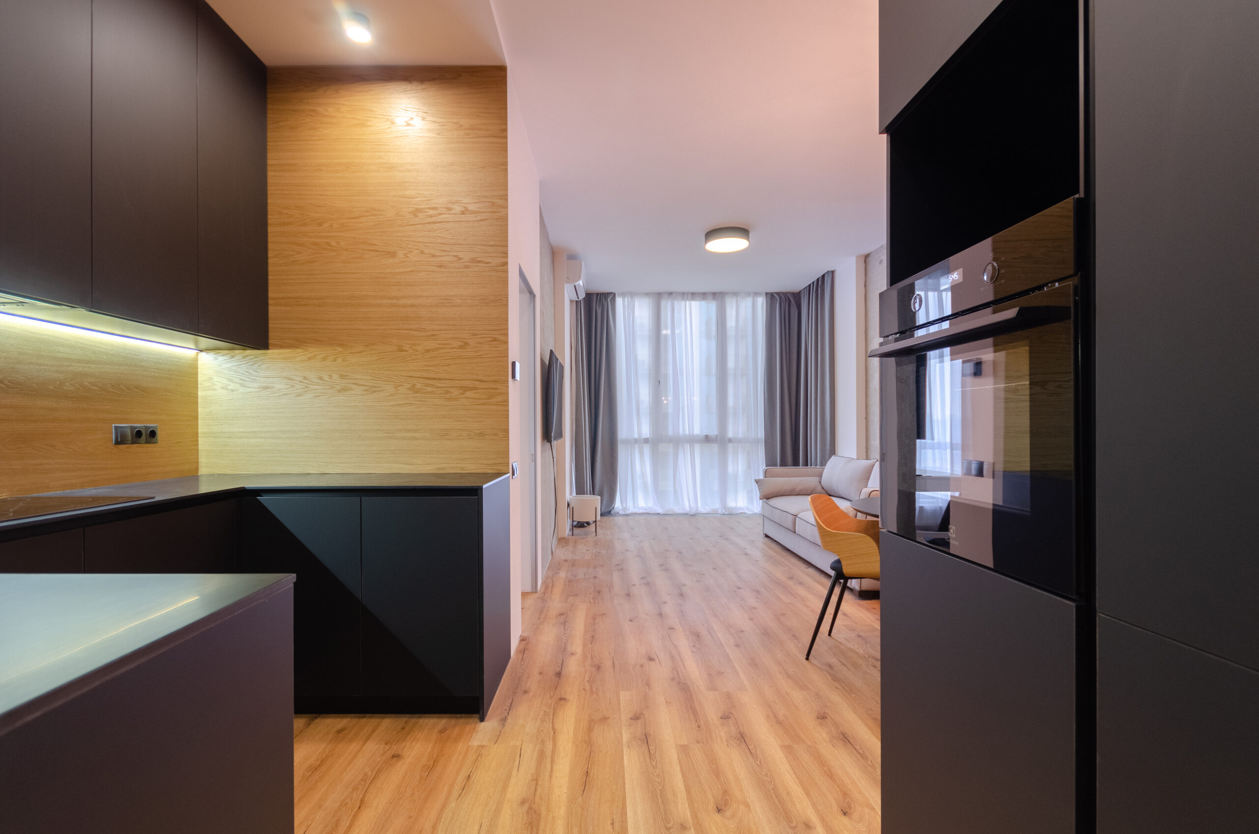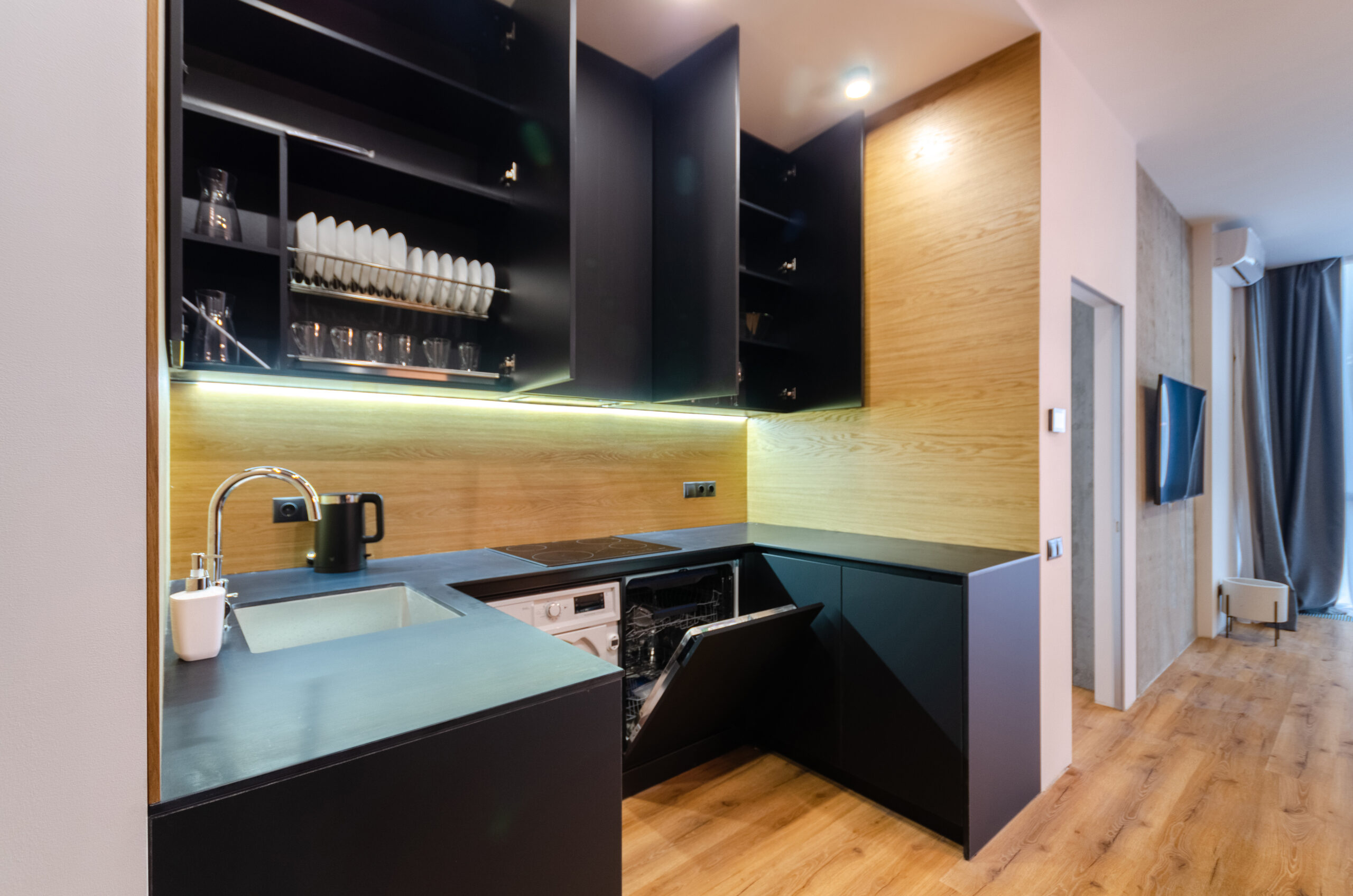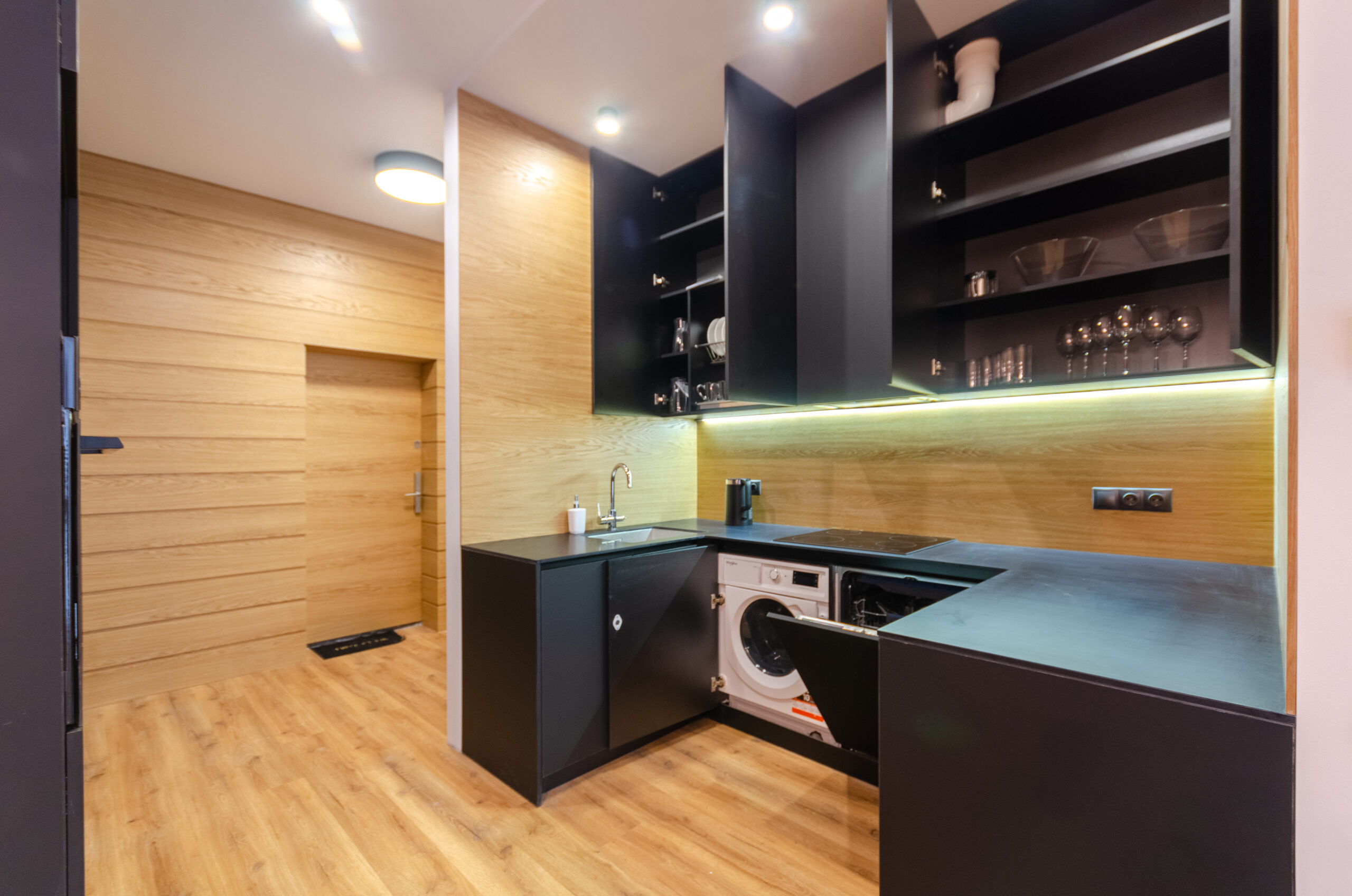 The apartment has bedding, all the necessary dishes, small household appliances – everything for a comfortable stay for any period.