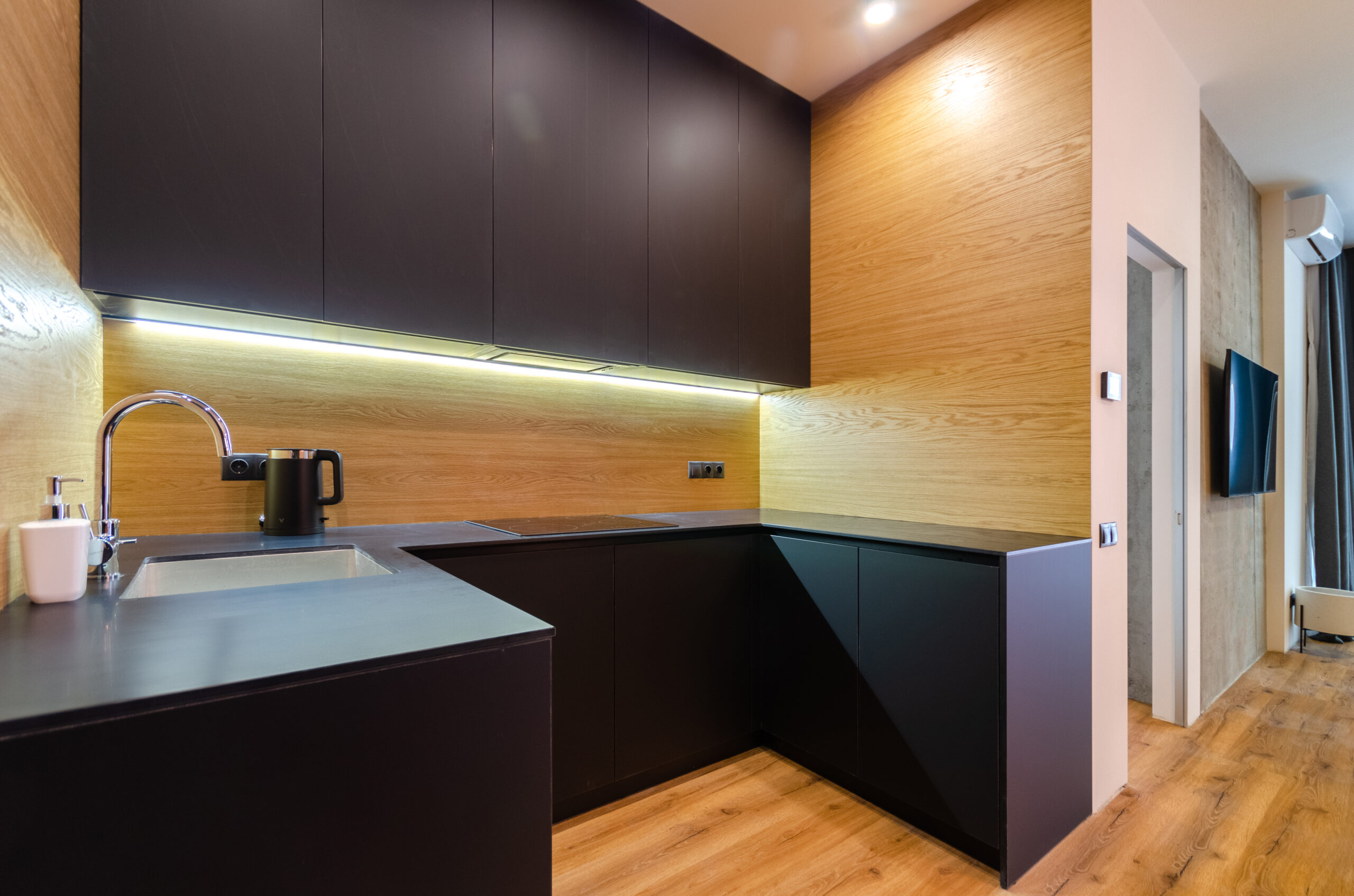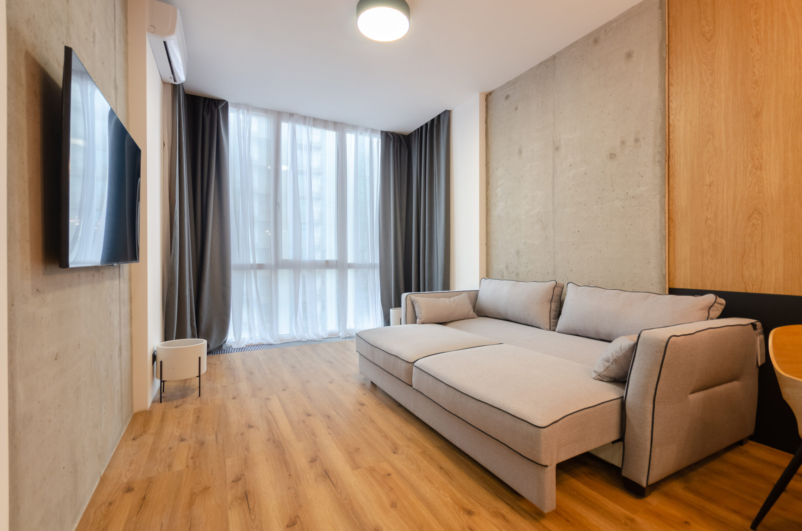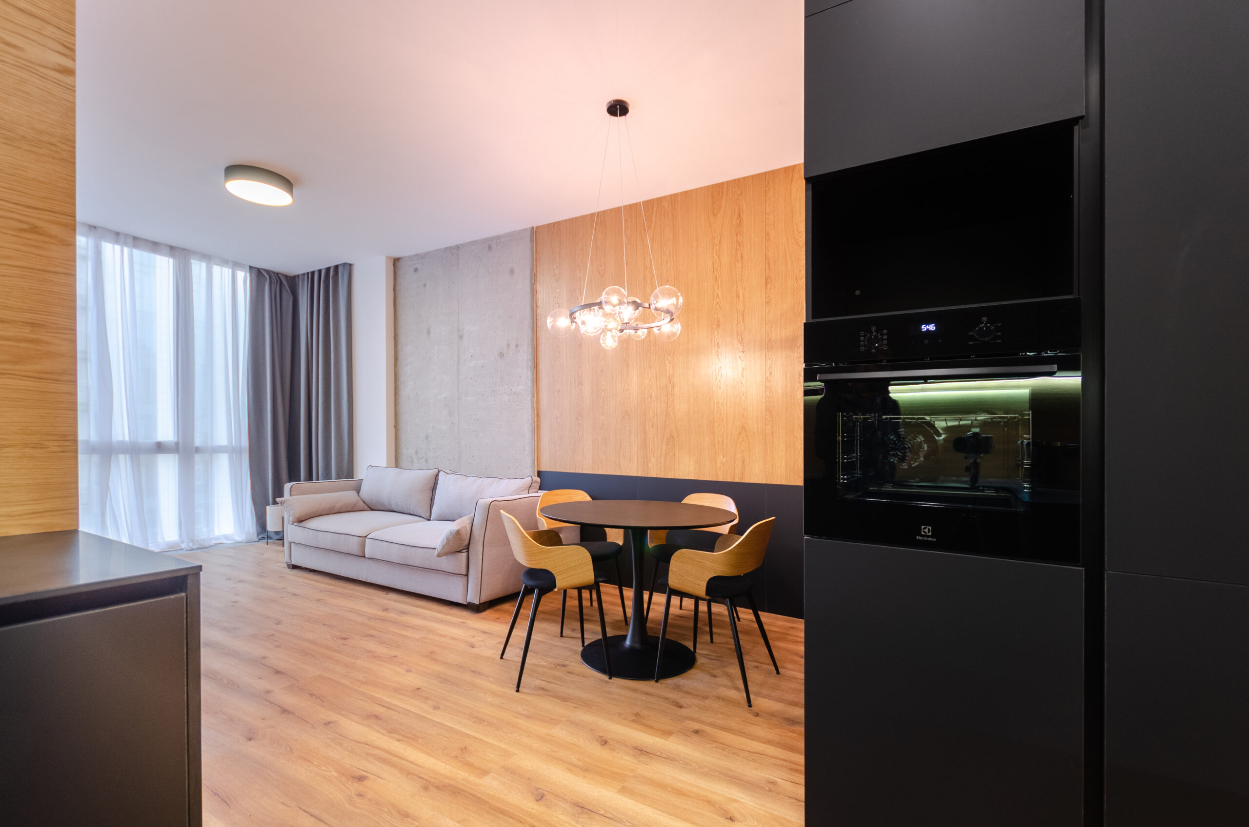 The apartment has bedding, all the necessary dishes, small household appliances – everything for a comfortable stay for any period.