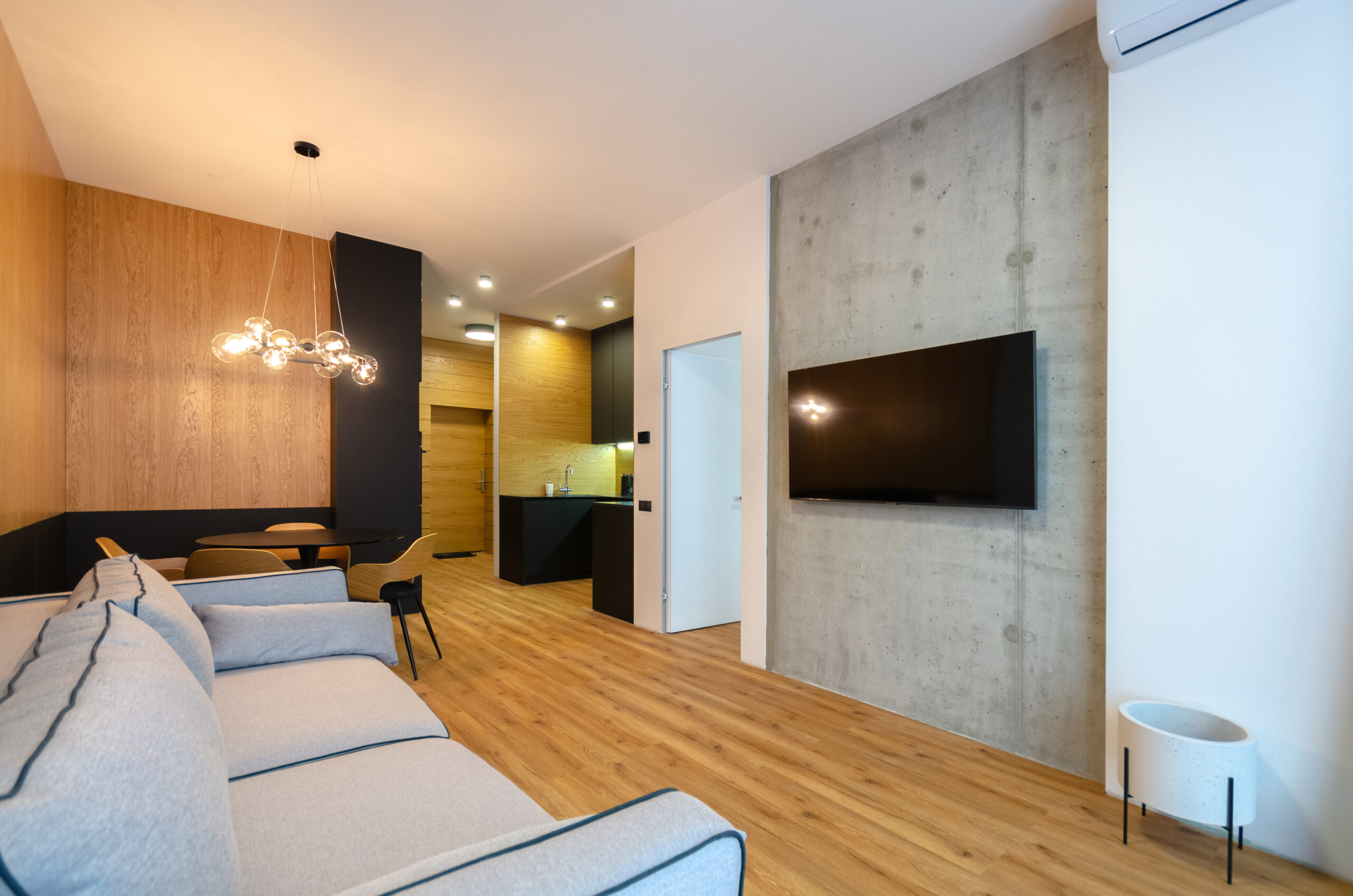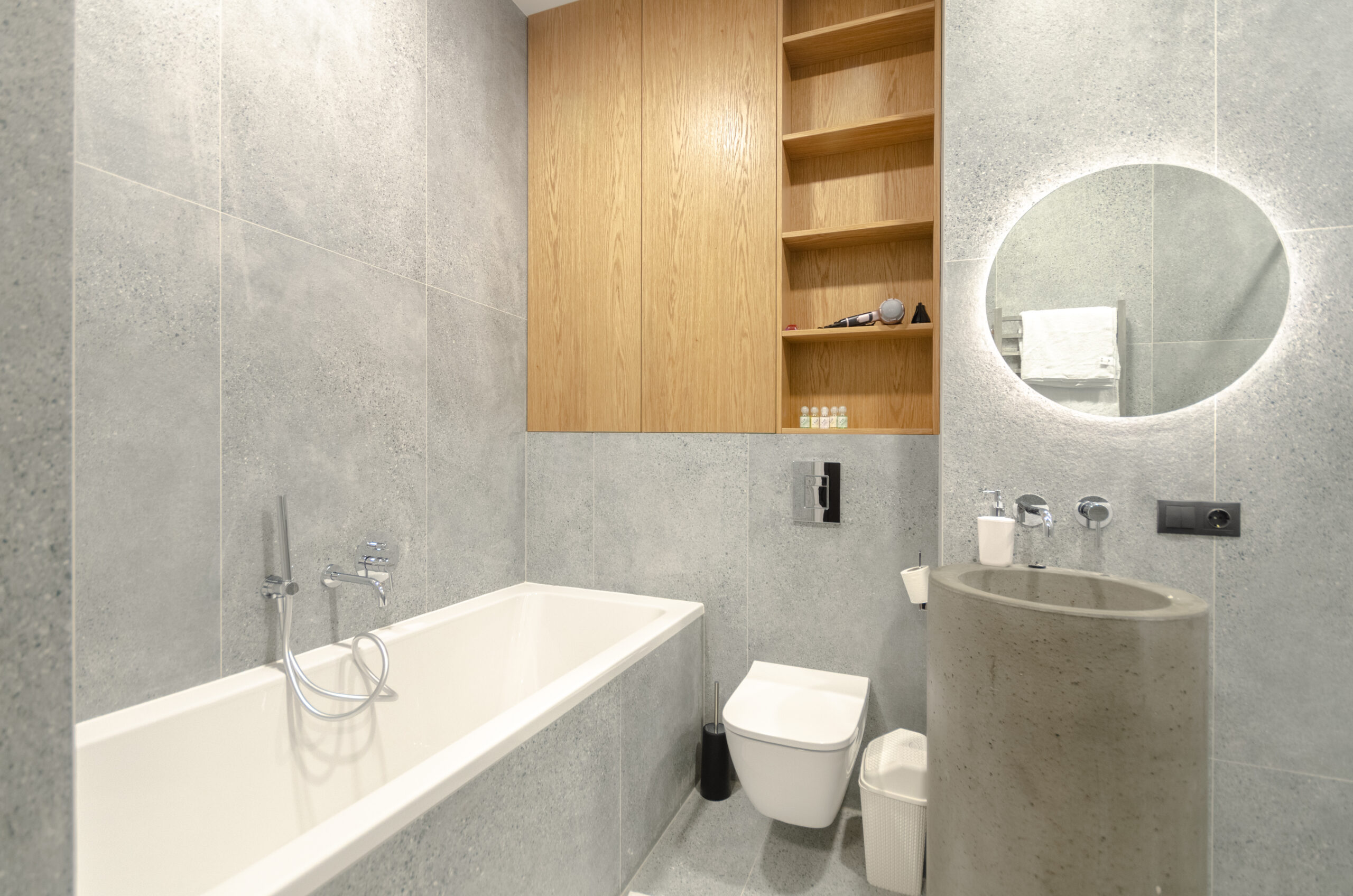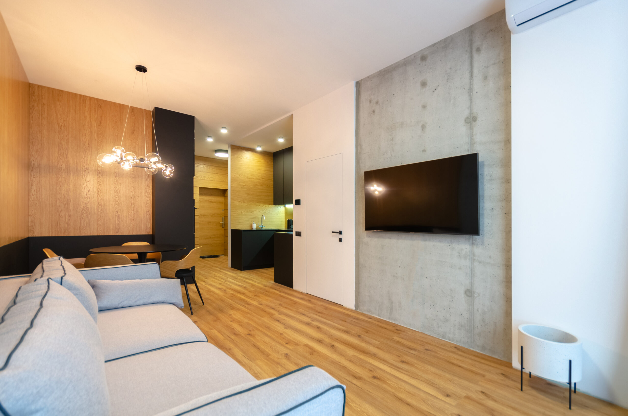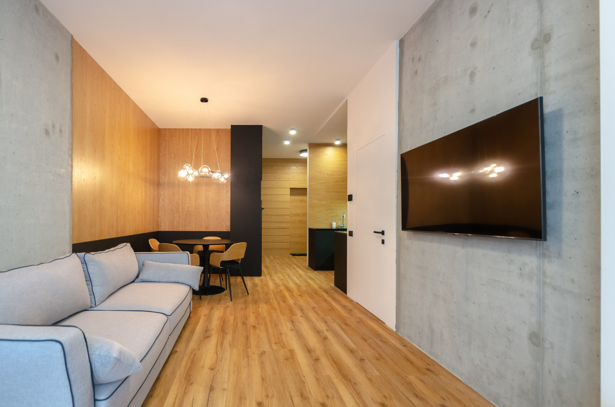 The apartment has bedding, all the necessary dishes, small household appliances – everything for a comfortable stay for any period.