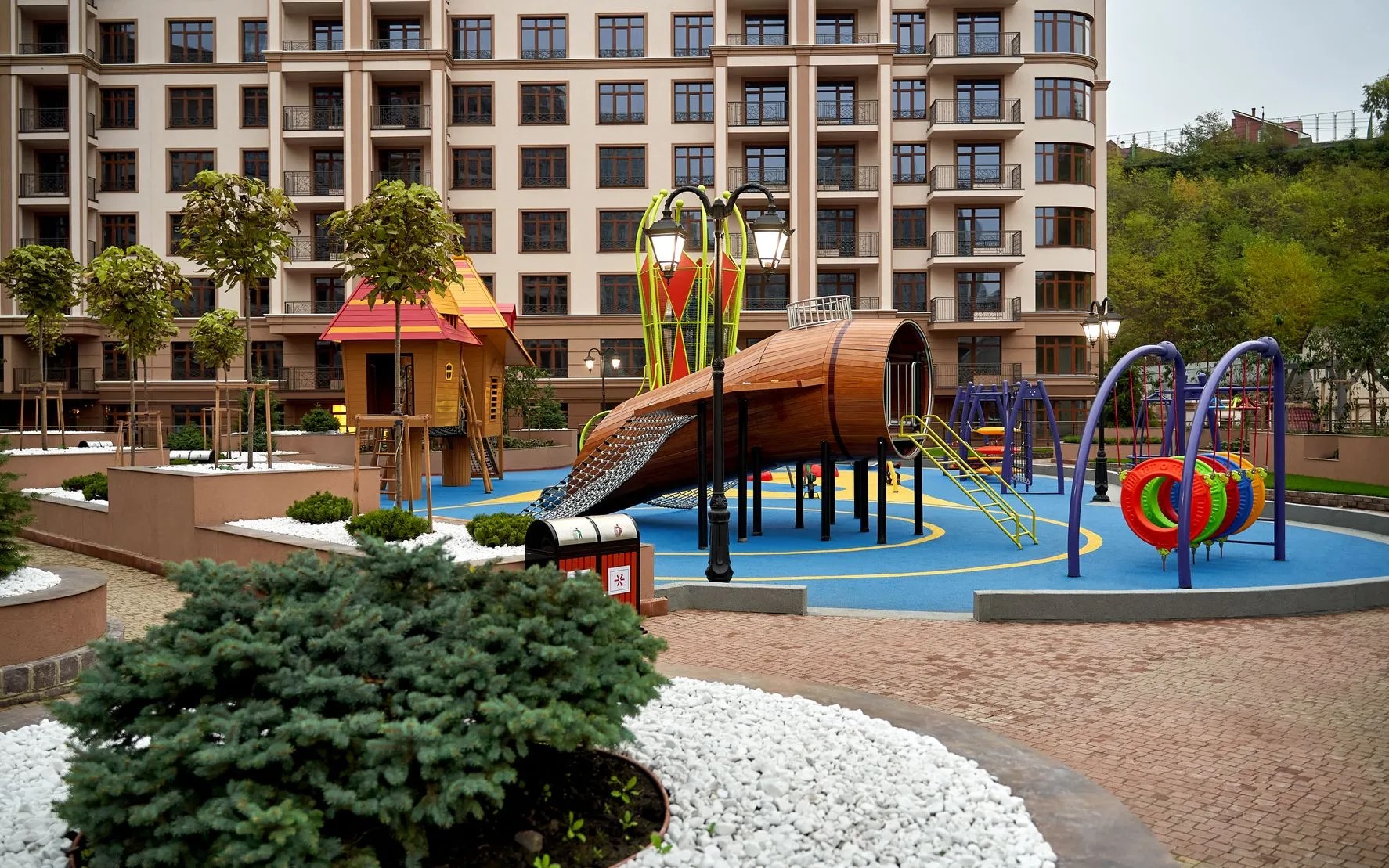 The RC Pechersk Plaza (Kador Perl 52) is located in the very center of Kyiv – in the Pechersky district, near the botanical garden. The windows offer a beautiful view of the green area. The complex is guarded around the clock. There is an underground parking lot in the building which can be used as shelter. Nearby are the best boutiques and shops, business sites, sports complexes and famous educational institutions.
