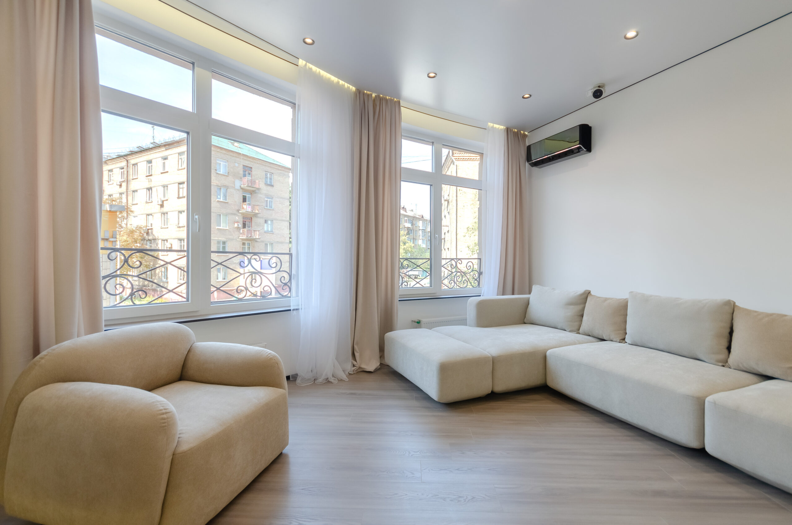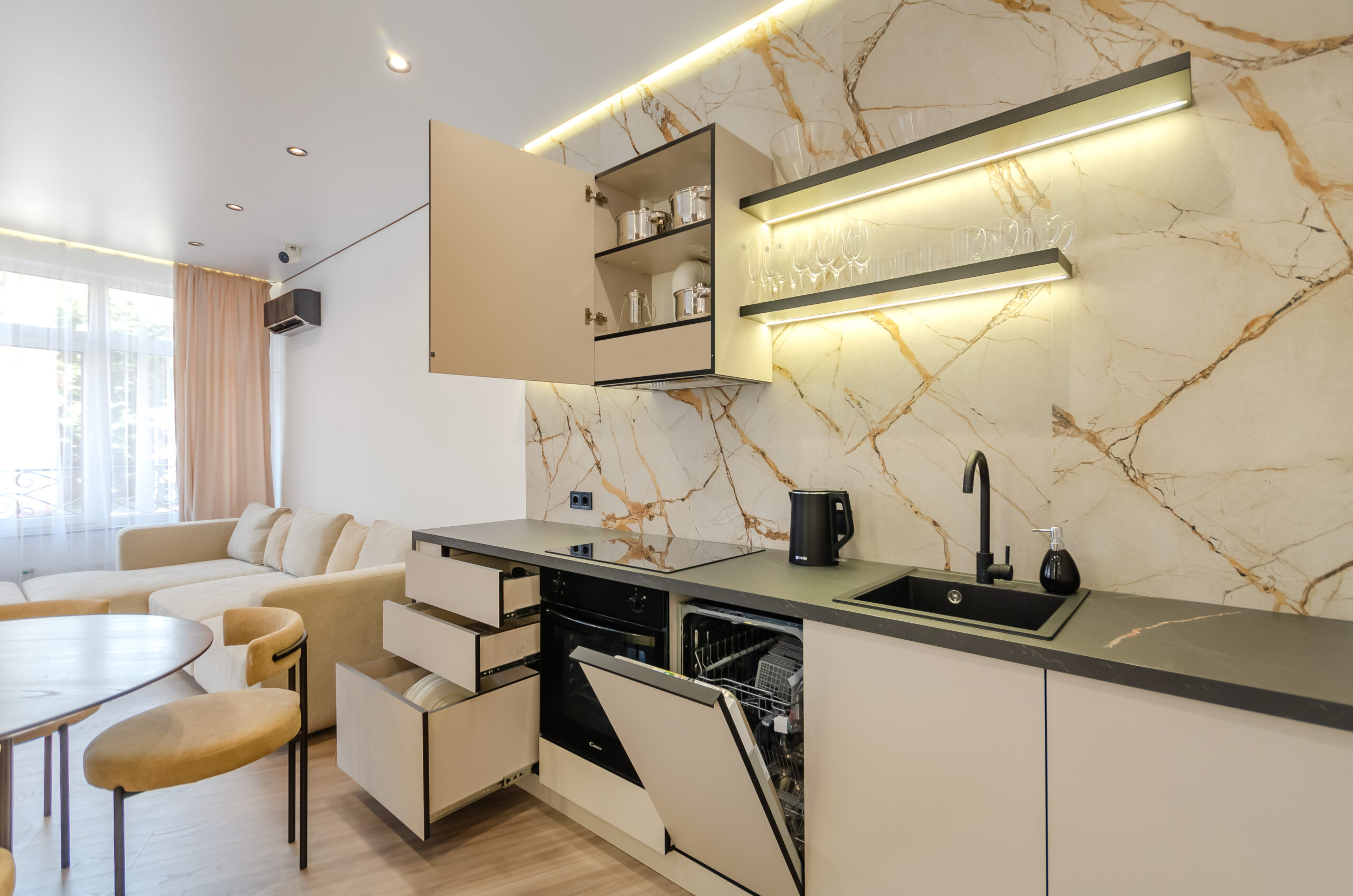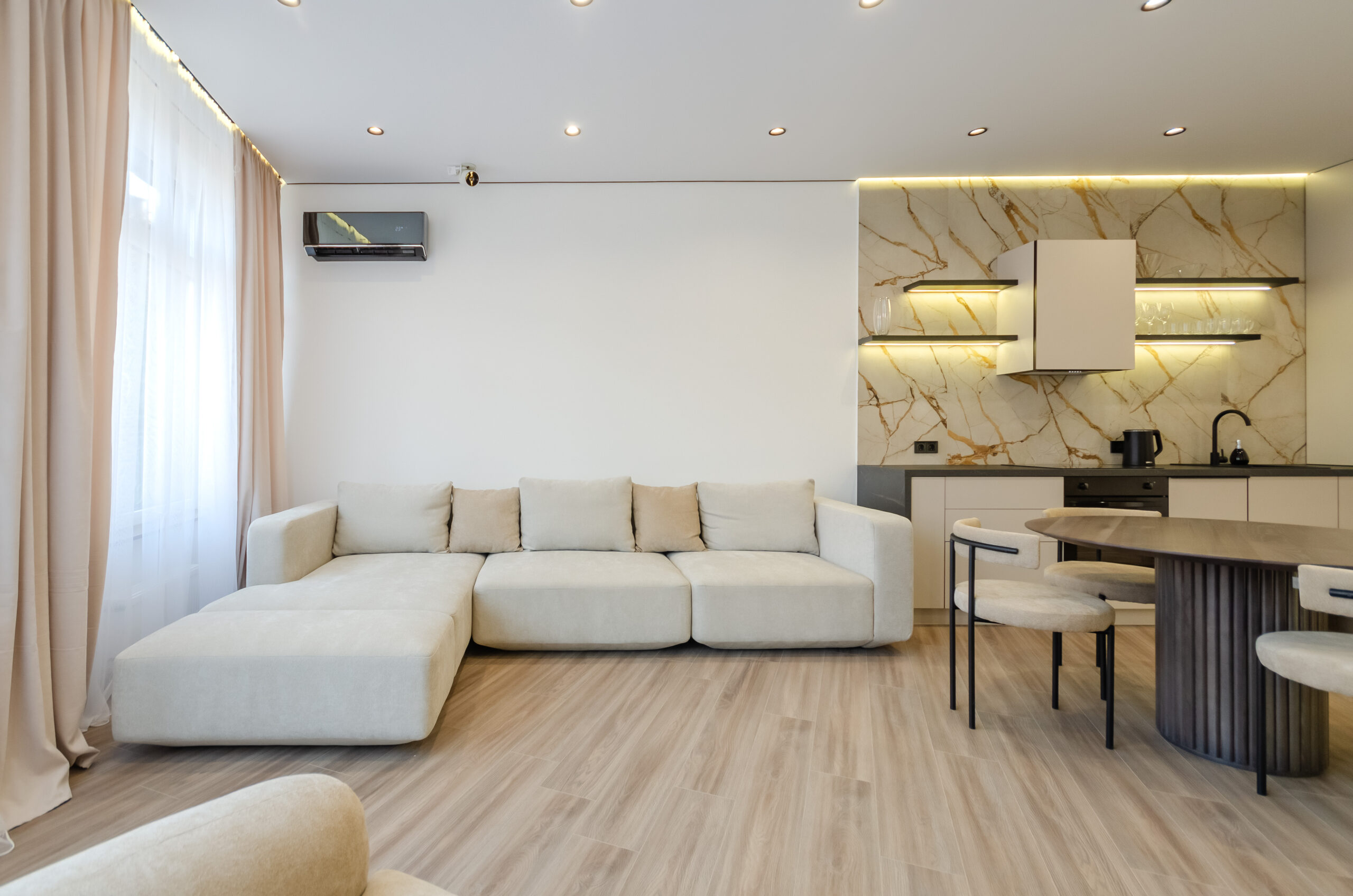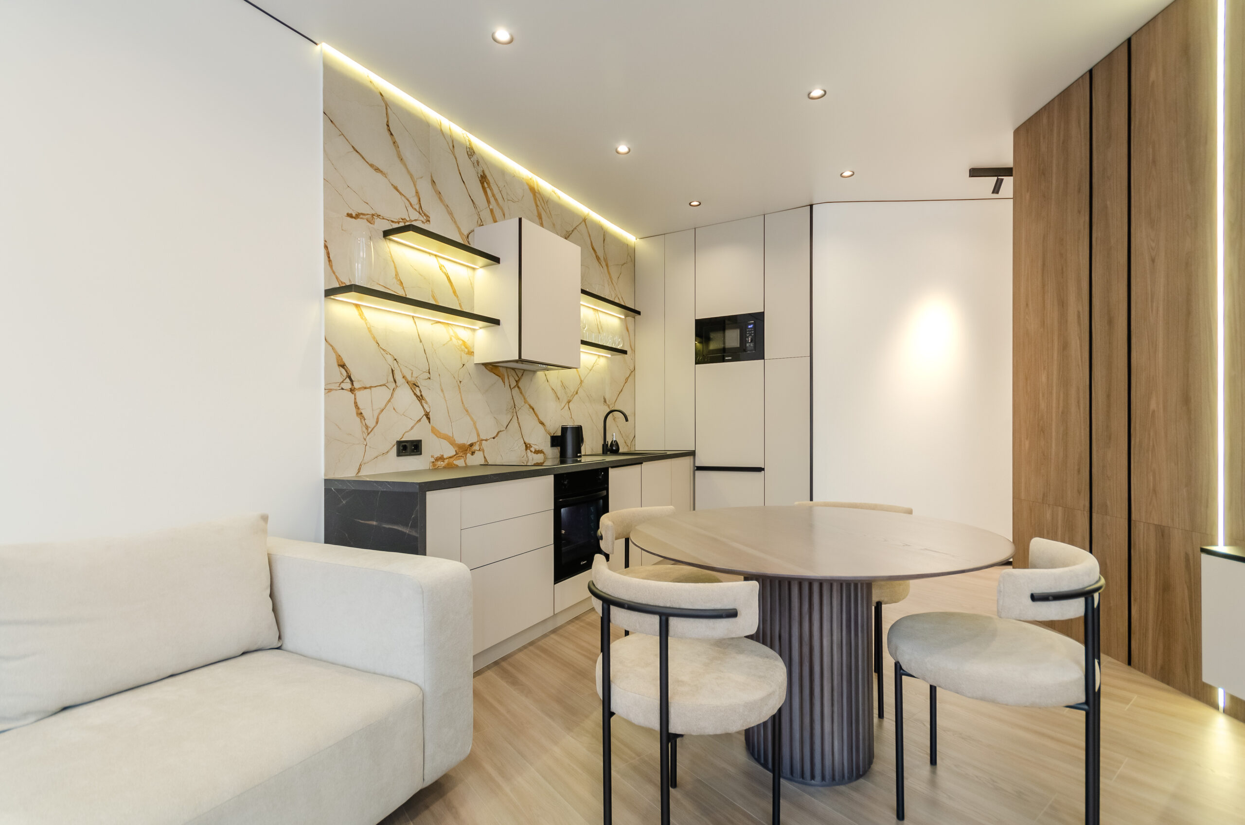 *Living room (divided into zones, including kitchen): soft large sofa ( berth160*200 cm),built -in projector to watch your favorite movies and series on the big screen board, an electric fireplace that adds a cozy atmosphere, an electric fireplace that adds a cozy atmosphere, air conditioning.