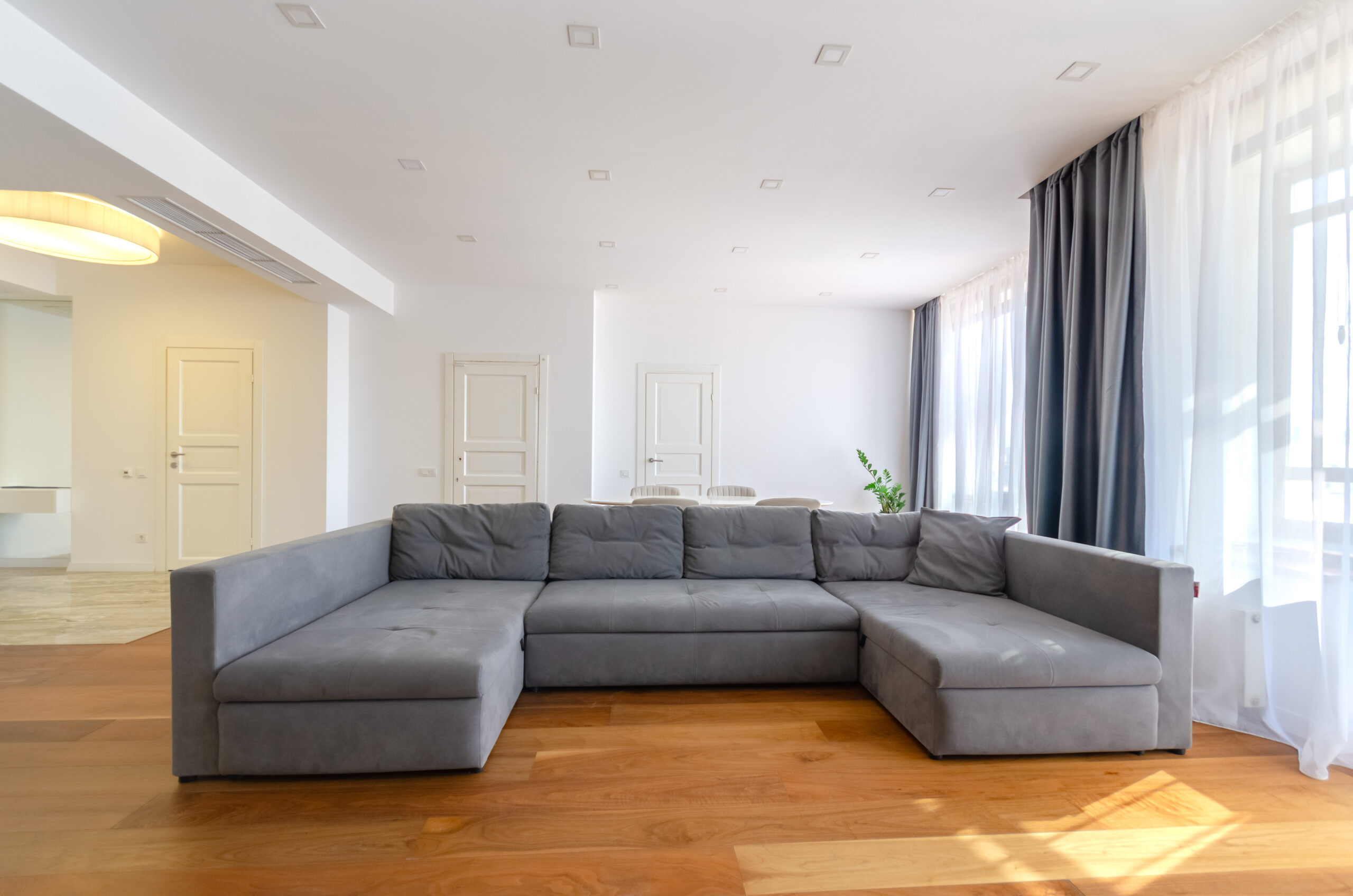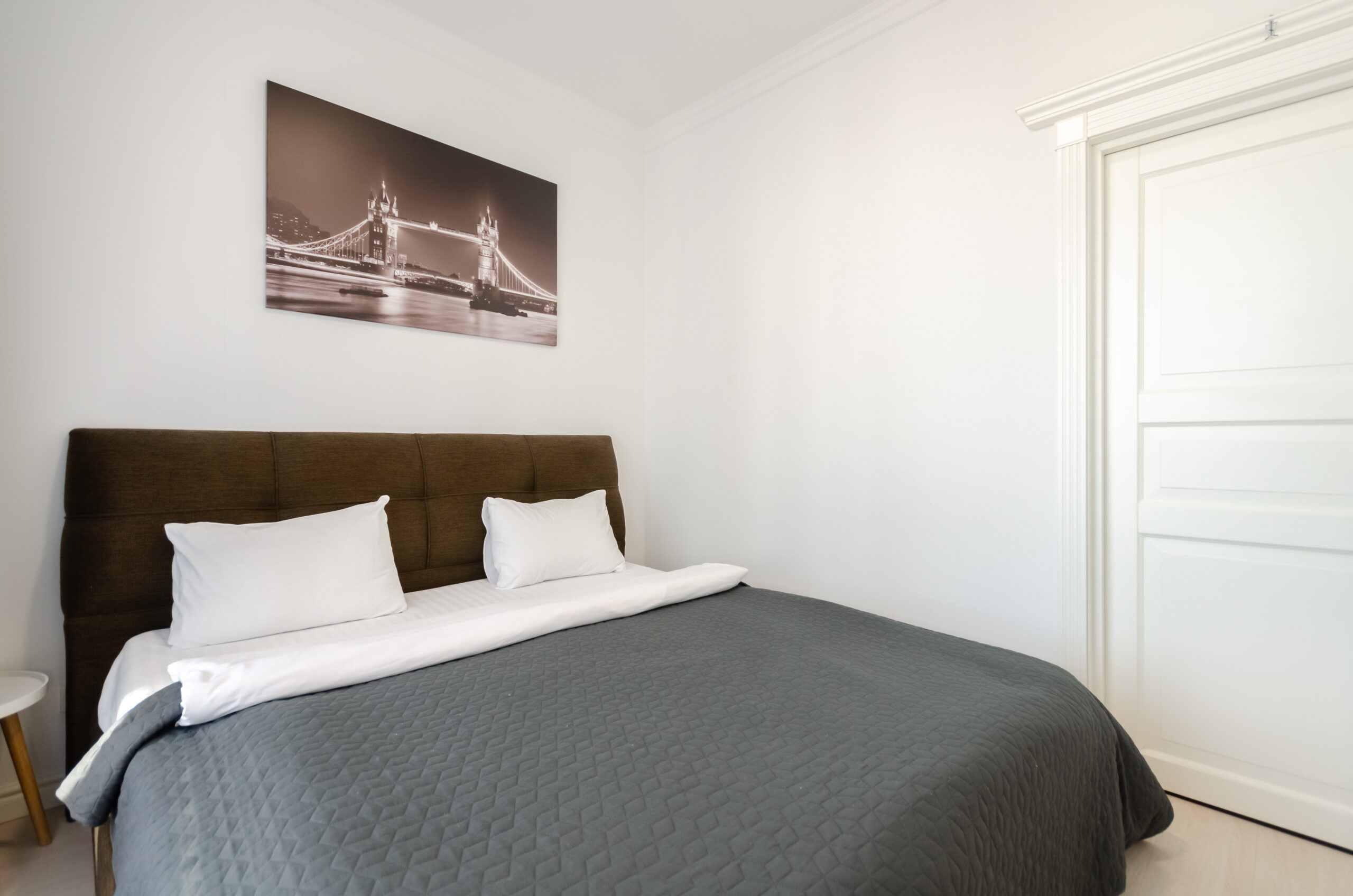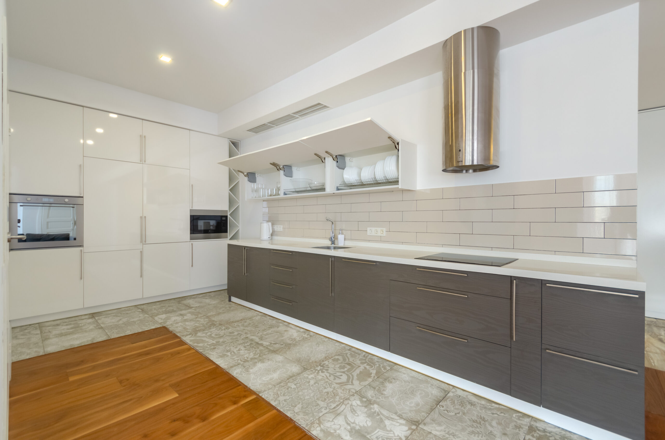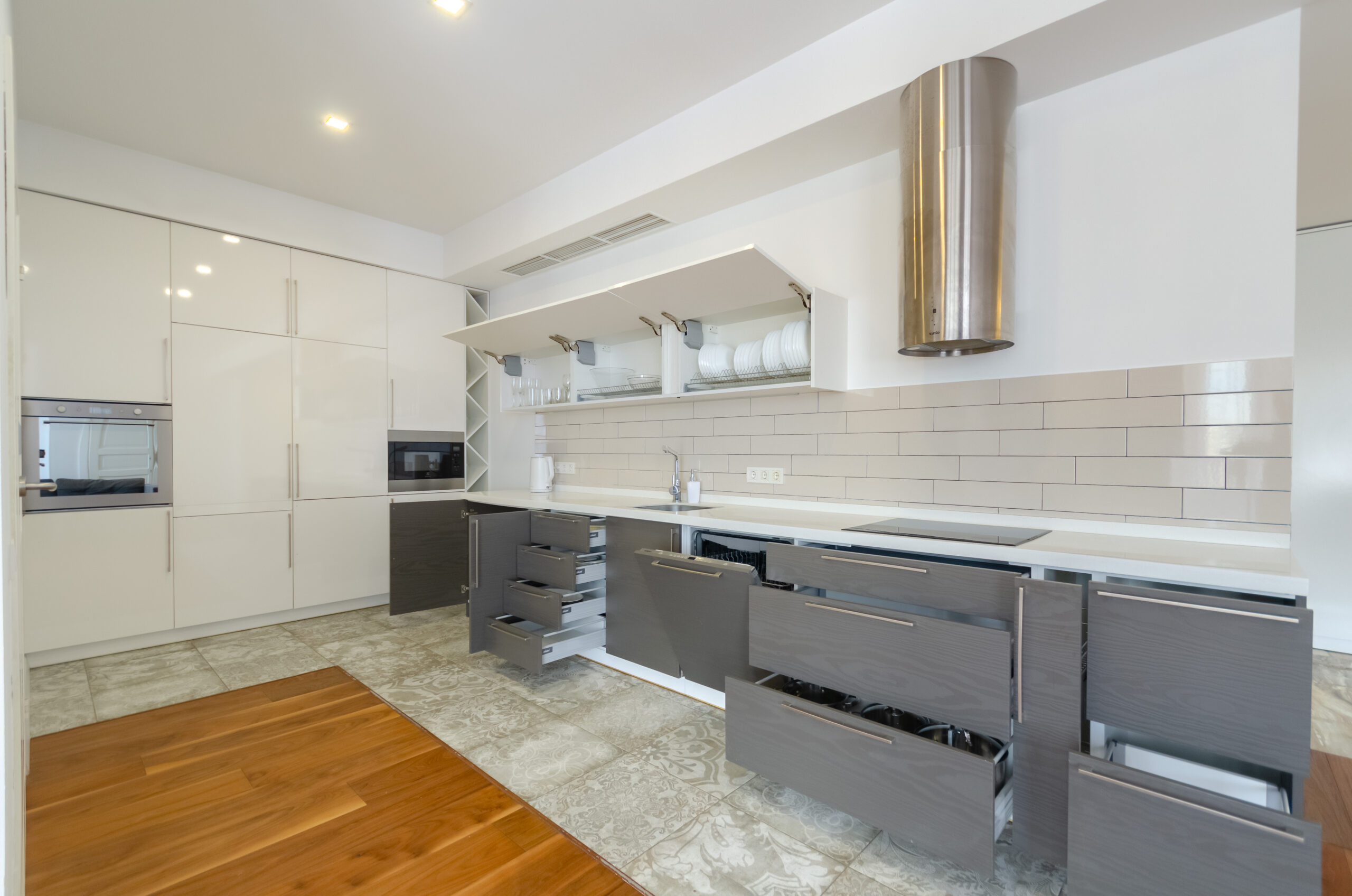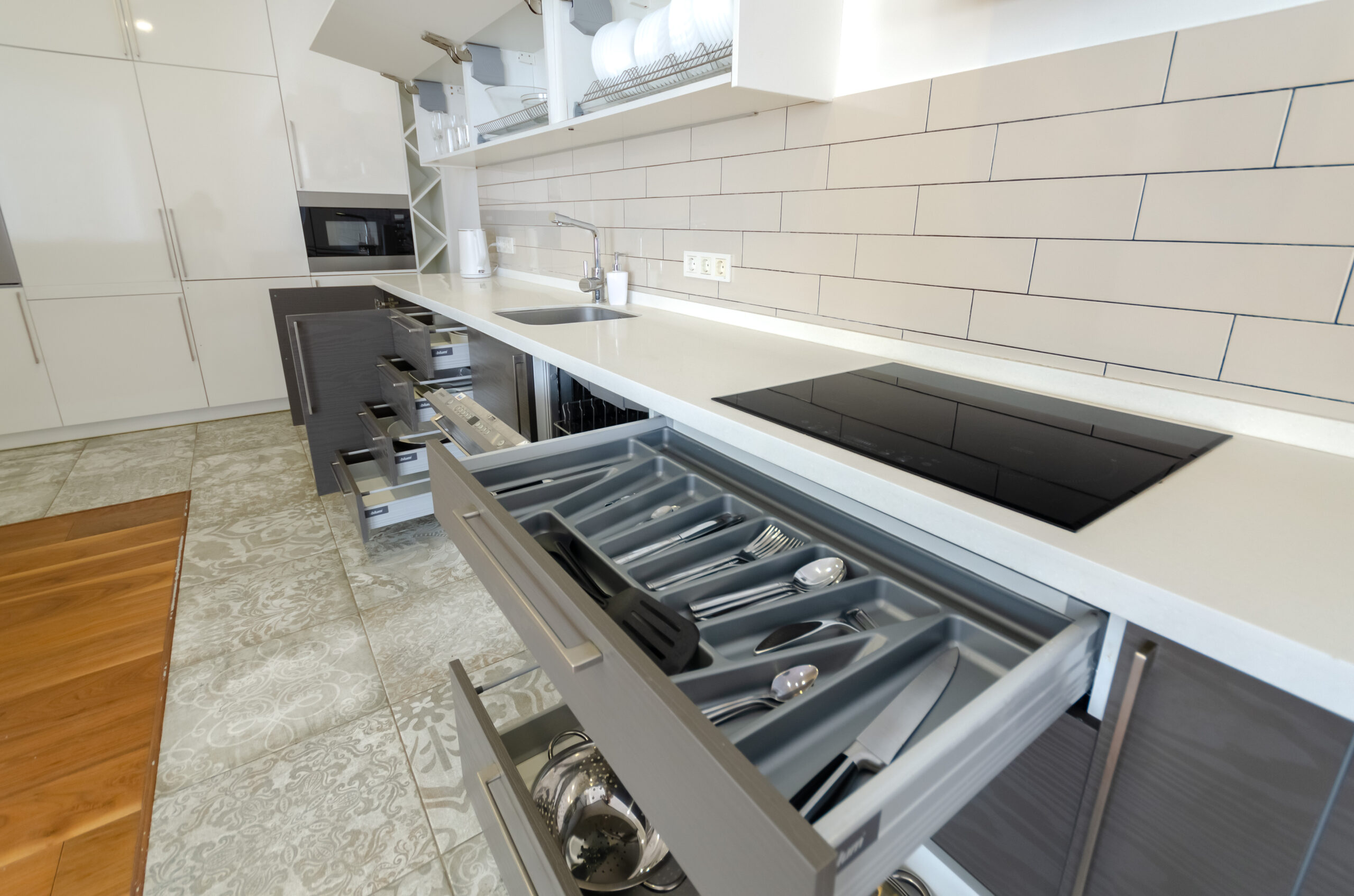 – living room (divided into zones, includes a kitchen): double sofa 160 * 200 cm, flat-screen TV, Smart-TV, kitchen (refrigerator, washing machine, microwave, kettle, electric stove, oven, pots, pans, all necessary utensils, cups, glasses, dining table.