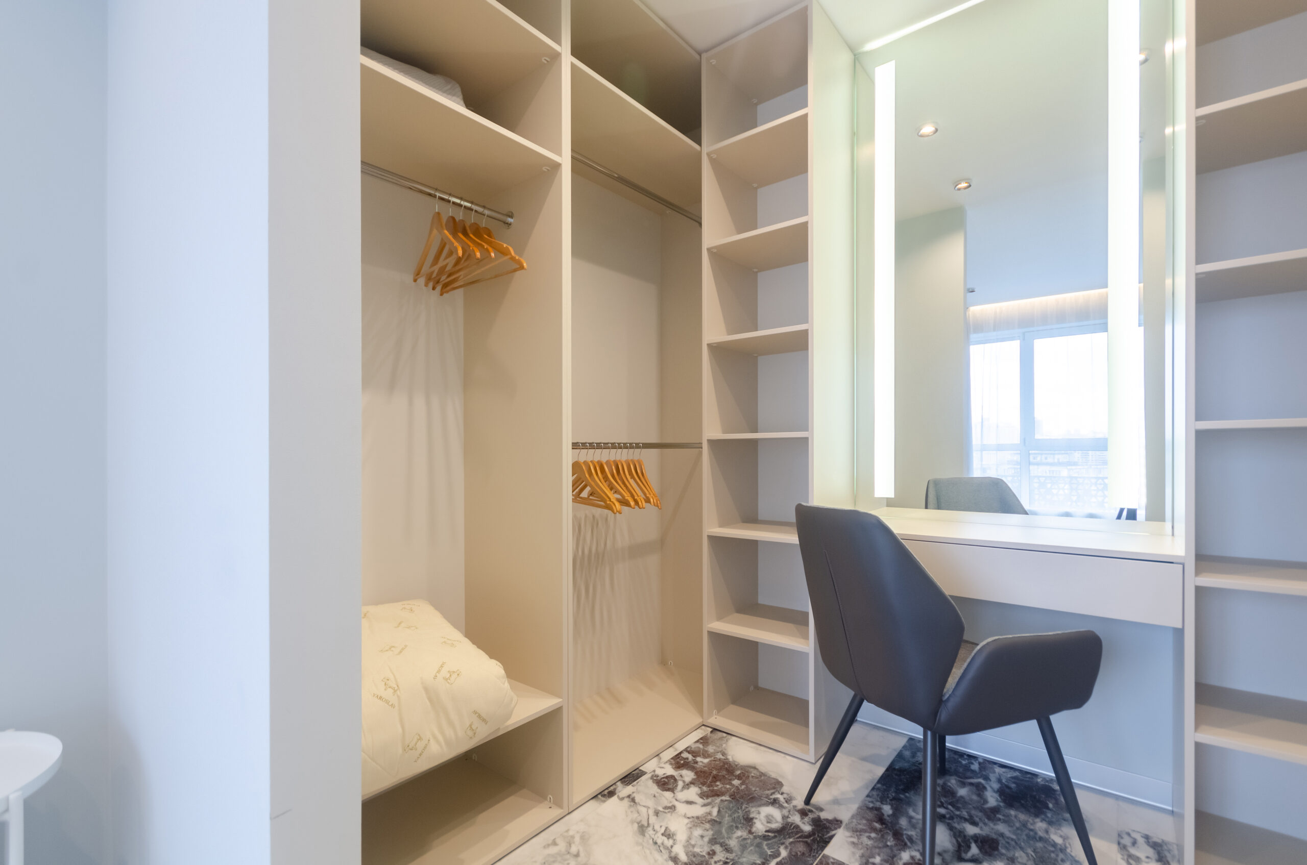 The apartment is located in a great new residential complex near railway station. Stylish modern design.The apartment is located on the 7th floor with beautiful views from the panoramic windows. The complex has round-the-clock security. There is an underground parking lot in the building.The apartment is fully equipped with everything necessary for a comfortable stay.