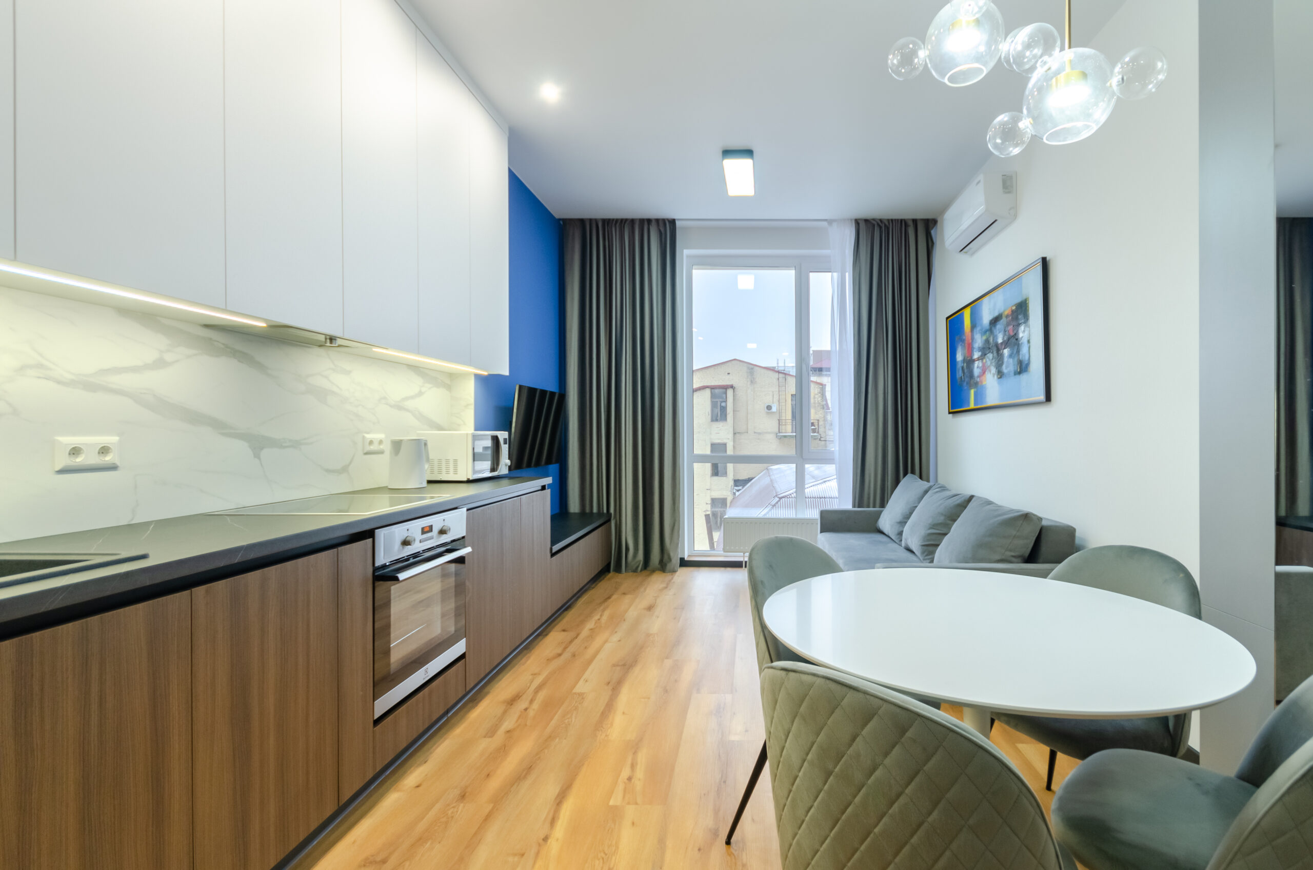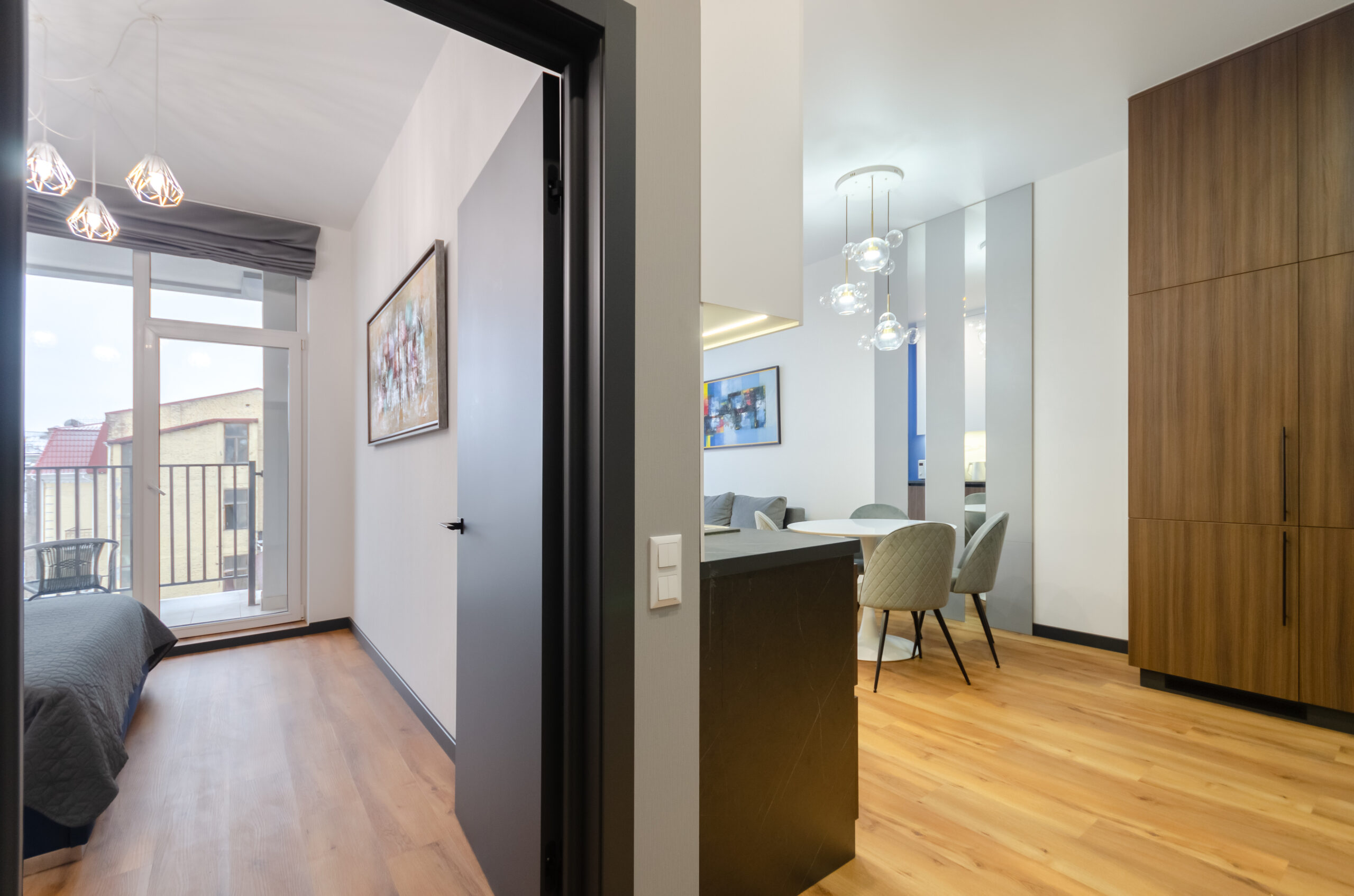 Within walking distance are Lvivska Square, Golden Gate metro station, St. Sophia Cathedral. There are many boutiques, restaurants, banks, shops, entertainment venues and attractions nearby. There is a public transport stop across the street. Novus supermarket is nearby.