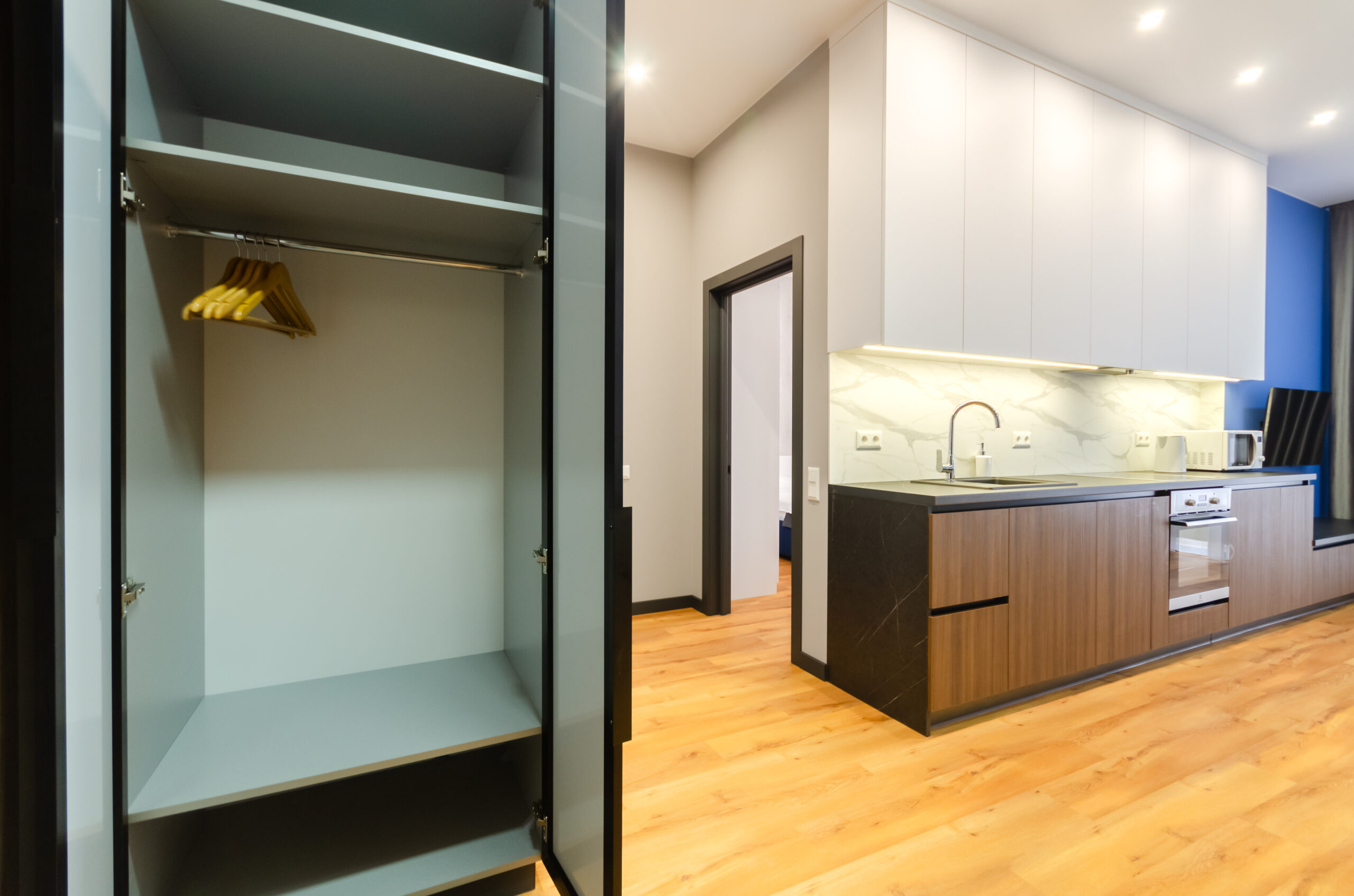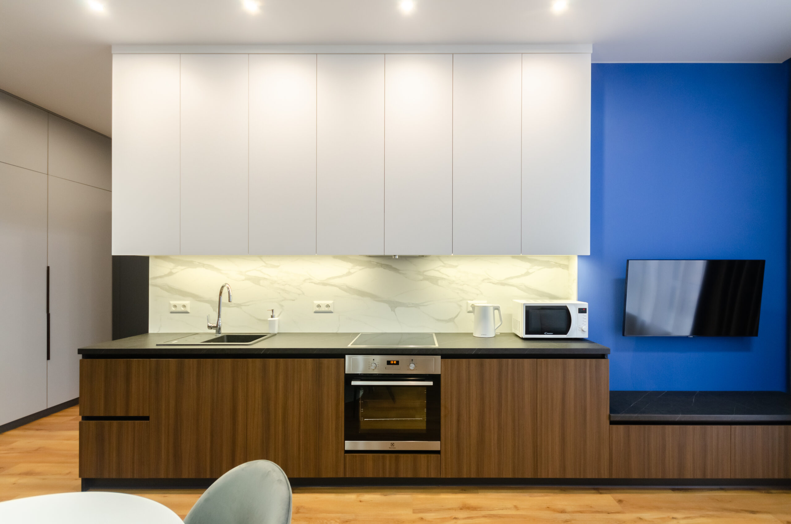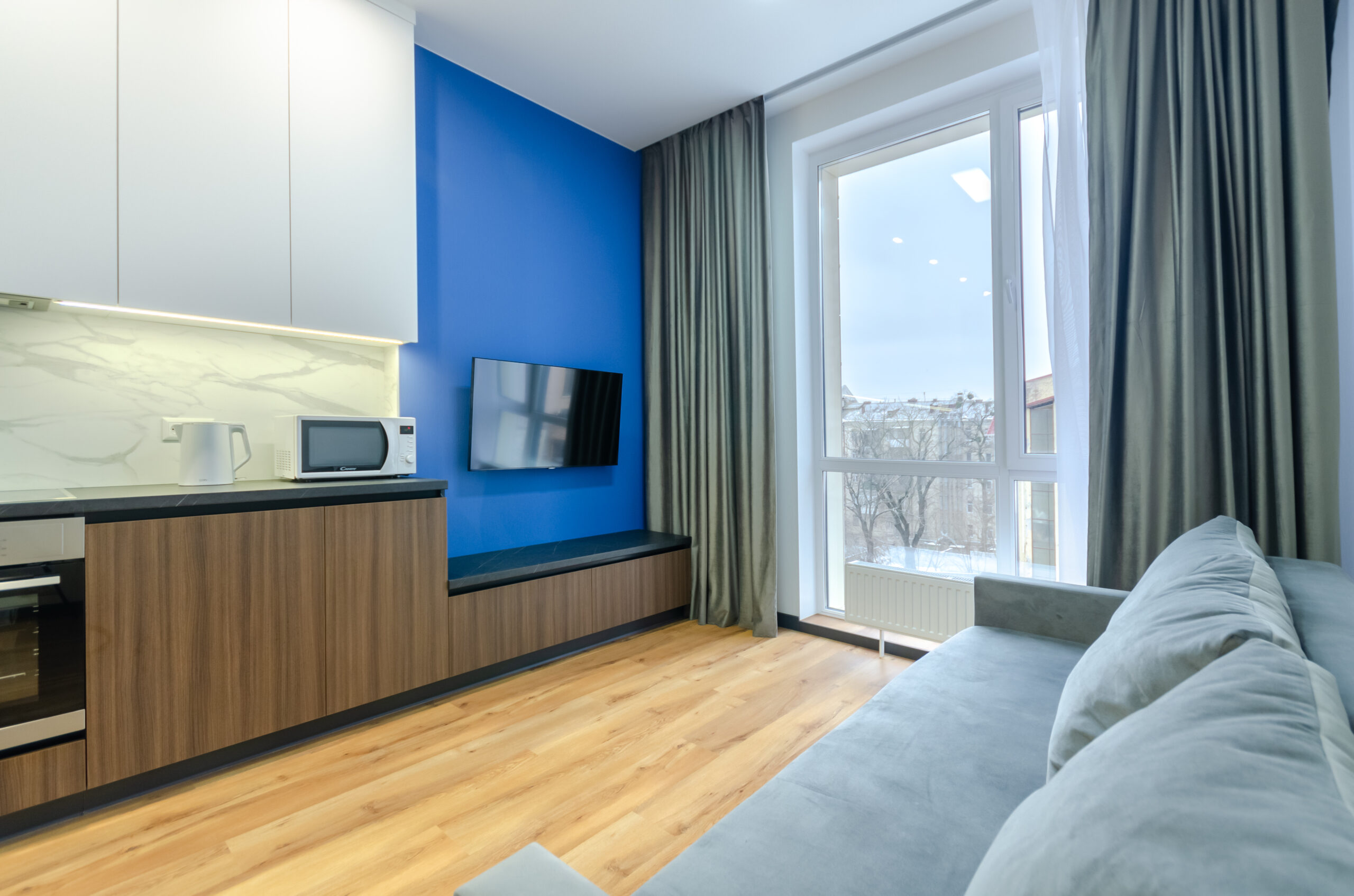 The apartment has bedding, all the necessary dishes, small household appliances – everything for a comfortable stay for any period.