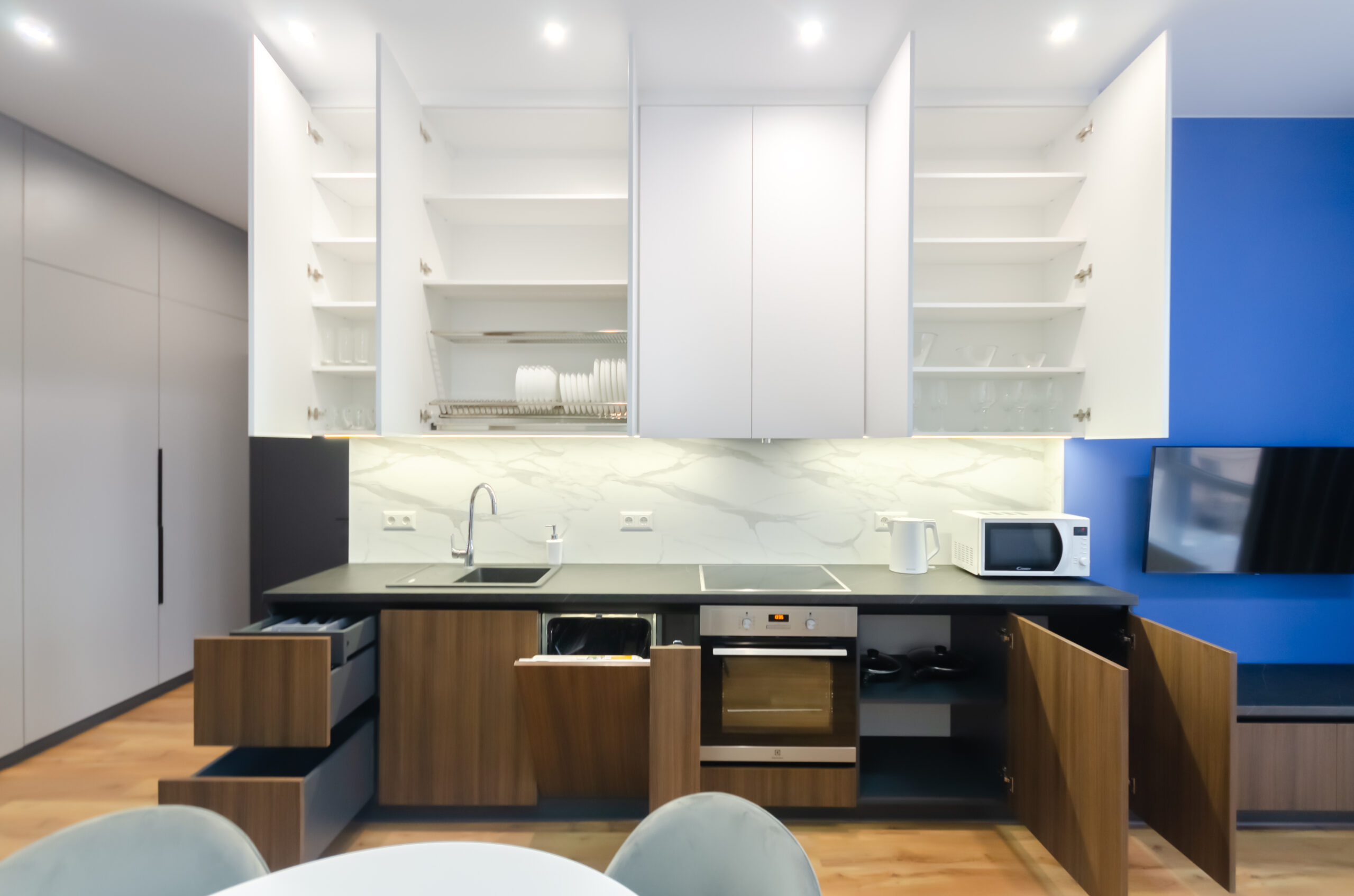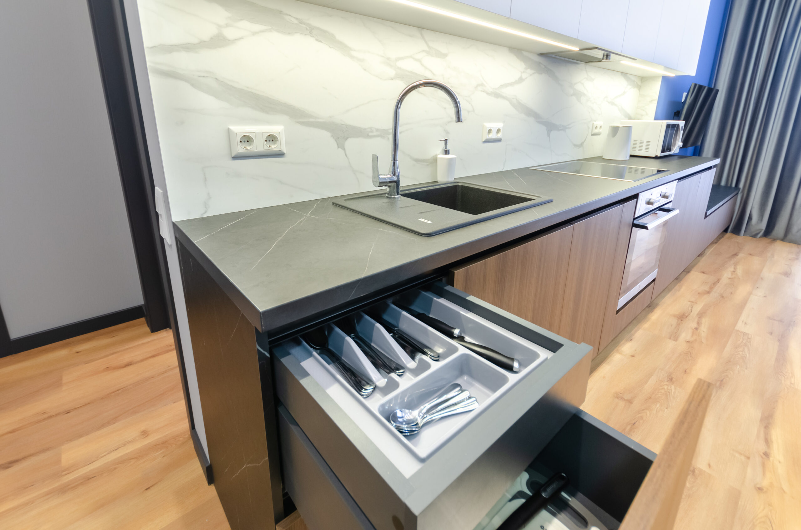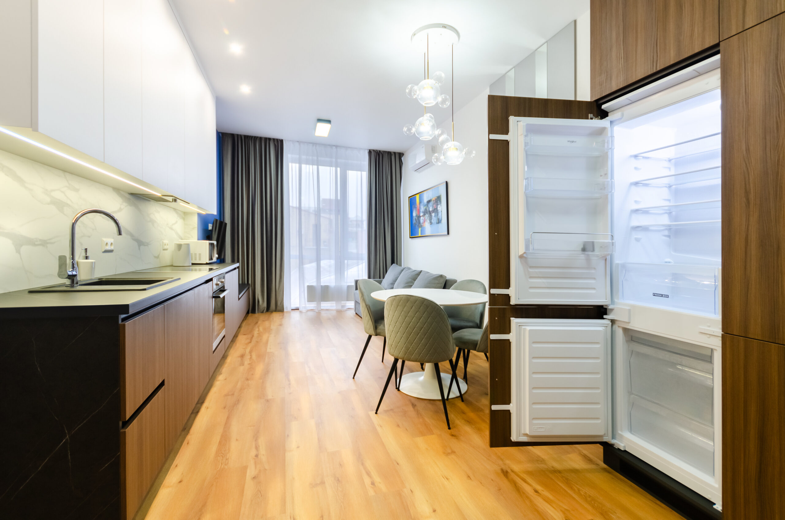 The apartment has bedding, all the necessary dishes, small household appliances – everything for a comfortable stay for any period.